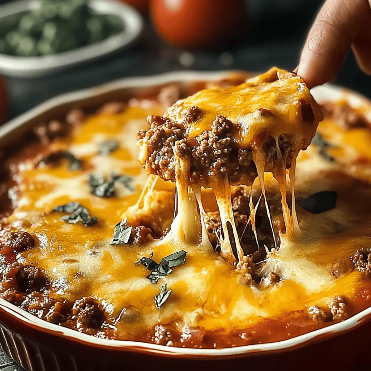 Absolutely! For a vegetarian rendition, substitute the ground beef with cooked lentils, black beans, or shredded veggies. You can enhance the texture by adding corn or diced bell peppers—these options also lend a nice pop of flavor and keep the dip lively and appealing!