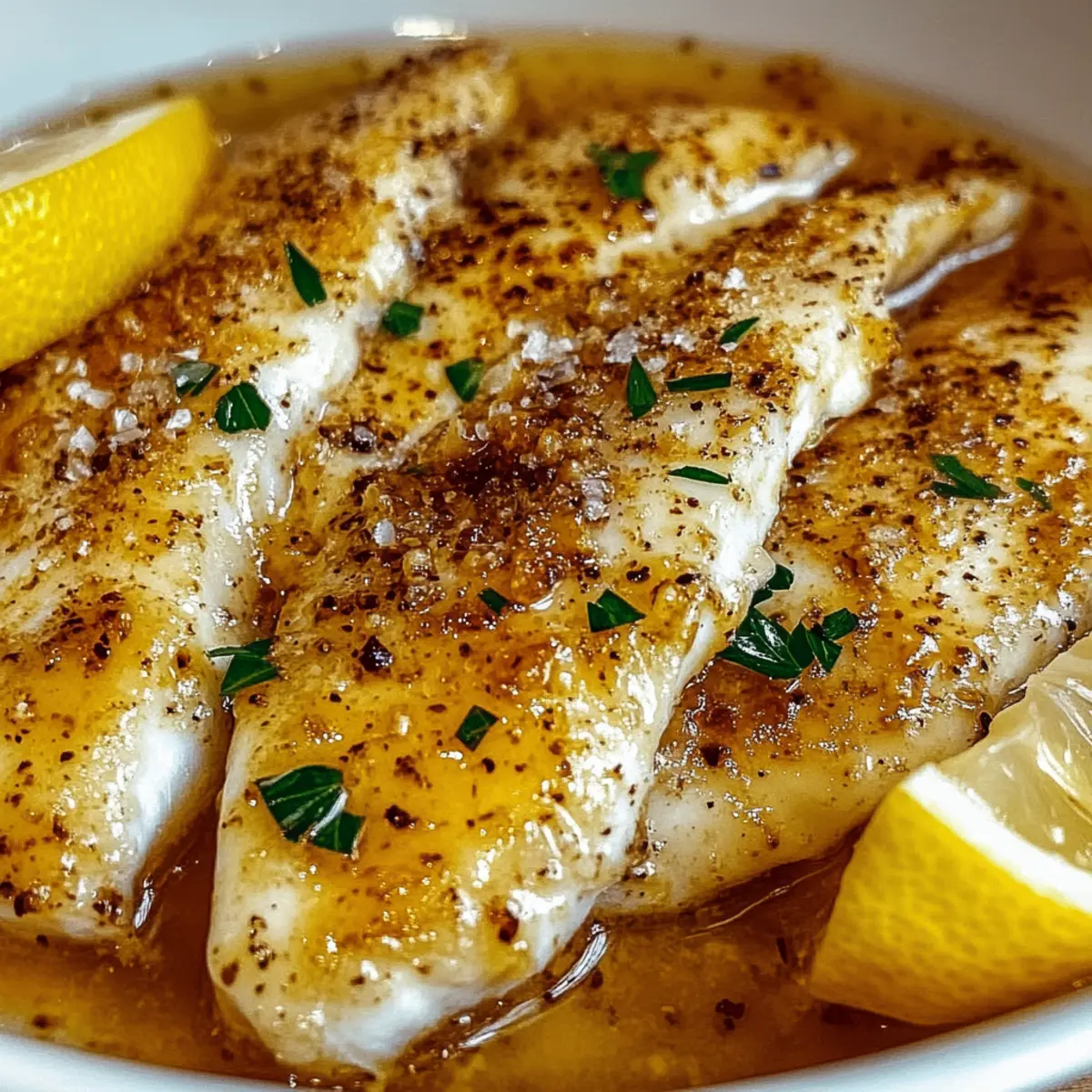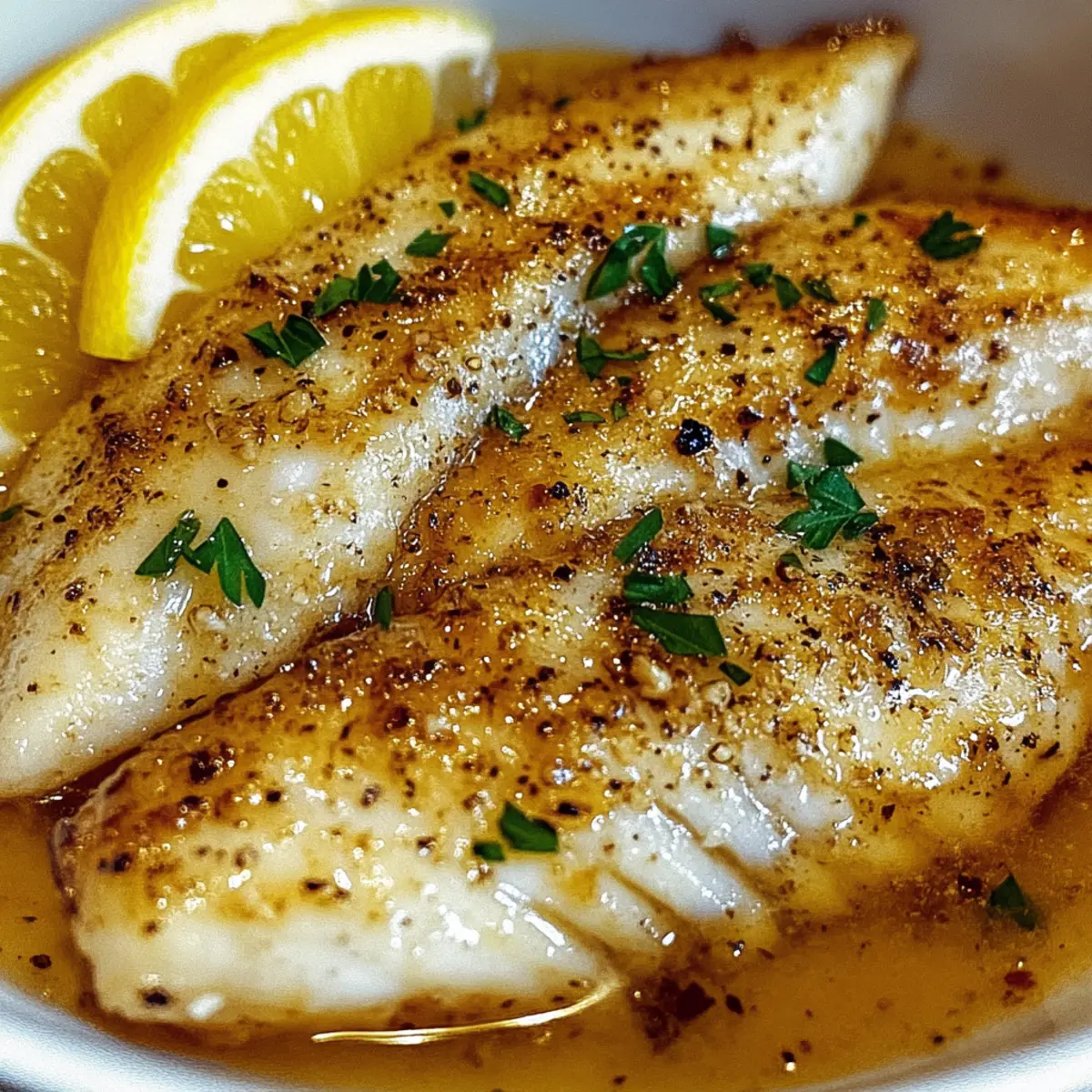 Jump to Recipe Print RecipeAs I stood in my kitchen, the enticing aroma of sautéing garlic filled the air, instantly lifting my spirits. There’s something magical about preparing a meal that feels both indulgent and healthy, and today I’m sharing my go-to recipe: Garlic Butter Oven Baked Tilapia. This dish is not only a delicious option for a busy weeknight but also a great way to elevate your dinner table for special occasions. With its flaky texture and a perfect balance of garlic and zesty lemon, this quick seafood delight comes together effortlessly. Plus, it’s packed with nutrients while being absolutely satisfying! Are you ready to discover how to create a seafood dish that will impress everyone at the table? Let’s dive in! Why is Garlic Butter Tilapia a Must-Try? Quick and Simple: This recipe whips up in under 20 minutes, making it perfect for busy weeknights. Flavor Explosion: The rich garlic butter and zesty lemon create a mouthwatering experience that will have your taste buds dancing. Healthy Choice: Packed with protein and nutrients, tilapia is a wonderful low-calorie alternative to heavier meats. Crowd-Pleasing: Ideal for both family dinners and special occasions, this dish is sure to impress your guests, much like my Garlic Butter Shrimp which gets rave reviews every time! Versatile Ingredients: Customize with your favorite seasonal veggies or fresh herbs to elevate the dish even further. If you’re looking for an easy, flavorful, and healthy dinner option, this Garlic Butter Oven Baked Tilapia is your go-to hero! Garlic Butter Oven Baked Tilapia Ingredients For the Tilapia • Tilapia Fillets – Fresh or frozen fillets work, but ensure they are completely thawed for even cooking. For the Garlic Butter • Garlic – Fresh garlic provides the best aromatic flavor; minced for optimal taste. • Butter – Use unsalted butter for better control over the dish’s seasoning. For the Zesty Sauce • Lemon Juice – Freshly squeezed lemon juice enhances flavor with a bright acidity. • Fresh Herbs (e.g., parsley, dill) – They add vibrant color and freshness; dried herbs can be used in a pinch. This Garlic Butter Oven Baked Tilapia recipe combines simple ingredients for a quick and healthy weeknight dinner that everyone will love! Step‑by‑Step Instructions for Garlic Butter Oven Baked Tilapia Step 1: Preheat the Oven Begin by preheating your oven to 400°F (200°C). This ensures that when you put the Garlic Butter Oven Baked Tilapia inside, it cooks evenly and quickly. While the oven warms up, gather your ingredients to make your cooking experience smooth and enjoyable. Step 2: Prepare the Garlic Butter In a small pan, melt 4 tablespoons of unsalted butter over medium heat. Once the butter has melted, add 3 cloves of minced garlic and sauté for about 1 minute until it turns fragrant and golden. This aromatic mixture will soak into the fish, elevating the dish’s flavor profile. Step 3: Arrange the Tilapia Fillets Grab a baking dish and gently lay the tilapia fillets in a single layer. Ensure they are fully thawed if they were frozen; this helps them cook properly. Pour the luscious garlic butter mixture over the fillets, allowing the buttery goodness to coat them generously for that rich taste. Step 4: Add Zesty Flavor Squeeze the juice of one fresh lemon evenly over the tilapia fillets, letting the bright acidity add a refreshing zing. Then, sprinkle with salt and freshly ground black pepper to taste. This combination brings out the natural flavors of the fish and balances the richness of the garlic butter. Step 5: Bake the Tilapia Place the baking dish in the preheated oven and bake the Garlic Butter Oven Baked Tilapia for 12-15 minutes. Keep an eye on the fish; it’s ready when it easily flakes apart with a fork and turns opaque. This quick cooking time ensures the tilapia remains moist and tender. Step 6: Garnish and Serve Once cooked, remove the tilapia from the oven and let it rest for a moment. Garnish with freshly chopped herbs like parsley or dill for a pop of color and freshness. Serve your Garlic Butter Oven Baked Tilapia immediately with your favorite sides for a delightful meal everyone will love. Garlic Butter Oven Baked Tilapia Variations Feel free to get creative with your Garlic Butter Oven Baked Tilapia and make it your own! Other Fish: Substitute tilapia with cod or haddock for a different texture and flavor. Each fish brings its own unique taste, making for an exciting twist! Herb Butter: Use compound butter by mixing in fresh herbs, such as thyme or basil, to add more flavor dynamics to the dish. This simple change elevates the dish into something extraordinary! Spicy Kick: Add a sprinkle of red pepper flakes for a delightful heat. Perfect for those who enjoy a spicy twist with their buttery fish. Vegetable Medley: Toss in some asparagus or cherry tomatoes around the fish for a vibrant one-pan meal. Roasting these veggies alongside intensifies their flavor and offers a complete dining experience. Zesty Citrus: Experiment with citrus! Substitute lime or orange juice in place of lemon for a refreshing change, brightening the overall flavor profile in an unexpected way. Creamy Sauce: Drizzle a simple cream sauce over the top for richness. Combine heavy cream with garlic and herbs for a decadent addition that enhances every bite. Nutty Crunch: Top with toasted almonds or pine nuts for an exciting crunchy texture that contrasts beautifully with the tender fish. This adds another dimension to your meal! Incorporating these variations can transform your Garlic Butter Oven Baked Tilapia into something uniquely yours, reminiscent of a fine dining experience right at home. Enjoy the journey of flavors, and consider pairing it with my Honey Garlic Salmon for another spectacular seafood option! Make Ahead Options Garlic Butter Oven Baked Tilapia is an excellent dish for meal prep enthusiasts looking to save time during busy weeknights! You can prepare
