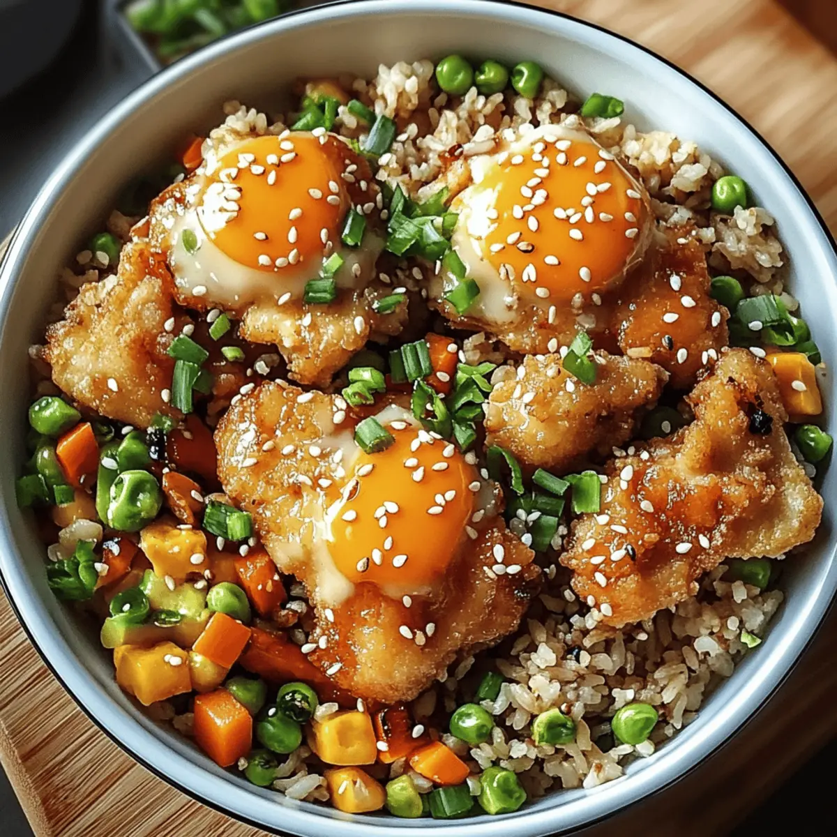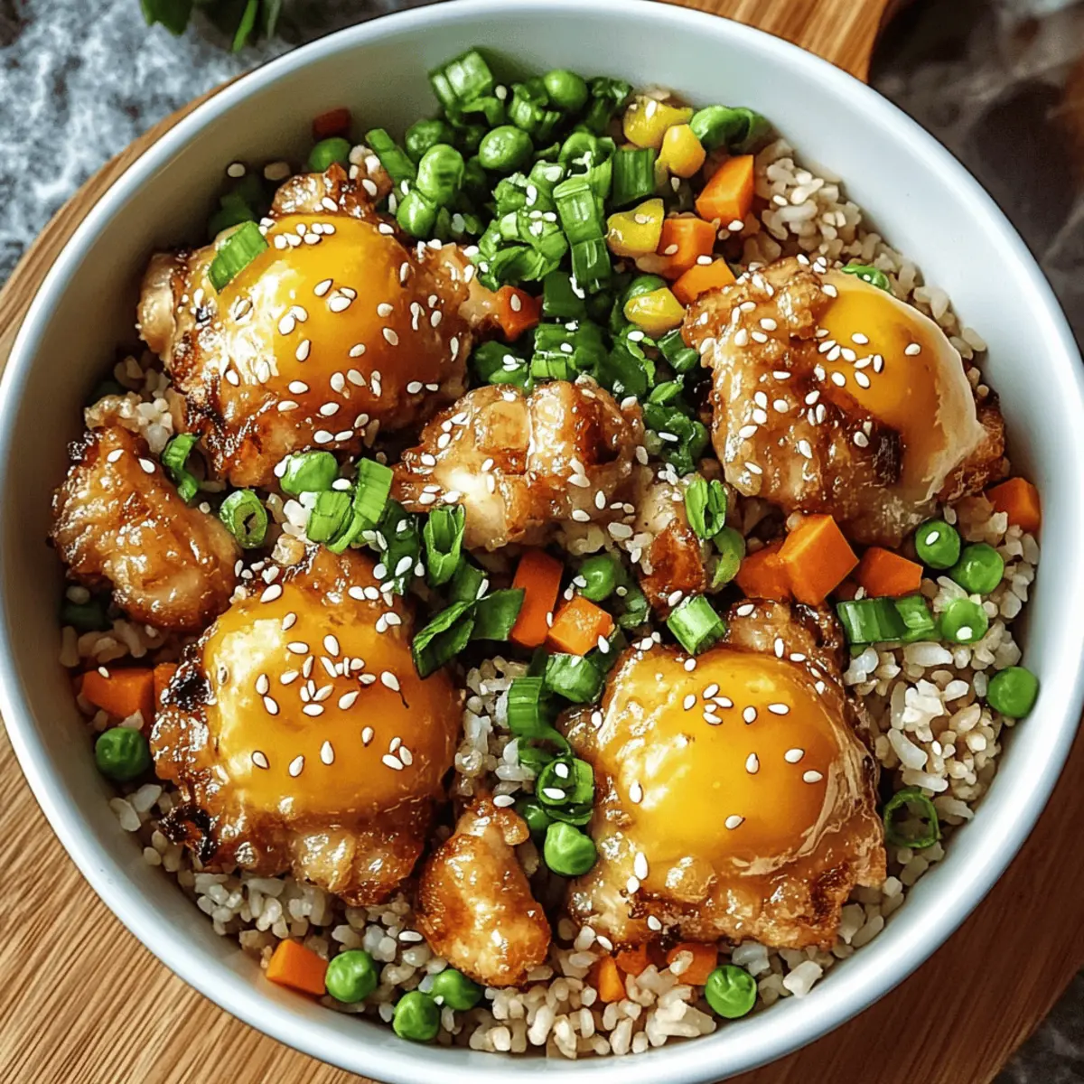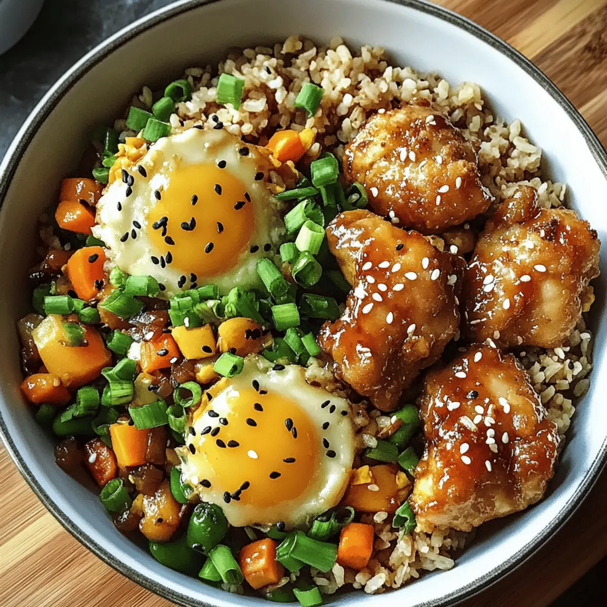 Jump to Recipe Print RecipeAs the sizzling sounds of garlic fill my kitchen, I’m transported to a bustling food market where the aroma of sizzling fried rice wafts through the air. This High Protein Crispy Garlic Chicken Fried Rice Bowl is not just a meal; it’s a delightful experience that satisfies your craving for comfort while being packed with nutrients! In just 35 minutes, you’ll create a dish that features crispy chicken, vibrant veggies, and fragrant garlic, making it a go-to option for busy weekdays or leisurely weekends. This high-protein wonder is not only a family favorite but also a fantastic option for meal prep, ensuring you always have something delicious at your fingertips. Plus, with simple substitutions, you can easily adapt it for gluten-free or vegetarian diets. Are you ready to unveil the secrets behind this scrumptious bowl? Let’s dive into the recipe! Why Is Garlic Chicken Fried Rice Amazing? Flavor Explosion: The blend of crispy chicken and savory garlic creates an unforgettable taste sensation that brings joy to every bite. Healthy Indulgence: Packed with protein, this dish is not just delicious but also nutritious, perfect for fuel on busy days. Quick Prep: Ready in just 35 minutes, it caters to those hectic weeknights when you need a satisfying meal fast. Customizable: Swap in tofu or your choice of veggies to personalize this dish, making it suitable for any dietary needs, just like our Honey Garlic Chicken or Cheddar Garlic Herb Potato Soup. Perfect for Meal Prep: Prepare in advance and store leftovers for an easy, reheatable meal – saving time without sacrificing flavor! Crowd-Pleaser: Ideal for family gatherings or casual get-togethers, this dish is sure to impress your guests with its vibrant colors and delightful aroma. Garlic Chicken Fried Rice Ingredients For the Chicken Chicken Breast – Lean protein that absorbs marinade and crisps up beautifully; substitute with tofu or tempeh for a vegetarian version. Soy Sauce – Provides salty umami depth for seasoning; use tamari sauce for gluten-free or coconut aminos for a lighter flavor. Oyster Sauce – Adds subtle sweetness and richness to the marinade; substitute with vegetarian oyster sauce or skip for a lighter dish. Cornstarch – Coats chicken for a crispy texture when frying; essential for achieving that perfect crispiness. For Cooking Vegetable Oil – High smoke point oil perfect for frying without burning; can also substitute with canola or peanut oil. Garlic – Infuses deep aromatic flavor when sautéed; essential for the dish’s signature taste. For the Rice Base Cooked Brown Rice – Ensure it’s cold to prevent mushiness; ideal for frying to achieve a delightful crunch. Eggs – Add creaminess and tie all ingredients together; optional swap with a vegan alternative for a plant-based version. For the Veggies Mixed Vegetables – Peas, carrots, and corn add color, crunch, and nutrients; feel free to customize to your liking, such as adding bell peppers or broccoli. Green Onions – Fresh garnish that adds a sharp finish to the dish; sprinkle generously for added flavor. For Seasoning & Garnish Salt and Pepper – Essential for enhancing flavors; adjust to taste as you mix the ingredients. Sesame Seeds and Cilantro – Optional garnishes that contribute nuttiness and freshness, elevating the dish even more. Step‑by‑Step Instructions for Garlic Chicken Fried Rice Step 1: Marinate the Chicken Start by cutting the chicken breast into bite-sized pieces and placing them in a mixing bowl. Pour in the soy sauce, oyster sauce, and a sprinkle of cornstarch. Mix well to fully coat the chicken and let it marinate for 15 minutes, allowing those flavors to soak in and tenderize the meat for your Garlic Chicken Fried Rice. Step 2: Cook the Chicken In a large skillet or wok, heat 2 tablespoons of vegetable oil over medium-high heat. Once hot, add the marinated chicken in a single layer, avoiding overcrowding. Sauté the chicken for 6-8 minutes, flipping occasionally, until it turns golden brown and crispy. Remove the chicken from the pan and set aside, keeping it warm. Step 3: Sauté the Garlic In the same pan, with the residual oil, add 4 minced garlic cloves. Sauté over medium heat for about 1 minute, stirring constantly until the garlic turns golden and fragrant. Be careful not to burn it, as burnt garlic can taste bitter. This aromatic foundation is crucial for your Garlic Chicken Fried Rice. Step 4: Add the Brown Rice Next, add 4 cups of cold, cooked brown rice to the pan. Break up any clumps and stir well to coat the rice in the garlic oil. Allow the rice to fry undisturbed for about 2 minutes to develop a crispy texture, stirring occasionally to prevent sticking. This creates a beautiful foundation for the dish. Step 5: Scramble the Eggs Push the rice to one side of the pan to create space, then crack 2 beaten eggs into the cleared area. Allow them to cook for about 1 minute until they start to set, then scramble and mix them into the fried rice. This adds a creamy richness to your Garlic Chicken Fried Rice, binding all the ingredients together. Step 6: Incorporate the Vegetables Add 2 cups of mixed vegetables—like peas, carrots, and corn—into the pan. Stir and cook for 3-4 minutes until they are heated through and vibrant in color. This step not only adds nutrients but also enhances the visual appeal of your Garlic Chicken Fried Rice with a burst of freshness. Step 7: Combine Everything Return the crispy chicken to the pan and pour in a splash of additional soy sauce for flavor. Mix all the ingredients thoroughly, ensuring everything is evenly distributed and heated through. Keep the heat medium to maintain a nice sizzling sound, which means your Garlic Chicken Fried Rice is nearly ready. Step 8: Season and Serve Finally, season the dish with salt and pepper to taste, stirring well to integrate all flavors. Once everything is heated through and well-combined, remove the pan from he