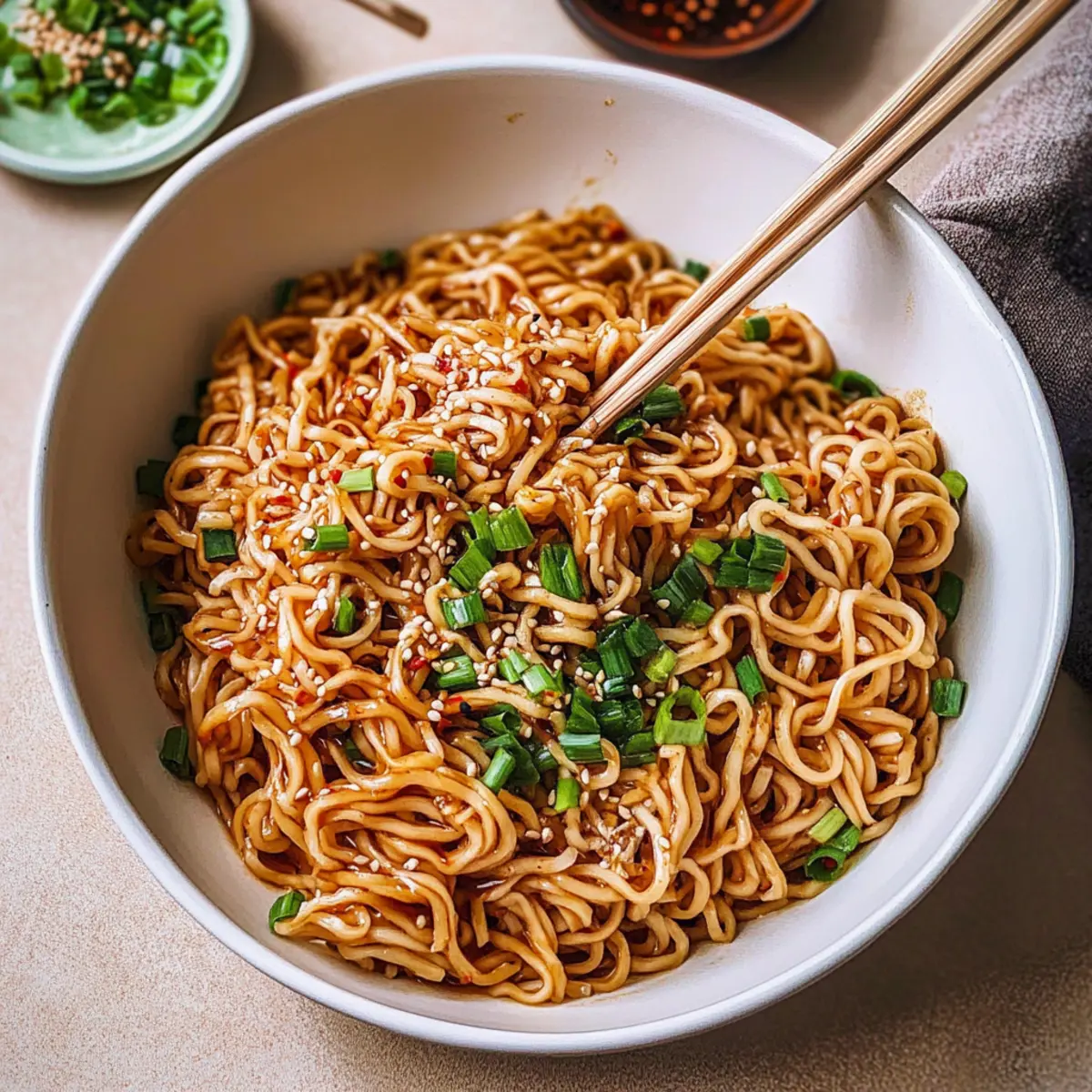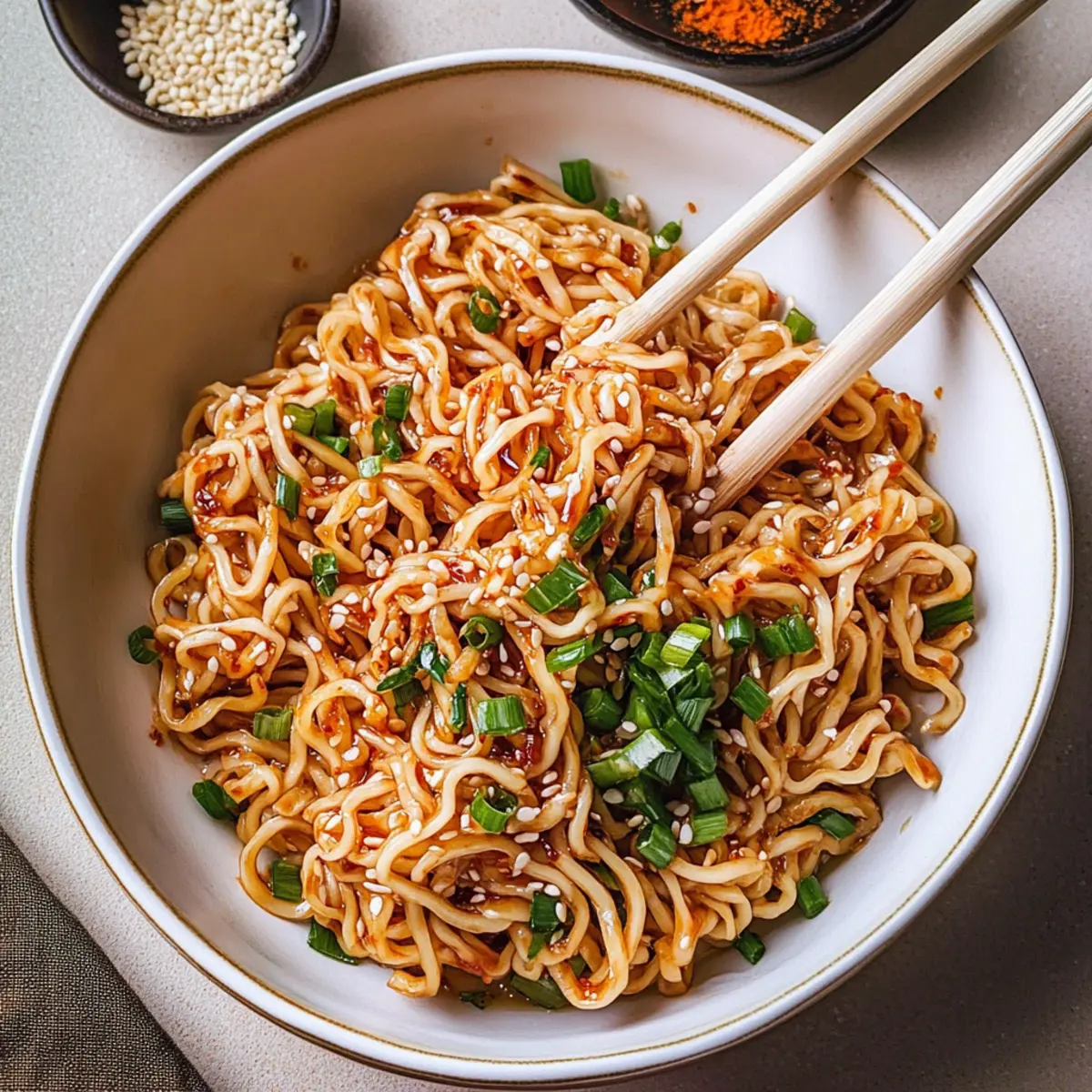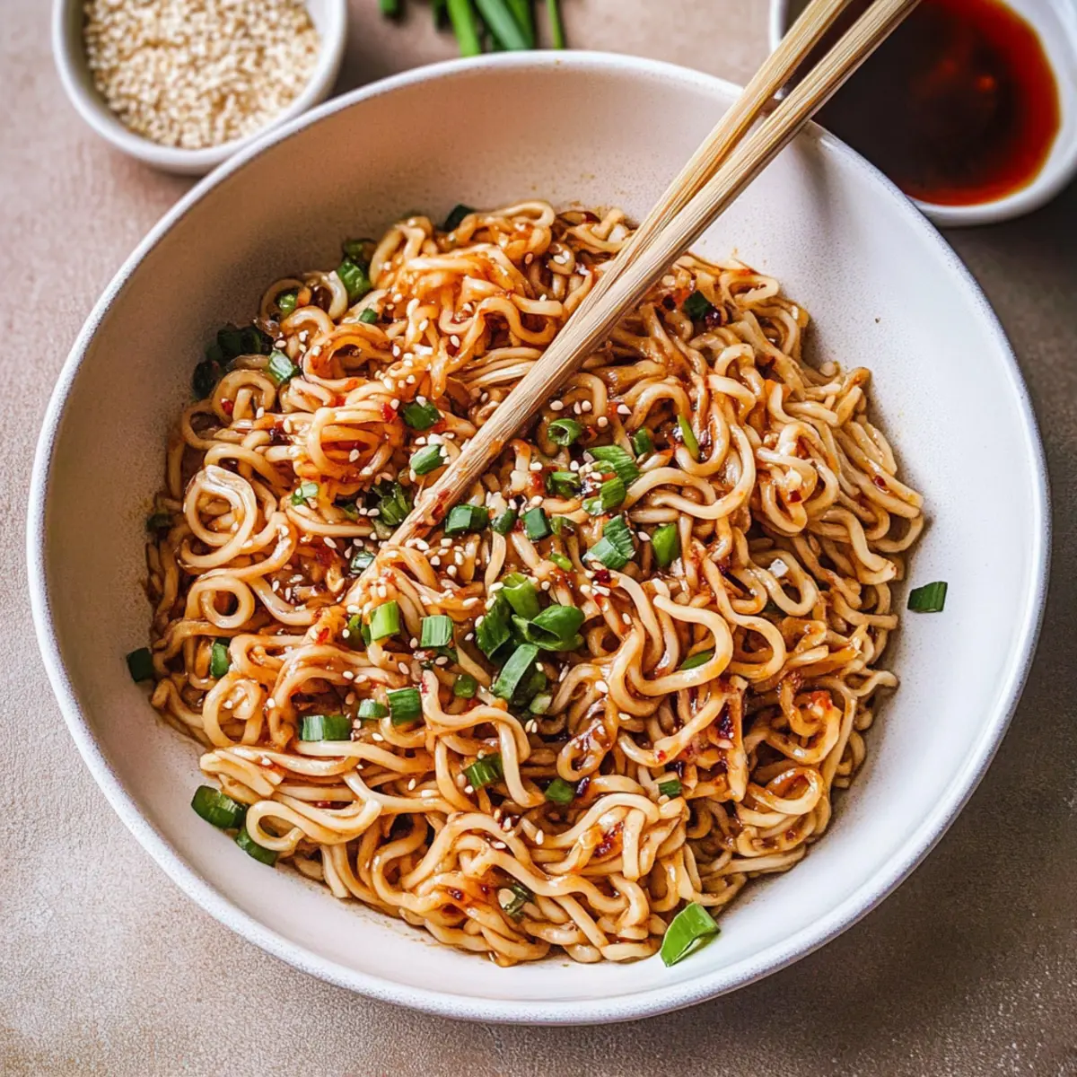 • Different Noodles: Trade in dried ramen for udon or soba noodles. Each type will bring a unique texture to your Garlic Chili Oil Noodles, making it a fun and tasty experiment.