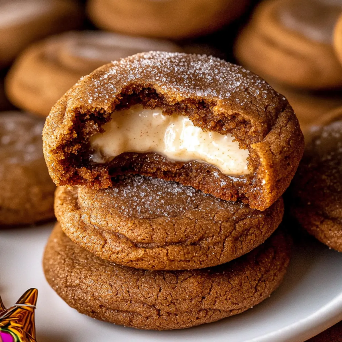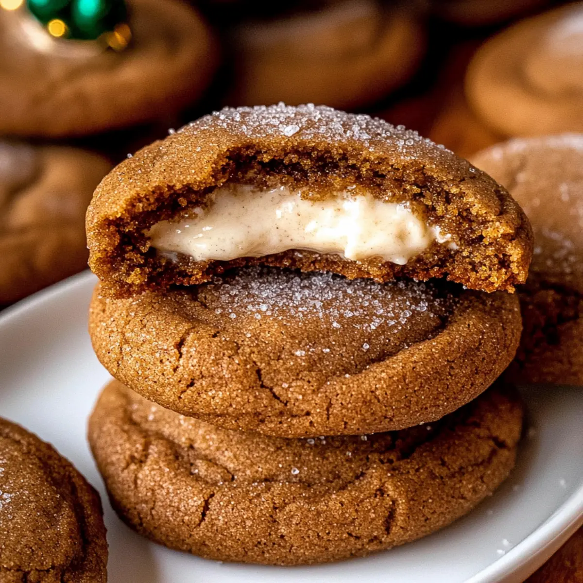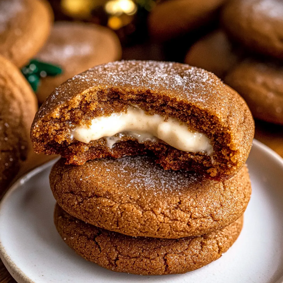 Jump to Recipe Print RecipeThe moment the holiday season rolls in, my kitchen transforms into a cozy sanctuary filled with the warm scents of spices and baked delights. These Gingerbread Cheesecake Cookies embody that festive spirit—an irresistible fusion of chewy gingerbread and a luscious, creamy cheesecake filling that takes your taste buds on a delicious holiday adventure. Not only are they quick to whip up, but they also serve as a delightful crowd-pleaser at any festive gathering. Imagine friends and family reaching for just one more, savoring that perfect balance of spicy and sweet. Whether you’re new to cookie making or a seasoned pro, these cookies are sure to add an extra dose of joy to your holiday celebrations. So, why not roll up your sleeves and indulge in creating this holiday classic? What unique twist will you add to your batch? Why are Gingerbread Cheesecake Cookies Special? Unmatched Flavor: The combination of spiced gingerbread and a creamy cheesecake center creates a uniquely festive cookie experience. Quick to Make: In just a few simple steps, you’ll have a treat that’s both impressive and delicious—perfect for holiday gatherings. Crowd-Pleasing Treat: Their delightful flavor and texture make these cookies a sure hit among friends and family, ensuring everyone leaves with smiles. Versatile Options: Feel free to experiment! You can add chocolate chips or even substitute cream cheese with mascarpone for a delicious twist. Try rolling them in crumbs of ginger snap for added crunch! Perfect for Gifting: Pack these cookies in a festive box or include them in holiday gift baskets along with other treats like Gingerbread Men Cookies or Churro Cheesecake Bliss to spread joy this season! Gingerbread Cheesecake Cookies Ingredients For the Cheesecake Filling • Cream Cheese – Provides a rich and creamy filling; use fully softened cream cheese for optimal mixing. • Granulated Sugar (for filling) – Sweetens the cheesecake and balances the tanginess of the cream cheese; can substitute with powdered sugar for a smoother texture. • Vanilla Extract – Adds depth of flavor to the cheesecake; any quality vanilla extract can be used. For the Spiced Dough • Granulated Sugar (for spiced sugar) – Sweetens and complements the spices; brown sugar can be an alternative for added moisture. • Ground Ginger – Key spice for gingerbread flavor; freshly ground ginger enhances flavor and can be substituted with more ground cinnamon. • Ground Cinnamon – Imparts warmth and sweetness in both the dough and spiced sugar; extra can be added for increased flavor. • Ground Allspice, Nutmeg, Cloves – Contribute to the aromatic spice blend of the cookies; use additional cinnamon or ginger if unavailable. • All-Purpose Flour – Provides structure; ensure it’s spooned and leveled to avoid excess. • Baking Soda & Salt – Baking soda helps the cookies rise; salt enhances flavor—ensure freshness for best results. • Unsalted Butter – Adds richness and moisture; can be replaced with coconut oil for a dairy-free option. • Light Brown Sugar – Contributes moisture and deeper flavor; dark brown sugar can be substituted for a more pronounced molasses flavor. • Egg Yolks – Add moisture and richness to the dough; can substitute with a flax egg for a vegan option. • Unsulphured Molasses – Imparts sweetness and distinctive gingerbread flavor; can use honey or maple syrup for a different profile. For the Coating • Granulated Sugar – Used for coating the cookies; rolling in spiced sugar enhances the festive flavor—essential for the Gingerbread Cheesecake Cookies experience! Step‑by‑Step Instructions for Gingerbread Cheesecake Cookies Step 1: Prepare the Cheesecake Filling In a mixing bowl, beat together 8 ounces of softened cream cheese, ⅓ cup of granulated sugar, and 1 teaspoon of vanilla extract using an electric mixer on medium speed. Continue until the mixture is smooth and fluffy, about 2 minutes. Next, use a cookie scoop to portion out 18 teaspoons onto a parchment-lined baking sheet, then place them in the freezer for at least 30 minutes to firm up. Step 2: Mix Dry Ingredients In a large bowl, whisk together 2 cups of all-purpose flour, 2 teaspoons of ground ginger, 1 teaspoon of ground cinnamon, ½ teaspoon of ground allspice, ½ teaspoon of nutmeg, ¼ teaspoon of cloves, 1 teaspoon of baking soda, and ½ teaspoon of salt. This spice blend will create the ultimate flavor profile for your Gingerbread Cheesecake Cookies. Set this bowl aside while you prepare the wet ingredients. Step 3: Cream Butter and Sugar In a separate bowl, beat together ½ cup of softened unsalted butter and ⅓ cup of light brown sugar until the mixture is light and fluffy, about 3 minutes. Then, add in 2 egg yolks, ¼ cup of unsulphured molasses, and another teaspoon of vanilla extract. Mix on low until well combined, making sure everything is smoothly incorporated before moving on to the next step. Step 4: Combine Mixtures Gradually add the dry ingredient mixture to the wet ingredients in the bowl. Stir gently with a rubber spatula or wooden spoon until just combined; avoid overmixing to ensure soft, chewy cookies. The dough should be thick and slightly sticky, reflecting the signature texture of Gingerbread Cheesecake Cookies. Step 5: Assemble Cookies Preheat your oven to 350°F (175°C) and prepare a baking sheet with parchment paper. Take about 2 tablespoons of cookie dough and flatten it in your palm. Place a frozen cheesecake ball in the center, then fold the dough around it, sealing the edges tightly. Once shaped, roll each cookie ball in a mixture of granulated sugar and a pinch of cinnamon for a festive finish. Step 6: Bake Arrange the cookie dough balls on the prepared baking sheet, leaving enough space in between to allow for spreading. Bake in the preheated oven for 11-12 minutes, or until the edges are set but the centers are still slightly soft. After removin