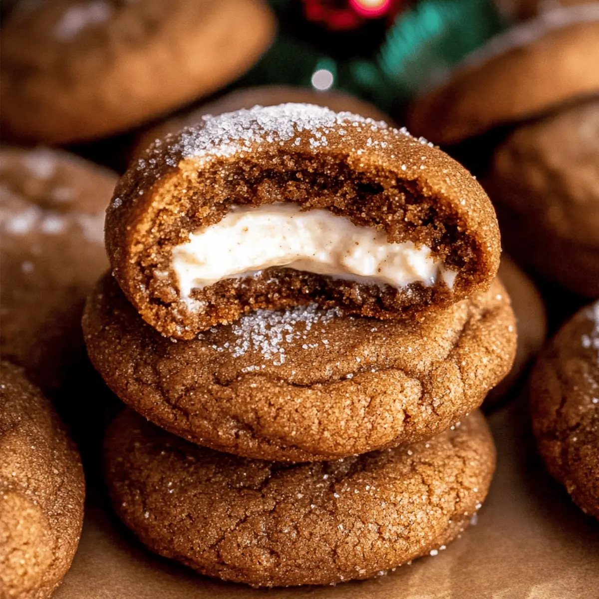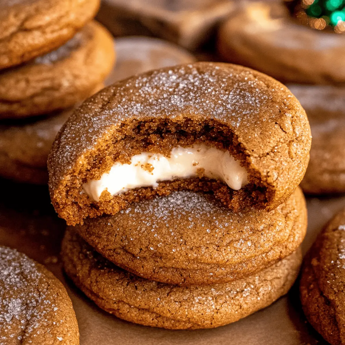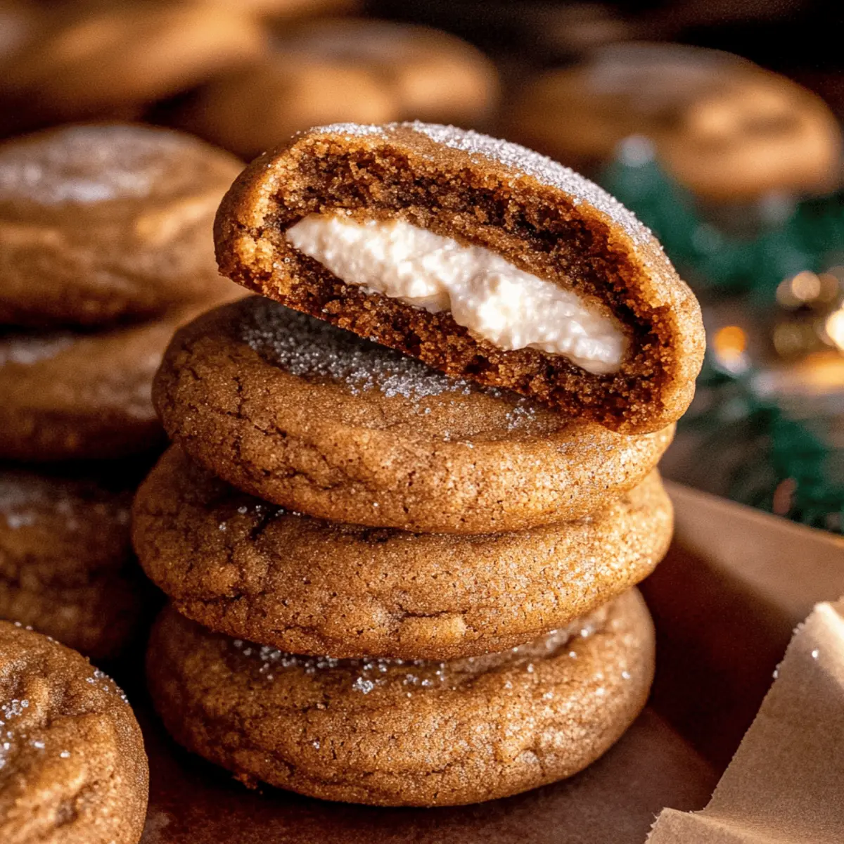 Jump to Recipe Print RecipeThe aroma of gingerbread wafts through the air as the first hints of winter approach, igniting the festive spirit in my kitchen. I can’t resist the urge to bake these Gingerbread Cheesecake Cookies—a perfect blend of chewy, spiced gingerbread dough encasing a lush, creamy cheesecake filling. Not only do these cookies make a delightful treat, they also simplify holiday baking with their straightforward approach, avoiding any complicated techniques. With their cozy, spiced sugar coating and irresistible flavors, these cookies are sure to be a crowd-pleaser at your next holiday gathering. Plus, they can be whipped up in a snap, perfect for those of us navigating the busy holiday season. Are you ready to indulge in this delightful holiday treat? Let’s dive into the recipe! Why Gingerbread Cheesecake Cookies Are Amazing? Unforgettable flavors: These cookies capture the essence of the holiday season, combining rich gingerbread spices with a luscious cheesecake center. Baking made simple: With no complicated techniques needed, you can easily whip up a batch of these Gingerbread Cheesecake Cookies in no time. Crowd-pleaser: Their unique taste and delightful presentation are sure to impress friends and family at your holiday gatherings! Versatile options: Feel free to experiment with different fillings or make a nut-free version to cater to various dietary needs. Check out my recipe for Gingerbread Men Cookies for another festive treat. Perfect for gifting: Wrapped up nicely, they make thoughtful homemade gifts for neighbors, friends, or as party favors! Gingerbread Cheesecake Cookies Ingredients For the Cheesecake Filling Cream Cheese – Helps create a creamy filling; make sure it’s cold for easier mixing. Granulated Sugar – Adds sweetness; brown sugar can give a richer flavor profile. Vanilla Extract – Enhances the filling’s flavor; use pure vanilla for the best taste. For the Cookie Dough All-Purpose Flour – Provides structure to the cookies; spoon and level to avoid excess flour. Ground Ginger – The key flavor component for that classic gingerbread taste; adjust based on your spice preference. Ground Cinnamon – Adds warmth and traditional gingerbread flavor; feel free to increase for extra spice. Nutmeg, Allspice, Cloves – Enhance the cookie’s flavor; can be omitted if you prefer simpler spices. Salt – Balances sweetness; skip if using salted butter. Baking Soda – Helps the cookies rise; ensure it’s fresh for best results. Unsalted Butter – Provides richness; soften it to room temperature for easy creaming. Light Brown Sugar – Works with butter for a chewy texture; dark brown sugar can be used for a deeper flavor. Egg Yolks – Add richness and help bind the dough; ensure they’re at room temperature. Unsulphured Molasses – Key to the gingerbread flavor; contributes moisture and should be avoided in blackstrap form for less bitterness. For the Spiced Sugar Coating Granulated Sugar – Sweetens the exterior of the cookies; cinnamon can be added for extra flavor. These Gingerbread Cheesecake Cookies are unique, capturing the warmth of the holidays with every bite! Step‑by‑Step Instructions for Gingerbread Cheesecake Cookies Step 1: Prepare Cheesecake Filling In a mixing bowl, blend cold cream cheese with granulated sugar and vanilla extract until fluffy, about 2-3 minutes. Once smooth, use a cookie scoop to portion the mixture into 18 balls and place them on a parchment-lined tray. Freeze these cheesecake balls for at least 1 hour, or until they are firm to the touch, ensuring they won’t leak during baking. Step 2: Mix Dry Ingredients In a separate bowl, whisk together all-purpose flour, baking soda, salt, ground ginger, cinnamon, nutmeg, allspice, and cloves. Mix thoroughly until combined, as this dry blend will provide the spice and texture needed for your Gingerbread Cheesecake Cookies. Set aside to let the flavors meld while you prepare the wet ingredients. Step 3: Cream Butter and Sugar In a large mixing bowl, beat the softened unsalted butter and light brown sugar together until light and fluffy, which should take about 3-5 minutes. Add in the room-temperature egg yolks, unsulphured molasses, and additional vanilla extract, mixing until just combined. This will create a rich, flavorful base for your cookies. Step 4: Combine Mixtures Gradually add the prepared dry ingredients into the wet mixture, mixing on low speed until just combined. Be careful not to overmix; you want a soft, slightly sticky dough consistency. Once incorporated, it’s time to form your cookies, allowing the warm spices to permeate through the dough. Step 5: Shape Cookies Take generous scoops of the dough and flatten each portion slightly in your hand. Place a frozen cheesecake ball in the center and wrap the dough around it, rolling gently to seal. Roll the filled dough ball in a spiced sugar mixture of granulated sugar and a sprinkle of cinnamon, ensuring an even coating for that festive touch. Step 6: Bake Preheat your oven to 350°F (175°C) and line a baking sheet with parchment paper. Arrange the cookie balls on the baking sheet, spaced evenly apart. Bake for 11-12 minutes until the edges are set but the centers are still slightly soft. Allow the cookies to cool on the baking sheet for 5 minutes before carefully transferring them to a wire rack to cool completely, allowing the filling to firm up. Storage Tips for Gingerbread Cheesecake Cookies Room Temperature: These cookies can be stored at room temperature for up to 3 days in an airtight container to maintain their chewy texture. Fridge: If you’d like to extend their freshness, refrigerate the cookies for up to a week, but be sure to use a tightly sealed container to prevent drying out. Freezer: For longer storage, freeze the cookies for up to 2 weeks. Place them in a single layer in a freezer-safe bag or container and rewarm slightly before serving. Reheating: To enjoy them warm, reheat 
