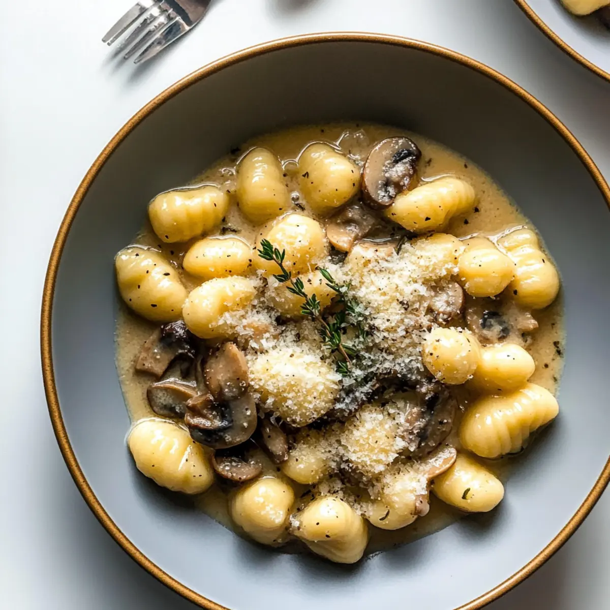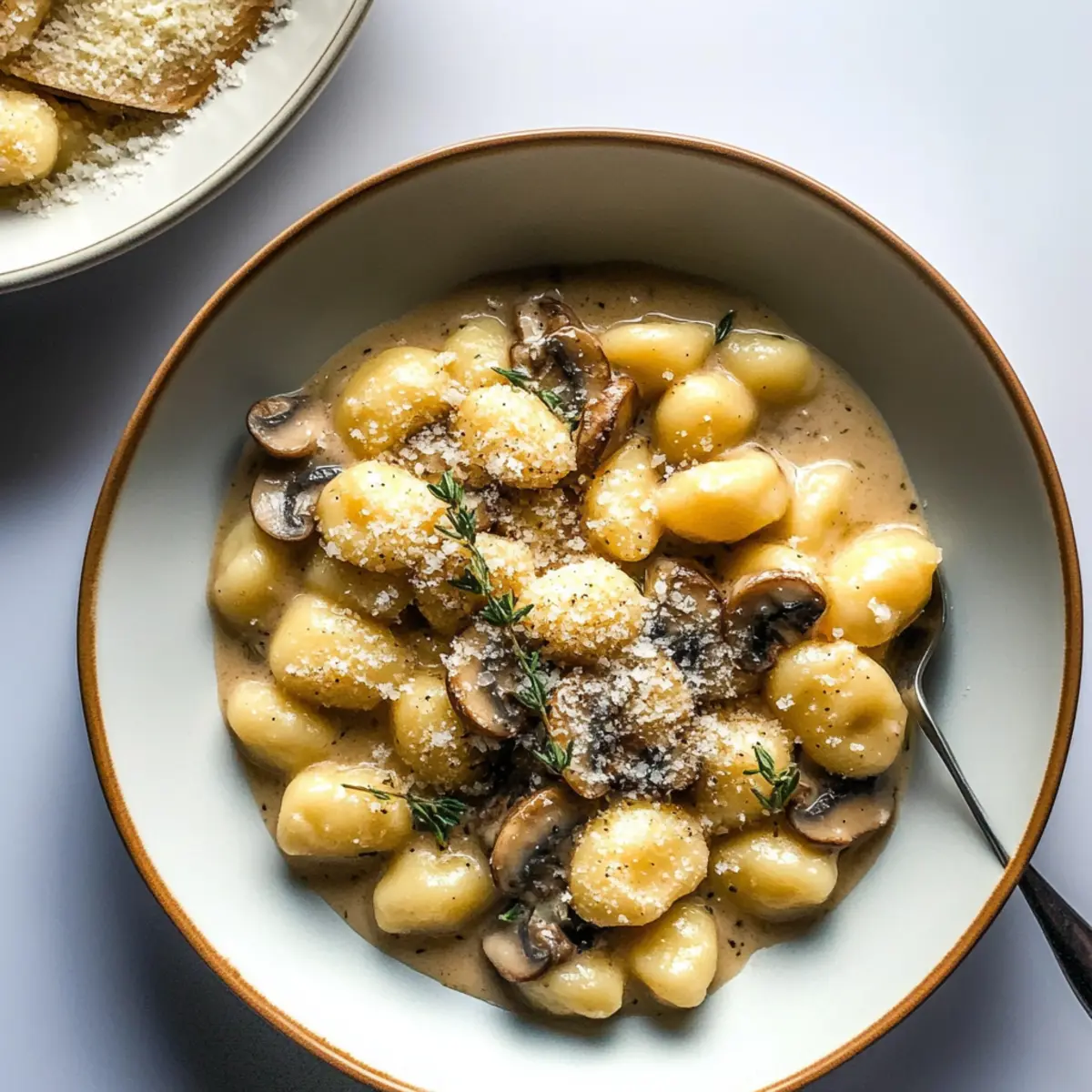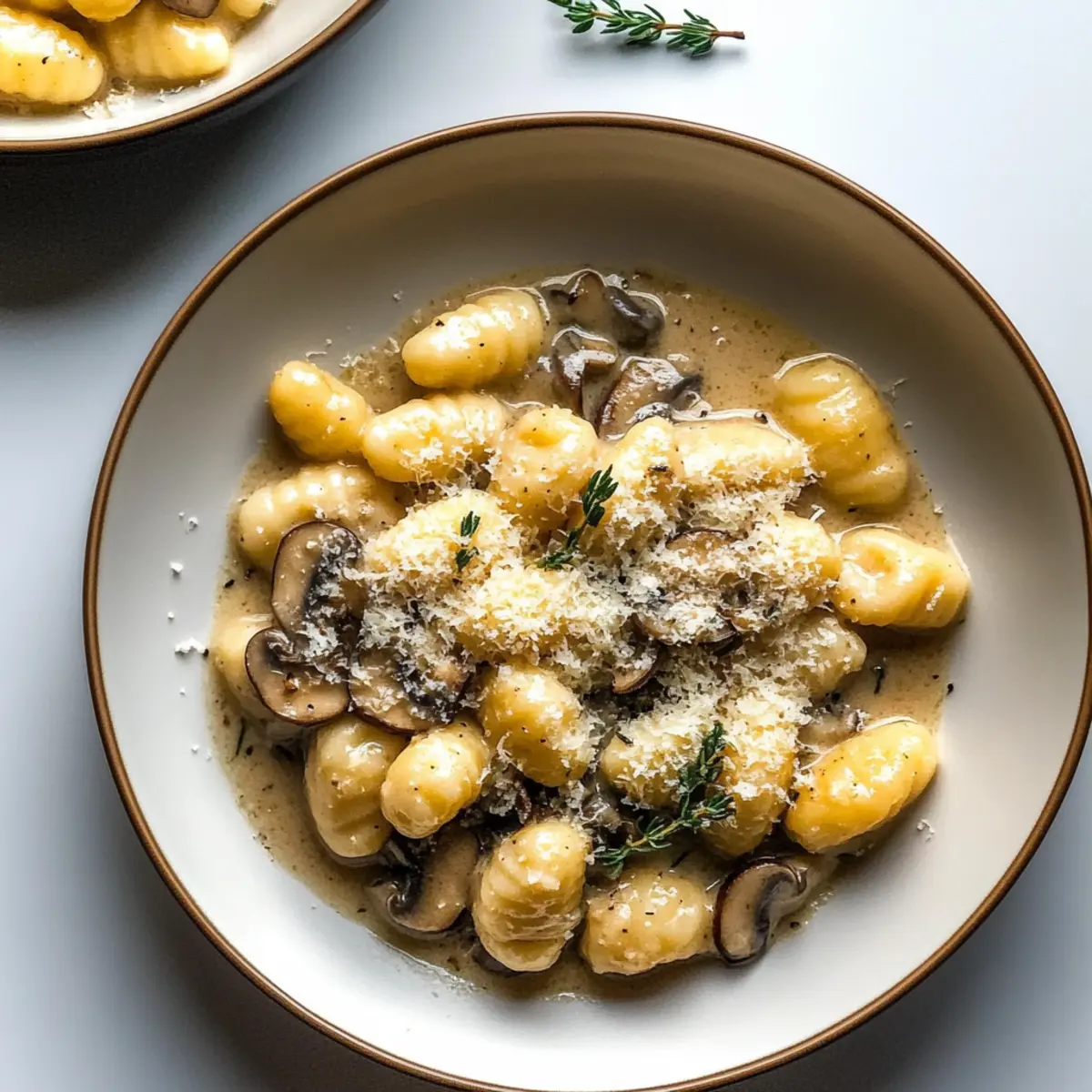 Jump to Recipe Print RecipeAs the aroma of sautéed mushrooms wafts through the kitchen, I can’t help but feel a cozy warmth fill the air—it’s time for some comforting Gnocchi with Creamy Mushroom Sauce. This dish transforms simple ingredients into an indulgent feast that’s perfect for busy weeknights or elegant dinner gatherings. With its pillowy gnocchi lovingly swirled in a silky cream sauce enhanced with fresh thyme, you’ll discover the delightful umami richness of mushrooms taking center stage. Not only is it an easy recipe that comes together in under 30 minutes, but it’s also a fantastic vegetarian choice that leaves everyone satisfied. Are you ready to elevate your dinner routine and impress your taste buds? Let’s dive into this creamy comfort food experience! Why is Gnocchi with Creamy Mushroom Sauce a must-try? Comforting Bliss: This dish brings cozy vibes, perfect for a chilly evening. Rich, Earthy Flavor: The combination of mushrooms and cream creates an umami explosion that is simply irresistible. Quick to Prepare: You can whip this up in under 30 minutes, making it ideal for weeknight dinners. Versatile Ingredients: Feel free to switch up the mushroom types or even add greens like spinach for a nutritious twist. Crowd-Pleasing Appeal: This creamy delight is sure to impress guests and satisfy everyone at the table! If you’re looking for more cozy meal ideas, check out our Creamy Turkey Stroganoff Comfort for another hit! Gnocchi with Creamy Mushroom Sauce Ingredients Elevate your cooking game with this lovely dish! For the Gnocchi Gnocchi – Choose either store-bought for convenience or make your own for that homemade touch. For the Sauce Mushrooms – Opt for oyster mushrooms or mini portobella for a robust umami flavor. Chicken or Vegetable Broth – This forms the savory base of your sauce, enhancing its depth. Heavy Cream – Adds a luscious creaminess to the sauce; light cream works in a pinch for a lighter option. Fresh Thyme – Fresh thyme infuses a beautiful aroma; if using dried, use only about one-third of the amount. Parmesan Cheese – Provides a salty, nutty flavor that thickens the sauce beautifully. Salt and Pepper – Essential seasonings to balance flavors; adjust to your preference. Optional Ingredients Cornstarch – Use in a slurry for sauce thickening if desired, helping achieve the perfect creamy texture. Indulge in this Gnocchi with Creamy Mushroom Sauce – a delightful vegetarian dish you’ll love! Step‑by‑Step Instructions for Gnocchi with Creamy Mushroom Sauce Step 1: Prepare the Sauce Base In a medium saucepan over medium heat, combine 2 cups of chicken or vegetable broth, 1 cup of heavy cream, and a handful of fresh thyme. Stir gently and bring to a simmer, allowing the mixture to bubble quietly for about 5-10 minutes. You should see steam rising and hear a soft bubbling; this is when the flavors start to meld beautifully. Step 2: Thicken the Sauce If you prefer a heartier sauce, mix 1 tablespoon of cornstarch with 2 tablespoons of cold water in a small bowl to create a slurry. Gradually add the slurry to your simmering sauce, stirring continuously until it thickens—this should take about 2-3 minutes. Meanwhile, prepare the gnocchi by boiling a pot of salted water and cooking your choice of gnocchi, fresh or frozen, until they float to the surface. Step 3: Sauté the Mushrooms In a separate skillet, heat a tablespoon of olive oil over medium-high heat. Add 8 ounces of sliced mushrooms, stirring frequently for about 5-7 minutes, until they are golden brown and tender. The mushrooms should emit a fragrant aroma and shrink in size, enhancing the umami flavor of your Gnocchi with Creamy Mushroom Sauce. Step 4: Combine Ingredients Once the mushrooms are ready, remove the thyme sprigs from the sauce and stir in ½ cup of grated Parmesan cheese. Mix until the cheese melts into the sauce, creating a rich, creamy texture. Then, gently fold in the cooked gnocchi, ensuring each piece is coated generously in that luscious sauce, which should now have a silky consistency. Step 5: Final Seasoning Taste the sauce and sprinkle in salt and fresh ground black pepper according to your preference. If the sauce seems too thick, add a splash of broth to achieve the desired consistency. You want it creamy but pourable; it should effortlessly cling to the gnocchi without being overly heavy. Step 6: Serve and Enjoy Spoon the Gnocchi with Creamy Mushroom Sauce into serving bowls and garnish with additional Parmesan cheese and freshly cracked black pepper for that perfect finishing touch. As you serve, be sure to indulge in the warmth and comfort this dish offers—it’s an inviting sight that promises a delicious meal! What to Serve with Gnocchi with Creamy Mushroom Sauce Nothing completes a comforting meal like selecting the perfect pairings to elevate your dining experience. Garlic Bread: The fluffy, buttery texture of garlic bread complements the creamy sauce beautifully, making it perfect for mopping up those delicious remnants. Simple Green Salad: A light salad with crisp lettuce, cherry tomatoes, and a lemon vinaigrette adds a refreshing contrast, balancing out the richness of the dish. Sautéed Spinach: The earthy flavor of sautéed spinach pairs wonderfully with the umami notes of the mushrooms, providing a healthy and vibrant green element. Roasted Vegetables: Roasted seasonal vegetables, like carrots or bell peppers, bring sweetness and a touch of caramelization that enhances the overall flavor profile. Herbed Rice: A fluffy, herb-infused rice can be a lovely side. Its mild flavor allows the creamy sauce to shine while adding a comforting texture. Wine Pairing: A crisp white wine, such as Sauvignon Blanc, complements the mushrooms and cream, bringing brightness to your cozy meal. Lemon Sorbet: For dessert, a refreshing lemon sorbet cleanses the palate after the rich gnocchi, leaving a light, zesty finish to your dinner experience. Make 