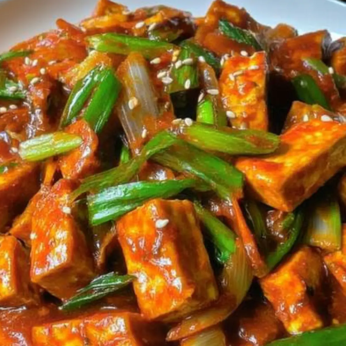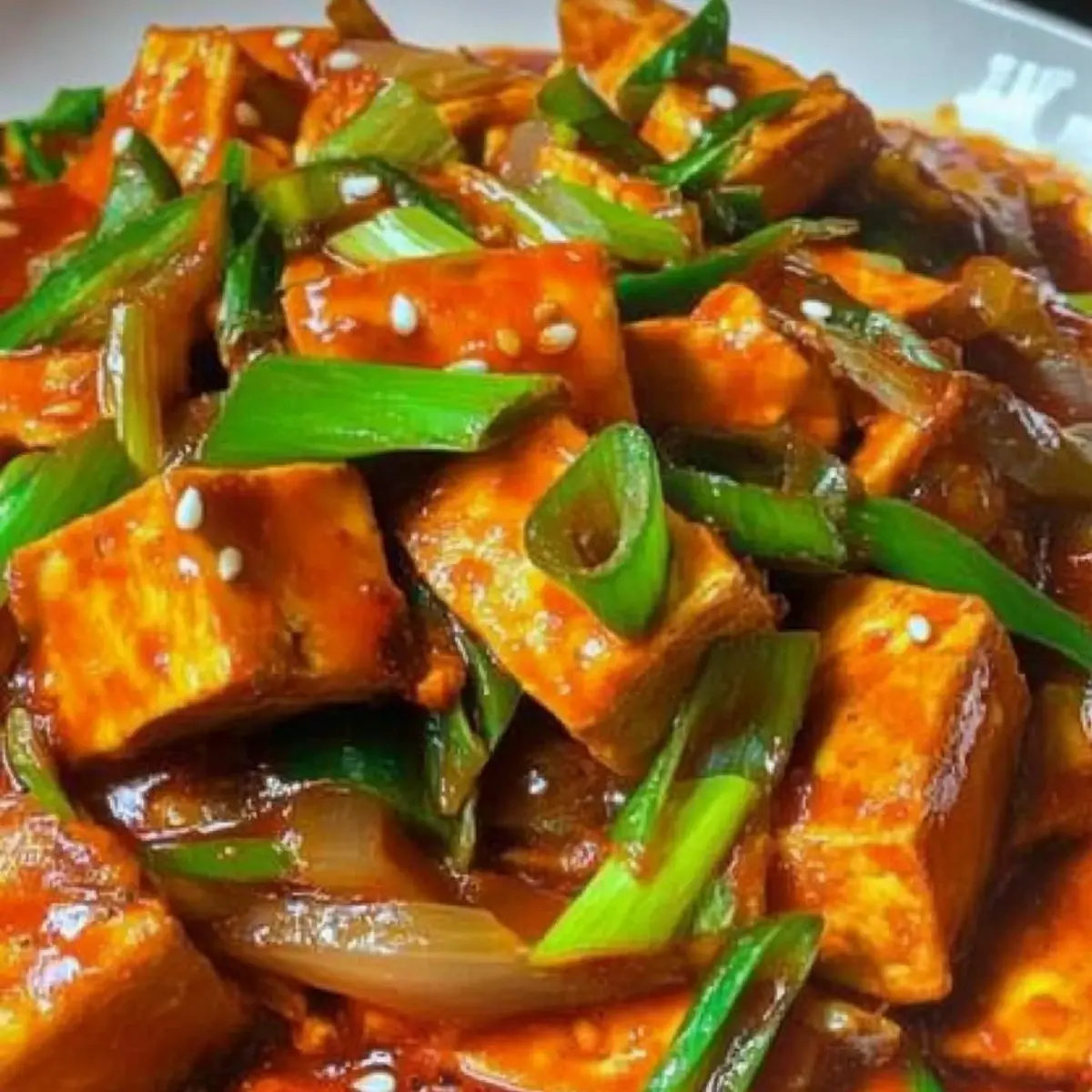 Jump to Recipe Print RecipeThe satisfying sizzle of crispy tofu hitting a hot pan always brings a smile to my face. Just when I thought weeknight dinners couldn’t get any better, I discovered this Spicy Gochujang Tofu Stir-Fry. This vegan and gluten-free dish combines bold flavors that tantalize your taste buds while being incredibly easy to whip up in no time. Imagine sinking your fork into bite-sized pieces of golden-brown tofu coated in a spicy-sweet sauce that dances on your palate, all while you revel in the simple pleasure of cooking at home. With just a few ingredients and minimal prep, this meal transforms a busy evening into a flavorful adventure. Give your taste buds a treat tonight—are you ready to dive into a bowl of deliciousness? Why is Gochujang Tofu a Must-Try? Unforgettable Flavor: The unique combination of spicy gochujang and sweet tomato ketchup creates a mouthwatering glaze that keeps you coming back for more. Quick and Easy: Perfect for a busy weeknight, this recipe can be prepared in under 30 minutes, making it an ideal choice for anyone craving homemade goodness without the hassle. Vegan and Gluten-Free: Enjoy this dish guilt-free, knowing it’s not only plant-based but also gluten-free, ensuring everyone can enjoy it without any dietary worries. Endless Customization: Feel free to get creative! Swap in your favorite vegetables or add extra protein like tempeh or seitan for a personalized twist. Crispy Perfection: The tofu’s delightful crunch, paired with that rich sauce, offers an irresistible mix of textures that elevates every bite. Crowd-Pleasing Dish: Whether it’s a family dinner or a gathering with friends, this gochujang tofu stir-fry is sure to impress, making it a fantastic addition to your recipe collection. Gochujang Tofu Ingredients For the Tofu • Extra Firm Tofu – Pressed to remove excess water, ensuring it becomes wonderfully crispy when cooked. • Neutral Oil – Essential for frying; any cooking oil will work well. For the Gochujang Sauce • Gochujang – Korean chili paste that provides a spicy depth; use less for a milder flavor. • Tomato Ketchup – Adds a hint of sweetness and acidity; can be swapped for Sriracha for an extra kick. • Water – Adjusts sauce consistency; consider vegetable broth for added flavor. • Sesame Oil – Offers a nutty aroma; sunflower or canola oil can also be used. • Sugar – Balances the spiciness; adjust based on your preference for sweetness. • Rice Vinegar – Adds a tangy acidity; do not substitute with other types of vinegar, as it alters the flavor. • Soy Sauce – Enhances umami; tamari is a great gluten-free alternative. • Corn Starch – Thickens the sauce; can be omitted for a starch-free version. For Aromatics and Garnish • Garlic – Provides depth of flavor; avoid if sensitive or allergic. • White Onion & Green Onions – Crucial for aromatics and garnish; shallots can be used as a substitute. • Fresh Mushrooms – Adds umami to the dish; can be replaced with seasonal mushrooms or omitted. • Sesame Seeds – Optional, but they add delightful crunch and a traditional touch. This Gochujang Tofu dish is not just a recipe; it’s a vibrant and satisfying meal that brings the essence of Korean cooking into your home! Step‑by‑Step Instructions for Gochujang Tofu Step 1: Prepare Tofu Start by pressing your extra firm tofu to remove excess moisture, allowing it to crisp up beautifully. Cut the tofu into bite-sized cubes and heat 2 tablespoons of neutral oil in a large pan over medium-high heat. Once the oil is shimmering, add the tofu and cook for about 8-10 minutes, flipping occasionally, until golden brown and crispy on all sides. Step 2: Mix Sauce In a medium mixing bowl, combine the gochujang, tomato ketchup, water, sesame oil, sugar, sesame seeds, rice vinegar, soy sauce, and corn starch. Whisk until the mixture is smooth and well blended. Taste the sauce and adjust the sweetness or spiciness according to your preference, as this sauce will coat the crispy tofu later, enhancing the gochujang tofu experience. Step 3: Sauté Aromatics In the same pan used for the tofu, reduce the heat to medium and add a splash of neutral oil if needed. Once hot, toss in the chopped white onion and minced garlic. Sauté for about 2-3 minutes, stirring frequently, until the onions are translucent and fragrant, creating a savory base for your gochujang tofu dish. Step 4: Cook Mushrooms Next, add the sliced fresh mushrooms to the pan with the sautéed onions and garlic. Stir them well and allow them to cook for 3-4 minutes until they become tender and slightly browned. This step enhances the umami flavor in your gochujang tofu stir-fry, making it even more irresistible. Step 5: Combine Once the mushrooms are ready, carefully add the crispy tofu into the pan along with the prepared sauce. Gently stir everything together, ensuring the tofu is well coated. Cook for an additional 1-2 minutes over medium heat until the sauce thickens slightly, creating a luscious glaze that envelops the tofu. Step 6: Serve At last, remove the pan from heat and transfer your hot gochujang tofu to a serving dish. Garnish with freshly sliced green onions and a sprinkle of sesame seeds for added texture and flavor. Serve immediately over steamed jasmine rice or noodles, making sure to enjoy every crunchy, spicy bite! Expert Tips for Gochujang Tofu Press the Tofu: Ensure the tofu is pressed adequately to remove moisture; soggy tofu won’t crisp up nicely in the pan. Taste the Sauce: Always taste your gochujang sauce before using it; this helps you adjust sweetness and spice to your personal preference. Don’t Overcrowd the Pan: When frying tofu, avoid overcrowding the pan to ensure even cooking and prevent steaming, which can make it soggy. Adjust the Heat: If your gochujang is too spicy, balance it out by adding more sugar or tomato ketchup to customize the flavor to your liking. Garnish Generously: Finish with 