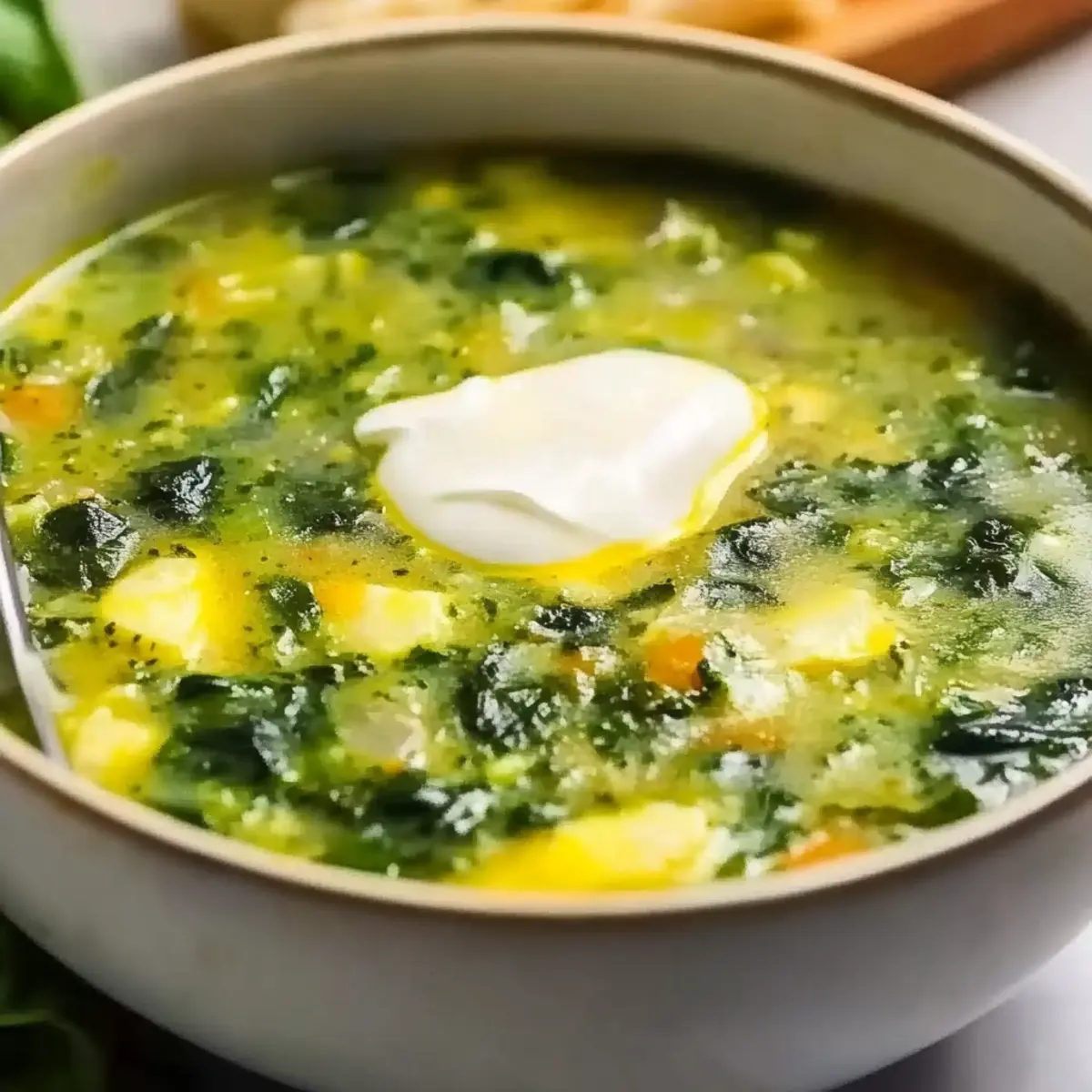 Jump to Recipe Print RecipeAs I stirred the pot, the vibrant greens began to swirl into a delightful medley, wrapping me in the comforting embrace of my kitchen. This Ukrainian Green Borscht (Ukrainian Spinach Soup) is a luscious, healthful dish that not only warms your soul but also showcases the beauty of seasonal ingredients. In just 30 minutes, you’ll create a delightful meal that is perfect for lazy weekends or busy weekdays. Plus, it’s vegetarian-friendly, making it a great choice for those looking to embrace lighter fare without sacrificing flavor. Each spoonful offers a refreshing twist from the lemon juice, a tangy surprise that elevates even the simplest of dinners. Curious how this vibrant soup can transform your meal routine? Let’s dive in! Why is Green Borscht a Must-Try? Vibrant Colors: This Ukrainian Spinach Soup not only looks appealing, but its vivid green hue brightens up any table, making it a feast for the eyes. Healthful Ingredients: Packed with nutrient-rich vegetables like spinach and potatoes, it’s a nutritious option for anyone seeking guilt-free comfort food. Quick Preparation: Ready in just 30 minutes, this recipe is perfect for those busy days when you crave something wholesome yet easy to make. Versatile Flavors: Feel free to customize this soup! Use sorrel for a traditional touch or add shredded chicken for extra heartiness — the possibilities are endless. Crowd-Pleasing Comfort: Whether it’s a cozy family dinner or a casual gathering, this soup is sure to impress. Serve it warm with crusty bread for a complete meal. For more delightful soups, check out my Borscht Soulful Cozy recipe! Green Borscht Ingredients • Create your own delightful Ukrainian Spinach Soup with these fresh ingredients! For the Soup 64 oz chicken or vegetable broth – This is the base of your soup, adding rich flavor; for a deeper taste, try homemade broth. 3 tablespoons olive oil – Essential for sautéing vegetables, though you can swap it with any mild cooking oil. 1 medium onion, minced – This brings sweetness and aroma; shallots work well as a milder substitute. 1 medium carrot, grated – Adds natural sweetness and texture; parsnip makes a great alternative. 3 large potatoes, cubed – These give body to the soup; replace them with cauliflower for a low-carb option. 4 cups spinach, chopped – The star green, packed with nutrition and lovely color; you can use sorrel for traditional flavor, or lemon juice for a zesty touch. 1 zucchini, cubed – Adds mild flavor and extra nutrients; any summer squash will do. 3 tablespoons lemon juice – Provides essential acidity for balancing flavors; lime juice offers a different citrus punch. 4 hard-boiled eggs, cubed – Contributes protein and creaminess; simply omit for a vegan variation. ½ cup parsley or dill, chopped – Infuses fresh herbal notes; chives or cilantro can also be lovely substitutes. Salt and pepper, to taste – Essential for seasoning your delicious Green Borscht. Sour cream, for serving – Introduces creaminess; vegan sour cream or yogurt can be utilized for those needing a dairy-free option. Step‑by‑Step Instructions for Green Borscht (Ukrainian Spinach Soup) Step 1: Boil the Broth and Potatoes In a large pot or Dutch oven, pour in 64 ounces of chicken or vegetable broth and bring it to a rolling boil over medium-high heat. Once boiling, add the cubed potatoes and reduce the heat to medium-low. Allow them to simmer gently for about 15 minutes, or until they are fork-tender and start to break apart slightly. Step 2: Sauté the Aromatics While the potatoes are cooking, heat 3 tablespoons of olive oil in a non-stick skillet over medium heat. Add the minced onion and grated carrot, stirring frequently for about 10 minutes. Cook until they soften and the onion becomes translucent, releasing a fragrant aroma that fills your kitchen, enhancing the overall flavor of the Green Borscht. Step 3: Combine Vegetables in the Pot Carefully transfer the sautéed onion and carrot mixture into the pot with the simmering potatoes. Add the cubed zucchini and chopped spinach to the mix, stirring everything together. Cook for an additional 5-7 minutes, letting the spinach wilt and the flavors meld together, resulting in a beautifully vibrant Green Borscht. Step 4: Season and Add Acidity Once the vegetables are cooked and tender, season your soup with salt and pepper to taste. Pour in 3 tablespoons of lemon juice, mixing well to balance the flavors. Gently fold in the cubed hard-boiled eggs to integrate them throughout the soup, adding both protein and rich creaminess. Step 5: Serve and Garnish Remove the pot from heat and ladle the Green Borscht into warm bowls. Top each serving with a generous dollop of sour cream, allowing it to melt slightly into the hot soup. Garnish with freshly chopped parsley or dill, providing a pop of color and an enticing aroma that will invite everyone to the table. Green Borscht Variations & Substitutions Dive into creativity and make this lovely Ukrainian Spinach Soup uniquely yours without compromising its delightful essence! Sorrel Swap: Use fresh sorrel instead of spinach for an authentic and tangy twist. This classic substitute adds a vibrant flavor that truly shines in traditional recipes. Heartier Addition: For a more filling option, include shredded cooked chicken. It will introduce a savory depth and satisfy the heartiest of appetites while still keeping the vegetarian base intact if you prefer. Herb Variety: Substitute parsley or dill with fresh tarragon or thyme for an aromatic flare. These herbs impart warm, fragrant notes that can make your borscht even cozier. Potato Alternative: Replace potatoes with cauliflower for a low-carb twist. This swap maintains the soup’s creamy texture while keeping it lighter, perfect for those watching their carbs. Zucchini Variation: Feel free to use other seasonal summer squashes in place of zucchini. Different varieties like yellow squash off
