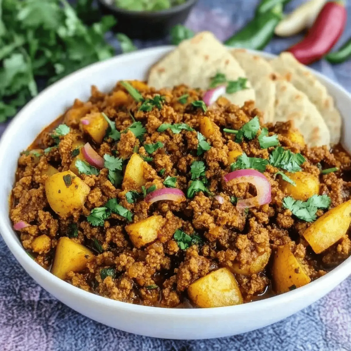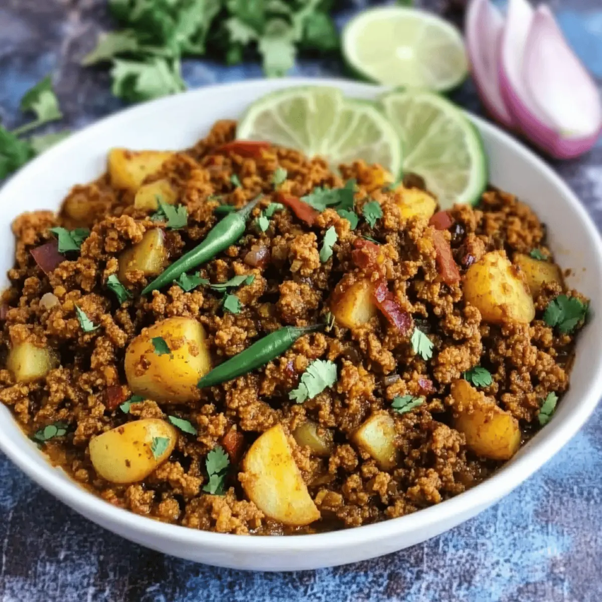 Jump to Recipe Print RecipeAs the aroma of spices wafts through the air, I can’t help but be transported to my grandmother’s kitchen, where Aloo Keema simmered on the stovetop, filling our home with warmth and comfort. This ground beef and potato curry is not just a recipe; it’s a cherished memory that brings family together. Packed with flavors that meld beautifully, this one-pot wonder is perfect for those busy weeknights when you crave something hearty yet easy. You’ll love how swiftly it comes together, making it a go-to for any home chef looking to impress without the fuss. And whether served over fragrant basmati rice or tucked into warm roti, this dish will surely satisfy every member of your family. Are you ready to recreate this comforting classic and make your kitchen come alive? Why Is This Ground Beef And Potato Curry Perfect? Comforting Nostalgia: The rich aroma and flavors will take you back to simpler times, just like my grandmother’s kitchen. One-Pot Wonder: Save time on cleanup! This easy recipe allows you to prepare a hearty meal without multiple dishes. Versatile Recipe: With options to swap ground beef for chicken, turkey, or even lentils, there’s something for everyone. Freezer-Friendly: Make a larger batch and store portions in the freezer for those busy weeknights! Family Favorite: This dish is sure to please even the pickiest of eaters. Pair it with warm roti or basmati rice for a complete meal that everyone will love. Ground Beef And Potato Curry Ingredients For the Curry • Ground Beef – The star of the dish, providing flavor and heartiness; can also be substituted with mutton, turkey, or chicken for variety. • Onion – Adds sweetness and depth; finely diced ensures even cooking. • Tomatoes – Forms the sauce’s base; ripe tomatoes yield the best flavor. • Cooking Oil – Essential for sautéing; any neutral oil like canola or vegetable works well. • Ginger – Offers warmth and aroma; freshly minced is highly recommended. • Garlic – Elevates the overall taste; freshly minced is best for impact. • Black Cardamom, Black Peppercorns, Cloves – Whole spices that release complex flavors; add early to deepen the aroma. • Red Chili Powder – Introduces heat; adjust to your spice preference for the perfect kick. • Salt – Crucial for seasoning; adjust according to taste. • Coriander Powder – Adds an earthiness that complements the dish. • Cumin Powder – Infuses warmth and is key for traditional flavor. • Turmeric Powder – Enhances color and offers subtle flavor; also boasts health benefits. • Potatoes – Provides bulk and texture; cut into 2 cm cubes for even cooking. For Garnish • Garam Masala – A flavor booster added at the end for a delicious finish. • Green Chilies – Slice for an extra punch of heat, if desired. • Fresh Coriander – Offers a refreshing pop of color and flavor. • Sliced Ginger – Use as an aromatic garnish to impress. With these ingredients, your ground beef and potato curry will surely delight every palate at the table. Enjoy crafting this comforting dish that’s perfect for any night of the week! Step‑by‑Step Instructions for Ground Beef And Potato Curry Step 1: Heat the Oil In a large pot or deep skillet, heat 3 tablespoons of cooking oil over medium heat. Once the oil shimmers, add 1 finely diced onion, sautéing for about 5 minutes until it turns light golden and fragrant. If the onion starts to brown too quickly, add a splash of water to keep it from burning and ensure a sweet flavor base for your ground beef and potato curry. Step 2: Add Whole Spices Next, introduce 2 whole black cardamom pods, 8-10 black peppercorns, and about 3 cloves to the onions. Stir them in and let them sizzle for 1 minute until the spices release their wonderful aromas. This step is crucial for infusing your ground beef and potato curry with deep, complex flavors right at the beginning. Step 3: Incorporate Tomatoes and Spices Now, add 2 ripe chopped tomatoes along with 1 tablespoon of freshly minced ginger and 1 tablespoon of minced garlic. Sprinkle in 1 teaspoon of red chili powder, 1 teaspoon of turmeric powder, 1 teaspoon of cumin powder, 1 teaspoon of coriander powder, and salt to taste. Stir thoroughly, covering the pot, and allow the tomatoes to break down for about 5 minutes or until saucy. Step 4: Cook the Ground Beef Once the tomatoes are soft, add 500 grams of ground beef to the pot. Mash the meat using a spatula, breaking it into smaller pieces, and mix it into the spice-tomato mixture. Pour in ¼ cup of water and let it simmer on medium-low heat for about 15 minutes, stirring occasionally until the beef is cooked through and infused with the rich flavors of the spices. Step 5: Evaporate Excess Moisture After simmering, remove the lid and allow the curry to cook uncovered for another 5 minutes. During this time, keep an eye on the moisture level. The goal is to evaporate some excess liquid, intensifying the flavors and creating a beautifully thick curry base for your ground beef and potato curry. Step 6: Add Potatoes Now, add 2 cups of 2 cm cubed potatoes into the pot, stirring them into the rich beef mixture. Pour in an additional ¼ cup of water to help steam the potatoes. Cover the pot with a lid and let everything cook on low heat for about 15-20 minutes, or until the potatoes are tender and easily pierced with a fork. Step 7: Adjust for Moisture Once the potatoes are tender, you can adjust the moisture level to your liking. If it looks too dry for your taste, add a little more water. Finally, stir in 1 teaspoon of garam masala and simmer on low for an additional 3-4 minutes to enrich the flavor profile of the ground beef and potato curry. Step 8: Garnish and Serve Before serving, take a moment to garnish your beautiful dish. Scatter fresh coriander, sliced green chilies, and a few slices of ginger on top. Cover the pot for a couple of minutes to allow the garnishes to infuse their