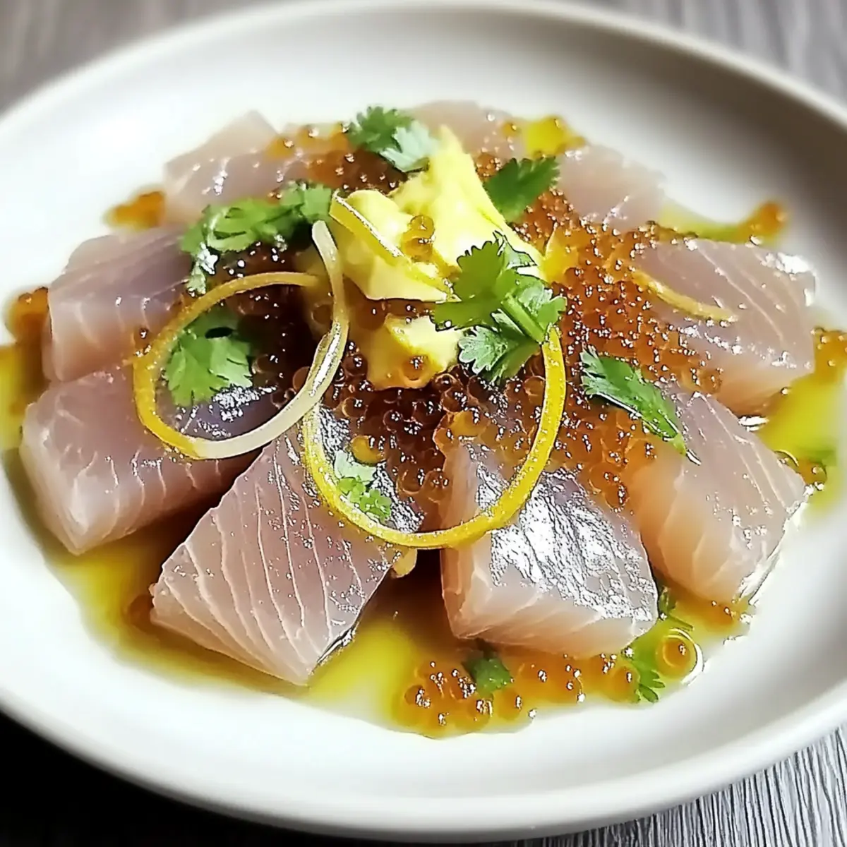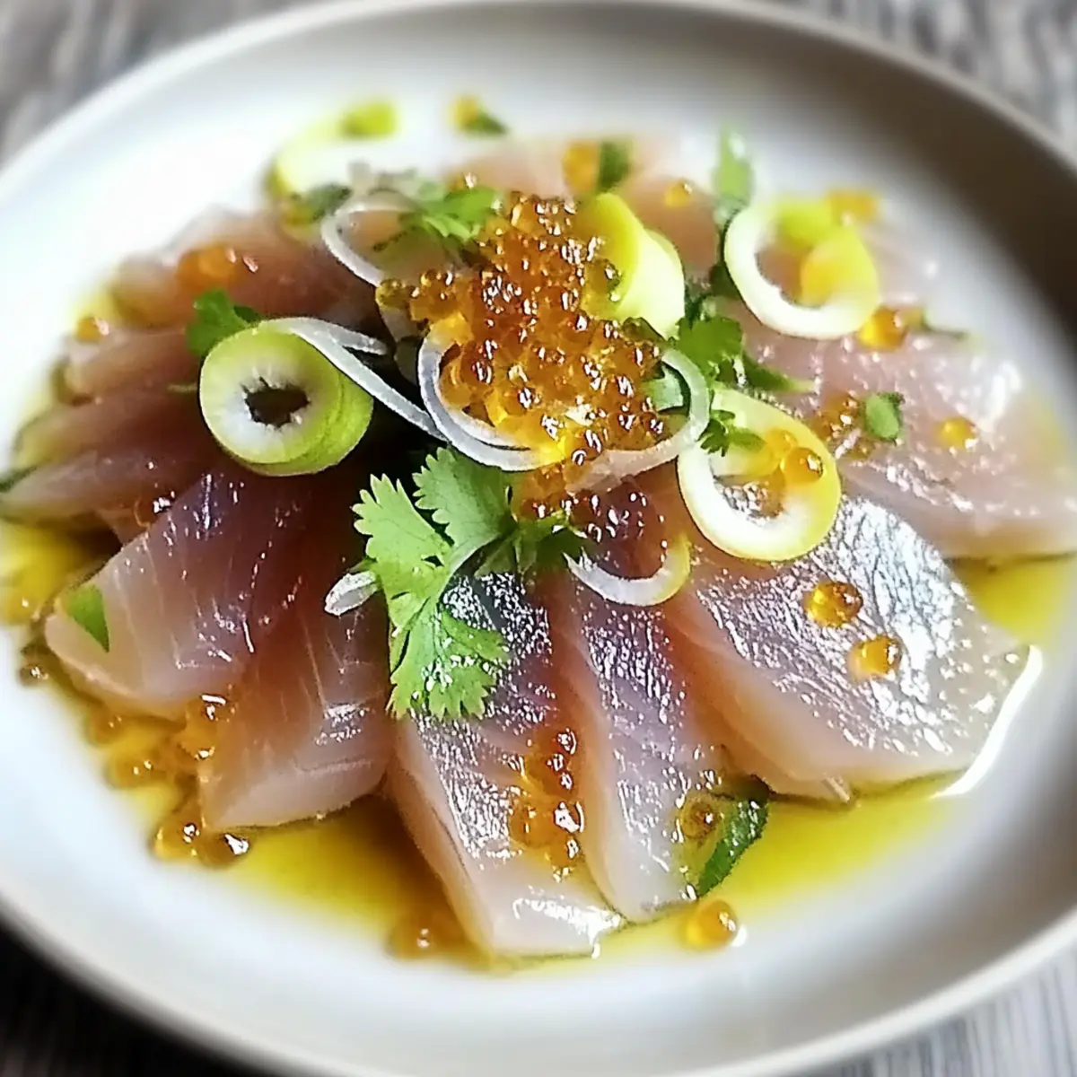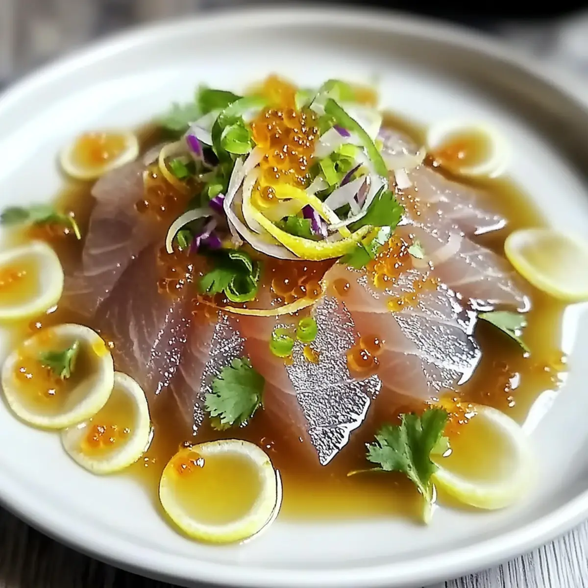 Jump to Recipe Print RecipeAs I stood in my kitchen, the scent of yuzu whisked me away to a sun-drenched Tokyo market, where vibrant flavors dance in the air. That’s the magic of Hamachi Crudo with Yuzu Ponzu Sauce. This elegant dish captures the essence of culinary artistry, showcasing silky slices of sushi-grade hamachi and a lively, zesty sauce that elevates the dining experience. It’s a healthy, low-carb masterpiece that not only pleases the palate but also requires minimal effort—a perfect way to impress friends or revitalize your own dinner routine. Whether it’s a casual gathering or a festive celebration, this refreshing starter will leave everyone wanting more. Are you ready to indulge in a taste of fusion cuisine that’s as delightful to make as it is to savor? Why is Hamachi Crudo a Game-Changer? Freshness First: The use of sushi-grade hamachi guarantees a melt-in-your-mouth experience that’s simply unmatched. Zesty Fusion: The vibrant yuzu ponzu sauce elevates this dish, offering a tangy kick that perfectly complements the rich fish. Effortless Elegance: Impress your guests without hours in the kitchen—this recipe is quick and easy yet visually stunning. Health Boost: Low-carb and omega-3 rich, it’s a dish that nourishes while delighting the senses. Versatile Appeal: Enjoy it as an appetizer or light meal; this crowd-pleaser suits any occasion. For more ideas on elevating your culinary repertoire, check out our tips on making homemade sauces and fresh garnishes! Hamachi Crudo Ingredients • Get ready to dive into a flavorful experience! For the Hamachi Sushi-Grade Yellowtail Hamachi – Essential for that silky texture; always opt for the freshest catch. Medium Shallot – Adds a mild, sweet onion flavor; green onions can be a tasty substitute. Medium Serrano Pepper – Delivers a spicy kick; adjust amounts based on your spice preference, or swap for sweet bell peppers for a milder take. Fresh Cilantro – Perfect for garnish; it brings a refreshing herbal note. Lemon Zest – Enhances the dish’s bright flavors and aromas. For the Yuzu Ponzu Sauce Yuzu Juice – The star of the sauce; if yuzu is hard to find, lemon juice makes a great alternative. Ponzu Sauce – Use store-bought or homemade as the flavor base; it’s crucial for depth. Filtered Water – Helps balance the sauce; adjust to your taste preference. Sugar – A touch of sweetness to round out the flavors. Sesame Oil – Adds rich depth; use sparingly for the right balance. Garlic – Smashed to infuse flavor into the ponzu sauce. Rice Vinegar – Adds acidity; adjust to taste for a nice lift. Flaky Salt – The finishing touch that enhances all components of the dish. This Hamachi Crudo is not just a treat for the senses; it’s a vibrant ode to fusion cuisine that you won’t want to miss. Step‑by‑Step Instructions for Hamachi Crudo Step 1: Prepare Yuzu Ponzu Sauce In a medium bowl, whisk together 2 tablespoons of yuzu juice, 4 tablespoons of ponzu sauce, 2 tablespoons of filtered water, 1 teaspoon of sugar, 1 teaspoon of sesame oil, and 1 smashed garlic clove. Mix until the sugar is dissolved and all ingredients are well combined. Set your yuzu ponzu sauce aside to allow the flavors to meld while you slice the hamachi. Step 2: Slice Hamachi Using a sharp, long knife, carefully slice the sushi-grade yellowtail hamachi into thin pieces, aiming for about ¼ inch thick. Ensure each slice is uniform for an appealing presentation. Arrange the delicate hamachi slices neatly on a large, chilled plate. The glistening fish will make your Hamachi Crudo visually enticing. Step 3: Dress Fish Drizzle the prepared yuzu ponzu sauce evenly over the arranged hamachi slices. Aim for a light coating that brings out the flavors of the fish without overpowering it. You want to see a glistening sheen on the hamachi, enhancing its luxurious look while allowing the sauce to soak in slightly for maximum flavor. Step 4: Garnish Sprinkle finely sliced shallots, fresh cilantro leaves, and thinly sliced serrano pepper on top of the hamachi. Add a touch of lemon zest and finish with a sprinkle of flaky salt. This vibrant array of toppings not only enhances the flavor but also adds a beautiful contrast of colors to your Hamachi Crudo. Step 5: Serve Immediately Present the dish right away to ensure the hamachi retains its silky texture. Serve with extra yuzu ponzu sauce on the side for those who prefer a bolder flavor. Enjoy this stunning Hamachi Crudo as a refreshing appetizer that brings a taste of fusion cuisine right to your table. Storage Tips for Hamachi Crudo Fridge: Store leftover hamachi crudo in an airtight container for up to 2 days, ensuring it’s tightly sealed to maintain freshness. Yuzu Ponzu Sauce: The sauce can be prepared and stored in the fridge, within an airtight container, for up to a week. Shake well before use. Room Temperature: Avoid leaving the hamachi crudo at room temperature for more than 1 hour to ensure food safety and quality. Reheating: This dish is best enjoyed cold; do not reheat the hamachi, as it can compromise its delicate texture and flavor. Enjoy the freshness of your Hamachi Crudo straight from the fridge! What to Serve with Hamachi Crudo? Elevate your dining experience with delightful pairings that beautifully enhance the freshness of your crudo. Crispy Rice Cakes: Light and crunchy, these add a satisfying texture to the silky hamachi while complementing its flavors beautifully. Cucumber Salad: Refreshing and crisp, a simple cucumber salad dressed with rice vinegar and sesame oil brightens up your meal, making it even lighter. Grilled Asparagus: Charred and smoky, grilled asparagus adds a delightful contrast to the delicate dish, enhancing its overall freshness and vibrancy. Edamame Hummus: Creamy and nutty, this unique dip provides a rich contrast to the zesty notes of the hamachi while keeping your meal beautifully balanced. Chilled Sake: A delicate pairing, chilled sake’s smo