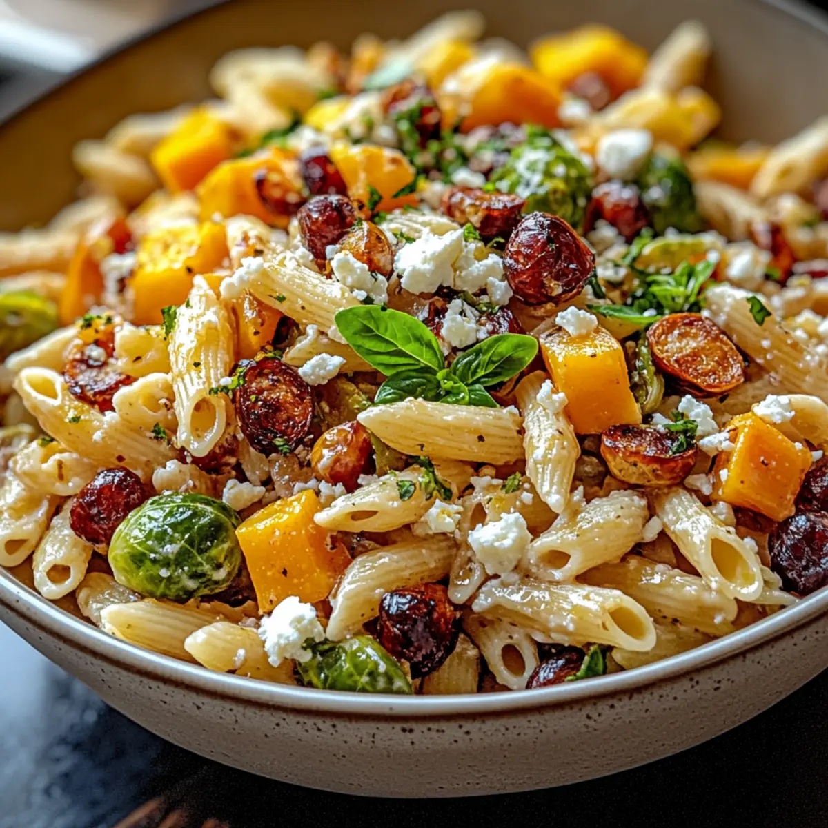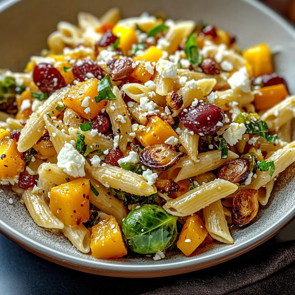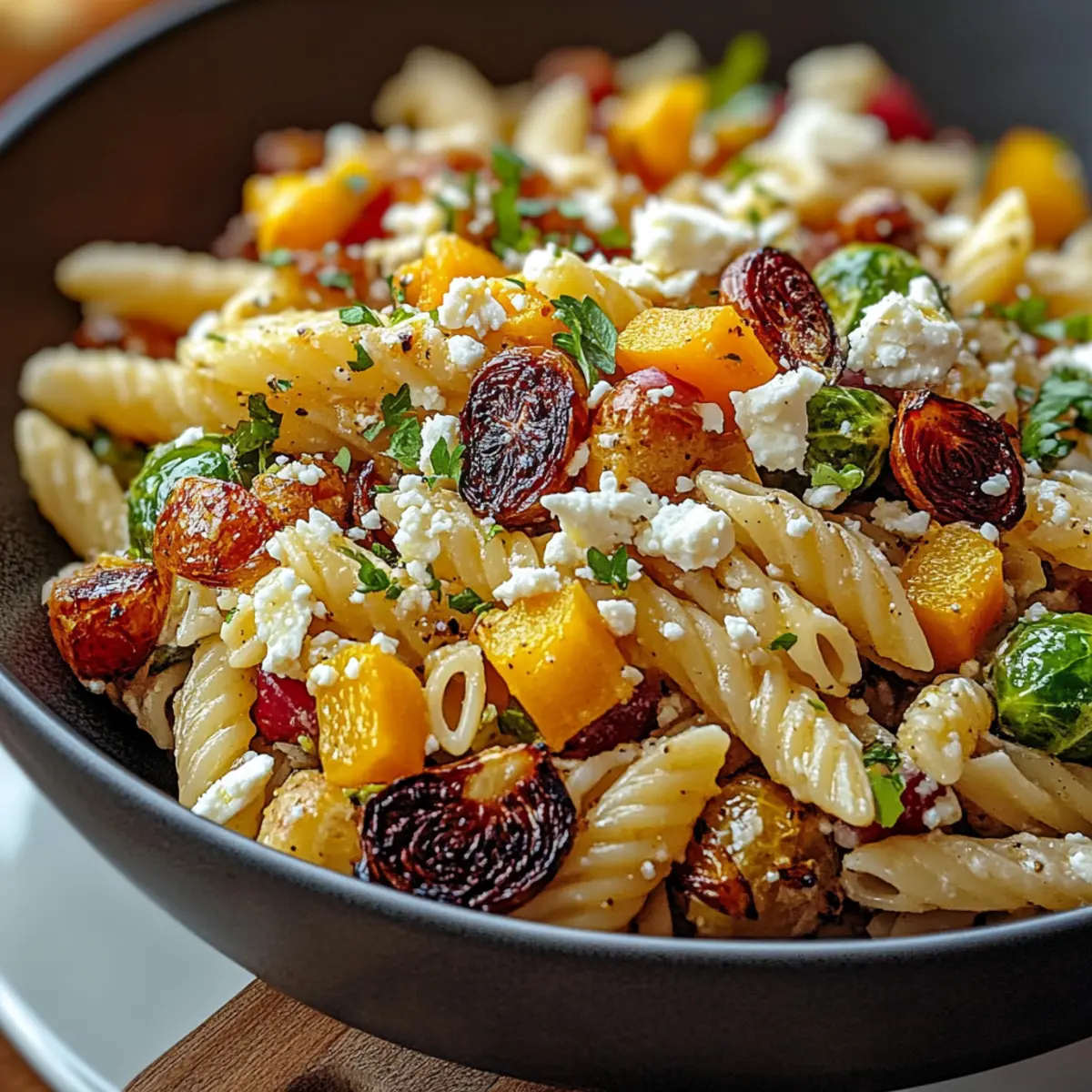 Jump to Recipe Print RecipeThe aroma of roasted vegetables fills my kitchen, a comforting reminder that autumn is truly here. This Harvest Pasta Salad is my favorite way to celebrate seasonal flavors, combining tender butternut squash and Brussels sprouts with a delightful touch of sweet cranberries. In just a matter of minutes, you can whip up this vibrant, vegetarian dish that not only brings color to your table but also warms the heart. It’s perfect for family gatherings or simply as a cozy lunch option, allowing you to enjoy nutritious ingredients without breaking a sweat in the kitchen. Ready to dive into this delicious fall recipe and create a dish that beckons everyone to the table? Let’s get started! Why is Harvest Pasta Salad a must-try? Comforting Flavors: Each bite of this salad offers a warm embrace of fall with the earthy sweetness of roasted butternut squash and Brussels sprouts. Quick Preparation: Whip up a satisfying meal in just 30 minutes, perfect for busy weeknights or impromptu gatherings. Nutritious Ingredients: Packed with vitamins from fresh vegetables and wholesome pasta, this dish fuels your body while comforting your soul. Versatile Dish: Customize it easily—swap in your favorite greens or add a protein like grilled chicken or chickpeas for a heartier option. Stunning Presentation: The vibrant colors make it a feast for the eyes, making it ideal for festive occasions or a casual family dinner. Pair it with a refreshing Tomato Salad Refreshing for a complete meal that gets everyone excited to eat! Harvest Pasta Salad Ingredients For the Pasta Short Pasta – Use rotini or penne to create a nice texture that holds onto the dressing. For the Vegetables Butternut Squash – Adds natural sweetness and a hearty texture; sweet potatoes are a great substitute for a different twist. Brussels Sprouts – Provides a nutty flavor and a nice crunch; green beans can be swapped in if needed. For the Sweetness Dried Cranberries – Imparts a lovely tartness that balances the savory elements; raisins or chopped apples work well as tasty alternatives. For the Greens Spinach or Mixed Greens – Offers freshness and a pop of color; arugula will add a unique peppery kick if you’re feeling adventurous. For the Creaminess Feta Cheese – Introduces a creamy depth to the dish; feel free to omit for a vegan option or swap with dairy-free cheese. For the Dressing Balsamic Vinaigrette – Enhances flavors with its tangy brightness; you can use store-bought or make your own for a personal touch. Get ready to savor this delightful Harvest Pasta Salad—your taste buds will thank you! Step‑by‑Step Instructions for Harvest Pasta Salad Step 1: Preheat and Prepare Vegetables Begin by preheating your oven to 400°F (200°C). While the oven warms up, peel and chop the butternut squash into bite-sized cubes and trim the ends of the Brussels sprouts, slicing them in half lengthwise. Toss the prepared vegetables in a mixing bowl with olive oil, salt, and pepper until well-coated, ensuring every piece glistens, ready for roasting. Step 2: Roast Vegetables Spread the butternut squash and Brussels sprouts evenly on a baking sheet in a single layer for optimal roasting. Place them in the preheated oven and roast for 25-30 minutes, turning halfway through until they become tender and caramelized, with a golden-brown hue that signals they are ready to elevate your Harvest Pasta Salad. Step 3: Cook Pasta As the vegetables roast, bring a large pot of salted water to a boil on the stove. Add your choice of short pasta, such as rotini or penne, and cook according to the package instructions, usually 8-10 minutes, until al dente. Once cooked, drain the pasta well, then return it to the pot to keep warm while the roasted vegetables finish cooking. Step 4: Combine Ingredients In a large mixing bowl, combine the cooked pasta, roasted butternut squash, and Brussels sprouts, along with a generous handful of dried cranberries and fresh spinach or mixed greens. If you’re using feta cheese, crumble it over the top. Gently mix everything together until the vibrant ingredients are well-distributed and the salad feels invitingly colorful. Step 5: Dress the Salad Drizzle the assembled Harvest Pasta Salad generously with balsamic vinaigrette to enhance the flavors. Toss the salad gently to ensure every ingredient is coated with the tangy dressing, adjusting the seasoning with a little more salt or pepper if needed. The vinaigrette will bring out the sweetness of the roasted vegetables and the tartness of the cranberries, creating a harmonious taste. Step 6: Serve and Enjoy You can serve your Harvest Pasta Salad warm or chilled, depending on your preference. Transfer it to a beautiful serving dish or individual bowls, and feel free to garnish with a little extra vinaigrette or a sprinkle of fresh herbs if desired. This delightful and nourishing dish is now ready to impress family and friends at your next gathering! Expert Tips for Harvest Pasta Salad Even Cuts: Ensure all vegetables are cut evenly for uniform roasting to achieve the perfect caramelization and prevent undercooked bites. Cooling Time: Allow roasted veggies to cool slightly before mixing them with greens to avoid wilting and maintain a fresh look. Flavor Boost: For added depth, sprinkle fresh herbs like thyme or rosemary over your finished Harvest Pasta Salad for a beautiful aroma. Dressing Timing: Add balsamic vinaigrette just before serving to keep the greens crisp and the dish vibrant, ensuring maximum flavor freshness. Texture Variety: Consider including toasted nuts or seeds for added crunch that complements the tender pasta and roasted veggies. Harvest Pasta Salad Customization Ideas Feel free to make this Harvest Pasta Salad your own by experimenting with different flavors and ingredients! Sweet Potato Swap: Replace butternut squash with roasted sweet potatoes for a sweeter taste and a delightful twist. It adds a bit more richness and pair