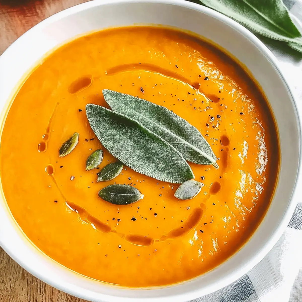 Warm up with this vegan and gluten-free Hokkaido Pumpkin Soup, a perfect blend of sweet pumpkin, sage, and nutmeg.