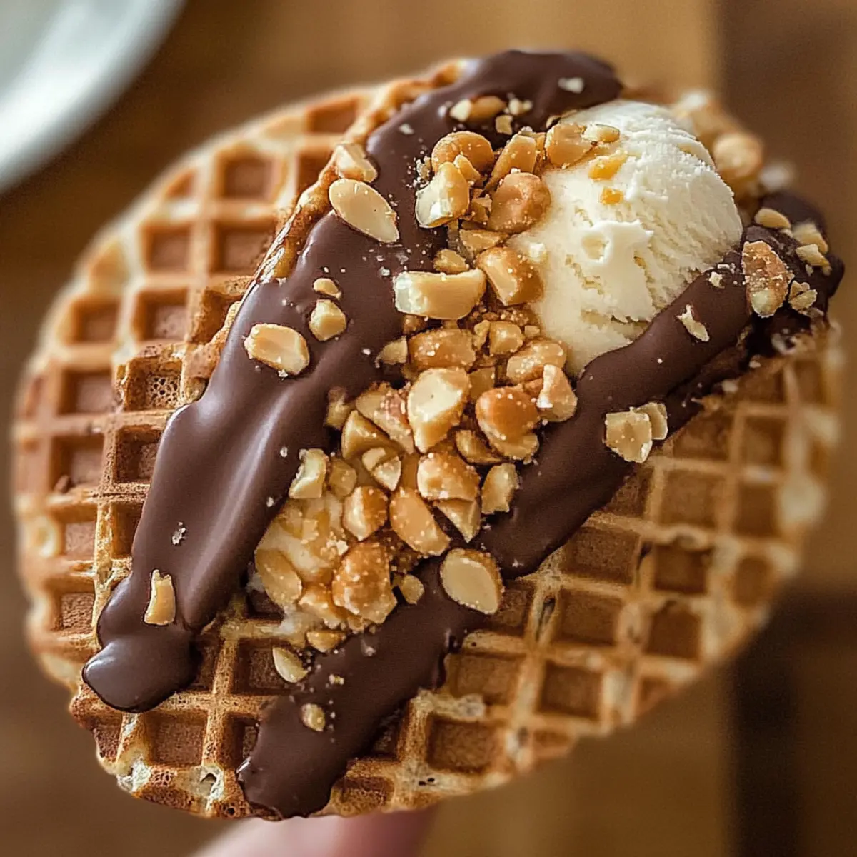 Jump to Recipe Print RecipeThe scent of melting chocolate and summer afternoons fills my kitchen as I prepare to recreate a cherished childhood memory: Homemade Choco Tacos. This delightful treat brings together the crunchy joy of a waffle cone and the creamy goodness of vanilla ice cream, all wrapped in silky chocolate and topped with crunchy peanuts. What I adore about this recipe is its simplicity—perfect for anyone ready to sweep away fast food in favor of a homemade masterpiece. Plus, it’s a fantastic way to bring friends and family together for a fun and nostalgic dessert night. So, are you ready to take a bite into a blissful summer memory? Let’s get started! Why will you love Homemade Choco Tacos? Nostalgic Delight: These homemade treats whisk you back to carefree summer days, reminiscent of ice cream trucks and family gatherings. Easy to Make: With just a few simple steps, creating your own Choco Tacos is a breeze, even for novice chefs! Customizable Flavors: Feel free to switch up the ice cream or toppings; try using flavored chocolate or crushed cookies for a fun twist. Perfect for Sharing: Gather friends and family for a DIY Choco Taco night that guarantees smiles and satisfied sweet tooth! Time-Saving Treat: Ready in under an hour, these Choco Tacos are ideal for impromptu summer gatherings or last-minute dessert needs. For more sweet ideas, don’t forget to check out my Keto Chocolate Chip cookies for a guilt-free indulgence! Homemade Choco Tacos Ingredients For the Waffle Cone Shells • Waffle Cones – The base structure for the taco; ensure they are slightly damp for pliability. For the Ice Cream Filling • Vanilla Ice Cream – The creamy filling that provides sweetness and flavor; opt for high-quality, rich vanilla ice cream for the best taste. For the Chocolate Coating • Chocolate Chips – This coating adds a decadent layer; can substitute with dark chocolate for a richer taste suitable for your Homemade Choco Tacos. For the Toppings • Peanuts – A crunchy topping that adds texture; substitute with sprinkles for a colorful variation or omit for a nut-free dessert. Step‑by‑Step Instructions for Homemade Choco Tacos Step 1: Prep the Waffle Cones Begin by lightly dampening your waffle cones under a kitchen tap or using a damp cloth; this will help in shaping them without cracking. Next, gently bend each cone into a taco shape, making sure to hold it while it sets for a few minutes. This allows your cones to maintain their form, creating the perfect base for your Homemade Choco Tacos. Step 2: Fill with Ice Cream Scoop generous portions of rich vanilla ice cream into each taco-shaped waffle cone, packing it down firmly to avoid any air pockets. Aim for a nice dome on top of the ice cream for that inviting look. This step should take about 10 minutes, but don’t rush—getting a good scoop creates a deliciously satisfying layer in your Homemade Choco Tacos. Step 3: Coat with Chocolate In a microwave-safe bowl, melt your chocolate chips in 20-second intervals, stirring in between until smooth and silky. Once melted, dip the tops of the ice cream-filled cones into the warm chocolate, ensuring it’s fully coated for that decadent touch. Visually, a glossy layer of chocolate is what you’re aiming for, and this should take about 5 minutes to achieve. Step 4: Add Toppings Before the chocolate coating sets, sprinkle crushed peanuts generously over the chocolate-dipped part of your cones. This provides delightful crunch and texture, enhancing the nostalgic experience of your Homemade Choco Tacos. Take care to do this quickly, as the chocolate will start to harden after a few minutes, allowing around 3 minutes for this step. Step 5: Freeze and Serve Place your assembled Homemade Choco Tacos upright in a freezer-safe container, allowing them to freeze for at least one hour. This will firm up the ice cream and enhance the overall texture of your dessert. As a visual cue, you’ll know they’re ready when the chocolate is set and the ice cream is firm to the touch, making it perfect for serving and enjoying. Expert Tips for Homemade Choco Tacos Dampen Wisely: Lightly dampening waffle cones prevents cracking, ensuring they’re easy to shape into taco shells without breaking. Perfect Chocolate Dip: Microwave chocolate chips in short intervals, stirring in between; this helps prevent the chocolate from burning, achieving a smooth coating for your Homemade Choco Tacos. Quality Counts: Using high-fat vanilla ice cream enhances the texture and flavor, ensuring a creamy and delightful experience that isn’t icy after freezing. Quick Assembly: Work swiftly when applying toppings to the chocolate coating, as it will set quickly; this ensures your nuts or sprinkles stick perfectly. Freezer Alert: For optimal results, freeze the assembled Choco Tacos upright for at least one hour, making it easier to serve and enjoy without messy drips. Make Ahead Options These Homemade Choco Tacos are perfect for meal prep! You can assemble the waffle cones and fill them with vanilla ice cream up to 24 hours ahead of time, ensuring that they stay fresh and delicious. Just be sure to wrap the filled cones tightly in plastic wrap before refrigerating, which helps prevent freezer burn and keeps the cones from becoming soggy. When you’re ready to serve, simply melt the chocolate chips and dip the tops of the ice cream cones into the chocolate, sprinkle with peanuts, and then freeze for about an hour to set. This way, you’ll have a delightful treat ready with minimal last-minute effort! Homemade Choco Tacos: Fun Twists Who doesn’t love a tasty twist on a classic? Here are some delightful variations for your Homemade Choco Tacos that will make your kitchen buzz with exciting flavors! Chocolate Ice Cream: Swap the vanilla ice cream for chocolate ice cream to double down on the chocolaty goodness. This change adds a rich flavor profile that chocolate lovers will adore! Mint Chocolate Chip