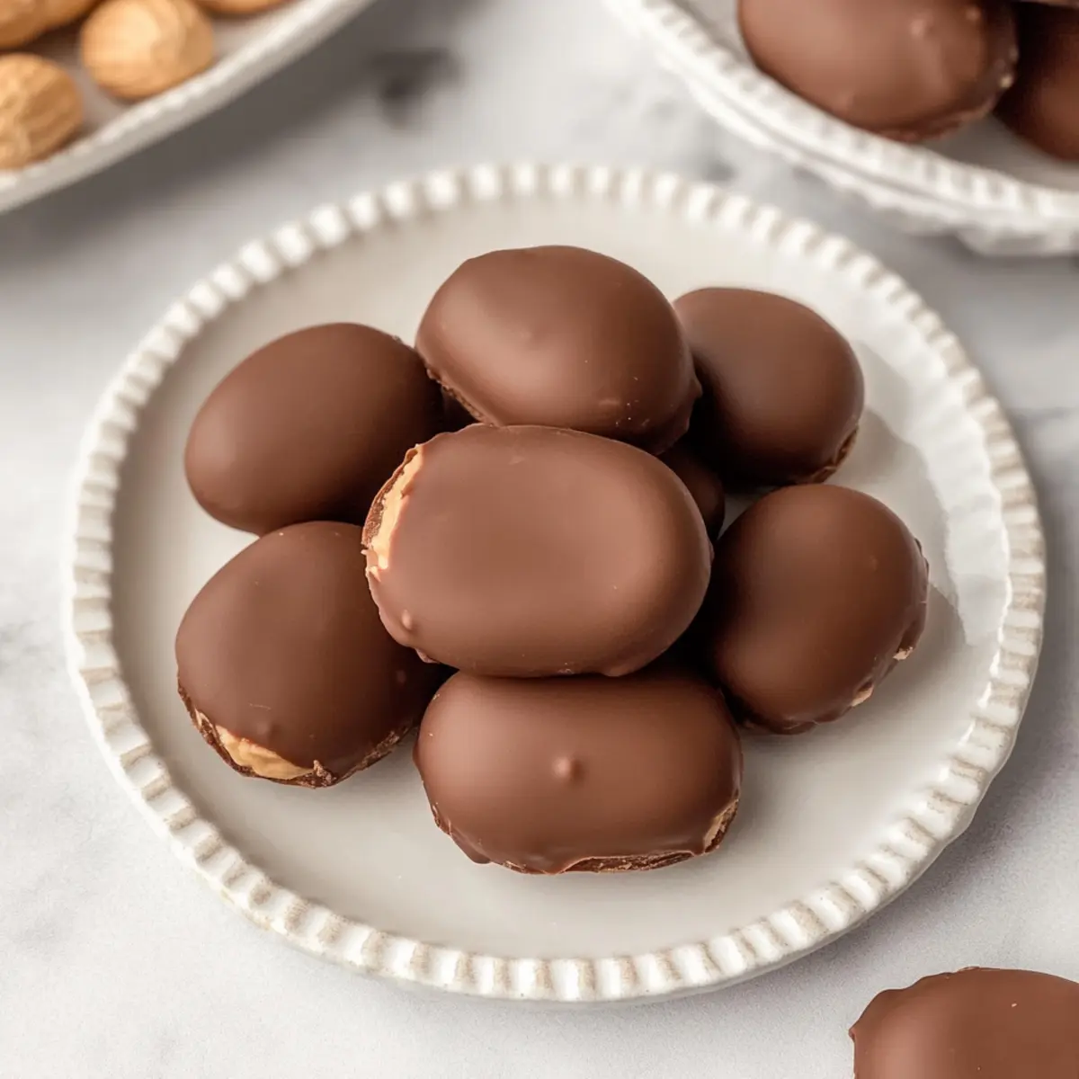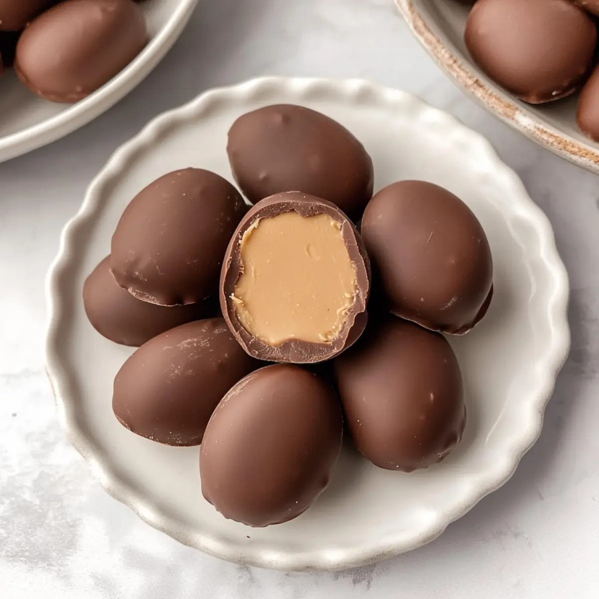 Jump to Recipe Print RecipeAs I unwrapped the last of my Easter goodies, I couldn’t shake the craving for something sweet yet nostalgic. That’s when I decided to whip up these Homemade Peanut Butter Eggs. This no-bake treat marries a creamy, dreamy peanut butter filling with a glossy coat of chocolate, making it the perfect way to celebrate any occasion—or simply satisfy a sweet tooth. Not only are they quick to make, but they also capture all the flavors of childhood favorites in a delightful homemade version. With the balance of sweet and salty, these eggs will bring a smile to faces young and old alike. Curious how to create this deliciousness? Let’s dive into the recipe! Why Make Homemade Peanut Butter Eggs? Easy, No-Bake Delight: Whip these up in no time—no oven required! Perfect for cooks of any skill level. Nostalgic Treat: Relive the joy of classic Easter candies with a homemade twist that everyone will love! Customizable Goodness: Experiment with different nut butters or add crunchy textures for a fun personal touch. For more unique flavors, try Peanut Butter Banana or even surprising combinations like crushed pretzels! Perfect for Gifting: Package these gorgeous eggs in decorative boxes, making them a delightful gift for friends and family during the holiday season. Crowd-Pleasing Flavor: With that creamy peanut butter center and rich chocolate exterior, these eggs are a guaranteed hit for gatherings! Homemade Peanut Butter Eggs Ingredients For the Filling • Creamy Peanut Butter – Provides a rich, nutty flavor and creamy texture; natural nut butters may alter the consistency. • Unsalted Butter – Adds richness and smoothness to the filling; coconut oil can be used, but texture may vary. • Vanilla Extract – Enhances the overall flavor with a sweet aroma. • Salt – Balances sweetness and elevates flavor. • Powdered Sugar – Sweetens the filling and helps achieve the right consistency; no easy substitution for this ingredient. For the Chocolate Coating • Milk Chocolate Chips – Forms the smooth chocolate coating; semi-sweet chocolate can be used for a less sweet flavor. • Vegetable Shortening – Used to give a glossy finish to the chocolate coating; another solid fat like coconut oil works, but it may alter the flavor. Enjoy making these delicious Homemade Peanut Butter Eggs! Step‑by‑Step Instructions for Homemade Peanut Butter Eggs Step 1: Prepare Filling In a medium saucepan over medium heat, melt 1 cup of creamy peanut butter and 4 tablespoons of unsalted butter until smooth, about 2–3 minutes, stirring frequently. Once melted, remove from heat and stir in 1 teaspoon of vanilla extract and a pinch of salt. Gradually mix in 2 cups of powdered sugar until the mixture is fully combined and forms a thick dough. Step 2: Shape Eggs Using a cookie scoop or your hands, portion the peanut butter filling and shape it into egg forms, pressing gently to flatten them slightly. Place the shaped eggs on a parchment-lined baking sheet, ensuring they are spaced apart. Freeze the eggs for approximately 30 minutes until firm; this will make dipping them in chocolate easier. Step 3: Make Chocolate Coating While the eggs are freezing, prepare the chocolate coating. In a microwave-safe bowl, combine 1 ½ cups of milk chocolate chips and 1 tablespoon of vegetable shortening. Heat in the microwave for 30-second intervals, stirring each time until the mixture is completely melted and smooth, which should take about 1–2 minutes. Allow the chocolate to cool slightly before coating. Step 4: Coat Eggs Once the peanut butter eggs are firm, remove them from the freezer. Using a fork, dip each egg into the melted chocolate, ensuring they’re fully coated. Gently tap off the excess chocolate and place them back on the parchment-lined baking sheet. Continue this process until all the eggs are coated, leaving a little space between each one. Step 5: Chill After coating all the eggs, refrigerate the tray for 45 minutes to 1 hour, or until the chocolate has completely hardened. This step is crucial to ensure your Homemade Peanut Butter Eggs are perfectly set and ready to be enjoyed at your next gathering or as a sweet treat! Expert Tips for Homemade Peanut Butter Eggs Mix Well: Ensure the peanut butter and butter are thoroughly combined. This helps prevent lumps and encourages a nice, smooth filling. Chill for Ease: If the mixture feels too sticky when shaping, chill it in the refrigerator for a bit. This will make it easier to form into eggs! Chocolate Temperature: Allow the melted chocolate to cool slightly before dipping. If it’s too hot, it can start to melt the peanut butter filling, ruining the texture. Coat Smoothly: For an even chocolate coating, ensure each egg is fully submerged before lifting out, allowing excess chocolate to drip off gently. Storage Tips: Store the Homemade Peanut Butter Eggs in an airtight container. They stay fresh in the fridge for up to a week or freeze for up to three months, layered with parchment paper. Storage Tips for Homemade Peanut Butter Eggs Room Temperature: Store in a cool, dry place for up to 3 to 4 days, but they’re best enjoyed fresh! Fridge: Keep in an airtight container for up to 1 week to maintain freshness and prevent melting. Freezer: For longer storage, freeze for up to 3 months. Layer with parchment paper to avoid sticking and preserve texture. Reheating: No need to reheat these treats! Enjoy them straight from the fridge or freezer for a delightful bite of your Homemade Peanut Butter Eggs. What to Serve with Homemade Peanut Butter Eggs? These delightful treats will shine even brighter when paired with the perfect sides and sips! Fresh Fruit Salad: A mix of vibrant fruits adds a refreshing contrast to the rich chocolate and creamy filling. Perfect for brightening your dessert platter! Vanilla Ice Cream: The creaminess of vanilla ice cream complements the sweetness of the eggs, creating a luscious dessert experience.