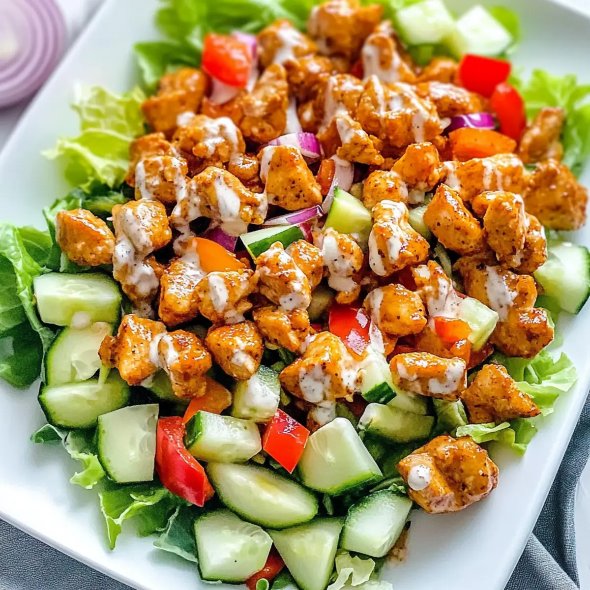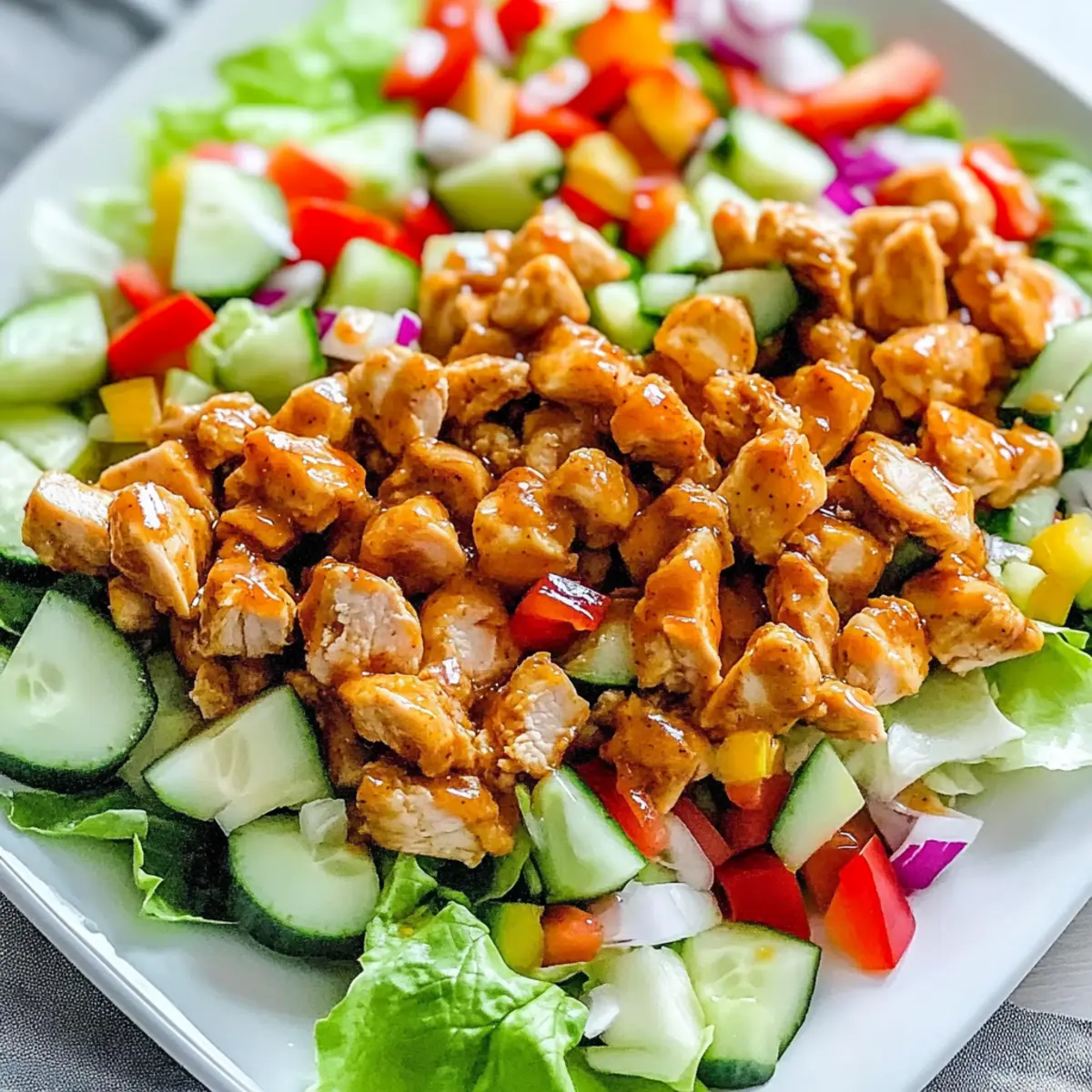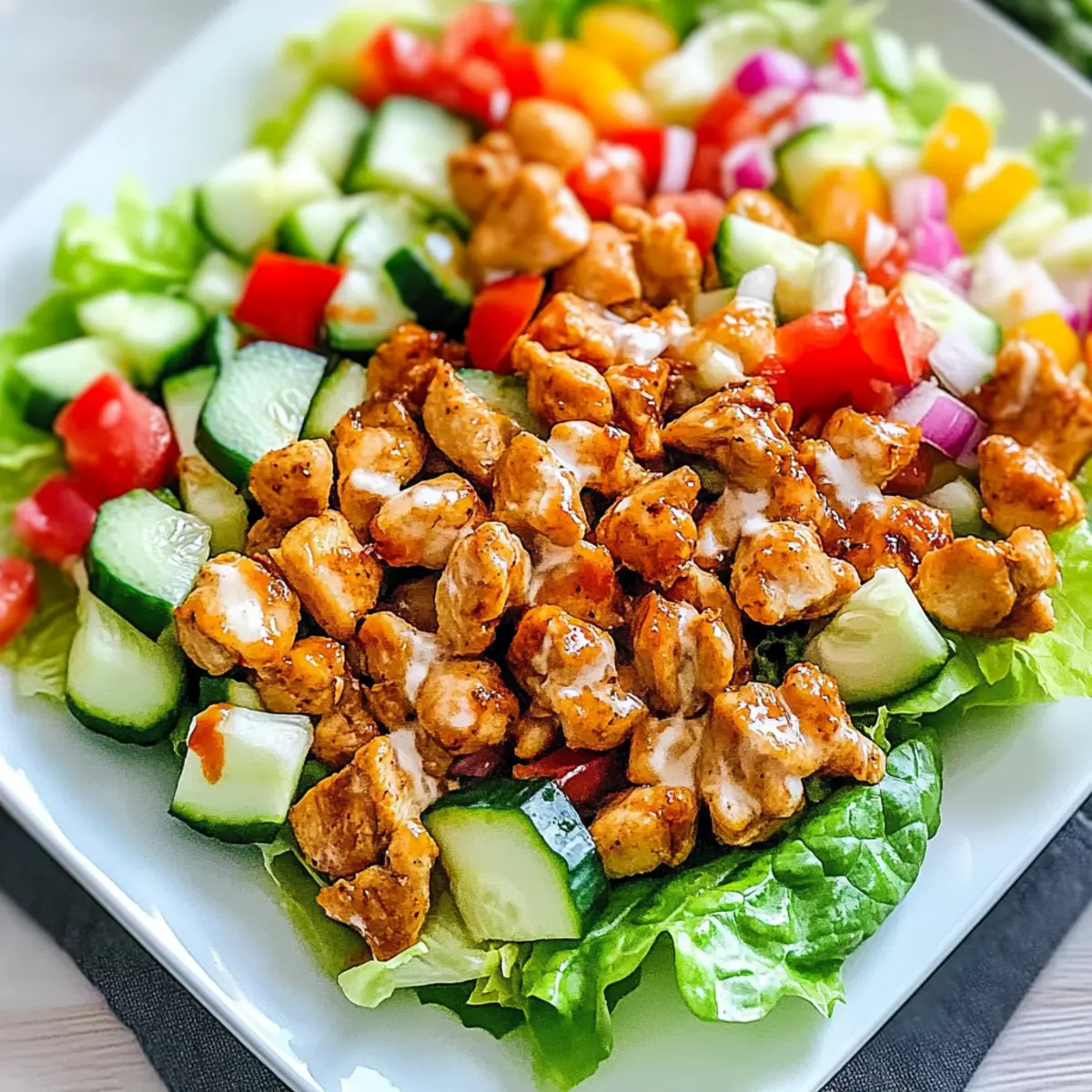 Jump to Recipe Print RecipeIn the hustle and bustle of everyday life, finding time to enjoy a delicious meal can feel like a mini crisis. Enter the Honey Hot Chicken Salad—a perfect remedy that combines crisp romaine lettuce with spicy, tender chicken, creating a symphony of flavors that’s nothing short of exhilarating. This quick and easy recipe not only satisfies your cravings but also packs a healthy punch, making it ideal for busy weeknights or even game day gatherings. The customizable nature of this salad allows you to tailor each bite to your liking, whether you stick with the classic chicken or opt for a vegetarian twist with crispy tofu. Are you ready to bring some excitement back to your dinner plate? Let’s dive in! Why is Honey Hot Chicken Salad a Must-Try? Bursting with Flavor: This dish harmonizes sweet honey and zesty buffalo sauce, creating an unforgettable taste sensation. Quick and Easy: Perfect for weeknight dinners, it comes together in no time! Customizable Delight: Swap chicken for crispy tofu for a vegetarian option or play with your favorite veggies for added crunch. Healthy Choice: Protein-packed and vibrant, each bite is as nutritious as it is delicious. Crowd-Pleasing Appeal: Whether it’s game day or a family dinner, this salad is sure to impress everyone at the table! For more flavorful ideas, check out my recipe for Honey Garlic Chicken or try the Creamy Pesto Chicken Broccoli for another weeknight winner. Honey Hot Chicken Salad Ingredients For the Chicken Mixture • Chicken Breasts – Main protein source; cooked and diced. Consider using leftover roasted chicken for convenience. • Honey Garlic Sauce – Adds a savory-sweet flavor (¼ cup recommended); homemade is preferred for a richer taste. • Buffalo Wing Sauce – Provides necessary heat (¼ cup or use hot sauce if preferred). Adjust to taste for desired spice levels. For the Salad Base • Romaine Lettuce – The crisp salad base (2 heads, chopped); iceberg or kale can be substituted for variety. • Red Onion – Adds sweetness and tang (½ medium, diced); shallots can be a milder alternative. • Red Bell Pepper – Contributes sweetness and color (1 large, diced); other color bell peppers work just as well. • Cucumber – Provides refreshing crunch (½ large, diced); any crisp veggie can substitute as needed. For Dressing • Ranch Dressing – Enhances flavors (3-6 tablespoons); substitute with your favorite dressing like Caesar or blue cheese if desired. • Cheese (optional) – Adds creaminess (shredded); omit for a dairy-free version. Feel free to get creative with your Honey Hot Chicken Salad, blending in additional favorites from your fridge! Step‑by‑Step Instructions for Honey Hot Chicken Salad Step 1: Prepare the Chicken Mixture In a medium bowl, combine the cooked and diced chicken with the honey garlic sauce and buffalo sauce. Stir well until each piece of chicken is evenly coated with the savory-sweet mixture. Allow it to sit for about 10 minutes to let the flavors meld together while you prepare the salad base. Step 2: Toss the Romaine Lettuce In a large salad bowl, add the chopped romaine lettuce and drizzle your desired amount of ranch dressing over the top. Using salad tongs or your hands, gently toss the lettuce until the dressing coats every leaf evenly. The bright green romaine should glisten, creating a fresh and inviting base for your Honey Hot Chicken Salad. Step 3: Assemble Vegetable Toppings Next, dice the red onion, red bell pepper, and cucumber. Layer these vibrant vegetables over the dressed lettuce, creating a colorful display. Each ingredient adds its unique crunch and flavor; aim for an even distribution so every bite bursts with freshness, setting a perfect canvas for the spicy chicken. Step 4: Add the Honey Hot Chicken Carefully spoon the prepared honey hot chicken mixture over the array of vegetables. Spread it out evenly, ensuring that every corner of the salad gets a taste of that spicy, sweet chicken. The bright colors and enticing aromas should create a beautiful contrast that makes your Honey Hot Chicken Salad irresistible. Step 5: Serve Immediately Once assembled, serve the Honey Hot Chicken Salad right away to enjoy it while the chicken is warm and the lettuce remains crisp. The combination of textures and flavors will entice everyone at the table. Use utensils or tongs for easy serving, and don’t forget to make it a meal by pairing it with your favorite sides! What to Serve with Honey Hot Chicken Salad Looking to create a vibrant feast alongside your Honey Hot Chicken Salad? Let’s bring your meal to life! Creamy Avocado Toast: This buttery toast adds rich, healthy fats that balance the salad’s spicy kick, making every bite melt-in-your-mouth delightful. Honey Chili Cornbread: Sweet and slightly spicy, this cornbread is the perfect complement that adds comforting warmth to your meal. Ideal for soaking up any leftover dressing! Grilled Veggies: Crisp-tender zucchini, bell peppers, and asparagus elevate your plate with smoky flavors and a delightful crunch, making it a wholesome addition. Crispy Sweet Potato Fries: The natural sweetness and crunchy texture of fries make an irresistible side, perfect for dipping in ranch dressing, amplifying the fun of your meal. Citrus Quinoa Salad: Light and refreshing, this salad filled with citrus notes brightens up the palate and adds a burst of healthy grains to your plate. Iced Herbal Tea: A cooling beverage that quenches your thirst while enhancing the spicy notes of the salad. Choose mint or hibiscus for a refreshing twist. Take your dining experience to the next level by pairing these delicious options with your Honey Hot Chicken Salad! Make Ahead Options These Honey Hot Chicken Salads are perfect for busy home cooks seeking meal prep strategies! You can prepare the chicken mixture (cooked and diced chicken combined with honey garlic and buffalo sauces) up to 3 days in advance. Store it in an air