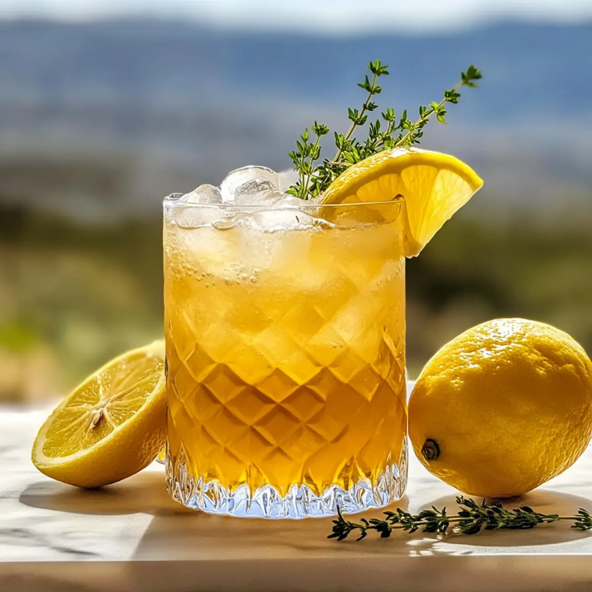 Jump to Recipe Print RecipeAs I stirred the simmering pot of honey and fresh thyme, the kitchen filled with an aroma that instantly transported me to sun-drenched gardens. This Honey Lemon Thyme Refresher Mocktail is my go-to drink when I’m craving something light yet vibrant, perfectly balancing zesty lemon and herbal notes. Not only is it alcohol-free, but it’s also incredibly easy to whip up, making it a crowd-pleaser for gatherings or a simple refreshment anytime you need a break from the usual. With the option to prepare the honey-lemon-thyme syrup in advance, it’s a great make-ahead option that lets you enjoy the moment without stress. Curious how to bring this delightful beverage to life? Let’s dive in! Why Choose the Honey Lemon Thyme Refresher? Refreshing, Light Drink: This mocktail combines bright lemon with the aromatic touch of thyme, creating a drink that feels like a sip of sunshine. Make-Ahead Convenience: Prepare the honey-lemon-thyme syrup in advance for easy assembly during gatherings, letting you spend more time with guests and less in the kitchen. Customizable Delight: Feel free to mix things up by substituting ingredients or adding flavors; try incorporating fresh mint or even a splash of ginger for a unique twist, just like in my Spicy Honey Pepper dish! Perfect for Any Occasion: Whether it’s brunch or an afternoon refreshment, this drink brightens up any menu with its sophisticated flavor profile. Crowd-Pleasing Flavor: Alcohol-free and delicious, it’s ideal for all ages—everyone will enjoy this herbal delight! Honey Lemon Thyme Refresher Ingredients For the Syrup Honey – A natural sweetener that adds depth; feel free to swap in maple syrup for a vegan option. Fresh Thyme – Brings aromatic herbal notes; if using dried thyme, remember to reduce it to about 1 teaspoon and strain carefully. Lemon Juice – Essential for that sparkling tang; fresh juice is key to vibrant flavor. For the Mocktail Sparkling Water – Adds that refreshing bubbly element; you can also use still water or lemonade if you prefer a non-fizzy drink. Ice Cubes (Optional) – Not just for chill but for flair; freeze lemon slices and thyme sprigs to elevate the visual appeal. Enjoy crafting your Honey Lemon Thyme Refresher and let the magic of this refreshing mocktail unfold! Step-by-Step Instructions for Honey Lemon Thyme Refresher Step 1: Make the Syrup In a saucepan, combine equal parts honey and fresh lemon juice with a handful of fresh thyme sprigs. Place the saucepan over low heat, stirring gently for about 5 minutes, until the honey fully dissolves and the mixture is fragrant. Remove from heat and allow it to cool completely; this honey-lemon-thyme syrup can be made up to a week in advance for your Honey Lemon Thyme Refresher. Step 2: Mix the Mocktail Once the syrup is cool, take a tall glass and pour in about two tablespoons of the prepared honey-lemon-thyme syrup. Carefully add chilled sparkling water to fill the glass and give the drink a light, bubbly texture. Aim for a ratio of three parts sparkling water to one part syrup for the perfect balance in your Honey Lemon Thyme Refresher. Step 3: Garnish To elevate the visual appeal of your mocktail, add a few ice cubes into the glass. For an extra touch of freshness, incorporate frozen lemon slices and sprigs of thyme. These not only look beautiful but also enhance the herbal aromas and zesty flavor as they slowly infuse into the drink. Step 4: Serve Immediately Stir the mocktail gently to combine all flavors while ensuring the sparkling water maintains its effervescence. Enjoy your Honey Lemon Thyme Refresher right away for the best experience, as the refreshing bubbles and bright flavors are meant to be savored while chilled. Expert Tips for Honey Lemon Thyme Refresher Syrup Infusion: Prepare the honey-lemon-thyme syrup a day ahead for deeper flavor infusion, letting the herbs mellow beautifully into the sweetness. Fizz Factor: For gatherings, mix the syrup with sparkling water just before serving. This keeps the drink crisp and bubbly rather than flat. Visual Appeal: Use frozen lemon slices and thyme sprigs in your ice cubes to enhance both the presentation and flavor of your Honey Lemon Thyme Refresher. Flavor Variations: Don’t hesitate to experiment! Try using basil instead of thyme or add a splash of ginger syrup for a spicier twist. Mixing Proportions: Aim for a ratio of three parts sparkling water to one part syrup for the perfect balance of sweet and tangy in your mocktail. Avoid going overboard on the syrup, which can make the drink overly sweet. Make Ahead Options These Honey Lemon Thyme Refreshers are ideal for meal prep, saving you time for those busy days! You can prepare the honey-lemon-thyme syrup up to one week in advance; simply combine honey, lemon juice, and thyme in a saucepan, heat until blended, then cool and store in the refrigerator. For the best flavor, remember to tightly seal the syrup to maintain its freshness. When you’re ready to serve, mix the syrup with chilled sparkling water, preferably just before serving to keep the fizz intact. By prepping the syrup ahead, you’ll enjoy a delightful drink with minimal effort and maximum flavor whenever the craving strikes! How to Store and Freeze Honey Lemon Thyme Refresher Fridge: Keep the honey-lemon-thyme syrup stored in an airtight container in the fridge for up to one week, ensuring the flavors stay vibrant for your mocktails. Mocktail Mixture: If you mix the mocktail without sparkling water, refrigerate it for up to two days. Just remember to add the sparkling water right before serving for that refreshing fizz! Freezer: Consider freezing lemon slices and thyme sprigs in ice cubes. These not only look stunning but also infuse extra flavor into your Honey Lemon Thyme Refresher as they melt. Reheating: If you’ve prepared syrup ahead of time and it thickens in the fridge, gently warm it in a saucepan to return it to pouring consistency before