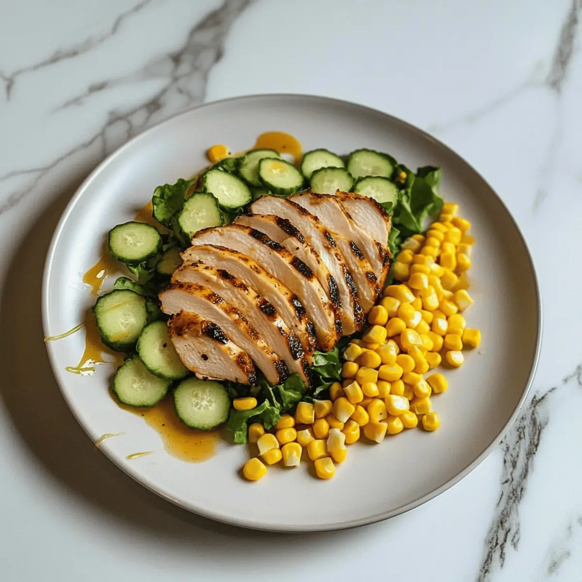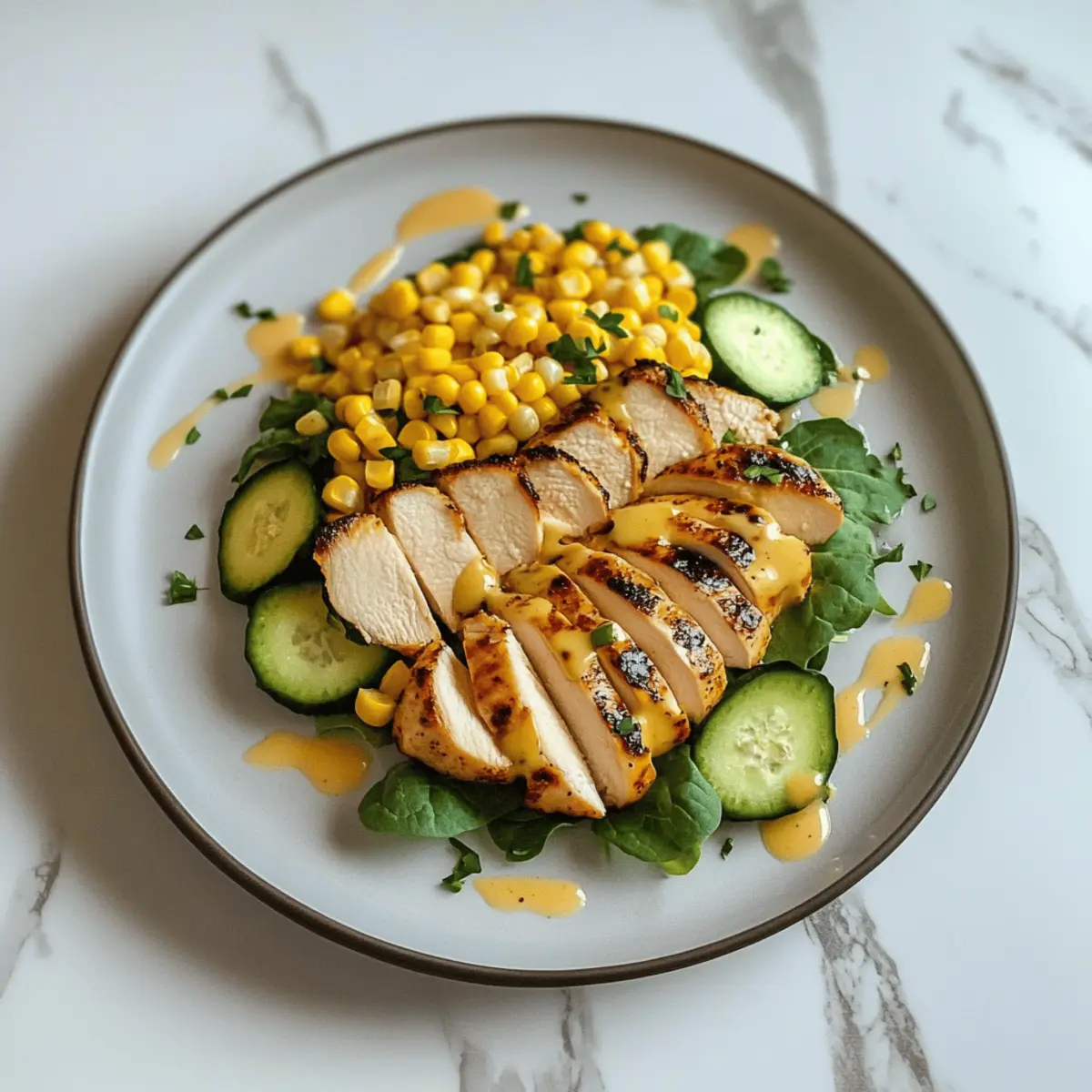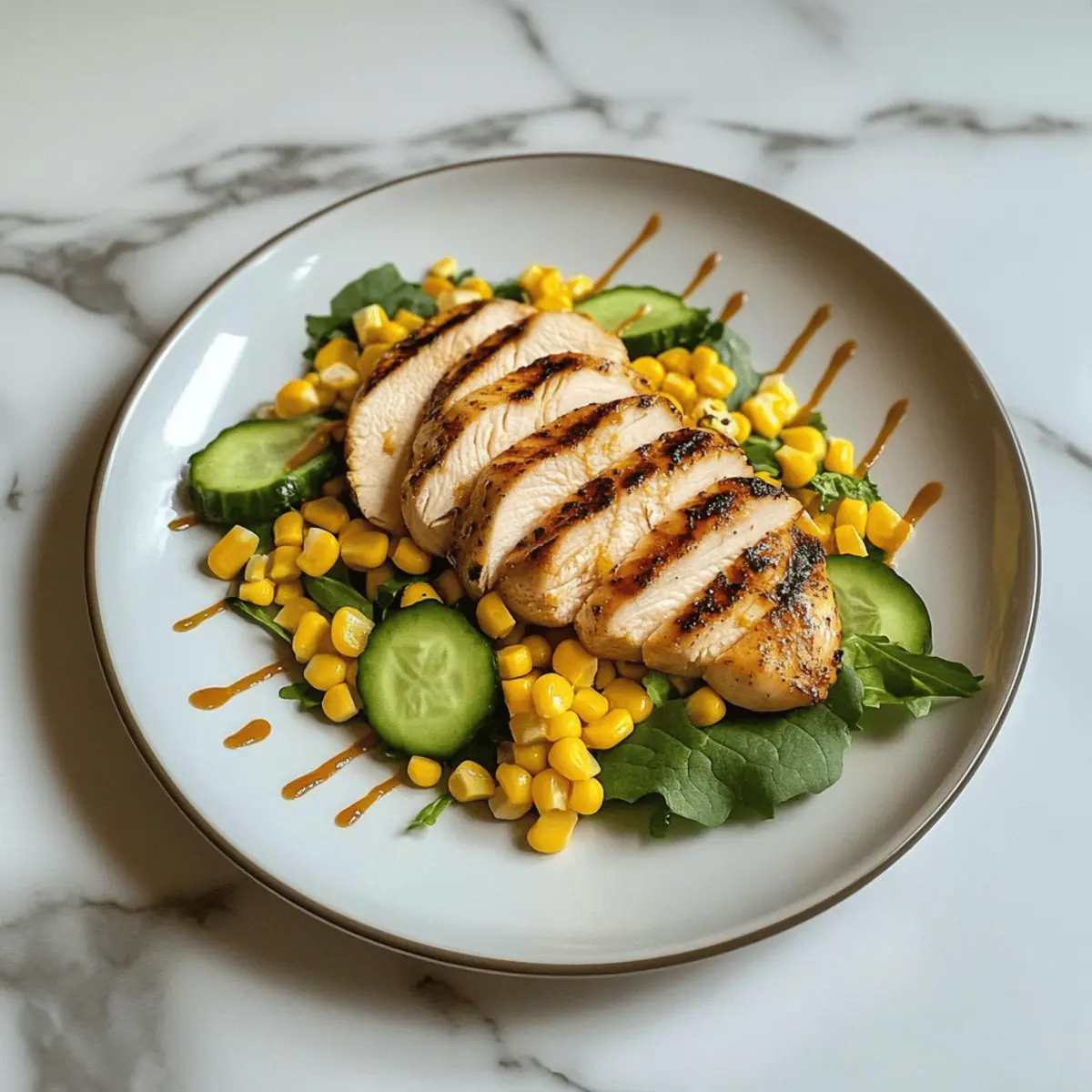 Jump to Recipe Print RecipeThe sizzle of chicken on the grill can evoke memories of warm summer evenings spent with loved ones, feeling the gentle breeze as the sun sets. In keeping with that spirit, I’m excited to share my Honey-Mustard Grilled Chicken & Corn Salad, a delightful dish that captures the essence of those balmy nights. This light and fresh salad combines juicy grilled chicken with the sweetness of corn, creating a perfect balance of flavors that’s both nutritious and quick to whip up. Whether you’re looking to impress on a romantic dinner for two or simply want a comforting meal without the fuss, this recipe checks all the boxes. Plus, it’s a great way to enjoy a satisfying, wholesome dish that doesn’t weigh you down. Curious about how to get this summer sensation on your table? Let’s dive into the details! Why is this salad a summer favorite? Light and Fresh: This Honey-Mustard Grilled Chicken & Corn Salad is the perfect antidote to heavy meals, blending refreshing ingredients into a delightful dish. Quick and Easy: With just a few simple steps, you can enjoy a culinary masterpiece in under 30 minutes, making it ideal for busy weeknights or impromptu gatherings. Crowd-Pleasing Flavor: The sweet and tangy honey-mustard dressing compliments the juicy grilled chicken and crunchy corn, ensuring a delicious bite every time, whether you’re enjoying a quiet dinner or hosting friends. Versatile Option: Feel free to customize! Add your favorite toppings, like creamy avocado slices or cherry tomatoes, to elevate this salad even more. Perfect for Two: This recipe is tailored for two servings, making it an excellent choice for date nights or cozy dinners at home without the need for extensive leftovers. Outdoor Dining Appeal: Serve it at your next picnic or barbecue, allowing the flavors to shine while enjoying the sun and good company, just like in a summer backyard party! Honey-Mustard Grilled Chicken & Corn Salad Ingredients For the Chicken • Boneless, Skinless Chicken Breast – The protein base of the salad, perfect for grilling and easy to handle. • Honey – Adds sweetness and helps caramelize the chicken on the grill; substitute maple syrup for a vegan option. • Dijon Mustard – Provides a tangy contrast to the sweetness of honey; consider spicy mustard for an extra kick. • Olive Oil – Essential for marinating and grilling, adding healthy fats to the dish; avocado oil can replace it for a higher smoke point. • Lemon Juice – Brightens the entire salad with a burst of acidity; lime juice is a good alternative for a different twist. For the Salad • Fresh or Grilled Corn – Brings a sweet crunch to the salad; canned corn works in a pinch if fresh is unavailable. • Mixed Greens – Offers bulk and freshness to the mix; feel free to swap for spinach or arugula for a unique flavor profile. Remember, the Honey-Mustard Grilled Chicken & Corn Salad is all about that delightful balance of flavors, making your summer meal truly special! Step‑by‑Step Instructions for Honey-Mustard Grilled Chicken & Corn Salad Step 1: Prepare the Marinade In a mixing bowl, combine 3 tablespoons of honey, 2 tablespoons of Dijon mustard, 2 tablespoons of olive oil, and the juice of half a lemon. Whisk together until fully blended and smooth, creating a luscious honey-mustard dressing. This marinade will infuse your chicken with sweet and tangy flavors, making your Honey-Mustard Grilled Chicken & Corn Salad truly irresistible. Step 2: Marinate the Chicken Take two boneless, skinless chicken breasts and coat them thoroughly with the marinade. Place the chicken in a resealable bag or shallow dish, ensuring it’s well covered. Allow it to marinate in the refrigerator for at least 30 minutes, or up to two hours if you have time, as this allows the flavors to penetrate the chicken for a more succulent result. Step 3: Preheat the Grill While the chicken marinates, preheat your grill to medium-high heat, around 375°F to 400°F, to achieve perfect grilling conditions. You want the grill to be hot enough to create beautiful grill marks while ensuring the chicken cooks evenly. Once preheated, lightly oil the grill grates to prevent sticking and ensure a clean cook. Step 4: Grill the Chicken Remove the chicken from the marinade and let any excess drip off. Place the chicken breasts on the hot grill and cook for 6-7 minutes on one side, or until you see nice char marks and the chicken releases easily from the grill. Flip the chicken and grill for an additional 6-7 minutes, until the internal temperature reaches 165°F, ensuring juicy, perfectly cooked chicken for your salad. Step 5: Grill the Corn If you’re using fresh corn, place it on the grill alongside the chicken during the last 10 minutes of cooking. Turn the corn every few minutes to ensure even charring until it’s slightly charred and tender. The grilling will enhance the corn’s natural sweetness, making it a fabulous addition to your Honey-Mustard Grilled Chicken & Corn Salad. Step 6: Assemble the Salad Once the chicken is grilled, remove it from the grill and let it rest for about 5 minutes. Slice the chicken into strips. In a large bowl, combine the grilled chicken, grilled corn (kernels cut off the cob), and a generous handful of mixed greens. Toss together gently to mix the ingredients and distribute the flavors evenly throughout your fresh salad. Step 7: Dress the Salad Drizzle any remaining honey-mustard dressing over the assembled salad, allowing the flavors to meld beautifully. Toss the mixture gently again to ensure everything is evenly coated with the dressing. The final touch will elevate your dish into a delightful Honey-Mustard Grilled Chicken & Corn Salad that’s both colorful and packed with flavor. Make Ahead Options These Honey-Mustard Grilled Chicken & Corn Salad components are perfect for meal prep, making it easy to enjoy a fresh and flavorful dish during busy weeknights! You can marinate the chic