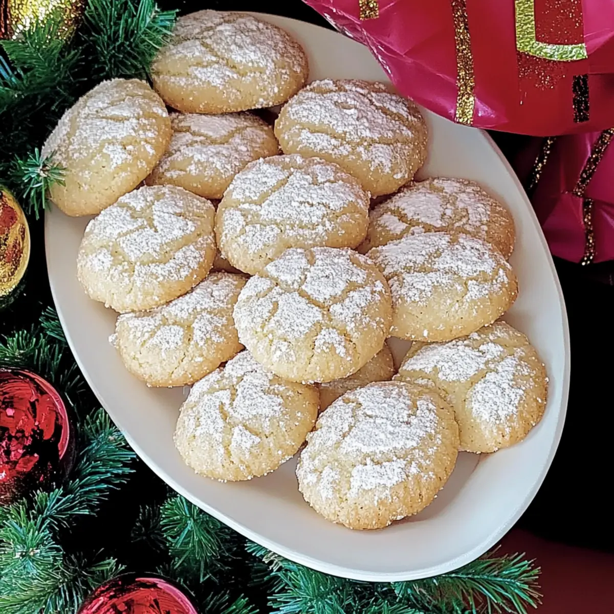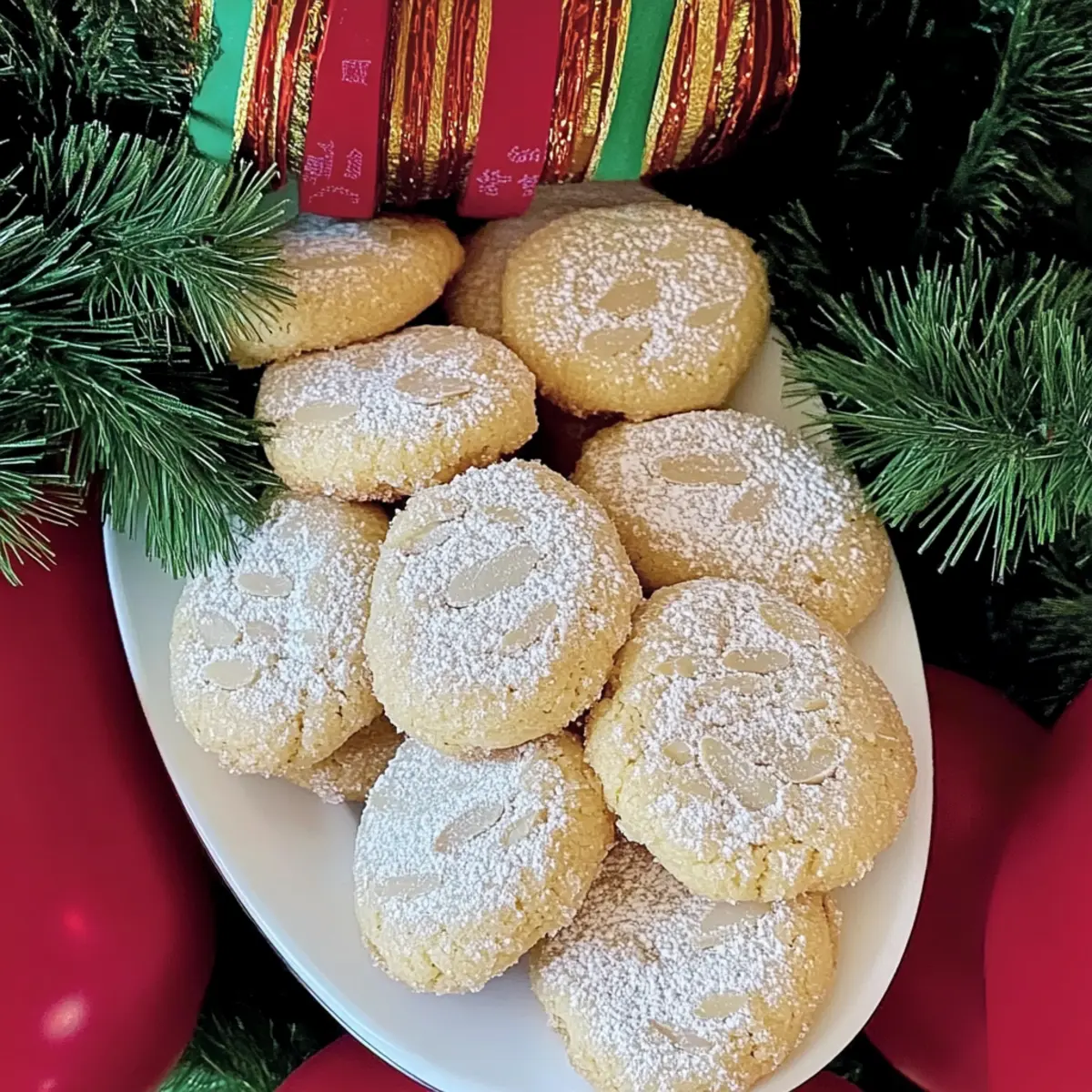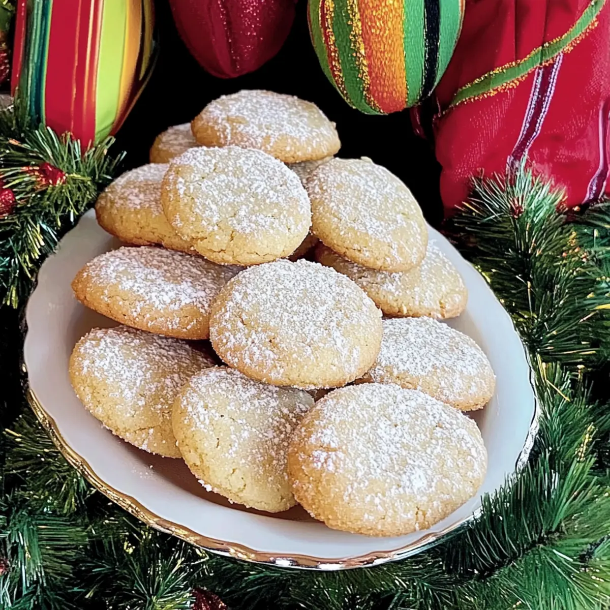 Jump to Recipe Print RecipeAs I whisked the egg whites, anticipation wafted through my kitchen, promising something magical—the transformation into Italian Almond Cookies, or Ricciarelli, a classic dessert that’s delightfully simple to make. In just 30 minutes, you can create these gluten-free cookies, boasting a crisp exterior paired with a chewy center that lets the rich almond flavor shine. Whether you’re preparing for a festive gathering or simply want to indulge in a comforting treat, these cookies will quickly become a favorite, enchanting friends and family alike. Plus, the ease of preparation means you’ll spend less time in the kitchen and more time enjoying the sweet moments. Ready to bite into a little piece of Italy? Let’s dive into the recipe! Why Are These Cookies So Irresistible? Simplicity at its finest: With only a few ingredients and just 30 minutes of prep time, these cookies are perfect for bakers of all skill levels. Rich, Nutty Flavor: The combination of almond flour and almond extract creates an intense, aromatic sweetness that will leave your taste buds singing. Perfect for Any Occasion: Whether it’s a holiday gathering or an afternoon treat, these gluten-free Italian Almond Cookies are a delightful addition to any dessert table. Pair them with a cup of coffee or some mulled wine for a festive touch! Versatile and adaptable: Want to mix things up? Swap in some chocolate chips or try different citrus zests to personalize your cookies. If you’re a fan of all things sweet, you might also love our Gingerbread Men Cookies or Cookies and Cream Cupcakes for your dessert rotation. With these delicious little gems in your recipe arsenal, you’re guaranteed to impress friends and family alike! Italian Almond Cookies Ingredients For the Cookie Dough Almond Flour – Provides the main structure and flavor; substitute with finely ground almonds if preferred. Granulated Sugar – Adds sweetness; can be reduced for a less sweet cookie, allowing almond flavors to shine. Egg Whites – Create structure and airy texture; ensure they are at room temperature for best results. Salt – Enhances flavor; essential for balancing sweetness. Honey – Adds moisture and a hint of natural sweetness; can substitute with agave syrup. Almond Extract – Intensifies almond flavor; use vanilla extract as an alternative if almond is unavailable. Lemon Zest – Provides a fresh citrus note; can be substituted with orange zest for a different flavor profile. Powdered Sugar – For rolling the cookies before baking and optionally dusting after baking. Step‑by‑Step Instructions for Italian Almond Cookies Step 1: Preheat and Prepare Begin by preheating your oven to 325°F (163°C). Line a baking sheet with parchment paper to prevent sticking and set it aside. In a separate bowl, place the powdered sugar that will be used later for coating the cookies. This preparation ensures a smooth workflow when you start shaping your Italian Almond Cookies. Step 2: Mix Dry Ingredients In a medium bowl, combine the almond flour, granulated sugar, lemon zest, almond extract, and salt. Whisk these dry ingredients together until they are well blended and free of lumps. This mixture forms the flavorful base of your Italian Almond Cookies, contributing to their delightful nutty taste. Step 3: Whip Egg Whites Using a stand mixer equipped with a whisk attachment, whip the egg whites at medium speed until soft peaks begin to form, which should take around 1.5 minutes. The egg whites are essential for achieving that light, airy texture inside the cookies. Stop mixing as soon as the peaks hold their shape but are not too stiff. Step 4: Combine Mixtures Gently fold the whipped egg whites into the dry almond mixture using a rubber spatula. Add the honey at this stage, and carefully incorporate all ingredients until just combined to maintain the airy structure. The batter should be slightly sticky and thick, indicating it’s ready to be shaped into your Italian Almond Cookies. Step 5: Shape Cookies With your hands slightly dampened, take portions of the cookie dough and roll them into 1-inch balls. Then, gently flatten each ball and shape them into ovals. Place the shaped cookies on the prepared baking sheet, allowing for about ½ inch of space between each one for even baking. Step 6: Coat & Bake Generously roll each cookie oval in the reserved powdered sugar before placing them on the baking sheet. Ensure they are spaced apart and then pop them into the oven. Bake for 18-25 minutes, or until the tops are golden and crinkly, showcasing the signature cracks of traditional Italian Almond Cookies. Step 7: Cooling Time Once baked, allow the cookies to cool on the baking sheet for about five minutes. This resting period helps them set before transferring to a wire cooling rack. For an added touch, feel free to dust the cooled cookies with a little more powdered sugar, enhancing their charm and sweetness before serving. Italian Almond Cookies: Delicious Variations Feel free to play around with these Italian Almond Cookies to make them uniquely yours and even more delightful! Peanut Flour: Substitute almond flour with peanut flour for a nutty twist and enjoy a completely different flavor profile. Chocolate Delights: Add in chocolate chips for sweet bursts or replace a portion of the almond flour with cocoa powder for a chocolaty version. Imagine the rich, sweet combination! Zesty Citrus: Experiment with different citrus zests, like orange or lime, replacing lemon zest for a fresh, vibrant flavor. Both options lighten the taste and add a delightful zing. Dairy-Free Option: For those avoiding dairy, simply use agave syrup instead of honey for a sweet touch without any animal products. Spices Boost: Add a pinch of cinnamon or cardamom for a warm, spicy flavor that complements the almond beautifully. These spices will transport your taste buds to wintery afternoons! Nut Medley: Mix in finely chopped nuts like pistachios
