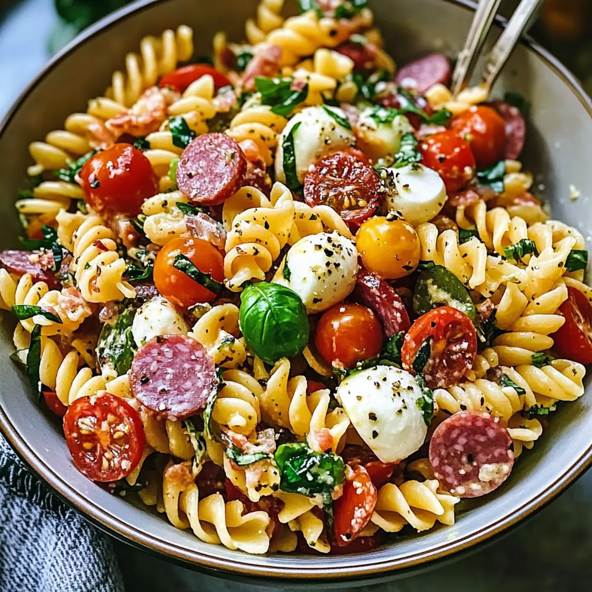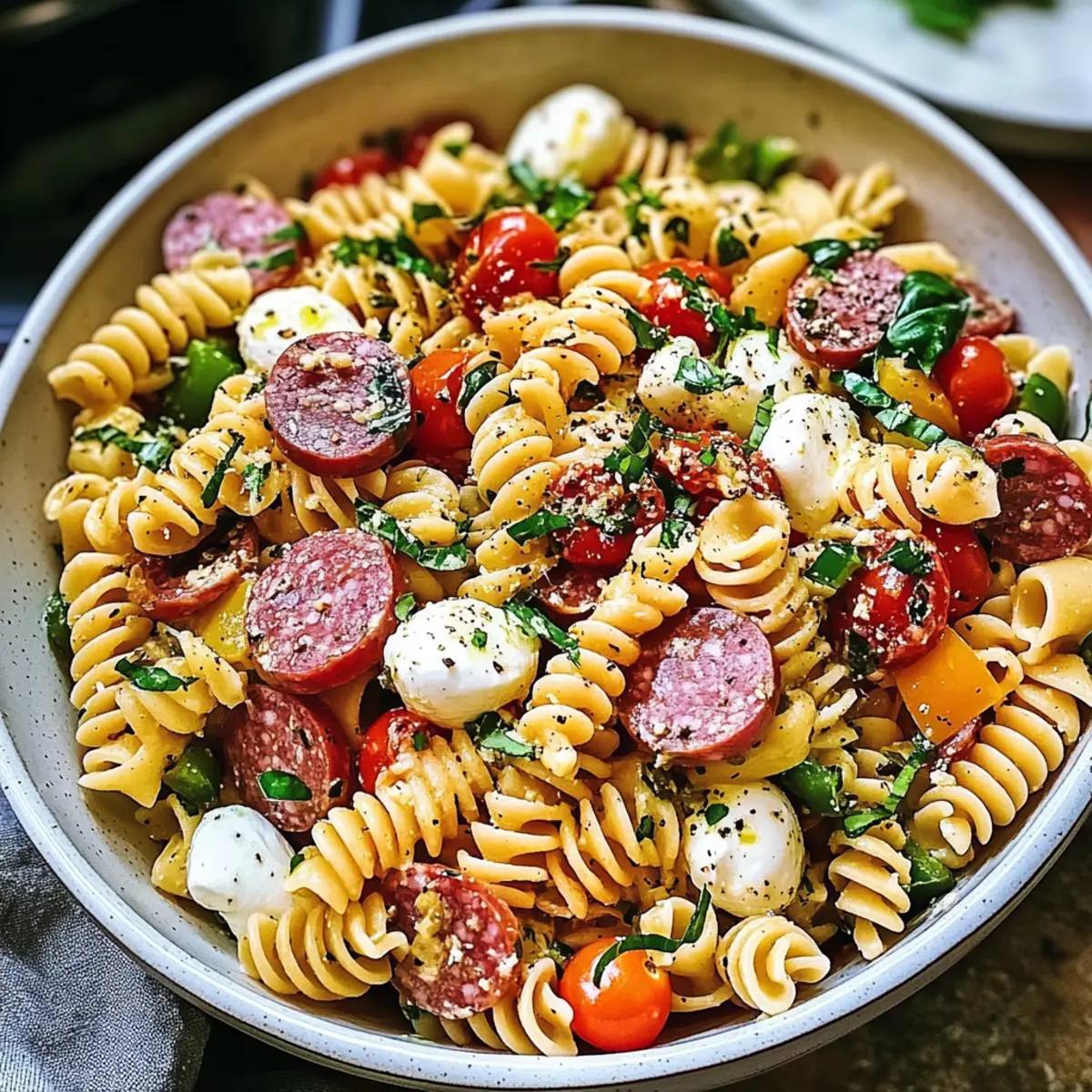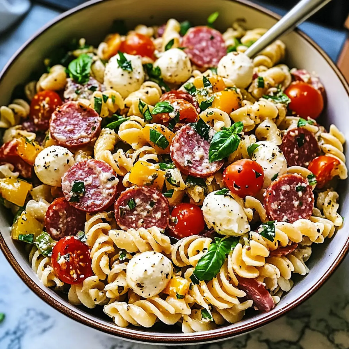 Jump to Recipe Print RecipeAs I tossed the colorful ingredients together, the aroma of zesty Italian dressing wafted through my kitchen, instantly transporting me to sun-soaked Mediterranean shores. This Zesty Italian Pasta Salad is more than just a side dish; it’s a vibrant celebration of flavor and texture, featuring creamy mozzarella pearls, tangy pepperoncini, and hearty salami. Perfect for those busy weekdays or lively gatherings, this make-ahead marvel allows for endless customization, whether you prefer a plant-based twist or extra protein. Not only is it quick to whip up, but it also shines when prepared in advance, making it an ideal choice for your next picnic or potluck. Curious about how you can elevate ordinary ingredients into an extraordinary dish? Let’s dive in! Why is Italian Pasta Salad a Must-Try? Bold flavors: The zesty dressing and fresh ingredients create an irresistible taste sensation that leaves everyone wanting more. Endless variations: Whether you’re in the mood for a vegetarian option or want to add grilled chicken, the possibilities are endless! Quick prep: This dish comes together in a flash, making it your go-to for busy weeknights or last-minute gatherings. Make-ahead magic: Enjoy the deliciousness even more after chilling, as the flavors meld beautifully over time—a perfect make-ahead meal! Colorful presentation: A feast for the eyes, this salad features an inviting blend of textures and hues, making it an appealing addition to any table. Pair it with a refreshing Tomato Salad Refreshing or a tasty Watermelon Cucumber Salad to round off your dining experience. Italian Pasta Salad Ingredients • All you need for a delicious dish! For the Salad Pasta – Use al dente pasta for perfect texture and to hold the dressing well. Mozzarella Pearls – Opt for fresh mozzarella as it provides a creamy, flavorful element. Genoa Salami – Adds savory richness; substitute with pepperoni or chickpeas for a vegetarian version. Pepperoncini – Introduces tangy heat; banana peppers can offer a milder alternative. Vegetables (Bell Peppers, Cherry Tomatoes) – Choose your favorite seasonal veggies for freshness and crunch. For the Dressing Red Wine Vinegar – Essential for acidity; feel free to swap with white wine vinegar if needed. Olive Oil – Extra virgin olive oil is recommended for a rich mouthfeel in your dressing. Dried Herbs (e.g., oregano, basil) – These herbs enhance flavor; fresh herbs will brighten the dish. Parmesan Cheese – Provides sharpness; use grated or shaved to your preference. Lemon Juice – Brightens the dressing; fresh lemon juice is the best for optimal flavor. With this recipe’s flexible ingredients, you can easily customize your Italian Pasta Salad to satisfy every palate! Step‑by‑Step Instructions for Italian Pasta Salad Step 1: Cook the Pasta Begin by bringing a large pot of salted water to a rolling boil. Add your pasta and cook it for about 8-10 minutes, or until it reaches al dente. The pasta should be tender but still firm to the bite. Once cooked, drain thoroughly and rinse under cold water to halt the cooking process and prevent sticking. Step 2: Prepare the Dressing In a small bowl, whisk together red wine vinegar, olive oil, lemon juice, and a mix of dried herbs such as oregano and basil. Add in grated Parmesan cheese and a pinch of salt and pepper, adjusting to taste. This homemade dressing will provide a zesty flavor base for your Italian Pasta Salad that will enhance every bite. Step 3: Combine Pasta and Dressing In a large mixing bowl, combine the warm, drained pasta with half of the prepared dressing. Toss gently to ensure the pasta absorbs the flavors. The warmth from the pasta will help it soak up the dressing more effectively, setting a delicious foundation for your Italian Pasta Salad. Step 4: Add Salad Ingredients Next, add in the creamy mozzarella pearls, chopped Genoa salami, tangy pepperoncini, and your choice of diced bell peppers and cherry tomatoes. Gently toss everything together, making sure all ingredients are well incorporated. This vibrant mix of flavors and textures will bring your Italian Pasta Salad to life. Step 5: Final Dressing & Mix Drizzle the remaining dressing over the salad and toss thoroughly again to coat all ingredients evenly. This step will ensure every bite is packed with the zesty flavors of the dressing. If you’d like, sprinkle in some additional herbs or freshly grated cheese for an extra burst of flavor. Step 6: Chill and Serve Cover the salad with plastic wrap or transfer it to an airtight container and refrigerate for at least 30 minutes. This chilling period is crucial as it allows the flavors of the Italian Pasta Salad to meld beautifully, creating a refreshing dish perfect for serving at your next gathering. Step 7: Adjust & Garnish Before serving, taste the salad and adjust the seasoning if necessary, adding more salt, pepper, or herbs to your liking. If desired, toss in freshly chopped parsley for a pop of color and freshness. Serve the Italian Pasta Salad cold as a delightful side or light meal. What to Serve with Zesty Italian Pasta Salad Creating a delightful dining experience is all about balancing flavors and textures, and these pairings will elevate your Italian Pasta Salad to new heights. Grilled Chicken: Juicy, smoky chicken adds heartiness, making for a satisfying complement to the fresh flavors of the salad. Caprese Skewers: The combination of fresh mozzarella, basil, and ripe tomatoes offers a bright, herbal note that pairs perfectly with your zesty pasta. Garlic Bread: Warm, crunchy garlic bread provides a satisfying contrast, perfect for soaking up any extra dressing from your Italian Pasta Salad. Roasted Vegetables: Seasonal roasted veggies bring a caramelized sweetness, making them an excellent side for the tangy elements in the salad. Fruit Salad: A refreshing fruit salad with berries and citrus adds a burst of sweetness that balances the savory pa