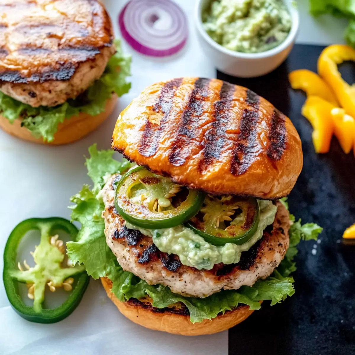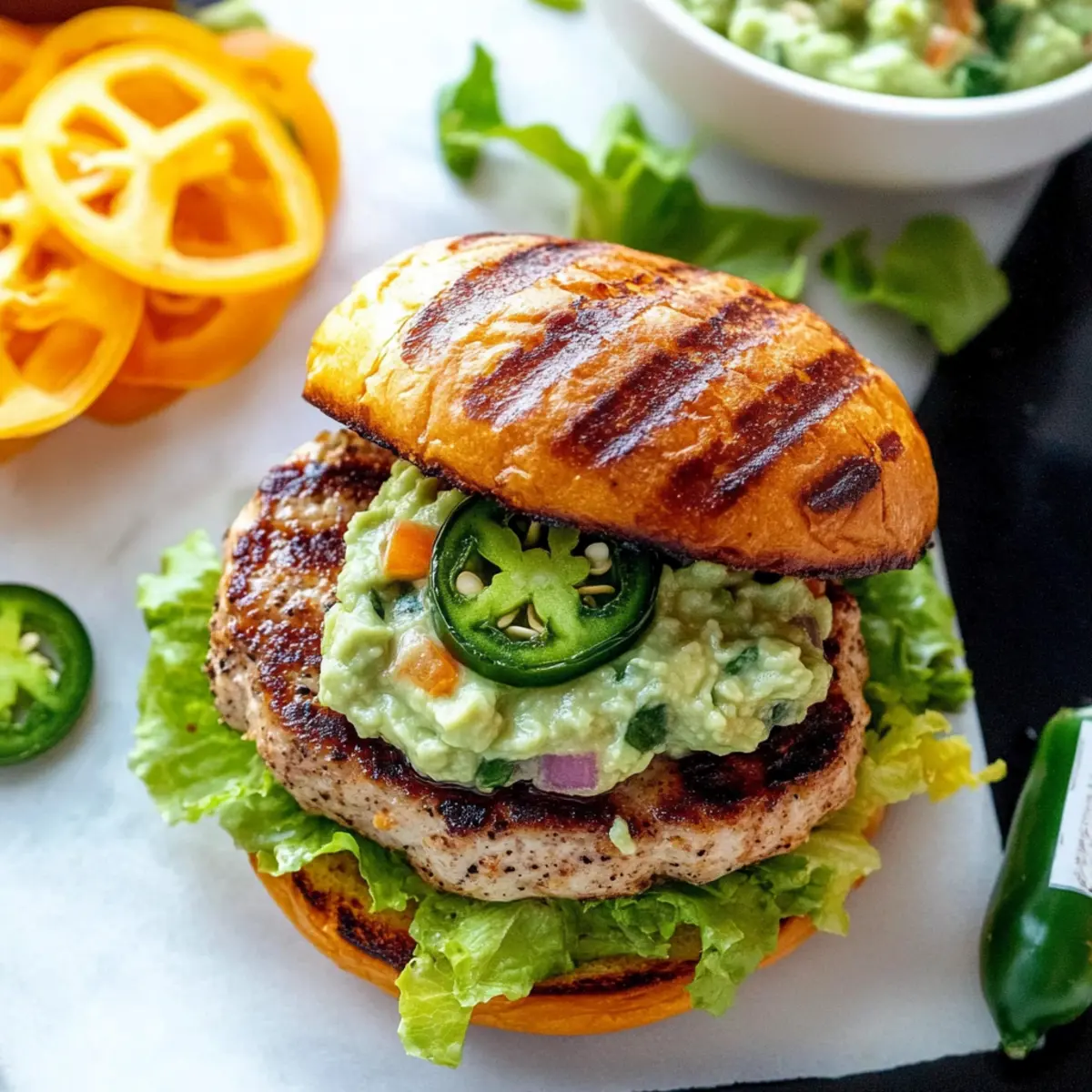 Jump to Recipe Print RecipeI was standing at the grill, surrounded by the mouthwatering aroma of spices and sizzling meat, when it hit me—these weren’t your standard turkey burgers. My Jalapeño Cheddar Turkey Burgers, infused with the zesty flavors of fresh jalapeños and sharp cheddar, are a game-changer for any outdoor gathering or cozy weeknight dinner. They’re not just juicy and flavorful, but they also pack a hefty protein punch, making them a lean and satisfying alternative to traditional beef sliders. Topped with luscious homemade guacamole and crisp lettuce, these burgers are sure to impress your family and friends. Are you ready to elevate your burger game and ignite your taste buds? Let’s dive into this delicious recipe! Why make Jalapeño Cheddar Turkey Burgers? Flavor Explosion: Each bite of these burgers delivers a vibrant mix of spicy jalapeños and sharp cheddar that will tantalize your taste buds. Juicy Goodness: Unlike dry turkey patties, this recipe guarantees a moist, tender burger thanks to the blend of ingredients like lime juice and melted cheese. Simple Preparation: With straightforward cooking steps, you can whip up these flavorful burgers on a busy weeknight or impress guests at a backyard barbecue. Healthier Choice: Packed with protein and lower in calories, they offer a guilt-free indulgence without compromising on taste—perfect for those looking to enjoy a leaner option. Customizable Heat: Adjust the spice level to your liking by adding more jalapeños or excluding seeds, making these burgers suitable for everyone’s palate. Elevate your meal experience with sides like sweet potato fries or a refreshing salad for a complete feast! Jalapeño Cheddar Turkey Burgers Ingredients For the Burger Mix Ground Turkey – A lean protein source; use 93% lean for optimal juiciness. Onion – Adds moisture and sweetness; feel free to choose white, red, or yellow. Cilantro – Enhances flavor with its fresh herbal notes, complementing the spiciness. Garlic – Provides aromatic depth; mince well for even distribution throughout the mix. Jalapeño – Brings the heat; keep the seeds for more spice, or remove them for a milder touch. Ground Cumin – Offers a warm, earthy flavor, essential for enhancing depth in the burgers. Paprika – Adds a hint of sweetness and a pop of color; choose sweet or smoked based on preference. Lime Juice – Brightens flavors and enhances moisture; a key element in balancing richness. Shredded Cheddar Cheese – Melts beautifully and keeps burgers moist; opt for extra sharp for boldness. Salt & Black Pepper – Essential seasonings that elevate the overall taste to perfection. For Assembly Hamburger Buns – Soft and slightly toasted; they provide the perfect structural support for your burgers. Guacamole – A creamy and delightful topping that perfectly complements the burger’s spiciness; make it fresh for best results. Cheese Slices (optional) – Use additional cheddar or Monterey Jack if you prefer a milder cheesy flavor. Tomato & Lettuce – Fresh and juicy toppings that enhance the burger’s flavor and texture; a wonderful contrast to the spicy patty. Experience a flavor-packed adventure with these Jalapeño Cheddar Turkey Burgers that promise to be anything but ordinary! Step‑by‑Step Instructions for Jalapeño Cheddar Turkey Burgers Step 1: Preheat the Grill Begin by preheating your grill to medium-high, aiming for a temperature of around 375°F to 400°F. If using a charcoal grill, allow the coals to become ashy gray. For gas or pellet grills, simply ignite and adjust to the desired heat. Once heated, lightly oil the grates to prevent sticking, ensuring a perfect sear on your Jalapeño Cheddar Turkey Burgers. Step 2: Prepare the Burger Mix In a large mixing bowl, combine the ground turkey with minced onion, cilantro, garlic, diced jalapeño, ground cumin, smoked paprika, and lime juice. Add shredded cheddar cheese, salt, and black pepper. Mix the ingredients gently—just until combined—to avoid overworking the turkey, which could cause dryness. The mixture should be moist and fragrant, ready to shape into juicy patties. Step 3: Form Patties Divide the turkey mixture into six equal portions and shape each portion into patties, about ¾-inch thick. Use your thumb to create a slight indentation in the center of each patty; this helps them cook evenly and prevents puffing. Place the formed patties on a plate and chill them in the refrigerator for about 10-15 minutes while the grill finishes heating, allowing the flavors to meld. Step 4: Grill Burgers Carefully place the patties on the preheated grill, making sure they are spaced apart to allow even cooking. Grill each side for 5-6 minutes, or until the internal temperature reads 165°F. Look for a golden-brown crust on the outside while remaining juicy and tender inside. Avoid pressing down on the patties to retain their moisture and flavor packed into these Jalapeño Cheddar Turkey Burgers. Step 5: Rest Patties Once cooked, remove the burgers from the grill and transfer them to a plate. Loose cover them with aluminum foil to keep them warm while they rest for about 3-5 minutes. This resting period allows the juices to redistribute, keeping your burgers moist and flavorful. Your kitchen will be filled with an irresistible aroma as you prepare to assemble. Step 6: Assemble To serve, slice toasted hamburger buns in half and layer each with a grilled turkey patty. Top generously with homemade guacamole, and add fresh tomato slices and crisp lettuce for that extra crunch. Feel free to add more shredded cheese or anyone’s favorite toppings. With every bite of your Jalapeño Cheddar Turkey Burgers, you’ll enjoy a deliciously juicy experience! Expert Tips for Jalapeño Cheddar Turkey Burgers Choose Your Turkey Wisely: Use 93% lean ground turkey for a perfect balance of moisture and flavor. Avoid going too lean, or your burgers may turn out dry. Even Mixing is Key: Gently c
