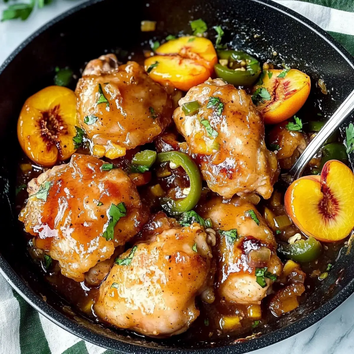 Making Jalapeno Peach Chicken ahead of time is a fantastic way to save precious minutes on busy weeknights! You can prepare the peach glaze and marinate the chicken thighs up to 24 hours in advance. Simply mix together the glaze ingredients, then coat the chicken and store it in an airtight container in the refrigerator. To maintain quality, ensure the chicken is marinated in the glaze overnight to infuse those delicious flavors. When you’re ready to cook, just follow the normal instructions, searing the chicken, and finishing with the sautéed veggies. You’ll have a flavorful and satisfying meal ready to impress, all while freeing up more time for yourself!