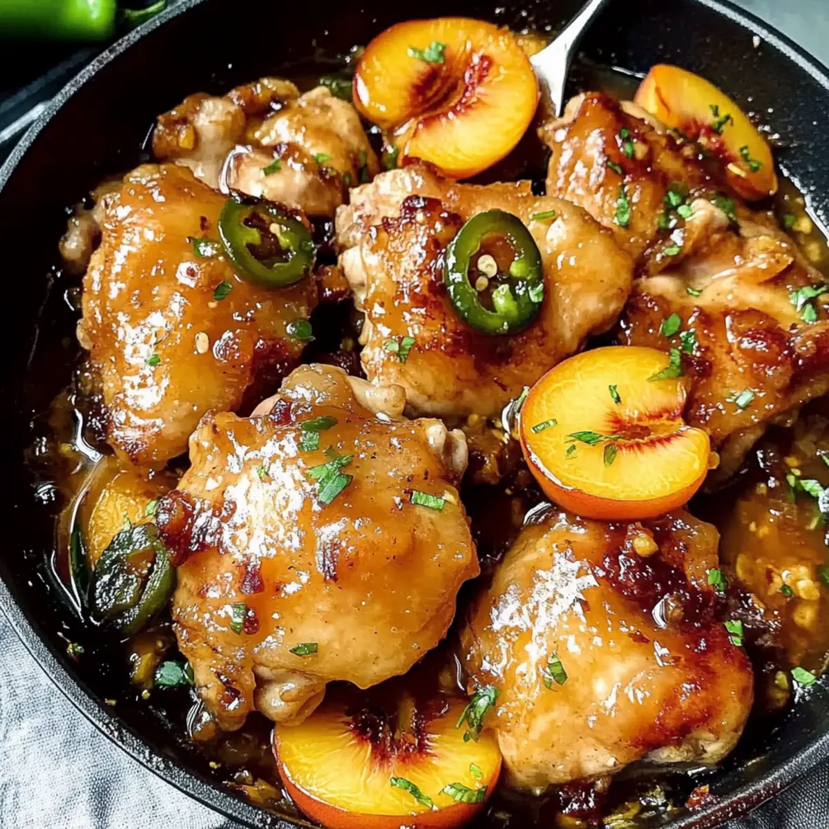 The sizzling sound of chicken hitting a hot pan instantly transports me to summer evenings filled with golden sunlight and laughter. It’s during these warm moments that I’ve perfected my recipe for Jalapeno Peach Chicken, a one-pan marvel that perfectly marries sweet and spicy flavors. Not only does this dish come together in a snap, making it perfect for any busy weeknight, but it also brings a delightful twist to traditional summer dinners. The juicy peaches and fiery jalapenos create a sticky glaze that caramelizes into pure bliss. You’ll love how easy it is to prepare—who wouldn’t want a fantastic meal with minimal cleanup? So, are you ready to transform your dinner routine with this mouthwatering creation?
