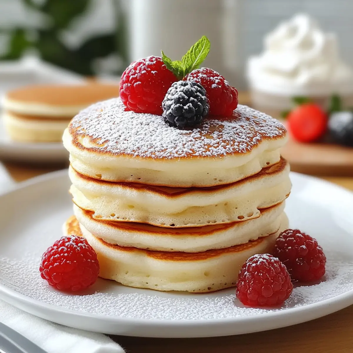 • Fresh Berries: Strawberries and blueberries provide a burst of juicy sweetness that balances the pancakes’ light, airy texture. Scatter them alongside for a colorful touch!