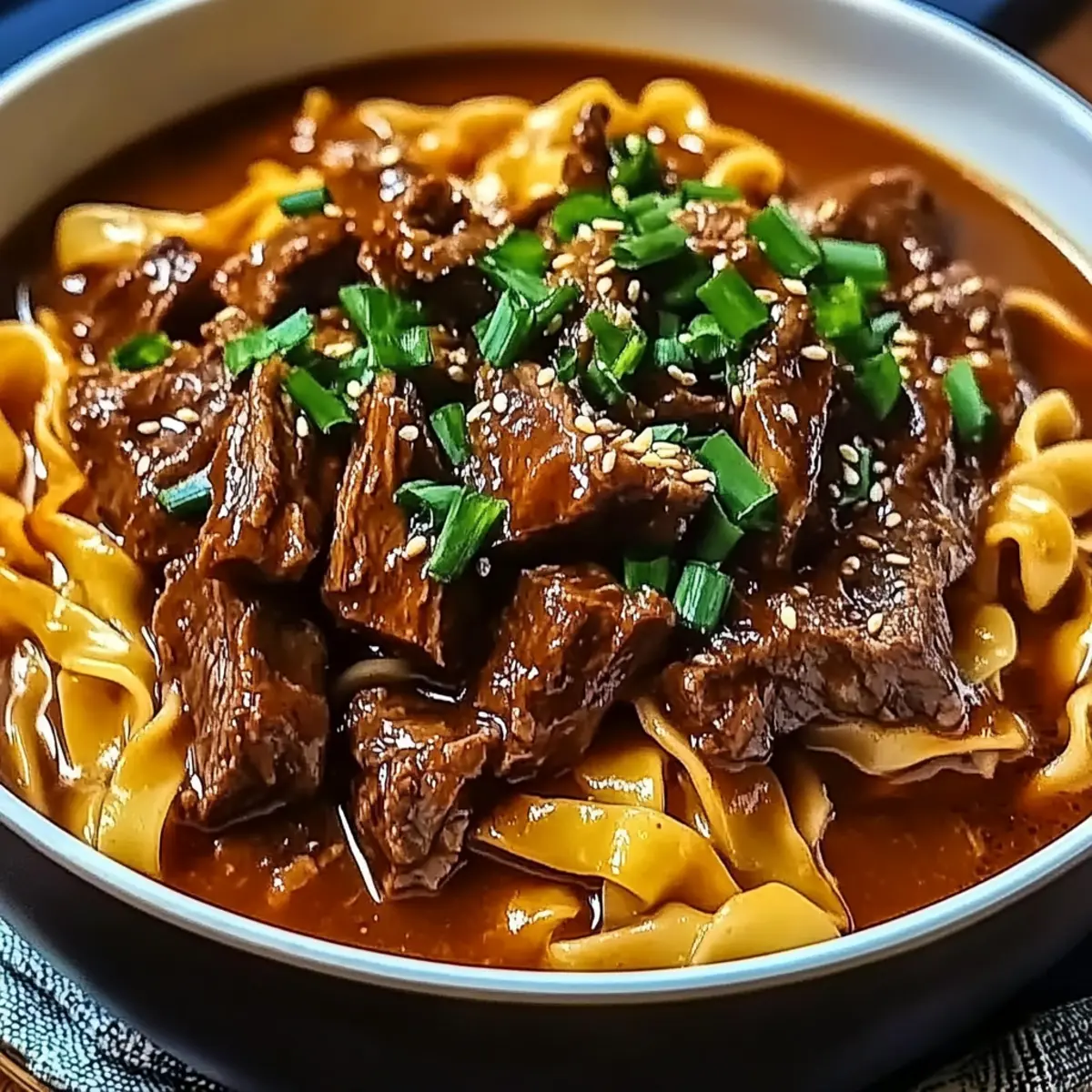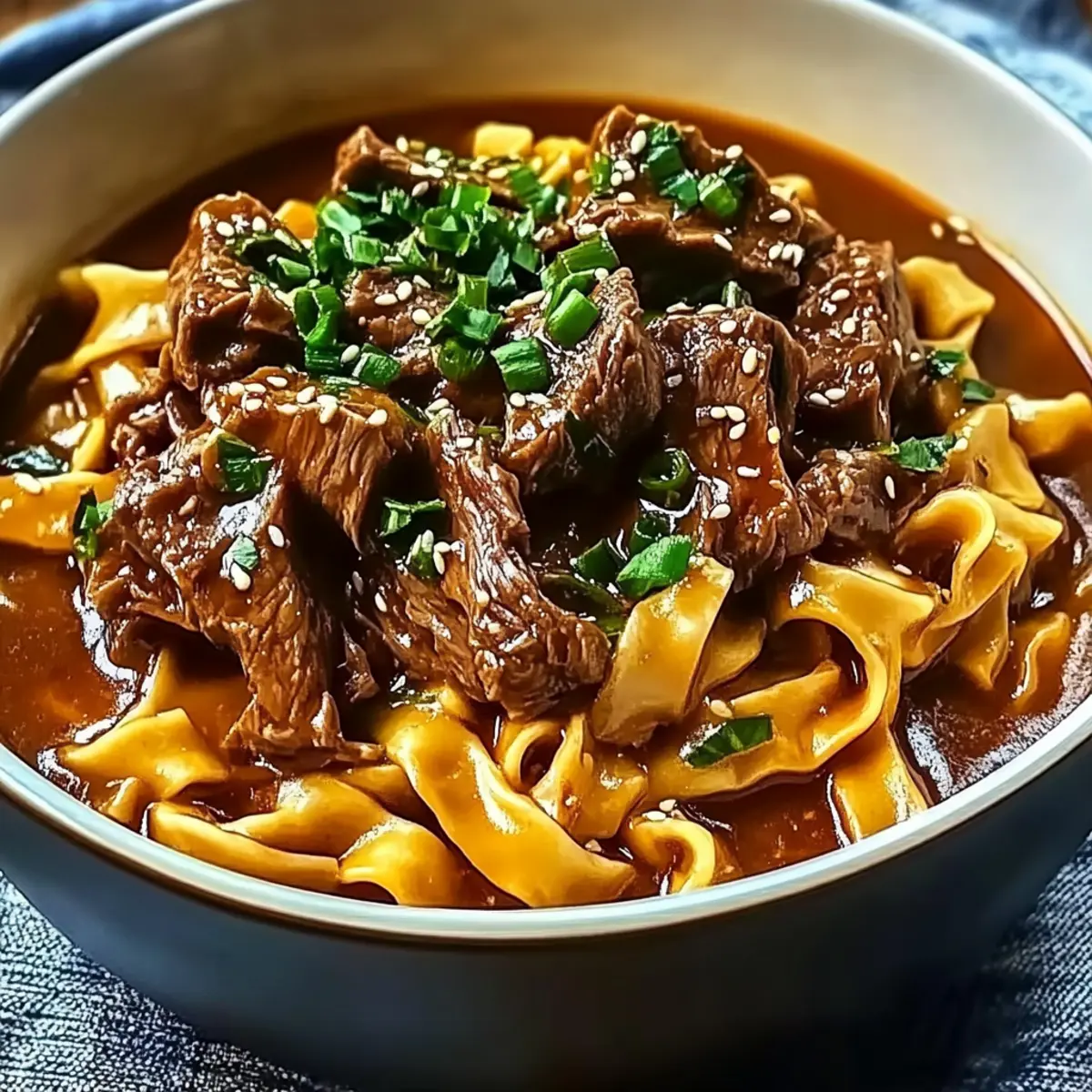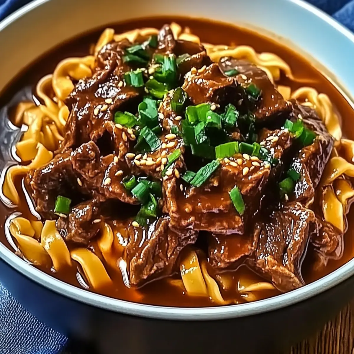 Jump to Recipe Print RecipeAs the evening settles in and the air turns crisp, there’s nothing quite like the embrace of a warm bowl of Slow Cooker Korean Beef Noodles. The melting tenderness of the beef, paired with the aromatic blend of soy sauce, ginger, and gochujang, will sweep you off your feet. This recipe not only delivers on comfort food but also offers the joy of minimal prep time. With its effortless slow cooking, you can savor each hungry moment without being glued to the stove. Imagine coming home to the enticing scent of savory broth and perfectly softened noodles, ready to dive into. Are you ready to bring a touch of Korean delight into your kitchen? Let’s get started! Why Are Korean Beef Noodles So Special? Comforting and Satisfying: This dish brings warmth on the coldest nights, wrapping you in a cozy embrace with its rich broth and tender beef. Slow Cooking Magic: Let your slow cooker do the work! With just a few minutes of prep, you’ll have a delicious, homemade meal waiting for you. Flavorful Ingredients: The combination of ginger, garlic, and gochujang lends a unique depth, tantalizing your taste buds with every bite. Versatile and Customizable: Feel free to toss in veggies like bok choy or carrots for added nutrition, or switch up the noodles based on your preference. Perfect for Sharing: Whether it’s a weeknight dinner or a gathering with friends, these Korean Beef Noodles are sure to impress and satisfy everyone’s cravings! Korean Beef Noodles Ingredients For the Beef • 2 pounds beef chuck – Primary protein; adds rich, beefy flavor. Substitution: Chuck can be replaced with brisket for a more marbled texture. • 1 teaspoon black pepper – Enhances overall seasoning. Note: Adjust to taste. For the Sauce • 4 cups beef broth – Provides depth and moisture. Notes: Use low-sodium broth to control saltiness. • 2 cups water – Adjusts consistency; can be replaced with more broth for a richer flavor. • 1 cup soy sauce – Seasoning base; contributes sodium and umami. Substitution: Tamari for gluten-free option. • ¼ cup brown sugar – Balances saltiness and enhances flavor complexity. Note: Can substitute with honey or coconut sugar. • 2 tablespoons ginger, minced – Adds warmth and aromatic flavor. Note: Fresh ginger preferred; powdered can be used in a pinch. • 4 cloves garlic, minced – Provides aromatic depth. Substitution: Garlic powder (1 teaspoon). • 1 tablespoon sesame oil – Introduces nuttiness and richness. Note: Toasted sesame oil offers deeper flavor. • 1 tablespoon gochujang – Korean chili paste for heat and complexity. Substitution: Sriracha for heat without as much sweetness. For the Noodles • 1 pound fresh or dried noodles (such as udon or ramen) – Carbohydrate base for the dish. Note: Use your preferred noodle type as needed. • 3 green onions, sliced for garnish – Adds freshness and color. Note: Can replace with chives. • Sesame seeds – Optional topping for crunch. • Fresh cilantro – Optional garnish for added freshness. Step‑by‑Step Instructions for Korean Beef Noodles Step 1: Prepare the Beef Begin your Korean Beef Noodles by seasoning the 2 pounds of beef chuck with 1 teaspoon black pepper. Make sure each chunk is evenly coated to enhance the flavor. While you prepare the other ingredients, let the beef sit at room temperature for about 15 minutes to allow the seasoning to infuse. Step 2: Mix the Sauce In a mixing bowl, combine 4 cups of beef broth, 1 cup of soy sauce, ¼ cup of brown sugar, 2 tablespoons of minced ginger, and 4 cloves of minced garlic. Whisk them together until the brown sugar is dissolved. This savory sauce will envelop your beef and noodles with rich flavors during the slow cooking process. Step 3: Cook in Slow Cooker Add the seasoned beef chunks into the slow cooker, then pour the sauce mixture over the top. Make sure the beef is well-coated in the sauce. Set your slow cooker on low for 6-8 hours or high for 3-4 hours, ensuring it cooks until the beef is tender and easily shreds with a fork, filling your kitchen with mouthwatering aromas. Step 4: Prepare Noodles About 15-20 minutes before serving, cook your choice of noodles, such as udon or ramen, according to the package instructions. Bring water to a boil in a large pot, then add the noodles and cook until al dente. Drain the noodles carefully, setting them aside while the beef continues to cook. Step 5: Combine Once the beef is tender and ready, gently stir in the cooked noodles into the slow cooker. Mix everything together so that the noodles absorb the rich broth and flavors from the Korean Beef Noodles, letting them soak up the delicious sauce for a couple of minutes to meld. Step 6: Serve Scoop generous portions of the Korean Beef Noodles into serving bowls. Garnish each bowl with sliced green onions, a sprinkle of sesame seeds, and fresh cilantro for a pop of color and flavor. Serve hot, and enjoy the comforting warmth these noodles bring with every bite. Make Ahead Options These comforting Korean Beef Noodles are perfect for meal prep enthusiasts! You can season the beef and mix the sauce up to 24 hours in advance; just refrigerate them separately to maintain freshness. Additionally, you can cook the noodles and store them in an airtight container in the fridge for up to 3 days. To keep the noodles from becoming mushy, undercook them slightly (about a minute less than the package instructions). When you’re ready to serve, simply add the beef and sauce to a slow cooker and set it to cook, then stir in the pre-cooked noodles in the last few minutes. This way, you’ll have a delightful, hassle-free meal waiting for you at the end of a busy day! What to Serve with Korean Beef Noodles There’s nothing like a cozy meal to elevate your dining experience alongside the wonderfully rich and savory Korean Beef Noodles. Steamed Bok Choy: A simple side that adds a fresh, crunchy contrast, balancing the richness of the beef