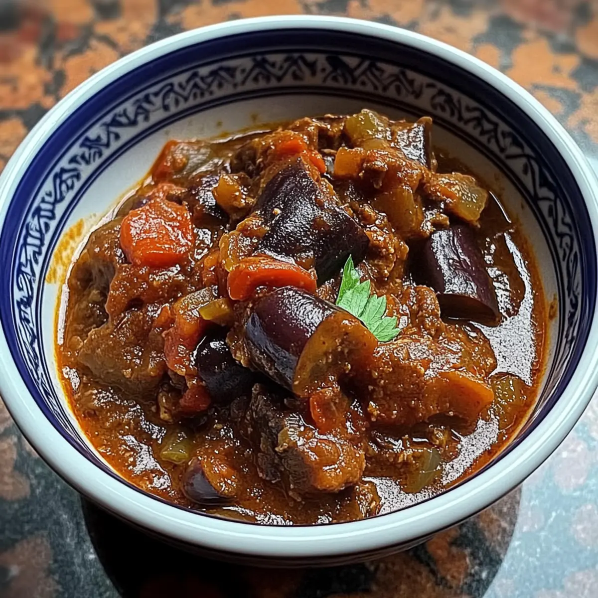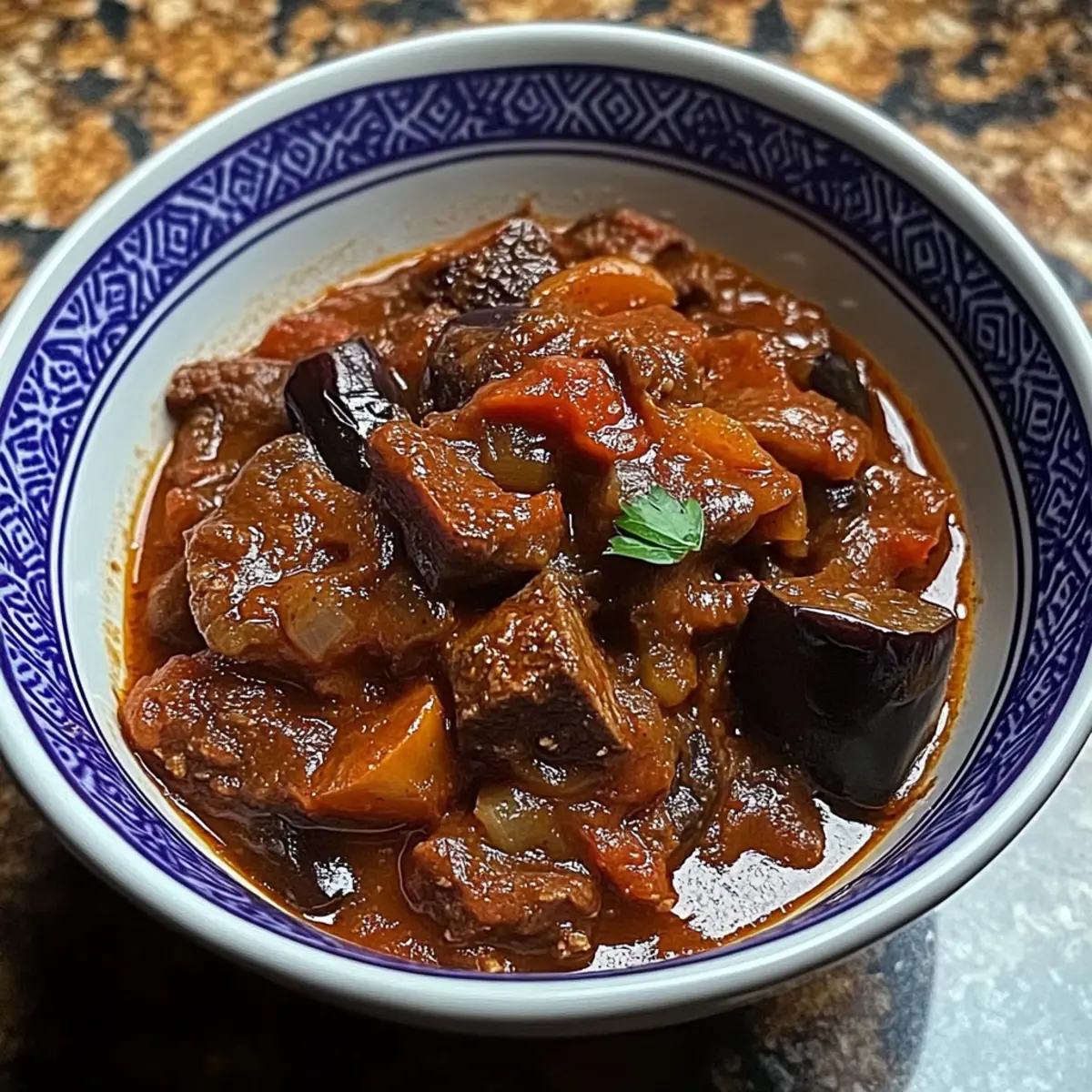 Jump to Recipe Print RecipeAs I stood by the stove, the air filled with the enticing scents of spices, I realized that cooking is less about perfection and more about creating magic. This Lamb Stew with Roasted Eggplant is a culinary embrace—both hearty and comforting, making it ideal for those chilly evenings or whenever you crave a satisfying meal. With its succulent lamb and soft, roasted eggplant, this dish is not just a feast for the senses; it’s also versatile enough to adapt for vegetarians who can swap lamb for chickpeas. Plus, it’s perfect for meal prep, allowing you to enjoy leftovers throughout the week! Are you ready to dive into a bowl of warmth and flavor? Let’s get started! Why is this Lamb Stew so special? Comforting, hearty dish: This Lamb Stew with Roasted Eggplant envelops you in warmth, making it the ideal meal for cozy family dinners. Versatile substitutions: Easily swap lamb for chickpeas or lentils, accommodating both meat lovers and vegetarians alike. Unforgettable flavors: The combination of spices and roasted eggplant creates a rich, mouthwatering profile that leaves you craving more! Perfect for meal prep: Whip up a big batch for effortless leftovers, ready to be enjoyed throughout the week. Crowd-pleaser: Ideal for gatherings, this stew will impress your guests and spark delightful conversations around the dinner table. Pair it with warm pita or tangy Greek salad for a complete experience you won’t forget! Lamb Stew with Eggplant Ingredients For the Stew Eggplant – Adds texture and absorbs flavors beautifully; substitute with zucchini for a lower-carb twist. Olive Oil – Enhances richness during sautéing and roasting; consider using avocado oil for a higher smoke point. Lamb (boneless, cubed) – Core protein providing flavor and heartiness; ground lamb or chickpeas work well for a vegetarian option. Onion – Adds sweetness and depth when sautéed; yellow or white onion is preferred for the best flavor. Garlic – Provides aromatic flavor; fresh garlic is best, but garlic powder can be used in a pinch. Red Wine – Contributes acidity and richness; substitute with beef stock or grape juice for a non-alcoholic version. Tomato Paste – Introduces concentrated tomato flavor; alternatively, use crushed fresh tomatoes for a fresher taste. Canned Tomatoes – Forms the base for the stew; fresh tomatoes can add a seasonal twist. Lamb or Beef Stock – Gives moisture and depth; vegetable stock can lighten it up for a vegetarian option. Bay Leaf – Adds earthy undertones; no direct substitute, but Italian seasoning provides a similar flavor. Pepper – Essential seasoning; can be substituted with black pepper or omitted for sensitivity. Thyme – Adds a lovely herbal note; dried thyme can easily substitute fresh. Cinnamon Stick (or ground) – Infuses key warmth; ground cinnamon can substitute, just reduce the quantity. Allspice – Brings flavor complexity; nutmeg can be used instead but will yield a different taste profile. Nutmeg – Preferably freshly grated; it can be omitted if unavailable. Salt – Essential for enhancing flavors; adjust to taste as needed. Fresh Parsley – For garnish, adding color and a burst of freshness; cilantro can be a delightful substitute for a different flavor profile. Get ready to create this mouthwatering Lamb Stew with Eggplant that warm up your soul and please your taste buds! Step‑by‑Step Instructions for Lamb Stew with Eggplant Step 1: Preheat and Roast Eggplant Preheat your oven to 400°F (200°C). While it heats up, dice the eggplant and toss it in a generous amount of olive oil until evenly coated. Spread the eggplant pieces on a baking sheet in a single layer and roast for 20 minutes, or until they turn golden brown and tender. This roasting process will enhance the flavors, making for a delicious addition to your Lamb Stew with Eggplant. Step 2: Sear Lamb In a large, heavy-bottomed pot, heat a tablespoon of olive oil over medium-high heat. Once the oil is shimmering, add the cubed lamb and sear it for 5-7 minutes, stirring occasionally, until nicely browned on all sides. This step not only adds depth to your stew but also locks in the juices of the meat. After browning, remove the lamb from the pot and set it aside. Step 3: Sauté Onion and Garlic In the same pot, add the diced onion and minced garlic, sautéing for 4-5 minutes over medium heat. Stir frequently until the onion becomes translucent and fragrant. This combination forms the aromatic base of your Lamb Stew with Eggplant. Don’t rush; the sweet scent of the caramelized onion is worth the wait! Step 4: Combine Ingredients Return the browned lamb to the pot, along with the roasted eggplant. Pour in the red wine, adding depth and richness, and stir in the tomato paste and canned tomatoes. Next, add the lamb or beef stock and sprinkle in your chosen spices and herbs, including thyme and bay leaf. Mix everything thoroughly to ensure the flavors meld beautifully together. Step 5: Simmer Bring the stew to a gentle boil, then reduce the heat to low and cover the pot. Allow it to simmer for about 2.5 to 3 hours, stirring occasionally. If you prefer a slow cooker, transfer the contents to one and cook for 4 to 8 hours on low. This slow-cooking process ensures that the lamb is tender and the flavors have a chance to bond, creating a heartwarming Lamb Stew with Eggplant. Step 6: Serve Once cooked, remove the stew from heat and discard the bay leaf. Garnish generously with fresh parsley for a pop of color and freshness. Serve your Lamb Stew with Eggplant hot, alongside warm pita bread or fluffy rice for the perfect comforting meal. Relish in the inviting aroma and share this hearty dish with your loved ones around the dinner table! Make Ahead Options Preparing this Lamb Stew with Roasted Eggplant in advance is a fantastic way to save time during your busy week! You can pre-chop the vegetables, including the eggplant and onion, and store them in an airtig