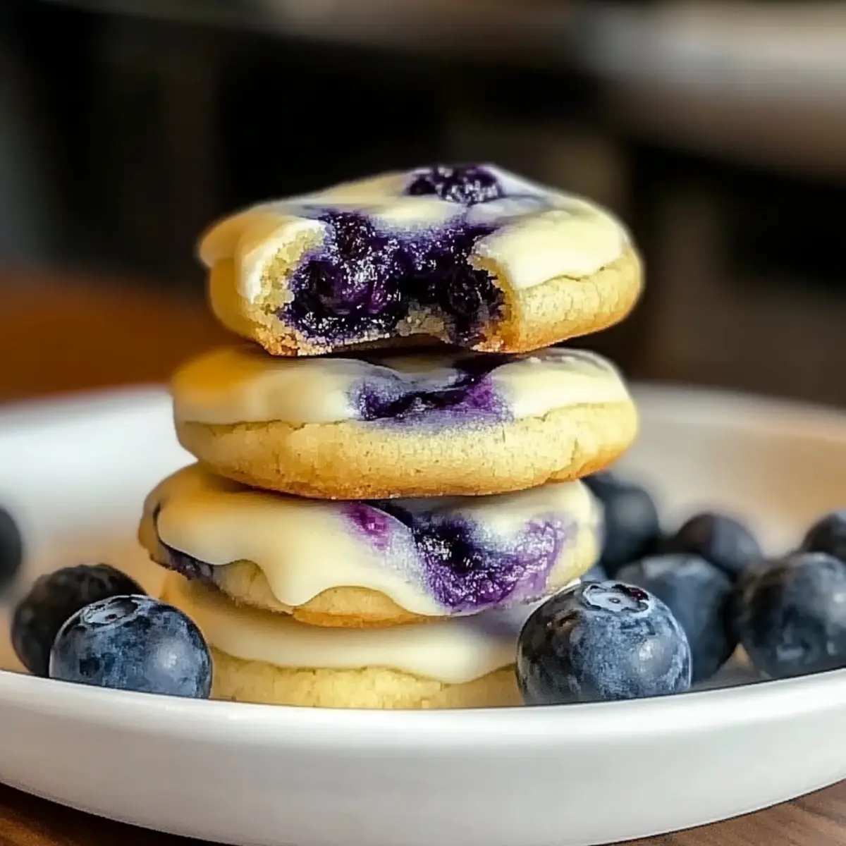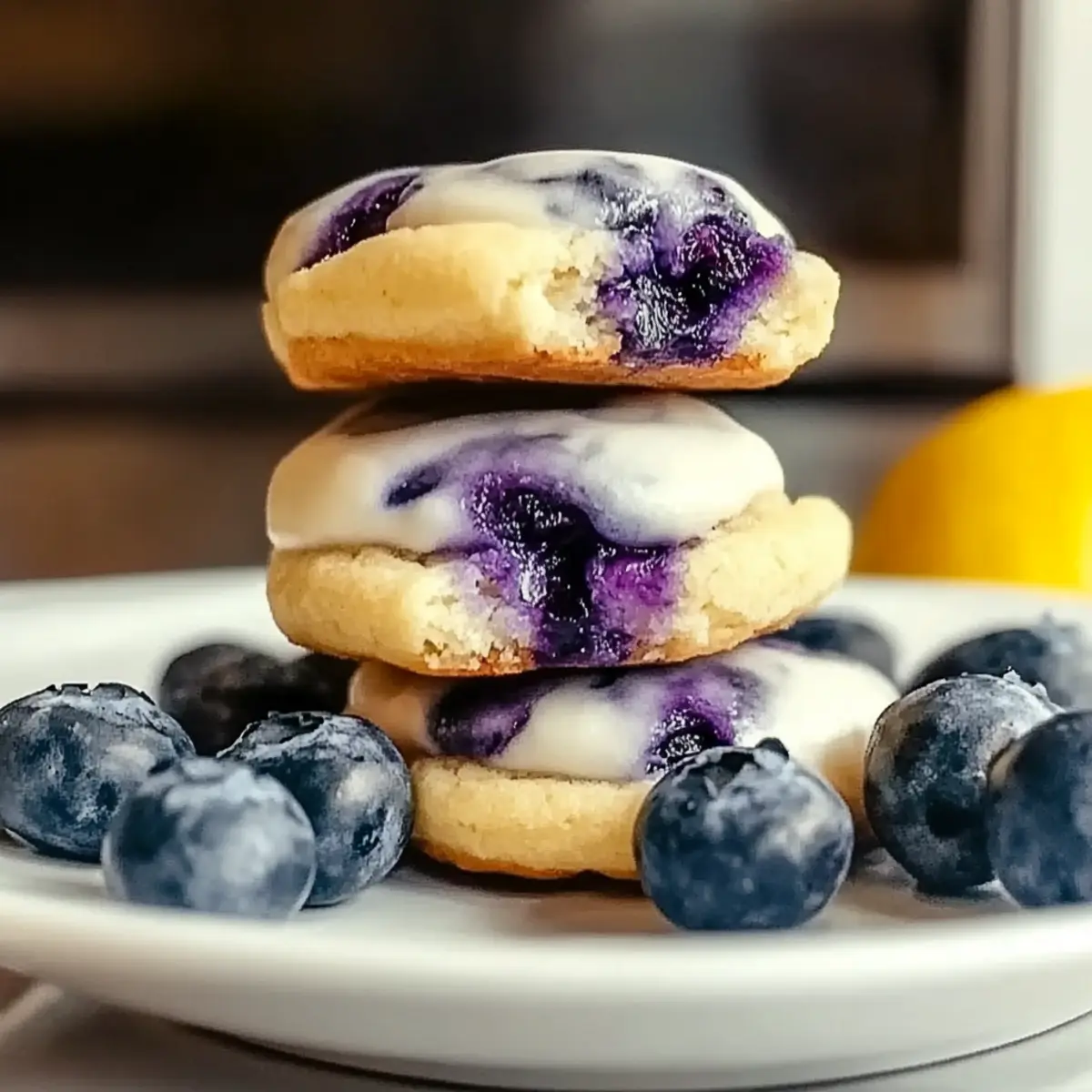 Jump to Recipe Print RecipeThe day I discovered Lemon Blueberry Cheesecake Cookies was a true turning point in my baking adventures. From the very first bite, the bright zest of lemon intertwined with plump, juicy blueberries created an explosion of taste that instantly lifted my spirits. These gems are not only quick to prepare—ready in just under 30 minutes—but also incredibly customizable, making them perfect for any occasion. Whether you’re crafting a treat for a casual gathering or just indulging in a sweet moment at home, these cookies are sure to impress. Plus, they cater to various dietary preferences, with gluten-free and vegan options available. Curious about how to bring sunshine to your kitchen today? Let’s dive into this delightful recipe! Why make Lemon Blueberry Cheesecake Cookies? Irresistibly Delicious: The fusion of zesty lemon and sweet blueberries creates a flavor sensation that’s both refreshing and indulgent. Quick to Bake: With just 30 minutes from start to finish, these cookies are perfect for busy bakers wanting a fast treat. Customizable: Enjoy the versatility of substituting flavors, from berries to flour types—whip up a Cherry Cheesecake Puppy for a fun twist! Perfect Texture: Experience a chewy exterior and a creamy center, making every bite a delightful treat. Crowd-Pleasing: Ideal for gatherings, these cookies will leave your guests raving and asking for the recipe. A great addition to any dessert spread alongside Churro Cheesecake Bliss or Caramelized Banana Cheesecake! Dive into this sunshine-packed recipe—it’s time to bring a little bliss to your baking! Lemon Blueberry Cheesecake Cookies Ingredients Note: Gather these ingredients for the perfect Lemon Blueberry Cheesecake Cookies! For the Blueberry Jam • Fresh Blueberries – Adds natural sweetness and flavor; frozen blueberries work if well-thawed. • Sugar – Sweetens the jam; you can use brown sugar for a deeper flavor. For the Cream Cheese Filling • Cream Cheese – Provides a rich, creamy texture; substitute with mascarpone for a twist. • Vanilla Extract – Enhances the sweet flavor of the filling for delightful taste. For the Cookie Dough • Unsalted Butter – Ensures a rich flavor; use unsalted for more control over salt. • All-Purpose Flour – Provides structure; swap with a gluten-free blend if needed. • Lemon Zest – Infuses a bright, fresh note; freshly grated is best for maximum flavor. • Egg – Binds the dough; aquafaba is a great vegan alternative. • Baking Powder – Helps cookies rise; make sure it’s fresh for best results. • Salt – Balances flavors and enhances sweetness; an essential part of the dough. • Sugar – Sweetens both dough and filling; feel free to use a sugar substitute for a healthier option. Get ready to whip up these delightful cookies—they promise to brighten your day! Step‑by‑Step Instructions for Lemon Blueberry Cheesecake Cookies Step 1: Prep Blueberry Jam In a medium saucepan, combine fresh blueberries and sugar over medium heat. Stir gently and bring to a simmer for 10-15 minutes, allowing the mixture to thicken and the blueberries to burst. You’ll know it’s ready when it coats the back of a spoon. Remove from heat and let it cool while you prepare the filling and dough. Step 2: Make Filling In a mixing bowl, beat cream cheese, sugar, and vanilla extract together until smooth and creamy. This should take about 2-3 minutes with an electric mixer on medium speed. Once well combined, transfer the filling to the refrigerator for 15-20 minutes to help it firm up, making it easier to work with later on. Step 3: Prepare Dough In a separate bowl, whisk together flour, baking powder, and salt. In a large mixing bowl, cream unsalted butter, sugar, and freshly grated lemon zest until light and fluffy, about 5 minutes. Then mix in the egg (or aquafaba for a vegan option), followed by the dry ingredients, until just combined. Don’t overmix; the dough should be soft and slightly sticky. Step 4: Chill Dough Wrap the dough in plastic wrap and refrigerate for at least 30 minutes. This step is crucial for maintaining the shape of your Lemon Blueberry Cheesecake Cookies while baking. When you’re ready to bake, preheat your oven to 350°F (175°C) to ensure it’s hot enough for even cooking. Step 5: Assemble Cookies Once the dough has chilled, roll it into small balls and use your thumb to create a small indentation in each. Add a dollop of the cheesecake filling followed by a spoonful of the blueberry jam in the center. Gently fold the edges over the filling to seal the cookies, ensuring no filling is exposed. Step 6: Bake Place your sealed cookies on a parchment-lined baking sheet, spacing them about 2 inches apart. Bake in the preheated oven for 12-15 minutes, or until the edges are golden and the tops look set. The centers may appear soft, but they will firm up as they cool. Step 7: Cool Allow the cookies to cool on the baking sheet for 5 minutes before transferring them to a wire rack. This will help them set properly and avoid breaking. Let them cool completely before enjoying your delightful Lemon Blueberry Cheesecake Cookies! Storage Tips for Lemon Blueberry Cheesecake Cookies Room Temperature: Store in an airtight container at room temperature for up to 3 days to maintain freshness and flavor. Fridge: If you’d like them to last a bit longer, place the cookies in the refrigerator for up to 1 week. Just be sure they’re in an airtight container to avoid drying out. Freezer: For longer storage, freeze the cookies for up to 3 months. Layer them between parchment paper in an airtight container or freezer bag to prevent sticking. Reheating: When ready to enjoy, allow them to thaw at room temperature or pop them in the microwave for a few seconds to bring back that warm, gooey texture. Lemon Blueberry Cheesecake Cookies Variations Feel free to make these cookies your own with these delightful twists that will elevate yo