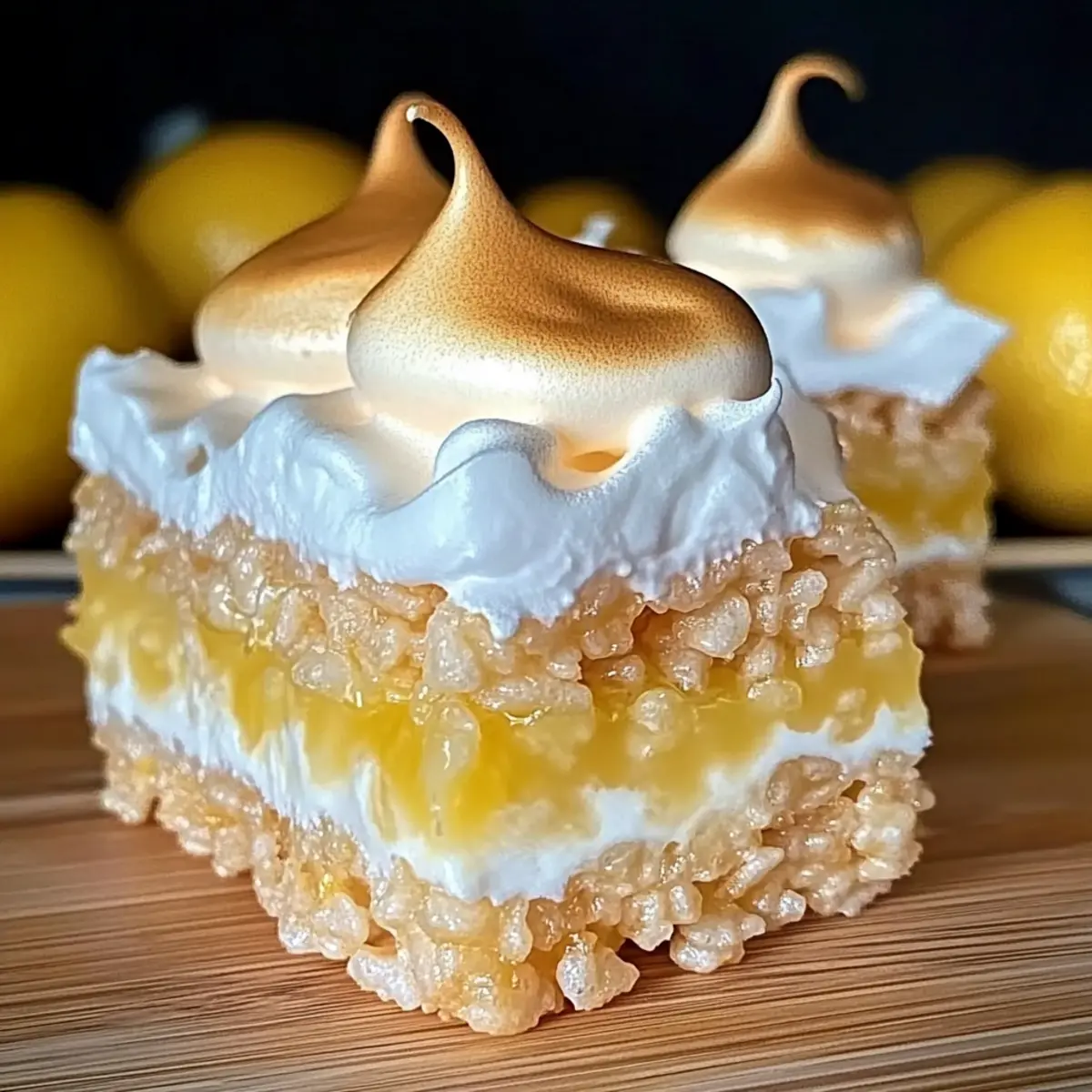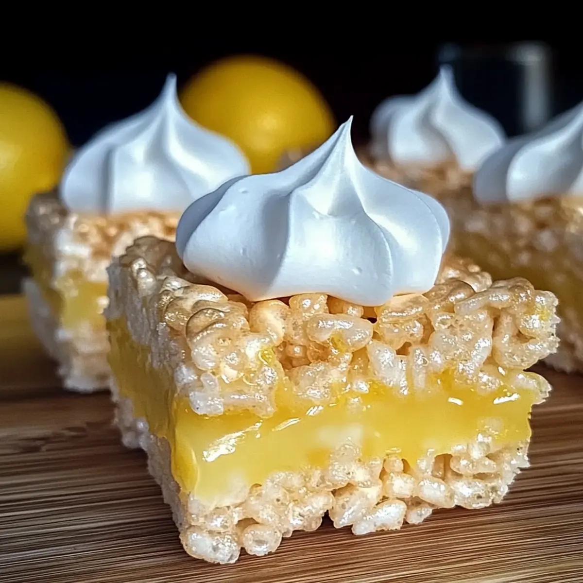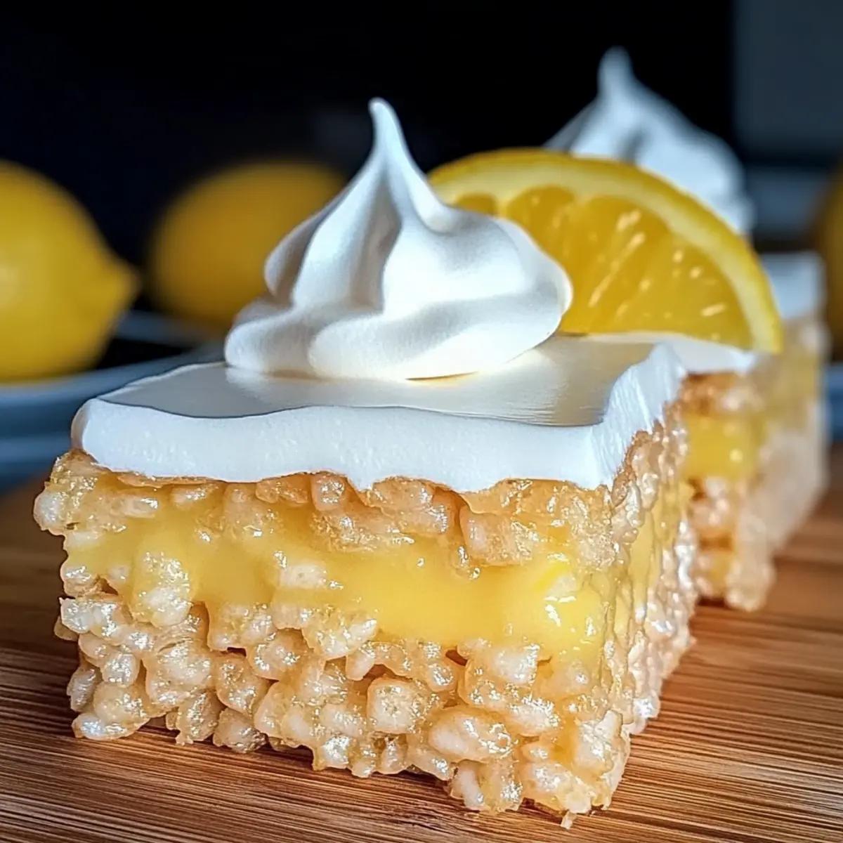 Jump to Recipe Print RecipeAs I was whisking away in my kitchen, a delightful thought struck me: what if I could blend the nostalgic crunch of Rice Krispie Treats with the refreshing zing of lemon meringue pie? Enter the Lemon Meringue Rice Krispie Treats—a no-bake masterpiece that’s perfect for those days when you crave something sweet yet simple. These incredible treats not only save you from the hassle of an oven but also promise to be a crowd-pleaser at any gathering. With endless customization options, you can tailor them to suit every palate, making them ideal for anyone focusing on gluten-free or dairy-free alternatives. Ready to turn your treat game up a notch? Let’s dive into this zesty adventure together! Why Try Lemon Meringue Rice Krispie Treats? Irresistible Combination: These treats are a delightful fusion of classic Rice Krispie crunch and zesty lemon meringue, making them a unique dessert that stands out. Easy Preparation: No baking is required! Just follow a few simple steps for a sweet treat that’s incredibly easy to whip up. Customizable Options: Choose your own adventure with flavors—swap in different puddings or add berries for a personal twist. Diet-Friendly: With gluten-free and dairy-free modifications available, everyone can indulge in this light, refreshing dessert. Crowd Favorite: Bring smiles to any gathering, from birthday parties to casual picnics. Serve these alongside Cinnamon Rolls Lemon for an added zesty surprise! Make-Ahead Goodness: Prep layers beforehand to save time on the day of serving, keeping your event stress-free and delicious! Lemon Meringue Rice Krispie Treats Ingredients For the Lemon Curd Fresh lemon juice – Provides bright acidity; store-bought is a quick alternative. Large eggs – Adds richness to the curd for a creamy texture. Unsalted butter – Contributes creaminess; swap with vegan butter for a dairy-free version. Freshly grated lemon zest – Enhances the lemon flavor and adds freshness. Sugar – Sweetens the curd; consider using coconut sugar for a healthier twist. For the Rice Krispies Layer Unsalted butter – Binds the mixture; coconut oil works great for a dairy-free option. Marshmallows – Provide that chewy texture; mini marshmallows can be used instead. Instant lemon pudding – Intensifies the lemon flavor, or use vanilla pudding for a different vibe. Rice Krispies cereal – The crunchy base; don’t forget to choose gluten-free varieties if needed. For the Meringue Large egg whites – Creates the light, airy texture; ensure they’re at room temperature for best results. Granulated sugar – Stabilizes the meringue; sugar substitutes can easily replace this. Cream of tartar – Helps stabilize the egg whites; omitting it may affect texture slightly. Fine sea salt – Enhances the overall flavor beautifully. Pure vanilla extract – Optional, but it adds an extra layer of flavor that pairs nicely with lemon. Get ready to enjoy these delightful Lemon Meringue Rice Krispie Treats that are not only a treat to make but also a joy to eat! Step‑by‑Step Instructions for Lemon Meringue Rice Krispie Treats Step 1: Prepare Baking Dish Begin by spraying a 9 x 13-inch baking dish with cooking spray to prevent sticking. Set it aside while you prepare the delicious layers of Lemon Meringue Rice Krispie Treats. This step ensures your treats will come out easily once set, so take a moment to make this simple preparation before moving on. Step 2: Make Lemon Curd In a double boiler, mix the unsalted butter, fresh lemon juice, lemon zest, and sugar over medium heat. Once the butter has melted, gradually whisk in the beaten eggs, continuing to stir for about 10–12 minutes until the mixture thickens. Once ready, remove it from the heat, cool slightly, and refrigerate until fully chilled for a refreshing zing. Step 3: Prepare Rice Krispie Layer In a large saucepan, melt the butter and marshmallows over low heat, stirring continuously until smooth. Once melted, remove from heat and mix in the instant lemon pudding until thoroughly combined. Gently fold in the Rice Krispies cereal, ensuring every piece is coated. Press the mixture firmly into the prepared dish and let it cool for 30–60 minutes. Step 4: Make Meringue Next, create the meringue by whisking the egg whites, granulated sugar, cream of tartar, and a pinch of salt in a heatproof bowl over simmering water. Stir gently until the mixture is hot to the touch, about 5 minutes. Remove from heat and beat with an electric mixer until stiff peaks form, which typically takes about 7–10 minutes. Step 5: Assemble Treats Once the Rice Krispie layer has cooled, spread the chilled lemon curd generously over the top. Ensure an even layer for balanced flavor in each bite. Then, using a spatula, dollop and carefully spread the fluffy meringue over the lemon curd, creating an elegant finish for your Lemon Meringue Rice Krispie Treats. Step 6: Brown Meringue To achieve a beautiful golden finish, use a kitchen torch to brown the top layer of meringue gently. Alternatively, you can place the assembled treats under a broiler set to low for just 2–4 minutes—watch carefully to prevent burning! Allow your treats to set at room temperature for at least 30 minutes before slicing and serving. Expert Tips for Lemon Meringue Rice Krispie Treats Grease-Free Equipment: Ensure all tools for whipping meringue are completely grease-free. Even a small amount of fat can hinder volume, affecting your meringue’s fluffiness. Chill the Curd: Let the lemon curd cool completely before spreading it on the Rice Krispie layer. This not only enhances the flavor but also helps to prevent the layers from melting together. Room Temperature Egg Whites: For the best meringue results, use room temperature egg whites when whisking. This will increase volume and create a fluffier texture in your Lemon Meringue Rice Krispie Treats. Watch for Browning: Be vigilant while browning the meringue, whether using a kit