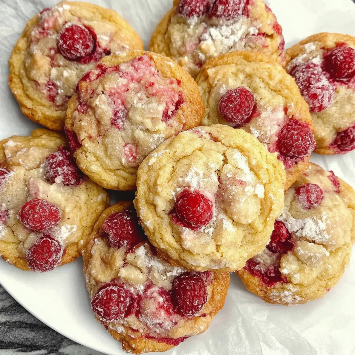 Jump to Recipe Print RecipeAs I pulled the first batch of cookies from the oven, the citrusy aroma of fresh lemons immediately transported me to sun-soaked spring picnics. These Soft and Chewy Lemon Raspberry Cookies combine a delightful zesty base with juicy tart raspberries, creating the perfect sweet treat for your afternoon cravings. Not only are they quick to whip up—with no chilling time needed—but they also come together in under thirty minutes. With a balance of chewy goodness and a burst of flavor, these cookies are ideal for sharing or enjoying solo with a cup of tea. Ready to impress your loved ones or treat yourself? Let’s dive into the joy of baking these vibrant cookies! Why Are These Cookies a Must-Try? Quick and Easy: The recipe takes less than thirty minutes from start to finish, perfect for those impromptu baking sessions. Burst of Flavor: Enjoy the delightful combination of zesty lemon and tart raspberries in every bite, making them an ideal spring snack. Chewy Texture: Features a soft, chewy interior that contrasts wonderfully with the slight crispness of the edges. Versatile Ingredients: Feel free to swap in fresh raspberries or even add white chocolate chips for a unique twist. Checkout our Raspberry Cinnamon Rolls for more delightful berry-infused treats! Crowd-Pleasing: These cookies will undoubtedly impress your friends and family at any gathering, earning you rave reviews. Deliciously Guilt-Free: At about 233 calories per cookie, you can indulge without remorse! Perfect for a mid-afternoon treat or a light dessert after dinner. Lemon Raspberry Cookies Ingredients • Dive into the essentials for these delightful cookies! For the Cookie Base Granulated Sugar – Adds sweetness, creating the deliciously sweet base flavor. Lemon Zest – Brightens the cookie; use fresh for maximum aroma and taste! Butter (Room Temperature) – Provides moisture and richness, ensuring that tender bite. Brown Sugar – Contributes extra sweetness and a slight chewiness to the cookies. Egg Yolk – Binds the ingredients and adds richness; omitting the egg white keeps them denser. Lemon Juice – Infuses tartness and moisture; opt for fresh for best flavor. Vanilla Extract – Enhances the overall flavor, blending beautifully with the citrus notes. Salt – A must for balancing sweetness, enhancing every bite. Baking Powder & Baking Soda – Essential leavening agents for that perfect rise. All-Purpose Flour – Provides structure; be light with your measurements to avoid dense cookies. For the Raspberry Addition Frozen Raspberries (Chopped) – Offers tart bites and moisture; chop small to minimize bleeding juice in the dough. For the Finishing Touch Flaked Salt – Optional, but adds an appealing contrast for a salty-sweet experience. Now you’re all set with the essential ingredients for these Lemon Raspberry Cookies! Let’s get to baking the perfect spring treat. Step‑by‑Step Instructions for Lemon Raspberry Cookies Step 1: Preheat the Oven Begin by preheating your oven to 350°F (175°C). While it warms up, grab two baking sheets and line them with parchment paper. This step ensures your Lemon Raspberry Cookies bake evenly and don’t stick, setting you up for success from the start. Step 2: Mix Sugar and Zest In a large mixing bowl, combine the granulated sugar with the fresh lemon zest. Use your fingers to rub the zest into the sugar until you can smell the fragrant citrus aroma. This step infuses the sweetness of the sugar with the zesty flavor of lemons, creating a delicious foundation for your cookies. Step 3: Cream the Butters Add the softened butter and brown sugar to the sugar-zest mixture. Using an electric mixer on medium-high speed, beat the mixture for about 3-4 minutes until it’s light and fluffy. This process incorporates air into the mix, which is essential for achieving the soft and chewy texture of your Lemon Raspberry Cookies. Step 4: Add Wet Ingredients Next, incorporate the egg yolk, vanilla extract, and fresh lemon juice into the butter mixture. Blend on medium speed until everything is well combined and smooth. The wet ingredients enhance the cookie’s moisture and flavor, balancing the sweetness with a hint of tartness from the lemon juice. Step 5: Combine the Dry Ingredients Gradually add the salt, baking powder, baking soda, and all-purpose flour to the mixture. Use a spatula or wooden spoon to mix gently, stopping just before the flour is fully incorporated. This careful blending prevents overmixing, which can lead to denser cookies, ensuring your Lemon Raspberry Cookies remain soft and chewy. Step 6: Fold in Raspberries Carefully fold the chopped frozen raspberries into the dough using a spatula, being gentle to keep the berries intact and to minimize juice bleeding. This step will add bursts of tart flavor throughout the cookie dough, delivering the desired sweet and tart contrast that perfectly complements the soft lemon base. Step 7: Scoop the Dough Using a cookie scoop or a tablespoon, portion out the dough into 3-tablespoon balls and place them on the prepared baking sheets. Make sure to give each scoop enough space, about 2 inches apart, to allow for spreading. Sprinkle flaked salt on top for an optional salty-sweet kick that balances the flavors beautifully. Step 8: Bake to Perfection Transfer the baking sheets to the preheated oven and bake the cookies for 12-15 minutes until the edges turn golden brown while the centers remain soft. Keep a watchful eye, as every oven varies. Let the cookies sit on the pan for a few minutes before transferring them to a wire rack to cool completely, ensuring they firm up nicely. What to Serve with Lemon Raspberry Cookies Looking to create a delightful spread around these sweet, zesty treats? Here are some perfect pairings that will elevate your cookie experience! Refreshing Iced Tea: A glass of iced tea provides a cooling contrast to the warm, chewy cookies, enhancing the bright lemon flavors beaut