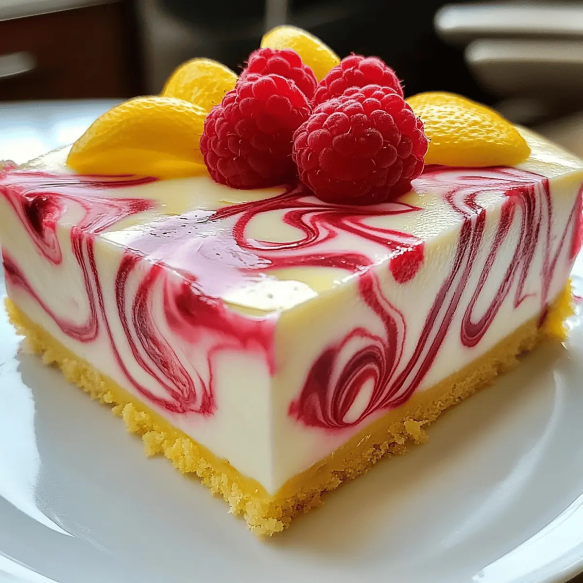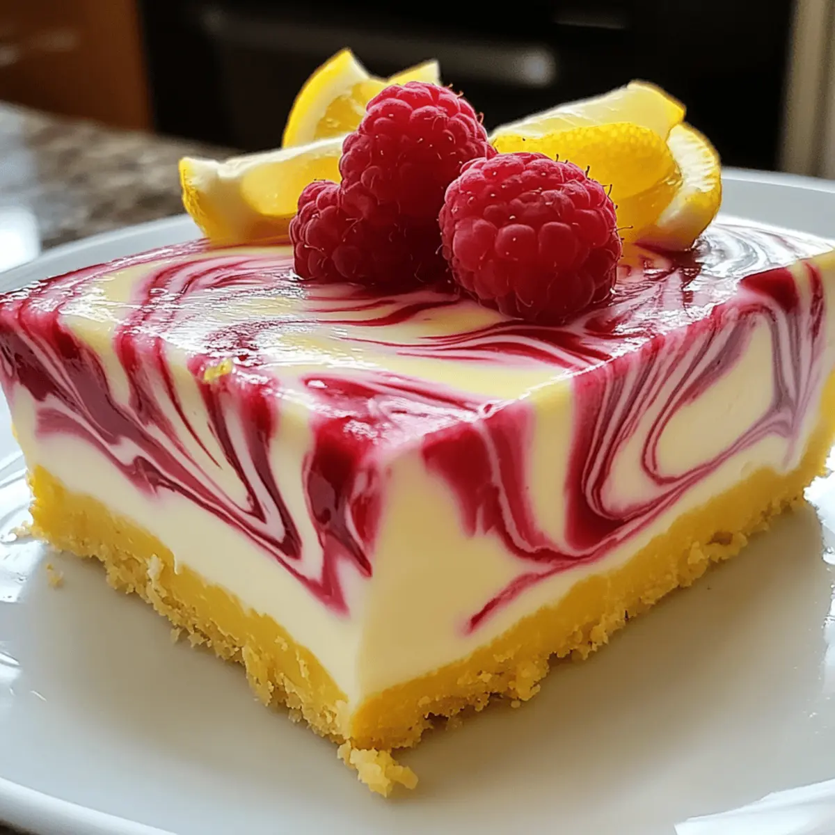 Jump to Recipe Print RecipeA burst of sunshine captured in dessert form—meet my Lemon Raspberry Swirl Cheesecake! This recipe not only brings a creamy texture to the table but marries the zesty brightness of lemons with the sweet-tart goodness of fresh raspberries. Whether you’re celebrating a summer gathering or looking to impress at a dinner party, this cheesecake is always a crowd-pleaser. Best of all, it’s surprisingly simple to prepare, allowing you to create an elegant dish without spending all day in the kitchen. Are you ready to whip up a dessert that will keep everyone coming back for more? Let’s dive into this delightful treat! Why is this cheesecake a must-try? Refreshingly Delicious: This Lemon Raspberry Swirl Cheesecake perfectly balances the tangy flavors of lemons with the sweetness of fresh raspberries, making each bite an uplifting experience. Easier Than You Think: With straightforward steps, you’ll find it’s a breeze to prepare, even if you’re short on time. Perfect for all skill levels! Gorgeous Presentation: Those stunning raspberry swirls create an eye-catching dessert that will excite guests at any occasion, from casual brunches to dinner parties. Versatile Variations: Feel free to play with flavors by substituting other berries like blueberries or strawberries, ensuring every version is uniquely delicious. For more fruity delights, check out my Raspberry Cinnamon Rolls or indulge in Cherry Cheesecake Puppy Chow! LEMON RASPBERRY SWIRL CHEESECAKE INGREDIENTS For the Crust • Graham Cracker Crumbs – Essential for a crunchy base; substitute with digestive biscuits for a twist. • Granulated Sugar – Adds sweetness to the crust; consider brown sugar for a richer flavor. • Unsalted Butter (melted) – Binds everything together; coconut oil works for a dairy-free alternative. For the Cheesecake Filling • Cream Cheese (softened) – The star ingredient for creaminess; Neufchâtel cheese lightens the texture if desired. • More Granulated Sugar – Enhances sweetness in the filling; always taste for balance. • Vanilla Extract – Deepens flavor; use vanilla bean paste for an extra aromatic touch. • Large Eggs – Crucial for structure; swap with a flaxseed mixture for a vegan option. • Juice and Zest of 2 Lemons – Infuses a bright, zesty flavor; essential for your Lemon Raspberry Swirl Cheesecake. • Sour Cream – Adds creaminess and tang; Greek yogurt is a great substitute. For the Raspberry Sauce • Fresh Raspberries – Provides sweetness and tartness; other berries can be swapped depending on your preference. • Sugar (for raspberry sauce) – Balances the tart berries; consider honey or agave as sweeteners. • Lemon Juice (for raspberry sauce) – Enhances the berry flavor; lime juice creates an interesting twist. • Cornstarch – Thickens the sauce to the right consistency; arrowroot powder serves as a good alternative. • Water – Helps to cook down the raspberry sauce efficiently. Enjoy creating this delightful Lemon Raspberry Swirl Cheesecake that brightens your day! Step‑by‑Step Instructions for LEMON RASPBERRY SWIRL CHEESECAKE Step 1: Prepare the Crust Preheat your oven to 350°F (175°C). In a mixing bowl, combine graham cracker crumbs, sugar, and melted butter until the mixture resembles wet sand. Firmly press this into the bottom of a springform pan to create a solid crust. Bake for 10 minutes until lightly golden, then remove from the oven and let it cool completely while you prepare the filling. Step 2: Make the Cheesecake Filling In a large mixing bowl, beat the softened cream cheese with a hand mixer until creamy and smooth. Gradually add in sugar and vanilla extract, mixing well until combined. Incorporate eggs one at a time, followed by lemon juice and zest, and finally the sour cream. Blend until everything is incorporated, ensuring a smooth batter without lumps, perfect for your Lemon Raspberry Swirl Cheesecake. Step 3: Prepare Raspberry Sauce In a saucepan over medium heat, combine fresh raspberries, sugar, lemon juice, cornstarch, and water. Stir gently while cooking; let it bubble and thicken for about 5-7 minutes. Once thickened and saucy, remove from heat and allow to cool slightly before incorporating it into your cheesecake, bringing a burst of fruity flavor to the dessert. Step 4: Combine and Bake Pour the silky cheesecake filling over your cooled crust, spreading it evenly. Now, take the luscious raspberry sauce and dollop it over the cheesecake filling. Using a knife, gently swirl the raspberry sauce through the batter, creating beautiful patterns. Bake your Lemon Raspberry Swirl Cheesecake in the preheated oven for 60-70 minutes, until the center appears slightly jiggly but set around the edges. Step 5: Cool Down Once baking is complete, turn off the oven and crack open the door slightly to allow the cheesecake to cool slowly for about an hour. This gentle cooling helps prevent cracks. After that, carefully transfer the cheesecake to the refrigerator and chill for at least 4 hours, or overnight, to let the flavors meld beautifully before serving. LEMON RASPBERRY SWIRL CHEESECAKE Variations Feel free to personalize your Lemon Raspberry Swirl Cheesecake with these fun and delicious twists! Berry Swap: Substitute raspberries with strawberries or blueberries for a different fruity flavor. Each berry brings its unique sweetness to the dessert. Whipped Topping: Add a layer of homemade whipped cream on top for an extra touch of creaminess. It adds a light, fluffy contrast to the rich cheesecake. Citrus Zest: Experiment with the zest of limes or oranges in your filling for a vibrant flavor twist. The bright citrus notes will enchant your palate! Nutty Crust: Try using crushed almonds or pecans mixed with the graham cracker crumbs for added texture and a rich flavor in the crust. It’ll create a delightful crunch. Chocolate Drizzle: Drizzle melted chocolate over the top before serving for a decadent touc