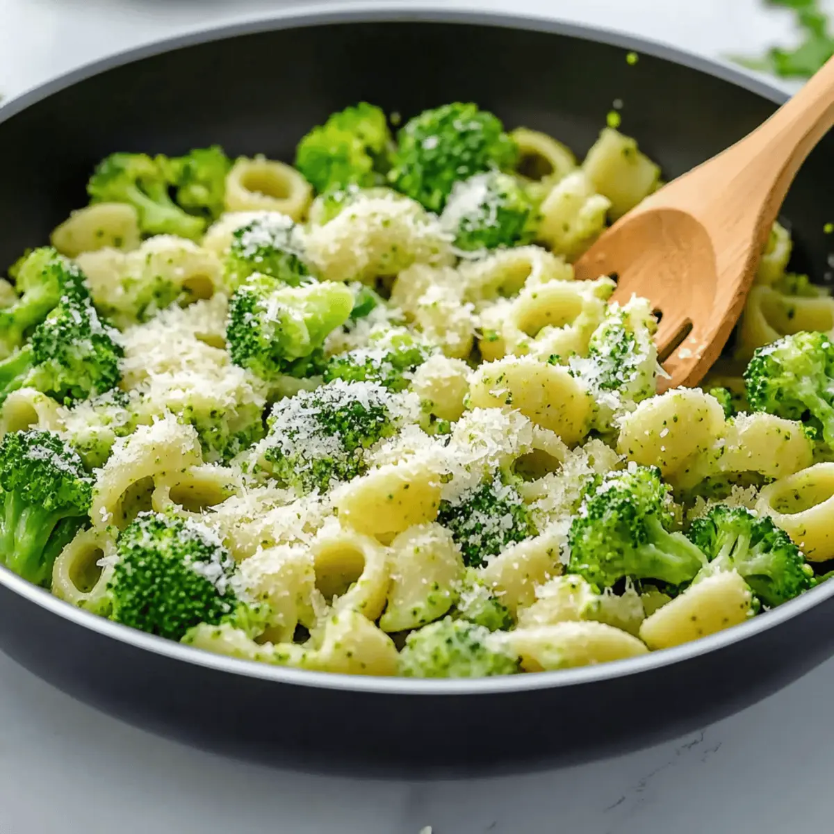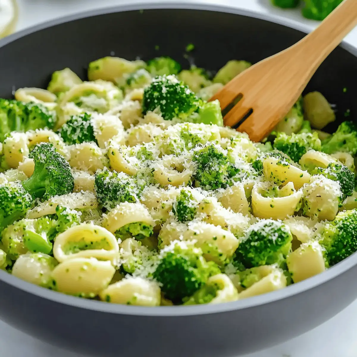 Jump to Recipe Print RecipeAs I stood in my kitchen, the vibrant green of fresh broccoli caught my eye, sparking a craving for something light yet satisfying. That’s when I realized it was the perfect time to whip up a dish that celebrates simplicity: Light and Healthy Broccoli Pasta. This recipe not only champions a variety of wholesome ingredients, but it also takes less than 30 minutes to prepare, making it a delightful option for any night. Plus, it’s flexible enough to work with what you already have on hand—whether it’s swapping out pasta for your gluten-free favorite or adding a sprinkling of nuts for some crunch. Ready to dive into a dish that’s both nourishing and irresistible? Let me show you how! Why is Broccoli Pasta So Amazing? Fresh, Vibrant Ingredients: The key to this dish is its wholesome components. Broccoli adds not just nutrients but a beautiful color that brightens your plate. Quick Prep Time: With this recipe, you can have dinner on the table in under 30 minutes, making it perfect for busy weeknights. Endless Adaptability: This light and healthy broccoli pasta is versatile! Swap in your favorite pasta or throw in seasonal veggies like cherry tomatoes for added flair. Don’t forget you can elevate your meal with options like a delicious Buffalo Chicken Pasta for those craving a twist! Crowd-Pleaser: It’s a dish everyone will love, from health-conscious diners to pasta enthusiasts, ensuring satisfaction on all fronts. Flavor Without Heaviness: This recipe proves you can enjoy rich flavors while keeping things light. The starchy pasta water and a sprinkle of cheese create a creamy finish without weighing you down. Light and Healthy Broccoli Pasta Ingredients For the Pasta • Regular Green Broccoli – Adds freshness and crunch; substitute with broccolini for a mellower taste. • Pasta – The foundation of this dish; choose your favorite type, cooking to al dente for the best texture. For the Cooking • Olive Oil – Essential for sautéing the ingredients; avocado oil works as a great substitute if desired. • Garlic – Provides aromatic flavor; fresh garlic is preferred, but garlic powder is a handy alternative. • Red Pepper Flakes – Delivers a hint of heat; feel free to omit them if you prefer a milder flavor. • Salt & Pepper – Necessary for seasoning the dish to perfection. For the Finish • Parmesan Cheese – Adds a creamy finish; nutritional yeast can be used as a vegan alternative to keep the recipe healthy. With just these simple ingredients, you can create a light and healthy broccoli pasta that captures the essence of a satisfying meal without the heaviness! Enjoy cooking! Step‑by‑Step Instructions for Light and Healthy Broccoli Pasta Step 1: Boil the Water Start by bringing a large pot of salted water to a rolling boil over high heat. Make sure to salt the water generously, as this enhances the flavor of the pasta. This step is crucial for making your Light and Healthy Broccoli Pasta truly delicious, so let the water boil vigorously while you prepare the broccoli. Step 2: Blanch the Broccoli Once the water is boiling, add the fresh broccoli florets and blanch them for about 2–3 minutes. You want them to turn bright green and become slightly crisp but not overcooked. After this time, use a slotted spoon to remove the broccoli and place it in a bowl of ice water to stop the cooking process. Reserve ½ cup of the hot broccoli cooking water for later. Step 3: Sauté Garlic and Peppers In a large skillet, heat 2 tablespoons of olive oil over medium heat. Once the oil shimmers, add minced garlic and a pinch of red pepper flakes. Cook for about 30 seconds or until the garlic becomes fragrant and starts to turn golden. Make sure to stir frequently to prevent the garlic from burning, which can make the dish bitter. Step 4: Combine Broccoli and Water Next, add the blanched broccoli along with the reserved ½ cup of broccoli cooking water to the skillet. Season the mixture with salt and pepper to taste, stirring gently to combine. Let it cook for about 8–10 minutes, allowing the broccoli to soften slightly while absorbing the delicious flavors, creating a savory base for your Light and Healthy Broccoli Pasta. Step 5: Cook the Pasta In the same boiling water, bring the temperature back up and add your choice of pasta, cooking it according to the package instructions until it reaches an al dente texture. The cooking time will vary based on the type of pasta used, but generally, this should take around 8-12 minutes. Once done, drain the pasta thoroughly, reserving a bit more pasta water just in case. Step 6: Combine Pasta and Broccoli Mixture Once your pasta is drained, add it directly to the skillet with the broccoli mixture. Toss everything together on low heat, ensuring the pasta is coated well with the broccoli and garlic sauce. Stir in grated Parmesan cheese, adding more reserved pasta water as necessary to achieve a creamy consistency that perfectly binds the Light and Healthy Broccoli Pasta. Step 7: Taste and Adjust Seasoning Finally, take a moment to taste the dish and adjust the seasoning as needed. If you desire more heat, add extra red pepper flakes. A sprinkle of salt and pepper can also brighten the flavors further. Serve the pasta warm, garnished with additional Parmesan cheese for an extra touch of creaminess, and enjoy this delightful, nourishing meal! How to Store and Freeze Light and Healthy Broccoli Pasta Fridge: Store leftovers in an airtight container for up to 4 days. The flavors meld beautifully over time, making each bite just that much better! Freezer: If you plan to freeze the pasta, transfer it to a freezer-safe container after it cools completely. It can be stored for up to 3 months; when ready to eat, thaw overnight in the fridge. Reheating: To reheat, warm on the stovetop over low heat, adding a splash of reserved pasta water to restore creaminess. Stir gently until heated through. Make-Ahead Tip: For optim