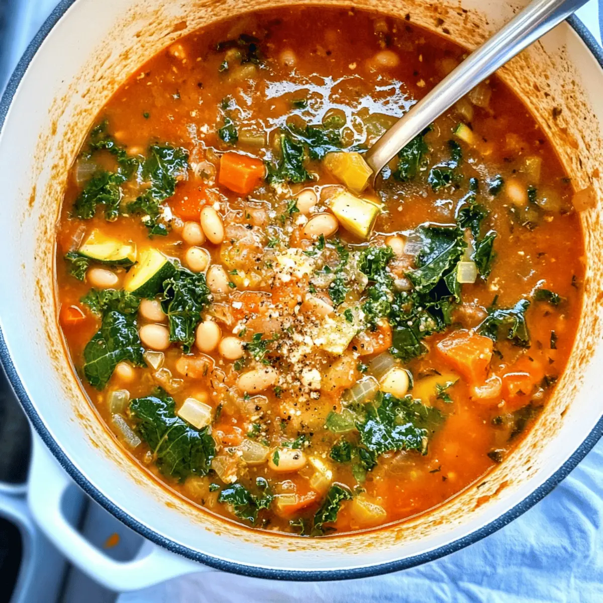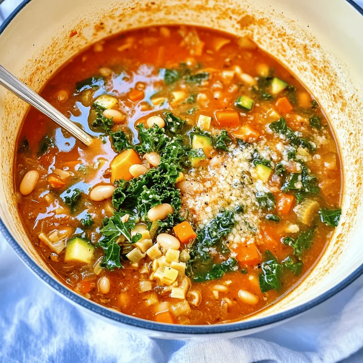 Jump to Recipe Print RecipeAs I stood in my kitchen, the fragrant blend of sautéed onions and garlic filled the air, instantly transporting me to the sun-soaked gardens of Sardinia. This Easy Longevity Soup is my homage to those remarkable Blue Zones—where people thrive for decades with plant-based diets packed full of nutrients. Imagine a warm, inviting bowl filled with vibrant vegetables, hearty beans, and a sprinkle of anti-inflammatory spices, all working in harmony to promote a healthy lifestyle. Not only is this soup incredibly quick to prepare, but it’s also a wonderful way to embrace nutritious ingredients that support your well-being. So, are you ready to savor a bowl of comfort that’s as wholesome as it is delicious? Let’s dive into this nourishing recipe! Why is Longevity Soup a Must-Try? Wholesomeness in Every Bite: This Easy Longevity Soup is a delightful blend of nature’s finest ingredients, packed with vibrant vegetables and hearty beans that create a nutritious, soul-satisfying meal. Versatile and Adaptable: With plenty of room for customization, you can easily swap vegetables or legumes based on what’s in your pantry or what’s in season. Quick and Simple: Ready in under an hour, this soup fits effortlessly into even the busiest schedules, making healthy eating enjoyable and accessible. Crowd-Pleasing Comfort: Perfect for family dinners or meal prep, it’s guaranteed to warm your heart and put a smile on your loved ones’ faces. Inspired by Nature: Drawing from Blue Zones traditions, this recipe embraces the best of plant-based eating, promoting longevity and vibrant health with every spoonful. Pair it with crusty bread or explore other delicious soups like Crock Pot Soup for a complete, nourishing meal! Longevity Soup Ingredients For the Soup Base Olive Oil – Adds richness and flavor; substitute with vegetable broth for a lighter version. Onion (1 small, diced) – Provides sweetness and depth; yellow or sweet onion works best. Carrots (2 medium, sliced) – Adds natural sweetness and texture; can substitute with parsnips for a different flavor. Celery (2 stalks, chopped) – Contributes a fresh crunch; no substitutes necessary. Zucchini (1 medium, diced) – Provides moisture and softness; can be swapped with yellow squash. Sweet Potato (1 small, diced) – Adds a natural sweetness and fiber; regular potato can be an alternative. Garlic (2 cloves, minced) – Enhances flavor with its aromatic quality; use garlic powder (1/2 tsp) if fresh is unavailable. For the Flavor Dried Oregano (1/2 tsp) – Adds earthy flavor; replace with an Italian seasoning blend if desired. Thyme (1/2 tsp) – Infuses herbal notes; fresh thyme is also acceptable. Tomato Paste (1 tbsp) – Includes umami flavor for depth; can replace with fresh chopped tomatoes if available. Canned Diced Tomatoes (14 oz) – Gives acidity and texture; opt for low-sodium versions if monitoring salt intake. For Protein and Texture Canned Cannellini Beans (1 cup) – Adds creaminess and protein; black beans or chickpeas are good substitutes. Cooked Lentils (1 cup) or Dried Lentils (1/2 cup) – Provides extra protein and fiber; dried lentils should be cooked beforehand. For the Broth Vegetable Broth (4 cups) – Base for the soup; enhances flavor; substitute with chicken broth for non-vegetarian version. Bay Leaves (2) – Imparts aromatic depth during cooking; fresh herbs or spice mix can be alternatives. For the Heartiness Pasta (1/2 cup, any small shape) – Adds heartiness; gluten-free pasta can be used if necessary. Kale (1 cup, shredded) – Adds nutrients and a slight bitterness; spinach can be used instead. Baby Spinach (1 cup) – Incorporates additional vitamins; partially replace with other leafy greens if needed. For Seasoning Sea Salt and Black Pepper – For seasoning; adjust to taste; use low-sodium salt for health-conscious choices. Optional Garnishes Extra Virgin Olive Oil – Drizzle on top for enhanced flavor and richness. Chopped Parsley – Adds a fresh touch and vibrant color. Grated Parmesan Cheese (or vegan alternative) – Perfect for a savory finish; enhances the overall flavor of the soup. With each ingredient thoughtfully selected for its benefits and flavor, this Longevity Soup shines as a nutritious centerpiece to promote your healthy lifestyle! Step‑by‑Step Instructions for Longevity Soup Step 1: Heat the Base In a large Dutch oven, heat 2 tablespoons of olive oil over medium heat. Once shimmering, add diced onion, sliced carrots, chopped celery, and diced zucchini. Sauté the vegetables for about 5 minutes until they soften and become fragrant, stirring occasionally. This fragrant foundation sets the savory tone for your Easy Longevity Soup. Step 2: Add Sweetness and Aromatics Introduce the diced sweet potato and minced garlic to the pot, stirring well for an additional minute. This step allows the garlic to release its aromatic qualities while enhancing the sweetness of the sweet potato. You’ll notice the vegetables beginning to meld beautifully—a sign that your soup is coming together. Step 3: Season and Build Flavor Sprinkle in the dried oregano and thyme, along with 1 tablespoon of tomato paste. Stir these ingredients thoroughly, allowing them to coat the vegetables evenly. This quick sauté will create a wonderfully fragrant aroma. You’re now infusing the base of your Longevity Soup with depth and warmth, prepping it for the next delicious phase. Step 4: Incorporate the Liquids Pour in 4 cups of vegetable broth and add the canned diced tomatoes along with the drained cannellini beans and cooked lentils. Stir well to combine, ensuring the tomato and beans are evenly distributed. Toss in 2 bay leaves for aromatic depth as you bring your soup mixture to a gentle boil, signifying rich flavors developing. Step 5: Simmer to Perfection Once boiling, reduce the heat to a simmer, allowing the soup to cook uncovered for 20 minutes. Stir occasionally to prevent