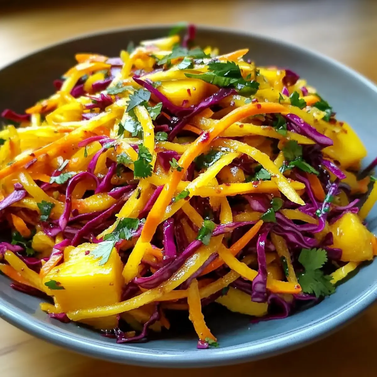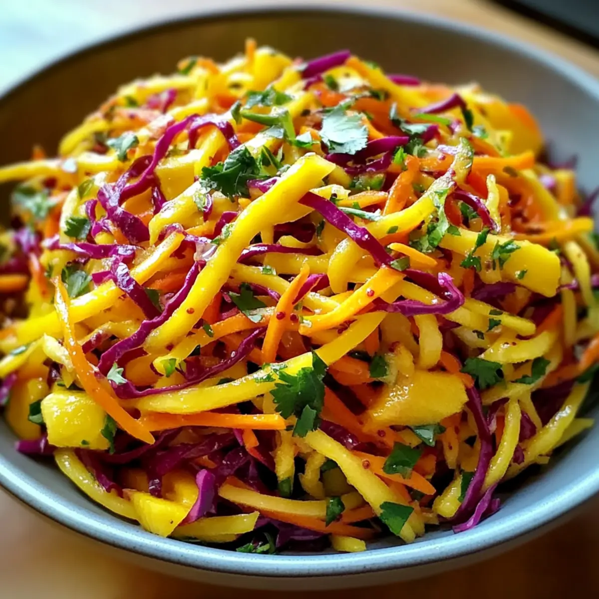 Customization: Feel free to swap ingredients! Substitute mango with seasonal fruits like papaya or pineapple to mix things up. For an extra kick, try adding chili flakes or even some fresh herbs like cilantro. With so many options, this slaw fits into any meal with ease! Ready to make a tropical treat? Check out our Mango Muffins Passion for even more mango-inspired goodness!