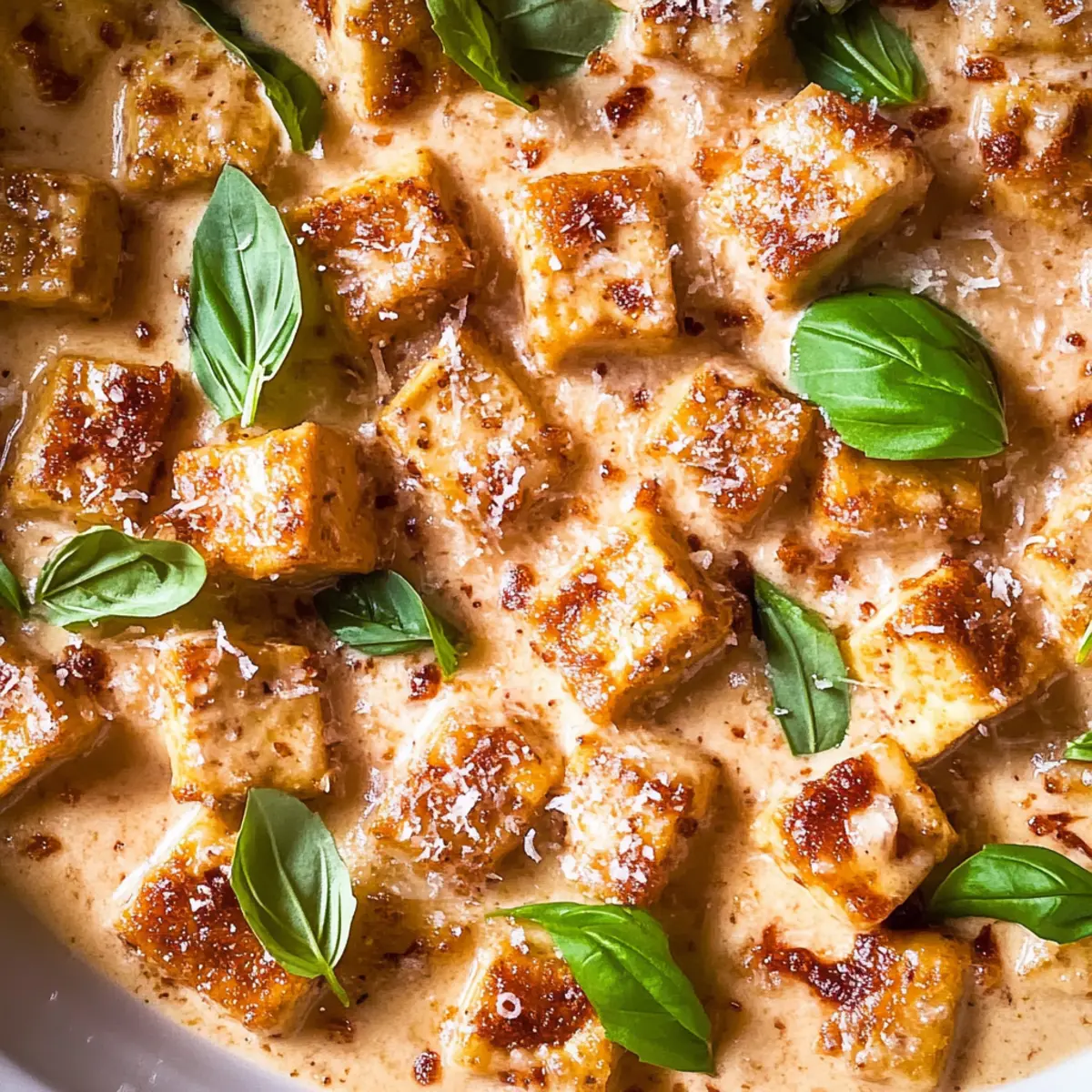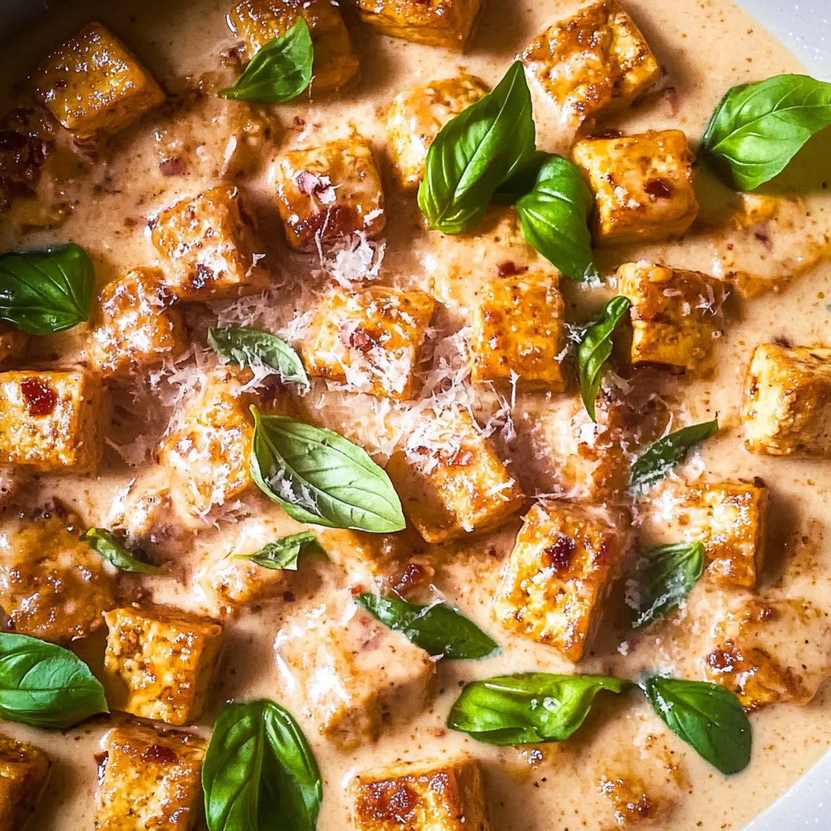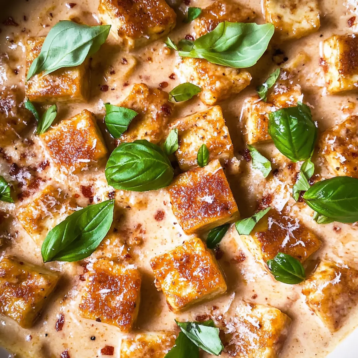 Jump to Recipe Print RecipeAmid the hustle and bustle of everyday life, it’s easy to overlook the power of a simple home-cooked meal. Enter Marry Me Tofu, a delightful creation that turns tender, crispy tofu into a creamy, garlicky masterpiece that’s not only a comfort food favorite but also a vegan delight. This quick and easy recipe makes for an ideal weeknight dinner or an elegant dish for entertaining; it’s all about that rich flavor marrying the textures in every bite. Imagine spice and warmth mingling with lush creaminess as it hugs the tofu, delivering a culinary experience that is truly unforgettable. So, are you ready to bring some love to your table with this captivating recipe? Why is Marry Me Tofu a Must-Try? Flavorful Experience: Marry Me Tofu is a brilliant blend of crispy and creamy, creating a dish that’s as satisfying as it is delicious. Quick and Easy: This recipe is perfect for busy weeknights but feels special enough for guests. Versatile Options: Pair it with rice or gluten-free pasta, and even toss in your favorite veggies for a customized meal. Plant-Based Comfort: Enjoy a hearty dish that caters to both vegans and non-vegans alike, making it a crowd-pleaser at any gathering. Healthy Indulgence: Packed with protein and bursting with flavor, this tofu dish proves that comfort food can be wholesome too! Marry Me Tofu Ingredients For the Tofu Tofu – Use extra-firm for a crispy outcome. Kosher Salt – Adjust based on taste during brining. Garlic – Fresh garlic gives the best flavor. Water – Helps in brining to enhance the tofu’s taste. For the Coating Cornstarch – Creates a delightful crispy texture; use arrowroot for gluten-free. Onion Powder – Adds depth; fresh onions can be sautéed instead. Smoked Paprika – Offers a rich, smoky flavor; substitute with regular paprika for mildness. Crushed Red Pepper Flakes – Adjust the heat to your preference. For the Sauce Unsalted Butter – Adds creaminess; vegan butter works as a substitute. Heavy Cream – Provides a silky texture; replace with cashew cream for a dairy-free option. Tomato Paste – Enhances the sauce’s richness; use tomato sauce in a pinch. Oil-Packed Sun-Dried Tomatoes – Infuses a tangy sweetness into the dish. For Garnishing Grated Parmesan – Adds a cheesy kick; nutritional yeast is great for a vegan option. Fresh Basil – Offers a fragrant finish; parsley makes a lovely substitute. Freshly Ground Black Pepper – Adds an extra layer of flavor to the dish. Make today’s cooking session memorable with this Marry Me Tofu recipe that’s bound to impress! Step‑by‑Step Instructions for Marry Me Tofu Step 1: Brine the Tofu Begin by cubing your extra-firm tofu into bite-sized pieces and gently placing it in a bowl. Boil water and stir in crushed garlic, kosher salt, dried oregano, and red pepper flakes. Pour this hot brine over the tofu, ensuring all pieces are submerged. Allow it to soak for at least 15 minutes to infuse the flavors deeply into the tofu. Step 2: Prepare the Tofu After brining, carefully drain the tofu and pat it dry with paper towels to remove excess moisture. In a separate bowl, mix cornstarch, onion powder, and smoked paprika. Coat each tofu piece evenly with the cornstarch mixture, allowing for a crispy outer layer that will be perfect for your Marry Me Tofu. Step 3: Fry the Tofu Heat a glug of extra-virgin olive oil in a large skillet over medium-high heat. Once the oil is shimmering, carefully add the tofu pieces in a single layer. Fry the tofu for about 4-5 minutes on each side or until they become golden brown and crispy, taking care to flip them gently to avoid breaking the pieces. Remove the tofu and let them rest on a paper towel. Step 4: Make the Creamy Sauce In another pan, melt unsalted butter over medium heat until it’s foamy. Stir in tomato paste and cook for about 2 minutes to enhance the flavor, then slowly add heavy cream while whisking to combine. Continue stirring until the sauce is smooth and thickens slightly, which should take around 3-4 minutes. Step 5: Combine Tofu and Sauce Once your sauce is ready, gently fold the fried tofu into the creamy mixture, ensuring every piece is generously coated. Allow the dish to simmer on low for about 2 minutes, letting the tofu soak in all those rich flavors of your Marry Me Tofu. Step 6: Serve and Garnish To present your Marry Me Tofu beautifully, plate it over a bed of rice or pasta. Finish by sprinkling fresh basil on top and adding grated Parmesan for that perfect touch of flavor. Serve immediately while warm and enjoy the comforting and creamy goodness of this delightful dish! Storage Tips for Marry Me Tofu Fridge: Store leftovers in an airtight container for up to 3 days, ensuring they remain fresh and flavorful. Freezer: Marry Me Tofu can be frozen for up to 2 months; however, the texture may change upon thawing. For best results, freeze without the sauce. Reheating: Gently reheat in a skillet over low heat until warmed through, adding a splash of water or vegetable broth if needed to restore creaminess. Wrap: If storing one portion, wrap it tightly with plastic wrap or foil to prevent air exposure and freezer burn. What to Serve with Marry Me Tofu? Elevate your Marry Me Tofu experience with delightful pairings that create a complete, comforting meal. Fluffy Rice: A bed of fluffy rice absorbs the rich sauce, complementing the creamy texture of the tofu. Garlic Bread: Serve warm, toasty bread alongside for a scrumptious way to soak up every drop of sauce. Mixed Green Salad: Crisp greens drizzled with a light vinaigrette add brightness and a fresh crunch to balance the richness. Sautéed Spinach: Quick-cooked spinach adds a vibrant pop of color and nutrients, enhancing the meal’s healthiness. Gluten-Free Pasta: For a gluten-free option, toss the Marry Me Tofu over pasta, creating a comforting dish that those with dietary needs can enjoy. Roasted Vegetables: Caramelized carrots, bell peppers, 