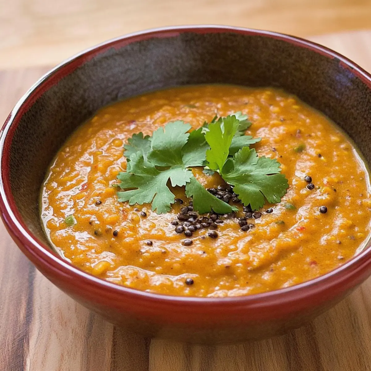 Jump to Recipe Print RecipeThe aroma of simmering spices mingling with the comforting fragrance of cooked lentils is enough to transport me straight to my kitchen in a moment of culinary bliss. Today, I’m excited to share with you my vibrant take on Masoor Dal, a quick and easy dish that showcases the earthy goodness of red lentils. In just 25 minutes, you can whip up this dairy-free wonder, perfect for a weeknight dinner when time is of the essence. What I love most about this recipe is how it transforms basic ingredients into an irresistibly rich meal that bursts with flavor while being completely vegetarian. Whether you enjoy it with a side of warm naan or fluffy rice, this Masoor Dal is sure to impress your taste buds. Are you ready to create something deliciously heartwarming? Let’s get started! Why is Masoor Dal a Must-Try? Simplicity: Whipping up this Masoor Dal is a breeze, requiring minimal prep time and effort, making it ideal for busy weeknights. Flavor Explosion: The bold blend of spices and earthy lentils guarantees a rich taste that’s both comforting and delightful. Nutrient-Packed: Packed with protein and fiber, this dish not only fills you up but also provides essential nutrients for a healthy meal. Versatile: Easily adaptable, you can add your favorite vegetables or adjust the spices for a personalized touch. Crowd-Pleaser: Whether shared at a family dinner or meal-prepped for lunches, this dish appeals to a wide range of palates, making it a perfect option for gatherings. Ready to elevate your cooking skills? Check out my expert tips for making the most out of your Masoor Dal experience! Masoor Dal Ingredients For the Dal • Fresh Ginger – Adds warmth and spiciness; substitute with ground ginger if fresh is unavailable. • Garlic – Provides a savory depth; use garlic powder if you’re short on fresh garlic. • Masoor Dal (Red Lentils) – The heart of the dish, rich in protein; other lentils can be used but may change cooking time. • Ground Turmeric – Provides color and health benefits; it can be omitted but contributes to flavor. • Whole Stewed Tomatoes – Adds acidity and sweetness; use fresh tomatoes if preferred and adjust quantity accordingly. • Fresh Chili Peppers – Brings heat to the dish; adjust type and amount based on your spice tolerance. • Cilantro – Offers a fresh garnish; substitute with parsley for a different flavor profile. • Ghee (or Vegetable Oil) – Adds creaminess and flavor; olive oil or coconut oil are great alternatives. • Cumin Seeds, Black Mustard Seeds, Fennel Seeds, Dried Chiles – Necessary for tempering, adding complexity to the dish; you can replace these with an all-purpose curry blend if needed. • Salt – Enhances flavors; adjust to taste. • Coconut Sugar – Adds a hint of sweetness; brown sugar can be used as a substitute. • Lemon Juice – Brightens and balances the dish; vinegar can work in a pinch. For Tempering • Ghee or Oil – Use to temper your spices, enhancing their flavors while adding richness to the Masoor Dal. With these Masoor Dal ingredients in hand, you’re ready to create a warm, nourishing meal that will fill your home with delightful aromas! Step‑by‑Step Instructions for Masoor Dal Step 1: Char Garlic and Ginger Preheat your broiler and place fresh garlic and ginger on a baking sheet. Broil them for 3-4 minutes until their skins are blackened, turning occasionally to ensure even charring. This process infuses a rich, smoky flavor into your Masoor Dal, so keep a close eye to avoid burning. Step 2: Rinse the Dal In a fine-mesh strainer, rinse 1 cup of Masoor Dal under cold water until the water runs clear, removing any dust and impurities. This step is crucial for achieving a clean taste in your dish. Once rinsed, set the dal aside while preparing the cooking pot. Step 3: Combine Ingredients in Pressure Cooker In a pressure cooker, combine the rinsed Masoor Dal, 3 cups of water, 1 teaspoon of ground turmeric, 1 can of whole stewed tomatoes (or equivalent fresh), and 1-2 fresh chili peppers chopped to your desired spice level. Stir these ingredients to mix well, ensuring the dal is submerged in the liquid. Step 4: Add Aromatic Stems Remove the thicker stems and roots from your fresh cilantro and add them directly into the cooker for a burst of flavor. These parts will enhance the aroma of your Masoor Dal while cooking, enriching its overall taste profile. Step 5: Cook Under Pressure Securely close the pressure cooker lid and bring it to high heat. Once it begins to whistle, reduce the heat to maintain a gentle simmer, cooking for 7 minutes. The pressure will tenderize the Masoor Dal quickly, resulting in a beautifully creamy texture. Step 6: Release Pressure After 7 minutes, turn off the heat and carefully run cool water over the pressure cooker to release the steam. Allow the pressure to fully subside before opening the lid. Discard the blackened garlic, ginger, and cilantro stems, leaving you with a pot of perfectly cooked Masoor Dal. Step 7: Season the Dal Stir in salt to taste (about 1 teaspoon), 1 tablespoon coconut sugar for a hint of sweetness, and a squeeze of fresh lemon juice. This step balances the flavors beautifully, creating a deliciously satisfying Masoor Dal that’s ready for the next stage. Step 8: Temper the Spices In a pan, heat 2 tablespoons of ghee over medium heat until melted. Add cumin seeds, black mustard seeds, fennel seeds, and a couple of dried chiles. Cook until fragrant, about 1-2 minutes, and pour this aromatic mixture over the cooked Masoor Dal, enhancing the dish’s complexity and richness. Step 9: Garnish and Serve Before serving, chop and sprinkle fresh cilantro leaves over the Masoor Dal for a pop of color and flavor. Serve hot alongside warm naan or fluffy rice to soak up this creamy, dairy-free delight, inviting everyone to enjoy the comforting essence of your homemade Masoor Dal. What to Serve with Quick and Creamy Masoor Dal? Imme