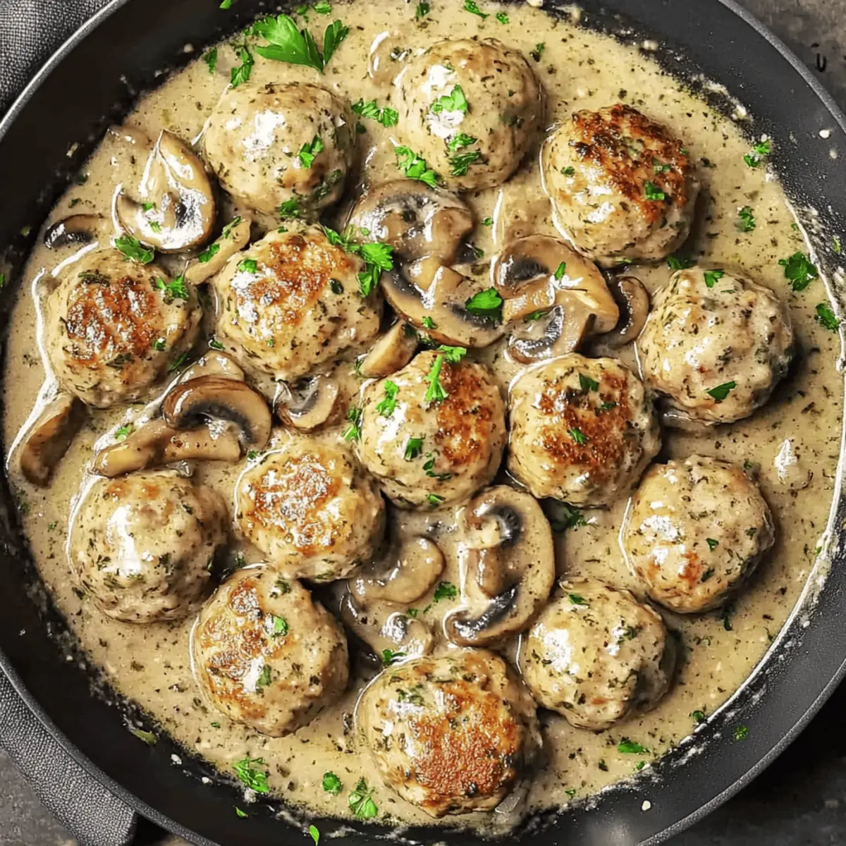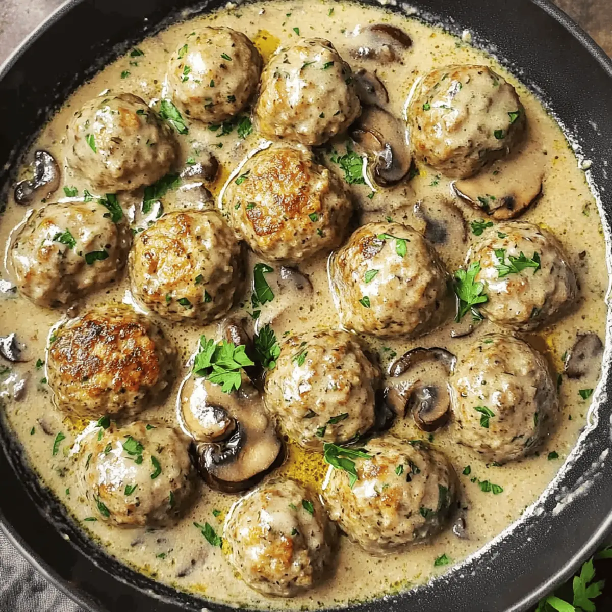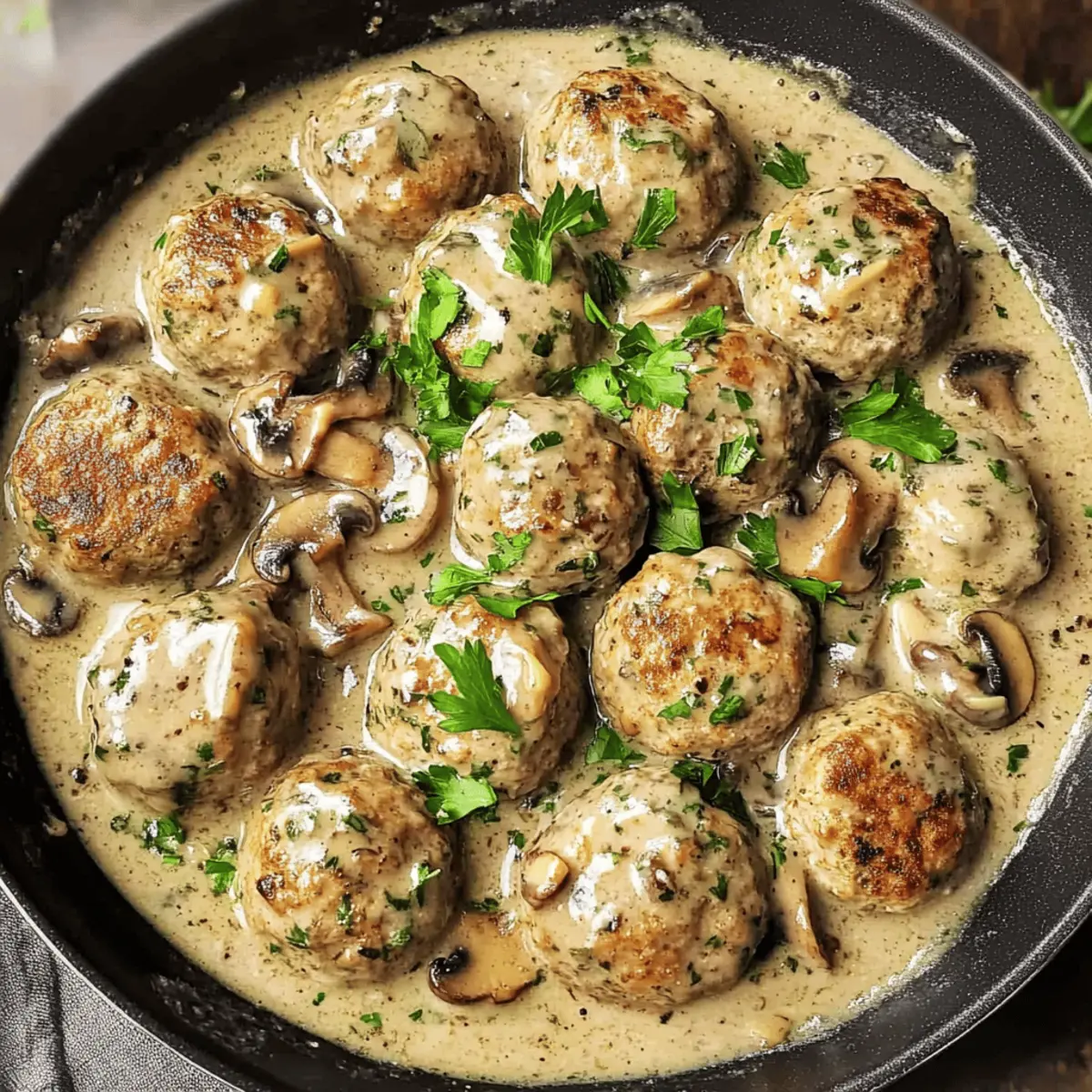 Jump to Recipe Print RecipeAs I watched the mushrooms sizzle in the pan, filling my kitchen with a mouthwatering aroma, I couldn’t help but feel a sense of comfort wash over me. This Healthy Turkey Meatballs in Mushroom Sauce recipe is my go-to solution for those busy weeknights when I crave something wholesome without spending hours in the kitchen. These meatballs are not only quick to prepare but also low-fat and gluten-free, making them a perfect choice for anyone looking to eat healthier while still enjoying a satisfying meal. Pair them with a side of mashed potatoes or a light salad, and you have a delicious dinner that everyone will love. Curious about how to make this cozy dish your own? Let’s dive in! Why are these meatballs a game changer? Simplicity at its best: With minimal ingredients and straightforward steps, you can have these delicious meatballs ready in just over 35 minutes. Rich, savory flavor: The combination of fresh herbs and creamy mushroom sauce elevates the dish, ensuring every bite is packed with taste. Healthy and satisfying: These meatballs are low-fat and gluten-free, perfect for those wanting to indulge without the guilt. Versatile cooking: You can easily adapt this recipe using different types of ground meat; feel free to substitute with pork or beef based on your preference. Crowd-pleaser appeal: Pair with crusty bread or savory mashed potatoes for a comforting meal that everyone at the table will appreciate! Whether you’re prepping for a family event or just a cozy night in, this dish serves as the ideal solution. Discover additional flavor pairings with our Baked Turkey Meatballs or consider a seafood twist with Shrimp Garlic Sauce! Meatballs in Mushroom Sauce Ingredients Discover the secret to crafting the best meatballs in mushroom sauce with these essential ingredients. For the Meatballs Ground Turkey – This lean protein keeps the meatballs moist; aim for turkey thigh for extra juiciness. Soft Bread or Bun – Acts as a binder; gluten-free bread can be used for a gluten-sensitive option. Onion – Adds moisture and flavor; shallots make a milder alternative. Fresh Parsley – Brightens the meatballs with a fresh herb flavor; substitute with dill or basil if desired. Salt and Pepper – Enhance overall seasoning; adjust according to your taste preferences. For the Sauce Regular White Mushrooms – Provide umami depth to the sauce; feel free to swap with cremini or portobello mushrooms. Medium Onion – Forms the flavor base of the sauce; diced shallots can add a sweeter touch. All-Purpose Flour – Thickens the sauce into a lovely consistency; use cornstarch for a gluten-free alternative. Stock – Vegetable or chicken stock infuses flavor; homemade stock elevates the dish even more. Light Cream – Adds a creamy richness to the sauce; consider half-and-half or a non-dairy option for variety. Sour Cream – Provides a finished creaminess and tang; Greek yogurt serves as a fantastic substitute. With these ingredients in hand, you’re ready to create a comforting dinner that showcases the joys of homemade cooking. Enjoy your cooking adventure! Step‑by‑Step Instructions for Healthy Turkey Meatballs in Mushroom Sauce Step 1: Make Meatballs In a food processor, combine one small finely chopped onion, parsley, and a soft bun, pulsing until crumbly. Transfer the mixture to a bowl and add 1.1 pounds of ground turkey, along with ½ teaspoon each of salt and pepper. Pulse gently to combine, ensuring not to overblend. Form the mixture into 12-14 equally-sized meatballs, about 1-1.5 inches in diameter, and set aside. Step 2: Brown Meatballs Heat 2 teaspoons of oil in a large non-stick pan over medium heat. Once hot, carefully add the meatballs to the pan, browning them for about 4 minutes while gently turning frequently for an even golden color. The meatballs should be nicely browned but not fully cooked through. Once browned, remove the meatballs from the pan and set them aside on a plate. Step 3: Prepare Sauce In the same pan, add a little more oil if needed and heat over medium heat. Finely chop 12 ounces of regular white mushrooms using the food processor and set aside. Add one finely chopped medium onion to the pan, cooking for about 3 minutes until softened. Then, stir in the chopped mushrooms, cooking until their juices are mostly absorbed, about 5-7 minutes. Step 4: Thicken the Sauce Sprinkle 2 tablespoons of all-purpose flour over the mushroom and onion mixture, stirring to coat for about 1 minute; this will create a flavorful base. Gradually add 1¼ cups of stock (either vegetable or chicken), followed by ¼ cup of light cream. Stir continuously, bringing the mixture to a gentle simmer until the sauce thickens, about 3-5 minutes. Step 5: Finish the Sauce Once the sauce has thickened, remove the pan from the heat and stir in 2 tablespoons of sour cream for added creaminess and tang. Taste and adjust the seasoning with additional salt and pepper as needed. The sauce should be rich and velvety, perfect for enveloping the meatballs in mushroom sauce. Step 6: Combine and Cook Carefully place the browned meatballs back into the sauce, ensuring they are evenly coated. Cover the pan and lower the heat to a simmer, cooking for 10-12 minutes until the meatballs are cooked through and reach an internal temperature of 165°F (74°C). The meatballs should be tender and fully cooked, soaking up the delicious flavors of the sauce. Meatballs in Mushroom Sauce Variations Feel free to make these savory meatballs your own by experimenting with different ingredients and flavors! Ground Meat Swap: Substitute turkey with beef, pork, or chicken for varied flavors. Each type brings its own unique taste profile and juiciness. Gluten-Free Option: Use gluten-free bread or mashed potatoes as a binder in the meatballs. It maintains the texture and taste beautifully. Mushroom Mix: Try different mushrooms like cremini or shiitake for a deeper umami flavor in your sauce. Yo