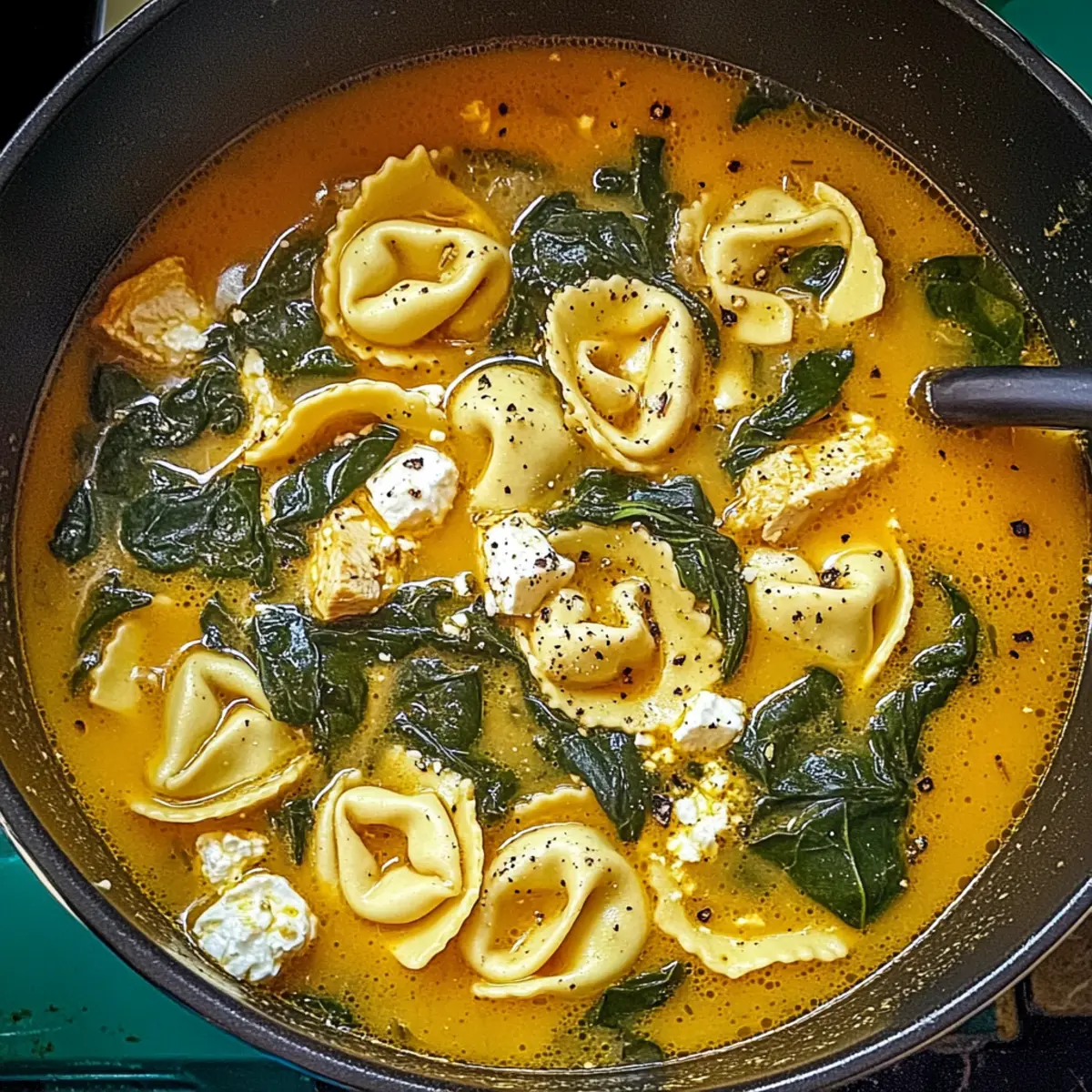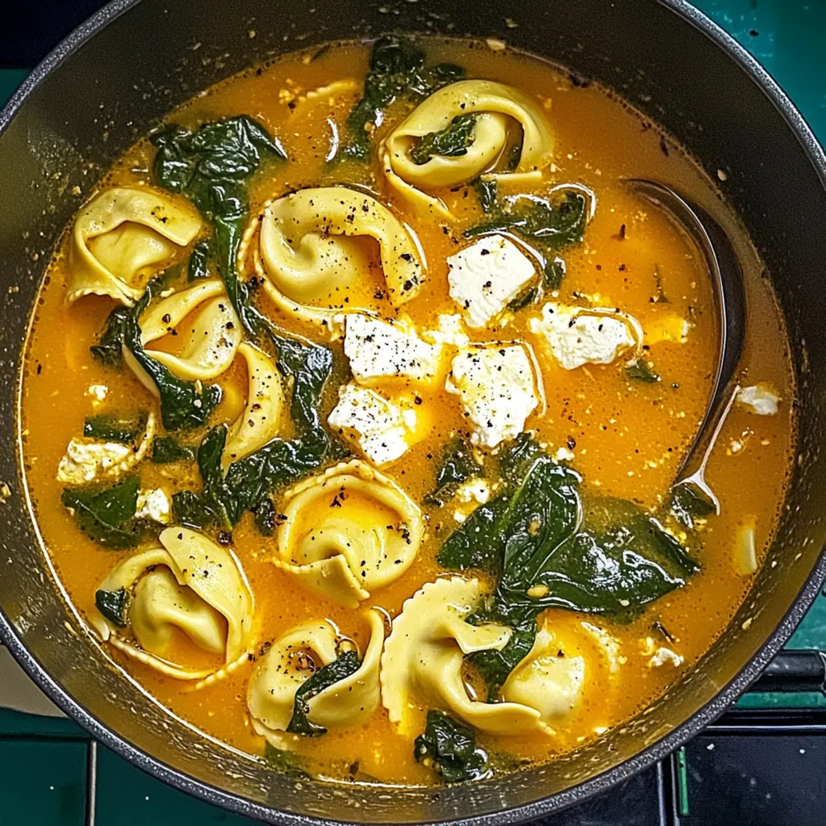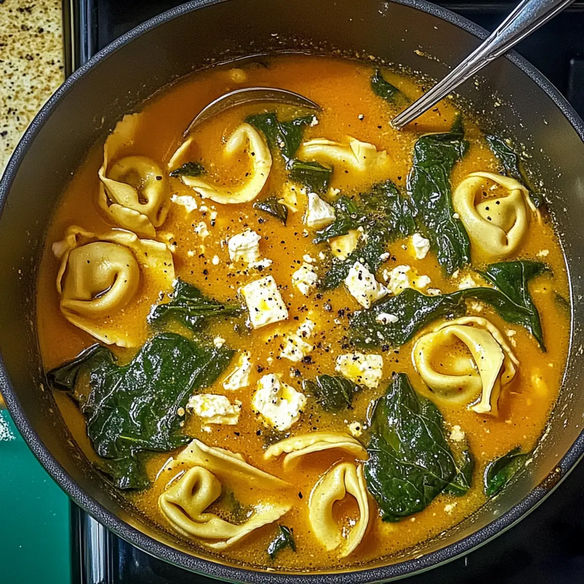 Jump to Recipe Print RecipeA tantalizing waft of garlic and fresh herbs hits you the moment this Mediterranean Tortellini Soup bubbles away on the stove. In just 30 minutes, you can transport your taste buds to sun-drenched coasts with this lively dish featuring tender tortellini, vibrant spinach, and creamy feta. It’s a quick and easy recipe that not only satiates those midweek hunger pangs but also impresses any dinner guests with its flavorful embrace. Plus, it’s effortlessly adaptable for vegetarians—just swap the chicken for an extra handful of fresh vegetables! Ready to dive into a bowl of warm, comforting goodness? Let’s get cooking! Why is Mediterranean Tortellini Soup a Must-Try? Ease of Preparation: This soup comes together in just 30 minutes, making it a perfect choice for busy weeknights. Flavorful Bliss: The combination of garlic, herbs, and creamy feta creates a mouthwatering aroma that’s sure to impress. Customizable Delight: Easily swap chicken for extra veggies or try different cheeses for a personal twist. Nutritional Benefits: Loaded with fresh spinach and protein-packed tortellini, this dish not only tastes good but is good for you. Crowd-Pleaser: Whether it’s a family dinner or a gathering with friends, everyone will love this warm, cozy bowl of goodness! For more delicious ideas, don’t forget to check out my recipes for Mediterranean Vegetable Casserole and Ground Chicken Soup. Mediterranean Tortellini Soup Ingredients For the Soup Base • Olive Oil – Adds richness to the soup base; feel free to substitute with a neutral oil if desired. • Onion – Provides depth and sweetness; yellow or white onions work best when finely chopped for even cooking. • Garlic – Enhances flavor with a quick infusion; fresh minced garlic is recommended for optimal taste. • Chicken or Vegetable Broth – Acts as the soup base; low-sodium options allow better control over saltiness. • Canned Tomatoes (Pureed) – Adds sweetness and acidity; fresh blended tomatoes can be used for a homemade touch. • Dried Basil & Oregano – Brings authentic Mediterranean flavor; consider using fresh herbs at three times the amount for freshness. • Salt & Black Pepper – Essential seasonings; adjust the amounts to suit your personal taste. • Crushed Red Pepper Flakes – For a bit of warmth; you can omit them for a milder flavor. For the Tortellini • Tortellini Pasta – The main star of the soup; choose cheese or meat-filled varieties, or opt for frozen ones for convenience. • Shredded Cooked Chicken – Adds protein richness; you can omit or replace this with extra vegetables for a vegetarian delight. For the Finishing Touches • Fresh Spinach – Provides vibrant color and nutritious boost; kale or Swiss chard can be swapped for a different taste. • Feta Cheese – Offers a creamy, tangy finish; goat cheese or Parmesan can be substituted for unique flavors. • Heavy Whipping Cream – Adds a luxurious richness; half-and-half or coconut milk makes for lighter, dairy-free alternatives. Dive into making this delicious Mediterranean Tortellini Soup and savor each spoonful of your cozy creation! Step‑by‑Step Instructions for Mediterranean Tortellini Soup Step 1: Sauté Aromatics Begin by heating 2 tablespoons of olive oil in a large pot over medium heat. Add one finely chopped onion along with a pinch of salt, cooking for about 8 minutes until the onion becomes soft and golden. Next, stir in 3 minced garlic cloves, cooking for an additional 15-20 seconds until fragrant, allowing that delicious aroma to fill the kitchen. Step 2: Build Soup Base Pour in a 28-ounce can of pureed tomatoes and 4 cups of chicken or vegetable broth, stirring well to combine. Add 1 teaspoon each of dried basil and oregano, along with salt, black pepper, and crushed red pepper flakes to taste. Bring this flavorful mixture to a boil while stirring occasionally, setting the perfect foundation for your Mediterranean Tortellini Soup. Step 3: Cook Tortellini Once boiling, add 12 ounces of tortellini and 1 cup of shredded cooked chicken to the pot. Reduce the heat to a gentle simmer and let it cook for about 10 minutes, or until the tortellini is al dente. Stir occasionally to ensure everything cooks evenly, and enjoy the delightful medley of flavors starting to emerge. Step 4: Finish Soup After the tortellini has cooked, stir in 4 cups of fresh spinach, crumbled feta cheese, and ½ cup of heavy whipping cream. Continue to simmer for an additional 5 minutes, gently stirring until the spinach has wilted and the soup has thickened slightly. This final touch transforms your Mediterranean Tortellini Soup into a creamy, vibrant delight that’s ready to serve! How to Store and Freeze Mediterranean Tortellini Soup Fridge: Store leftovers in an airtight container for up to 3 days. Add a splash of broth when reheating to restore creaminess, as tortellini can absorb liquid. Freezer: For longer storage, cool the soup completely and transfer it to a freezer-safe container. It can be frozen for up to 3 months. Reheating: When ready to eat, thaw the soup overnight in the refrigerator. Reheat on the stove over low heat, adding extra broth or cream for a smoother texture. Portioning: Consider freezing in individual portions for quick and easy meals on busy days. Just defrost what you need! What to Serve with Mediterranean Tortellini Soup To create the perfect Mediterranean feast, think about vibrant flavors and textures that will complement each bite of your indulgent soup. Toasted Garlic Bread: The crunchy, buttery goodness easily soaks up every delicious drop of soup, enhancing your meal experience. Simple Caesar Salad: Crisp romaine, zesty dressing, and crunchy croutons provide a refreshing counterbalance to the creamy soup, creating a delightful contrast. Mediterranean Quinoa Salad: A light and nutritious side packed with colorful veggies and feta that harmonizes beautifully with the flavors of the soup. P