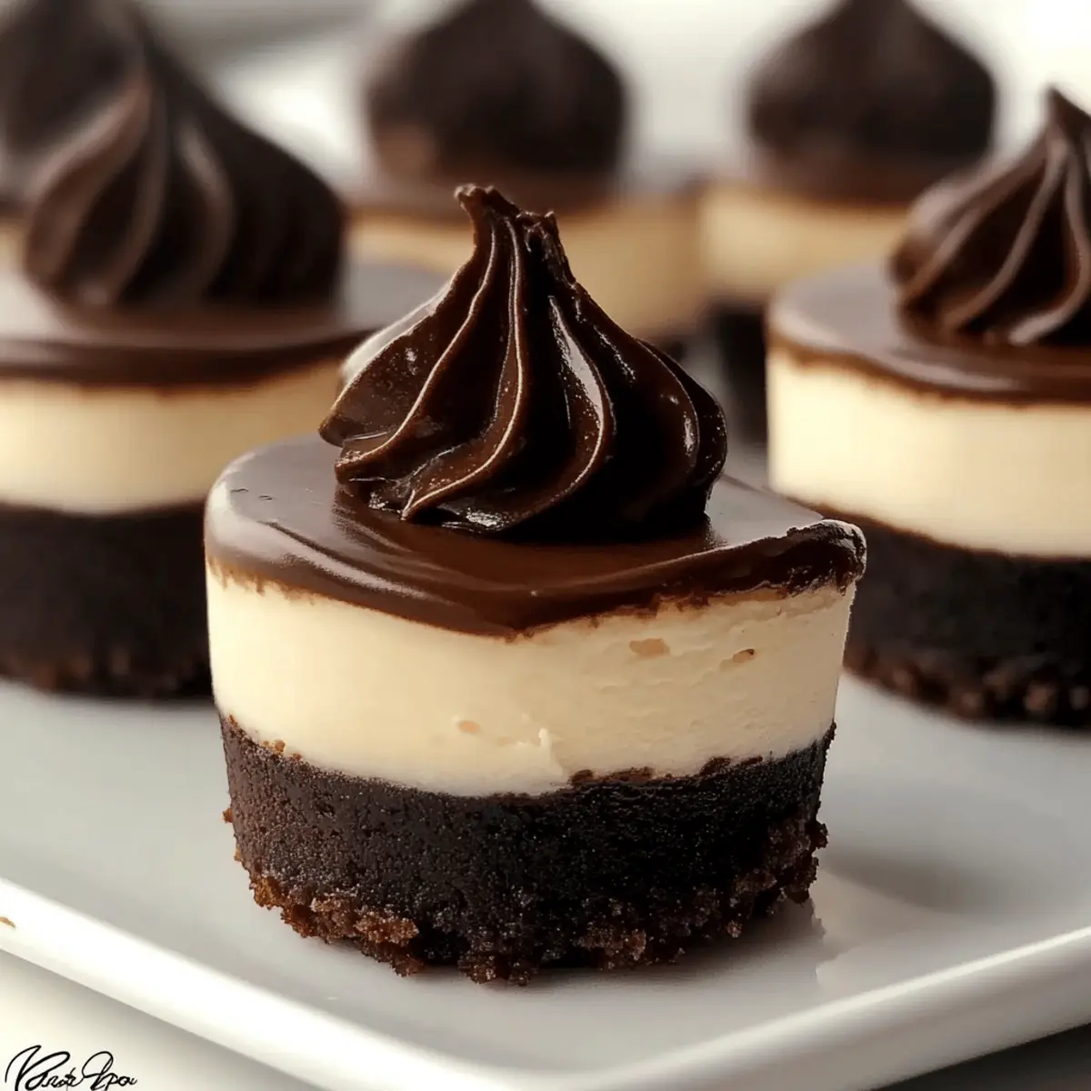 Jump to Recipe Print RecipeAs I stood in my kitchen, staring at a mountain of chocolate and cream cheese, a light bulb moment hit me: why not create something sweet and utterly indulgent in mere minutes? That’s how these Mini Chocolate Cheesecake Bites were born—tiny, creamy pieces of bliss that capture the essence of a classic cheesecake without the long prep time. Perfect for an impromptu party or to satisfy a late-night craving, these bite-sized delights are not only easy to whip up but also vegetarian-friendly! With a rich chocolate flavor and a buttery crust, they’re sure to impress friends and family alike. We all deserve a little indulgence, don’t we? Let’s dive into this velvety dessert that’s bound to become a cherished favorite in your home! Why Are These Cheesecake Bites So Special? Indulgent chocolate flavor: Each bite bursts with rich chocolate and creamy cheesecake—a perfect blend for dessert lovers. Quick to prepare: Ready in under 30 minutes, these cheesecake bites make for a hassle-free cooking experience. Crowd-pleasing appeal: Whether for a casual get-together or a festive celebration, these little treats will win hearts and have everyone coming back for more. Versatile options: Want a twist? Try pairing them with fresh fruit or different flavored extracts to cater to everyone’s taste buds. Guilt-free enjoyment: With just around 120 calories per bite, you can indulge without remorse! If you’re a fan of easy, delicious desserts, don’t miss out on recipes like Mini Cheesecakes New for more sweet ideas. Mini Chocolate Cheesecake Bites Ingredients For the Crust • Graham Cracker Crumbs – Adds structure and a hint of sweetness to the crust; digestive biscuits can be a great gluten-free substitute. • Sugar – Sweetens both the crust and filling; brown sugar gives a deeper flavor profile if you desire. • Melted Butter – Binds the crust ingredients together while creating a rich taste; consider coconut oil for a dairy-free friendly option. For the Filling • Cream Cheese (softened) – Forms a creamy and tangy filling; a vegan cream cheese alternative works beautifully for a dairy-free version. • Powdered Sugar – Sweetens and stabilizes the cheesecake filling; can be substituted with honey or maple syrup (just be sure to adjust for other liquid ingredients). • Vanilla Extract – Enhances the dessert’s flavor profile; try almond extract for a delicious twist. • Sour Cream – Adds creaminess and a slight tang to the filling; Greek yogurt is a fine substitute here. • Melted Chocolate Chips – Delivers a rich chocolate flavor to the filling; opt for dairy-free chocolate chips for a vegan adaptation. • Egg – Helps bind the ingredients together creating a smooth texture; applesauce serves well as an egg replacement for a fruit-infused twist. These Mini Chocolate Cheesecake Bites not only satisfy your sweet tooth but also allow for delightful customization. Enjoy crafting this creamy dessert that’s sure to become a go-to in your recipe collection! Step‑by‑Step Instructions for Mini Chocolate Cheesecake Bites Step 1: Preheat the Oven Begin by preheating your oven to 325°F (160°C). This ensures an even baking process for your Mini Chocolate Cheesecake Bites. Set your oven timer, and while you wait for it to reach the desired temperature, gather your ingredients and equipment, such as a mixing bowl, mini muffin tin, and measuring cups. Step 2: Prepare the Crust Mixture In a mixing bowl, combine graham cracker crumbs, sugar, and melted butter. Use a spatula to mix until the ingredients resemble wet sand, ensuring an even distribution of the butter. This scrumptious base is essential for your Mini Chocolate Cheesecake Bites, so make sure it’s mixed well before moving to the next step. Step 3: Form the Crust Press the crust mixture firmly into the bottom of your prepared mini muffin tins. A tablespoon works well to pack them tightly for a sturdy base. Ensure each cup is even and compact, as this will help your bites hold together beautifully once baked. After packing, set the tins aside while you prepare the filling. Step 4: Whip up the Cream Cheese Filling In another bowl, beat the softened cream cheese with an electric mixer until it’s smooth and creamy. Gradually add in powdered sugar, vanilla extract, sour cream, melted chocolate chips, and egg, mixing until silky. This decadent filling is the heart of your Mini Chocolate Cheesecake Bites, so blend until all ingredients are thoroughly incorporated. Step 5: Fill the Muffin Tins Pour the creamy cheesecake filling over each crust in the mini muffin tins, filling them about three-quarters full. Be careful not to overfill to ensure they bake evenly. With the filling glistening, they’re ready for the oven, where they will transform into delightful treats. Step 6: Bake the Cheesecake Bites Place the filled muffin tins in the preheated oven and bake for 15-20 minutes. Keep an eye on them; the centers should be set yet slightly jiggly when you gently shake the tin. Once done, remove from the oven, allowing the bites to cool in the tin for a bit before transferring them to a wire rack. Step 7: Cool and Decorate Let the Mini Chocolate Cheesecake Bites cool completely at room temperature, then refrigerate them for about an hour for the best texture. When ready to serve, drizzle with melted chocolate and add a dollop of whipped cream or chocolate shavings for an irresistible finishing touch! How to Store and Freeze Mini Chocolate Cheesecake Bites Fridge: Store uneaten Mini Chocolate Cheesecake Bites in an airtight container in the refrigerator for up to 3 days, ensuring they remain fresh and delicious. Freezer: For longer storage, these bites can be frozen for up to 3 months. Place them in a single layer on a baking sheet until firm, then transfer to an airtight container or freezer bag. Thawing: When ready to enjoy, thaw the bites overnight in the refrigerator. This keeps their creamy