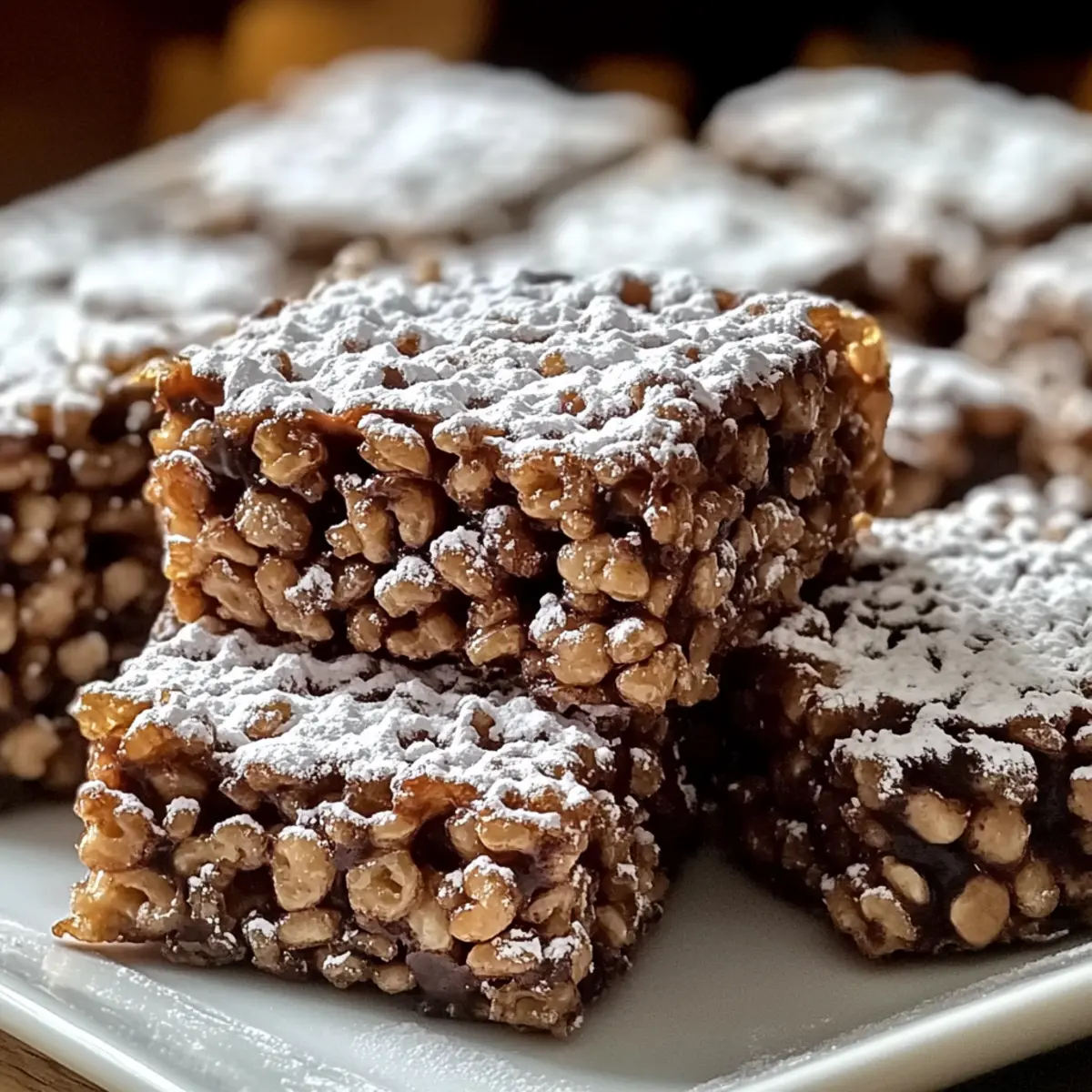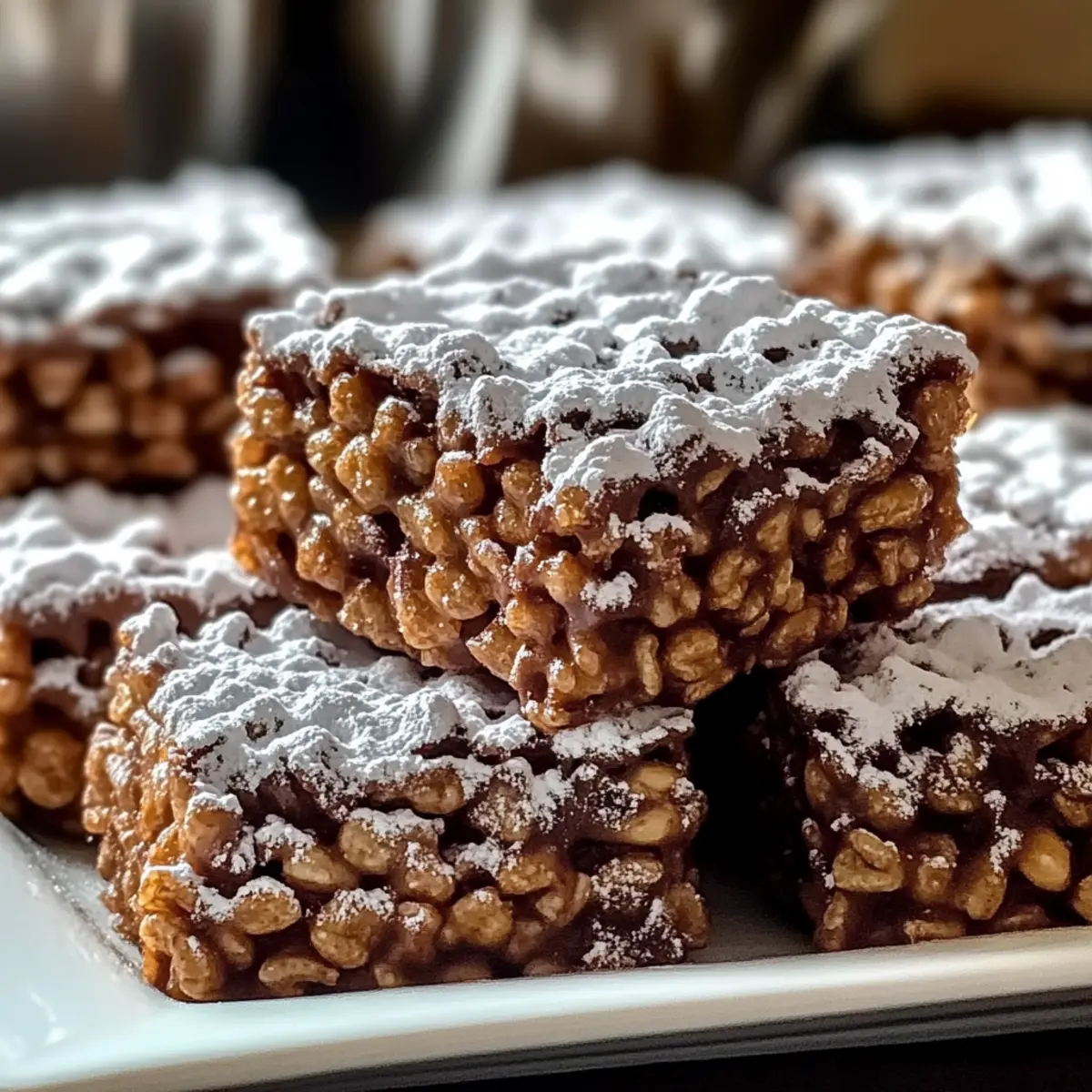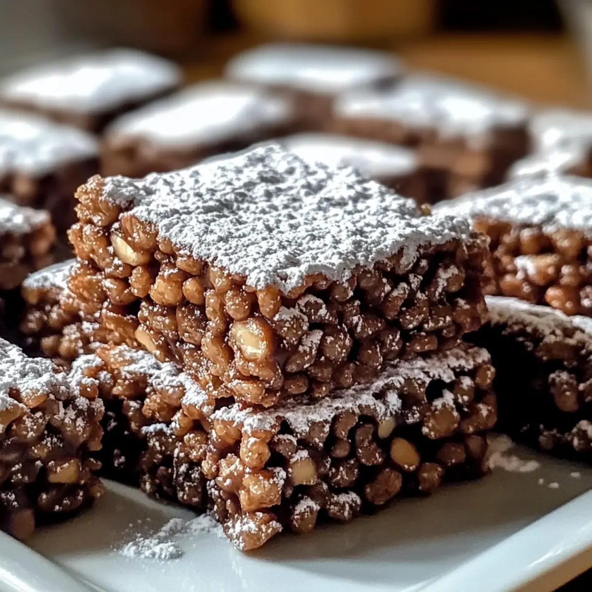 Jump to Recipe Print RecipeAs I stood in my kitchen, the scent of melting chocolate and creamy peanut butter wafted through the air like a warm hug on a chilly day. That’s the magic of these No-Bake Muddy Buddy Rice Krispies; they’re not just treats—they’re little moments of joy waiting to happen. This quick and easy recipe combines the delightful crunch of Rice Krispies with the rich sweetness of chocolate, making it a standout snack for any occasion. With no baking required and just a handful of pantry staples, you’ll find this vegetarian indulgence to be as satisfying to make as it is to eat. Whether for a family gathering or a festive party, these treats are sure to spark smiles. Are you ready to take your snack game to a new level? Let’s dive in! Why Are You Going to Adore This? Simplicity: This no-bake recipe is a breeze, making it perfect for anyone, whether you’re a seasoned chef or a busy parent. Irresistible Flavor: The dreamy blend of chocolate and peanut butter creates a rich and satisfying treat that will have everyone asking for seconds. Crunchy Texture: With Rice Krispies as the star ingredient, each bite delivers that delightful crunch, setting it apart from other snacks. Versatile Add-Ins: Feel free to customize with nuts, sprinkles, or even a dash of cinnamon to make it your own. Consider checking out our tips for add-ins. Perfect for Any Occasion: Whether it’s a party, a potluck, or just a cozy movie night at home, these Muddy Buddy Rice Krispies are always a hit! Muddy Buddy Rice Krispies Ingredients For the Treat Mixture • Rice Krispies cereal – Provides the perfect crunch; you can also use Chex for a different texture. • Chocolate chips – The key to that delicious sweetness; try dark chocolate for a richer flavor. • Creamy peanut butter – Adds a creamy richness; substitute with almond or sunflower seed butter for allergies. • Unsalted butter – Contributes to the smooth chocolate blend; stick with unsalted for better seasoning control. • Vanilla extract – Enhances the overall flavor; real vanilla makes a noticeable difference over imitation. For Coating • Powdered sugar – Adds sweetness and a nice finishing touch; feel free to use less if you prefer a lighter sweetness. With these simple ingredients, you’re just a few steps away from enjoying your delightful Muddy Buddy Rice Krispies! Step‑by‑Step Instructions for Muddy Buddy Rice Krispies Step 1: Melt Mixture Begin by placing 1 cup of chocolate chips and 1 cup of creamy peanut butter in a microwave-safe bowl. Microwave the mixture in 30-second intervals, stirring between each until it becomes smooth and glossy, taking around 1 to 2 minutes total. This creates the luscious chocolate-peanut butter blend that will coat your Rice Krispies. Step 2: Add Butter and Vanilla Once your chocolate-peanut butter mixture is smooth, stir in 2 tablespoons of unsalted butter and 1 teaspoon of vanilla extract. Continue to microwave for an additional 15 seconds if the butter doesn’t melt completely, then stir until everything is well combined and creamy. The addition of butter enhances the richness of the Muddy Buddy Rice Krispies. Step 3: Coat Cereal In a large mixing bowl, add 6 cups of Rice Krispies cereal. Pour the warm chocolate-peanut butter mixture over the cereal, making sure to cover all the pieces. Using a spatula, gently fold the mixture until the Rice Krispies are evenly coated, ensuring not to crush the cereal. This step is crucial for a deliciously crunchy treat. Step 4: Cool Mixture Prepare a lined 9×13-inch baking sheet with parchment paper. Transfer the coated Rice Krispies mixture onto the sheet, spreading it out evenly. Allow the mixture to cool for about 15-20 minutes at room temperature until it sets. You’ll know it’s ready when it’s firm to the touch and holds its shape without any stickiness. Step 5: Add Powdered Sugar Once the mixture is set, transfer it to a resealable bag along with 1 cup of powdered sugar. Seal the bag and shake it vigorously until all pieces are evenly coated in powdered sugar. Alternatively, you can sprinkle the sugar directly over the mixture for more control over the sweetness if preferred. Step 6: Serve Finally, pull the set Muddy Buddy Rice Krispies from the baking sheet and cut them into squares or break them into bite-sized pieces. Arrange them on a fun platter to serve. These delightful treats are perfect for sharing at gatherings or enjoying as a sweet snack at home. Tips for the Best Muddy Buddy Rice Krispies Perfect Melting: Make sure to melt the chocolate and peanut butter mixture in short intervals to prevent burning; constant stirring is key! Gentle Coating: When folding the Rice Krispies into the chocolate mixture, do it gently to avoid crushing the cereal and losing that delightful crunch. Cooling Time: Allow enough time for the mixture to cool and set properly—about 15-20 minutes is ideal, ensuring a firm yet chewy texture. Storage Tips: Store your Muddy Buddy Rice Krispies in an airtight container at room temperature for up to a week to keep them crunchy and fresh. Personal Touch: Feel free to mix in your favorite goodies, like mini marshmallows or nuts, for an exciting twist on this classic treat! Make Ahead Options These Muddy Buddy Rice Krispies are perfect for busy home cooks looking to save time during hectic weeks! You can prepare the chocolate-peanut butter mixture and coat the Rice Krispies up to 24 hours in advance. Simply store the prepared mixture in an airtight container at room temperature for the best quality. When you’re ready to serve, take the mixture out, add the powdered sugar, and follow the final steps to ensure a delightful coating. This way, you’ll enjoy the same delicious crunch and sweetness without the last-minute rush — making it an ideal snack for gatherings or cozy nights in! How to Store and Freeze Muddy Buddy Rice Krispies Room Temperature: Store your Muddy Buddy Rice Krispies in 