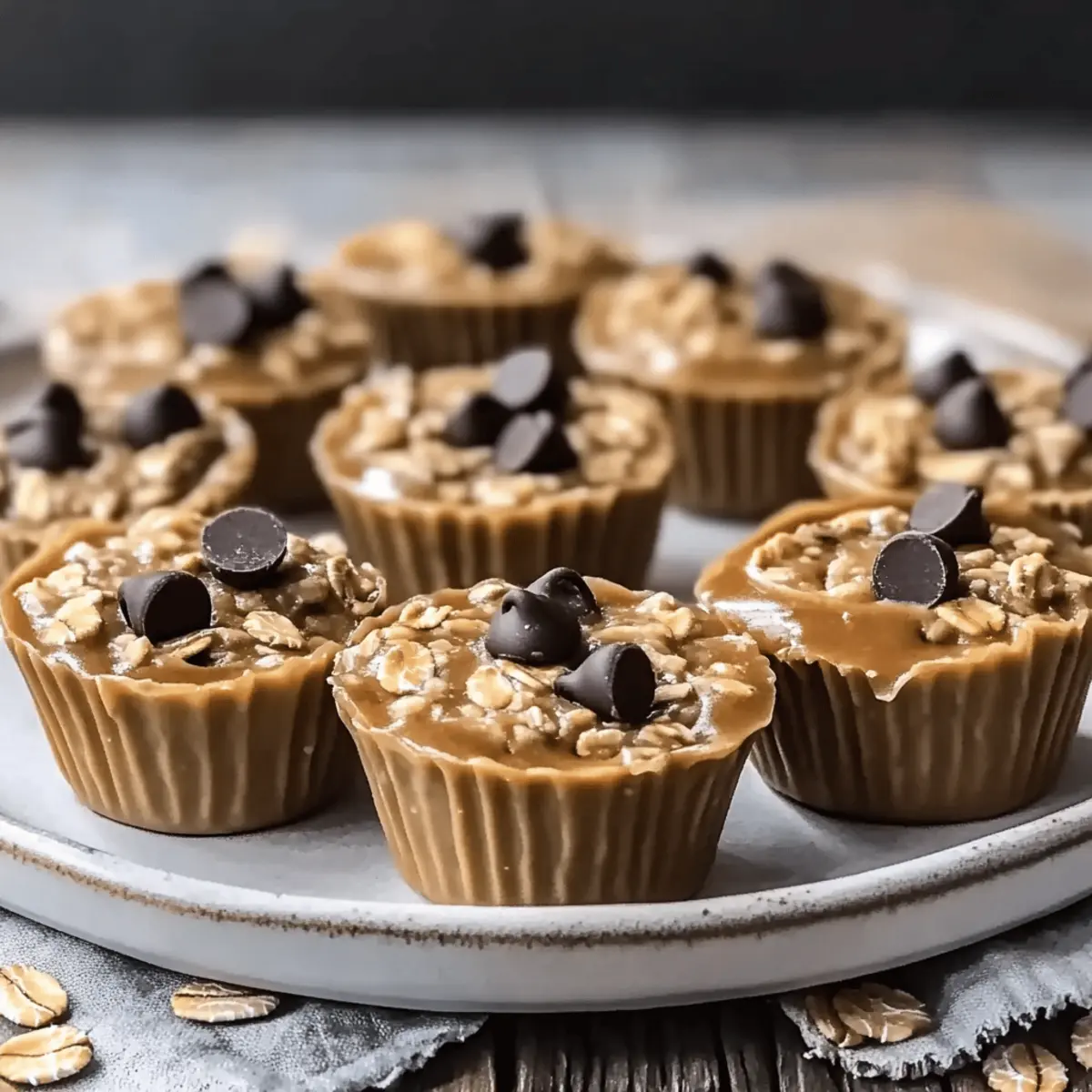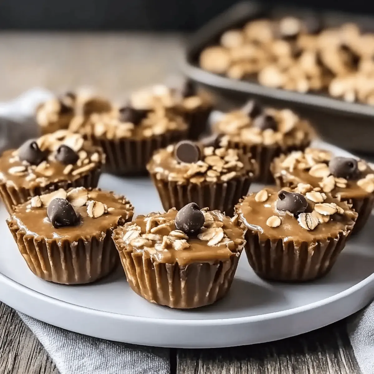 Jump to Recipe Print RecipeAs I rummaged through my pantry one afternoon, I stumbled upon the perfect combination of ingredients just waiting to be transformed into something delightful. Enter my No-Bake Peanut Butter Oat Cups—a nutritious treat that’s as easy to whip up as it is to enjoy! These cups blend the hearty, chewy texture of oats with the rich creaminess of peanut butter, creating a satisfying snack or dessert that satisfies your sweet cravings without the fuss of baking. With a quick prep time and the option to customize with your favorite toppings, they’re a fantastic way to take control of your snacking—free from fast-food temptations. Ready to indulge in a guilt-free sweet that will have you coming back for seconds? Let’s dive into how to make these irresistible creations! Why Are These Oat Cups So Popular? Simplicity at Its Finest: You’ll love how easy it is to make these no-bake treats! Just mix, press, and refrigerate for a delightful snack. Nutritious and Delicious: Packed with oats and peanut butter, these cups provide a healthy, energy-boosting boost that’s perfect for busy days. Customizable Options: Feel free to get creative! Add chocolate chips, nuts, or dried fruits, making them your unique snack every time. Kid-Friendly Treat: Kids adore these tasty cups! They’re a fantastic way to sneak in wholesome ingredients and satisfy sweet cravings without guilt. No Bake, No Problem: Forget the oven! Prep doesn’t get easier than this, especially when you can whip up healthy desserts like these on a whim. These No-Bake Peanut Butter Oat Cups are not only a fun twist on traditional snacks but also a delightful way to enjoy healthier options at home. No-Bake Peanut Butter Oat Cups Ingredients For the Cup Base Rolled oats – 1 cup provides structure and a chewy texture; use gluten-free oats for a gluten-free option. Natural peanut butter – 1/2 cup adds creaminess and rich flavor; almond or cashew butter can be tasty alternatives. Honey or maple syrup – 1/4 cup serves as a sweetener and binder; agave syrup is a great vegan substitute. Pinch of salt – If using unsalted peanut butter, this balances sweetness; it’s not needed if your peanut butter is already salted. For the Optional Toppings Dark chocolate chips – 1/4 cup adds a touch of indulgence; swap for dairy-free chips to keep it vegan. Vanilla extract – 1/2 tsp enhances overall flavor; you can omit it if you prefer a simpler taste. Creating these No-Bake Peanut Butter Oat Cups will indulge your sweet tooth while keeping things healthy and uncomplicated! Step‑by‑Step Instructions for No-Bake Peanut Butter Oat Cups Step 1: Mix the Base In a medium mixing bowl, combine 1 cup of rolled oats, 1/2 cup of natural peanut butter, and 1/4 cup of honey or maple syrup. Stir the ingredients vigorously until they are fully incorporated and a sticky mixture forms. Ensure the oats are evenly coated, creating a cohesive base for your No-Bake Peanut Butter Oat Cups. Step 2: Add Flavor Enhancements If desired, sprinkle in a pinch of salt and 1/2 teaspoon of vanilla extract to the mixture for added flavor. This step enhances the sweetness and creaminess of your No-Bake Peanut Butter Oat Cups. Mix again until the salt and vanilla are well combined, ensuring each bite is bursting with flavor. Step 3: Press into the Dish Prepare an 8-inch square baking dish by lining it with parchment paper. Firmly press the oat mixture into the dish, using the back of a spatula or your hands to pack it down evenly. Pressing firmly creates a solid base that will hold together once set, making your No-Bake Peanut Butter Oat Cups easy to cut later. Step 4: Add Toppings If you want to indulge a bit more, now is the time to sprinkle 1/4 cup of dark chocolate chips on top of the pressed mixture. Press the chocolate chips gently into the surface, ensuring they adhere well. This extra touch transforms your No-Bake Peanut Butter Oat Cups into a delightful treat that’s hard to resist! Step 5: Refrigerate to Set Cover the baking dish with plastic wrap and place it in the refrigerator for about 30 minutes. This chilling time allows the mixture to firm up, resulting in perfectly sliceable No-Bake Peanut Butter Oat Cups. You’re looking for a firm but slightly soft texture that holds its shape. Step 6: Slice and Serve Once set, remove the dish from the fridge and carefully lift the parchment paper to release the oat cups. Use a sharp knife to cut them into squares or bars, showcasing the delicious layers. These No-Bake Peanut Butter Oat Cups are now ready to enjoy or store for a quick, healthy snack anytime! Expert Tips for No-Bake Peanut Butter Oat Cups Press Firmly: Ensure the mixture is packed tightly in the dish. This step is crucial for the No-Bake Peanut Butter Oat Cups to hold together once set. Chill Time is Key: Allow at least 30 minutes in the refrigerator for proper firming. If they’re still soft, let them chill a bit longer for better slicing. Add Moisture if Needed: If your mixture appears too dry, simply add a touch more peanut butter or a splash of milk to reach a creamy consistency. Custom Toppings: Experiment with toppings! Try adding dried fruits or different nut butters to switch up the flavor and texture of your No-Bake Peanut Butter Oat Cups. Storage Matters: Keep these cups in an airtight container in the fridge for up to one week or freeze them for longer storage without losing flavor. How to Store and Freeze No-Bake Peanut Butter Oat Cups Fridge: Keep your No-Bake Peanut Butter Oat Cups in an airtight container for up to one week. They’ll remain delicious and ready for a quick snack! Freezer: For longer storage, freeze the cups in a single layer. Once firm, transfer them to a freezer-safe bag, and they can last up to three months. Thawing: When ready to enjoy, simply remove from the freezer and let sit at room temperature for about 15 minutes or refrigerate overnight for a convenient sweet treat. Reheating: No 