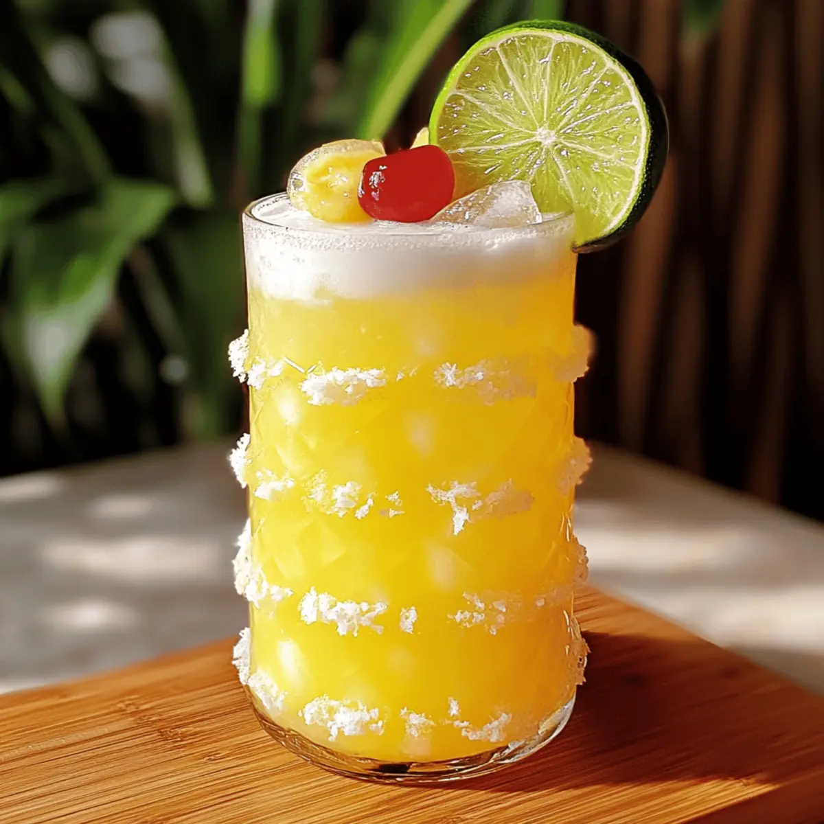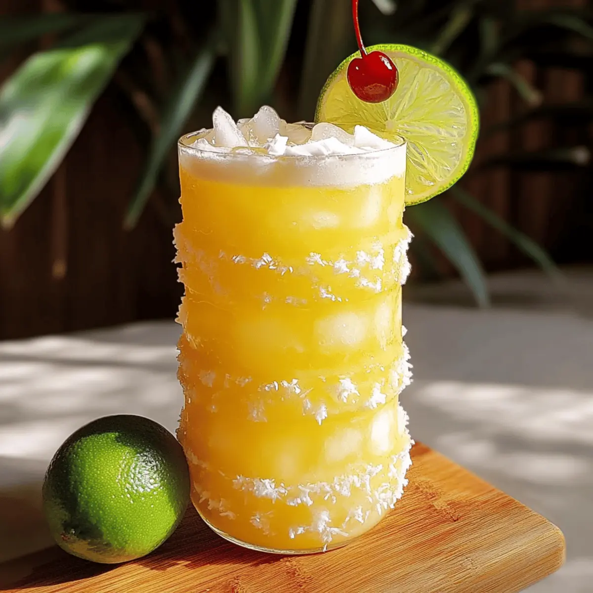 Jump to Recipe Print RecipeAs the warm sun dips low in the sky, I find myself craving the vibrant flavors of summer—nothing quite hits the spot like a refreshing drink. That’s where my Non-Alcoholic Piña Colada Punch comes in, a delightful fusion of sweet pineapple and creamy coconut that transports me straight to a sun-soaked beach. Whipping up this mocktail takes just 5 minutes, making it the perfect companion for family gatherings, picnics, or lazy afternoons at home. And the best part? You can easily customize it to suit your taste, whether you prefer a fruitier twist or a creamy delight. Ready to dive into this tropical paradise? Let’s mix up something special! Why is this drink so delightful? Simplicity: In just 5 minutes, you can craft this refreshing Non-Alcoholic Piña Colada Punch, perfect for those last-minute gatherings! Customizable: Tailor the flavors to your liking—swap in different juices or add fresh fruits for a personal twist. Family-Friendly: This mocktail brings everyone together, allowing kids and adults alike to enjoy the tropical essence without alcohol. Refreshing Texture: With a smooth, creamy feel from coconut water, each sip feels like a mini-vacation, ideal for warm days by the pool. Low-Calorie Treat: Enjoy without guilt! This punch is a low-calorie indulgence that fits perfectly into any healthy lifestyle. Serve it up in festive glassware and don’t forget the garnishes—it’s an easy way to brighten up any occasion! Non-Alcoholic Piña Colada Punch Ingredients For the Base • Pineapple Juice – Provides sweetness and a tropical flavor; fresh juice enhances the taste. • Coconut Water – Adds creaminess and refreshment; substitute with coconut milk for a richer texture. • Lime Juice – Offers acidity to balance sweetness; adjust to taste for added tartness. For the Flavor • Optional Non-Alcoholic Rum – Enhances flavor complexity; an excellent choice for those wanting a bit more depth without alcohol. Feel free to customize your Non-Alcoholic Piña Colada Punch with different juices or fresh fruit for a fun twist! Step‑by‑Step Instructions for Non-Alcoholic Piña Colada Punch Step 1: Combine the Base Ingredients In a large pitcher, pour in 4 cups of pineapple juice and 2 cups of coconut water. Stir these together vigorously with a wooden spoon for about 30 seconds until well blended. You should see a creamy texture forming, and the tropical aroma will fill your kitchen, setting the stage for your refreshing Non-Alcoholic Piña Colada Punch. Step 2: Add Fresh Lime Juice Next, squeeze the juice of 2-3 limes directly into the pitcher, ensuring no seeds get in the mix. Stir the blend again for another 30 seconds, allowing the tangy acidity to balance the sweetness of the pineapple. The mixture will appear slightly frothy, which means you’re on the right track to achieving that vibrant flavor. Step 3: Optional Flavor Addition If you desire a hint of complexity, add 1 cup of optional non-alcoholic rum to the pitcher. This step is entirely up to your taste preference. Stir the mixture gently for about 15 seconds, ensuring the rum is fully incorporated. The punch should now have an exciting tropical aroma, perfect for appealing to everyone at your gathering. Step 4: Serve Over Ice Fill tall, chilled glasses with ice cubes, then pour the deliciously creamy Non-Alcoholic Piña Colada Punch over the ice until the glasses are about three-quarters full. You’ll notice the bright yellow color contrasting beautifully with the clear ice, creating an inviting drink that’s perfect for summer fun. Step 5: Garnish and Enjoy Lastly, elevate your mocktail by garnishing each glass with a slice of lime or a cherry. Perhaps add a small sprig of fresh mint for an extra festive flair. Serve immediately to ensure your guests enjoy the punch at its freshest and most flavorful. Celebrate summer vibes with this delightful drink! What to Serve with Non-Alcoholic Piña Colada Punch Elevate your tropical experience by pairing this delightful punch with complementary dishes that embody summer’s vibrant flavors. Grilled Shrimp Skewers: The smoky flavor of grilled shrimp contrasts beautifully with the punch, adding a savory element to your meal. These skewers are fun to eat and perfect for outdoor gatherings. Tropical Fruit Salad: Mix fresh fruits like mango, kiwi, and berries for a refreshing salad that highlights the fruity notes of the punch. Drizzle with honey and lime juice to enhance the flavors even more. Coconut Rice: This creamy and fluffy dish adds a subtly rich texture that complements the smoothness of the punch, making each bite a tropical delight. Serve it alongside grilled meats for a complete meal. Spicy Chicken Tacos: The heat from spicy chicken tacos creates an exciting contrast to the sweet and creamy punch. Top with fresh avocado and diced tomatoes for an added burst of flavor. Chocolate-Covered Pineapple Bites: These sweet treats tie in directly with the pineapple punch, creating a harmonious dessert experience. They’re simple to prepare and offer a satisfying texture that pairs well with the drink. Minty Lemonade: For a refreshing beverage pairing, offer a classic mint lemonade. The zesty notes will enhance the tropical vibes of your Non-Alcoholic Piña Colada Punch, making your gathering feel even more festive. Chilled Cucumber Soup: This refreshing starter is light and cooling, which makes it an ideal companion to your punch. The crispiness of cucumber will keep things balanced while introducing a lovely color to your table. Storage Tips for Non-Alcoholic Piña Colada Punch Fridge: Store leftovers in an airtight container in the refrigerator for up to 3 days. This keeps the flavors fresh and vibrant. Freezer: For longer storage, freeze the punch in ice cube trays. These can be used later to chill drinks without diluting them. Reheating: While this punch is best served cold, if you want to enjoy it warm, gently reheat it on the stove ov