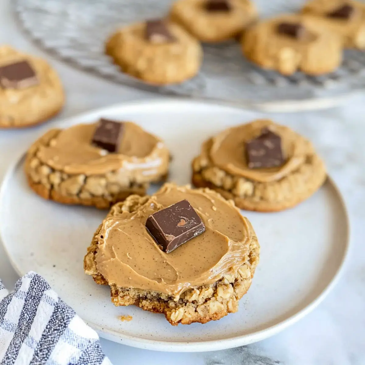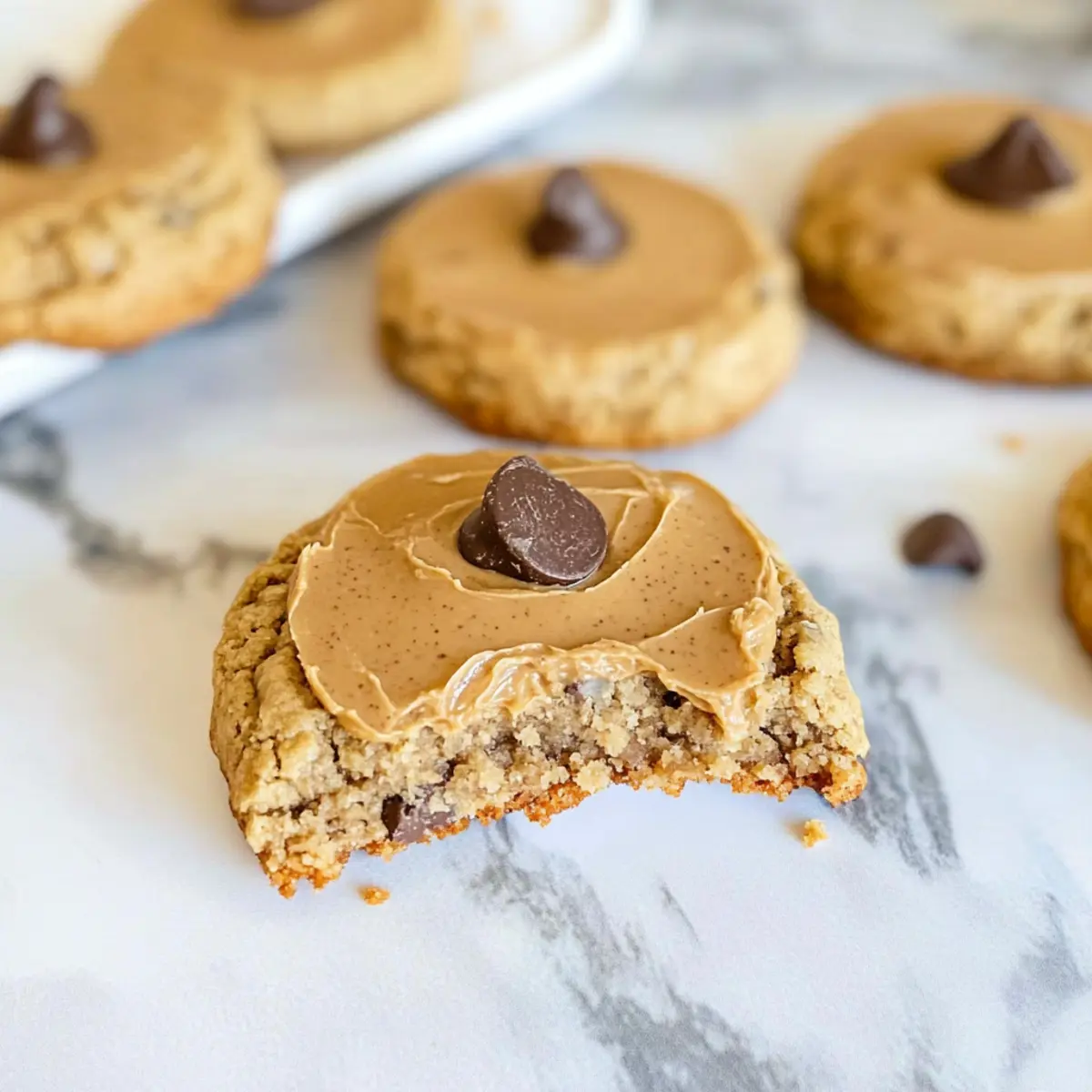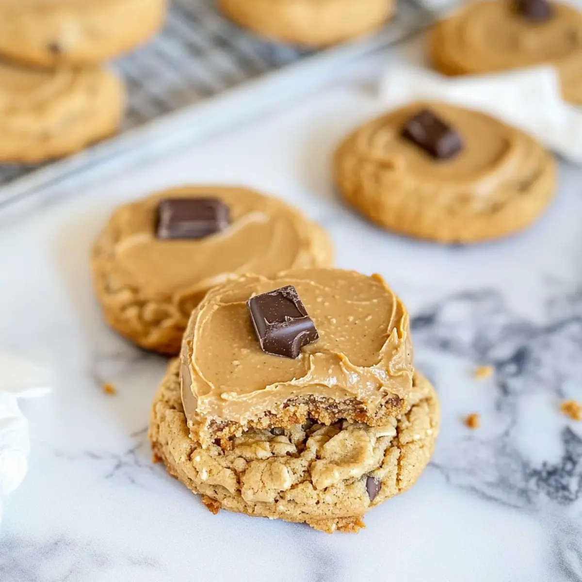 After baking, let the cookies cool on the pan for a few minutes to set before transferring them to a wire rack. Once cooled, generously spread cookie butter over each cookie for an extra layer of flavor and indulgence. If you like, sprinkle some cookie crumbs on top for added texture and a delightful finish.