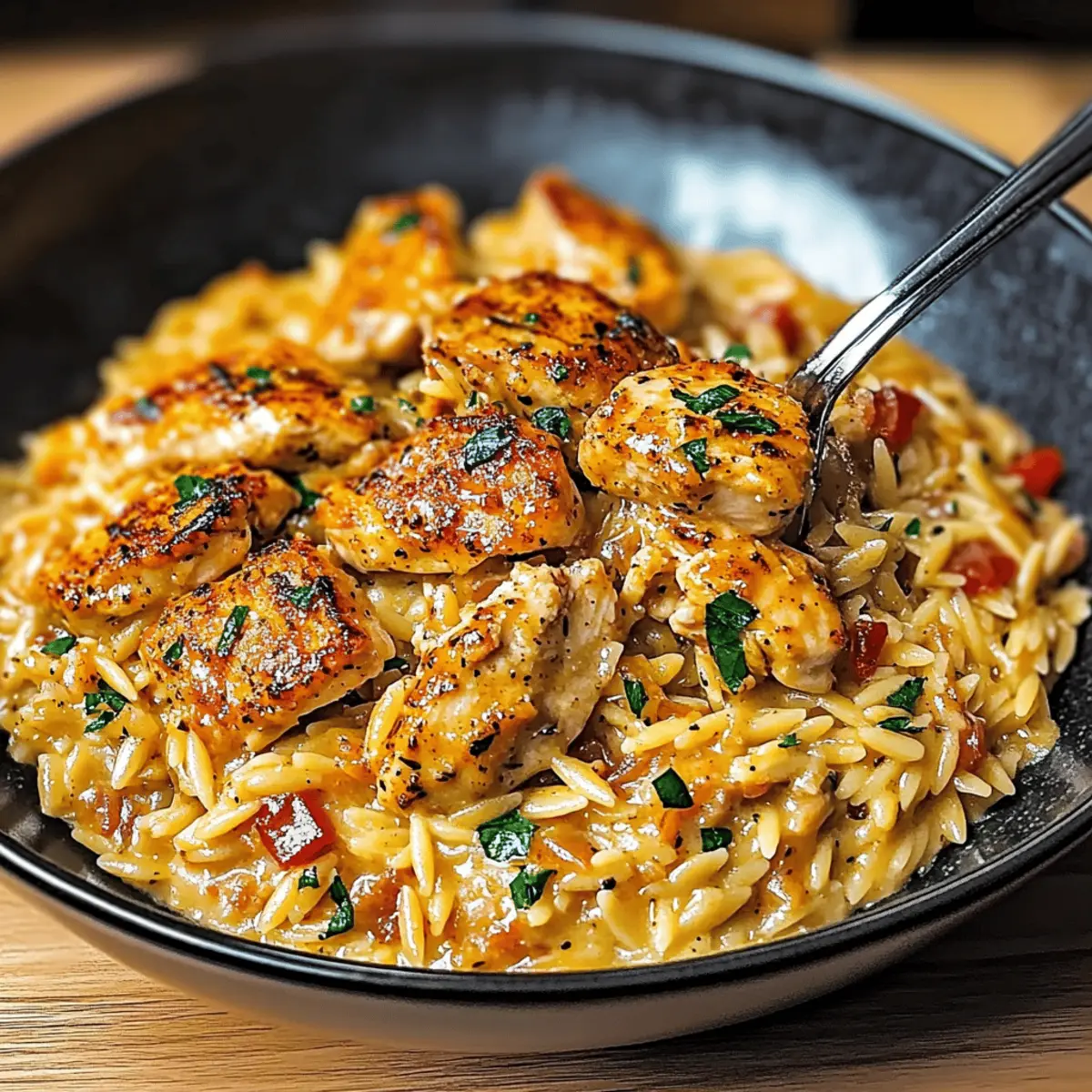 Jump to Recipe Print RecipeThe aroma of Cajun spices wafts through my kitchen, sending my taste buds into a delightful frenzy. When it comes to weeknight dinners, I crave a dish that not only satisfies my hunger but also captivates my spirit. That’s where this One-Pot Cajun Chicken Alfredo Orzo comes in! In just 30 minutes, this creamy and customizable meal combines the comforting essence of traditional Alfredo with a spirited Cajun twist, making it a surefire crowd-pleaser. The beauty of this recipe lies in its simplicity—you can easily adapt it to your liking, whether by swapping proteins or tossing in your favorite veggies. Plus, it saves you from an avalanche of dishes to wash! Intrigued by how such a comforting dish can be made so effortlessly? Let’s dive into the recipe! Why Is This Recipe a Game-Changer? Quick and Easy: With just 30 minutes from start to finish, this dish is perfect for those busy weeknights when you crave a satisfying meal without the fuss. Creamy Delight: The rich Alfredo sauce mixed with Cajun spices creates a unique, comforting flavor profile that will have everyone reaching for seconds. Customizable Options: Want to switch things up? This recipe allows you to easily swap out proteins or add in veggies like bell peppers or spinach for extra nutrition. One-Pot Wonder: Say goodbye to messy kitchens! All the magic happens in one pot, making cleanup a breeze. Crowd-Pleasing Comfort: Whether it’s a family dinner or a friendly get-together, this dish will impress your guests and leave them raving about your culinary skills. If you’re looking for more quick meals, check out my Pesto Chicken Broccoli and Hot Honey Chicken recipes that are also sure to satisfy! One-Pot Cajun Chicken Alfredo Orzo Ingredients For the Chicken Chicken Breast – Protein source cut into 1-inch cubes; thighs are juicier and perfect for this recipe. Cajun Seasoning – A spice blend that adds depth and heat; you can make your own or grab a store-bought variety. Olive Oil – Flavors the chicken while searing; substitute with vegetable oil if needed. For the Sauce Butter – Adds richness to the creamy sauce; use more olive oil if you prefer a dairy-free option. Onion – An aromatic base; yellow or white onions work best, but shallots can be a nice alternative. Garlic – Enhances the flavor profile; fresh garlic is preferred, but garlic powder can be used in a pinch. Heavy Cream – Gives creaminess to the sauce; half-and-half works for a lighter version. Parmesan Cheese – Richness and flavor; substitute with nutritional yeast for a vegan variant. Smoked Paprika – Adds color and a subtle smokiness; regular paprika can be a simple substitute. Red Pepper Flakes – Optional for an extra kick; omit if you prefer a milder dish. For the Orzo Orzo Pasta – Absorbs flavors while cooking; feel free to substitute with other small pasta shapes if desired. Low-Sodium Chicken Broth – Liquid for cooking the orzo and enriching flavor; vegetable broth can be a great vegetarian alternative. Garnish Fresh Parsley – Adds color and freshness to the finished dish; swap with other fresh herbs like thyme or basil for a unique twist. Now you’re all set to create this One-Pot Cajun Chicken Alfredo Orzo! Looking forward to diving into the instructions next. Step‑by‑Step Instructions for One-Pot Cajun Chicken Alfredo Orzo Step 1: Prepare Chicken Begin by cutting the chicken breast into 1-inch cubes, and season them generously with Cajun seasoning. In a large skillet, heat olive oil over medium-high heat. Sear the chicken for about 3-4 minutes on each side until they are golden brown and cooked through. This step builds the flavorful base of your One-Pot Cajun Chicken Alfredo Orzo. Step 2: Flavor Base Once the chicken is browned, remove it from the skillet and set it aside. In the same skillet, lower the heat to medium and add butter. Sauté diced onions and minced garlic for about 3-4 minutes until they become translucent and fragrant. This aromatic foundation will enhance the richness of the sauce in your dish. Step 3: Toast Orzo Add the orzo pasta to the skillet and toast it for 1-2 minutes, stirring frequently until the grains become slightly opaque. This toasting process enhances the flavor and texture of the orzo, allowing it to absorb the delightful Cajun notes in the One-Pot Cajun Chicken Alfredo Orzo. Step 4: Simmer Pour in the low-sodium chicken broth along with smoked paprika and red pepper flakes, if using. Bring the mixture to a gentle boil, then reduce the heat. Cover the skillet and let it simmer for 10-12 minutes, stirring occasionally, until the orzo is al dente and has absorbed most of the liquid. This step allows the flavors to meld beautifully. Step 5: Creamy Finish After the orzo has cooked, lower the heat further and stir in the heavy cream and grated Parmesan cheese. Mix gently until the cheese has melted and the sauce is creamy and smooth. Avoid high heat during this step to keep the sauce from curdling. Your One-Pot Cajun Chicken Alfredo Orzo is edging closer to perfection! Step 6: Combine Return the sautéed chicken to the skillet and stir to combine thoroughly, ensuring the chicken is heated through. Taste and adjust the seasoning if necessary, adding more Cajun seasoning if desired. Finally, remove from heat and garnish with freshly chopped parsley to brighten up this mouthwatering dish. One-Pot Cajun Chicken Alfredo Orzo Variations Customize your One-Pot Cajun Chicken Alfredo Orzo to match your cravings and dietary needs for a delightful twist! Shrimp Swap: Replace chicken with shrimp for a quick seafood twist that pairs beautifully with the creamy sauce. Andouille Sausage: Add slices of Andouille sausage for a heartier, smoky flavor that’s perfect for meat lovers. Veggie Boost: Toss in bell peppers, spinach, or zucchini for added nutrition and a pop of color. Dairy-Free Delight: Use coconut milk or a dairy-free cream alternative to keep it creamy while avoiding 