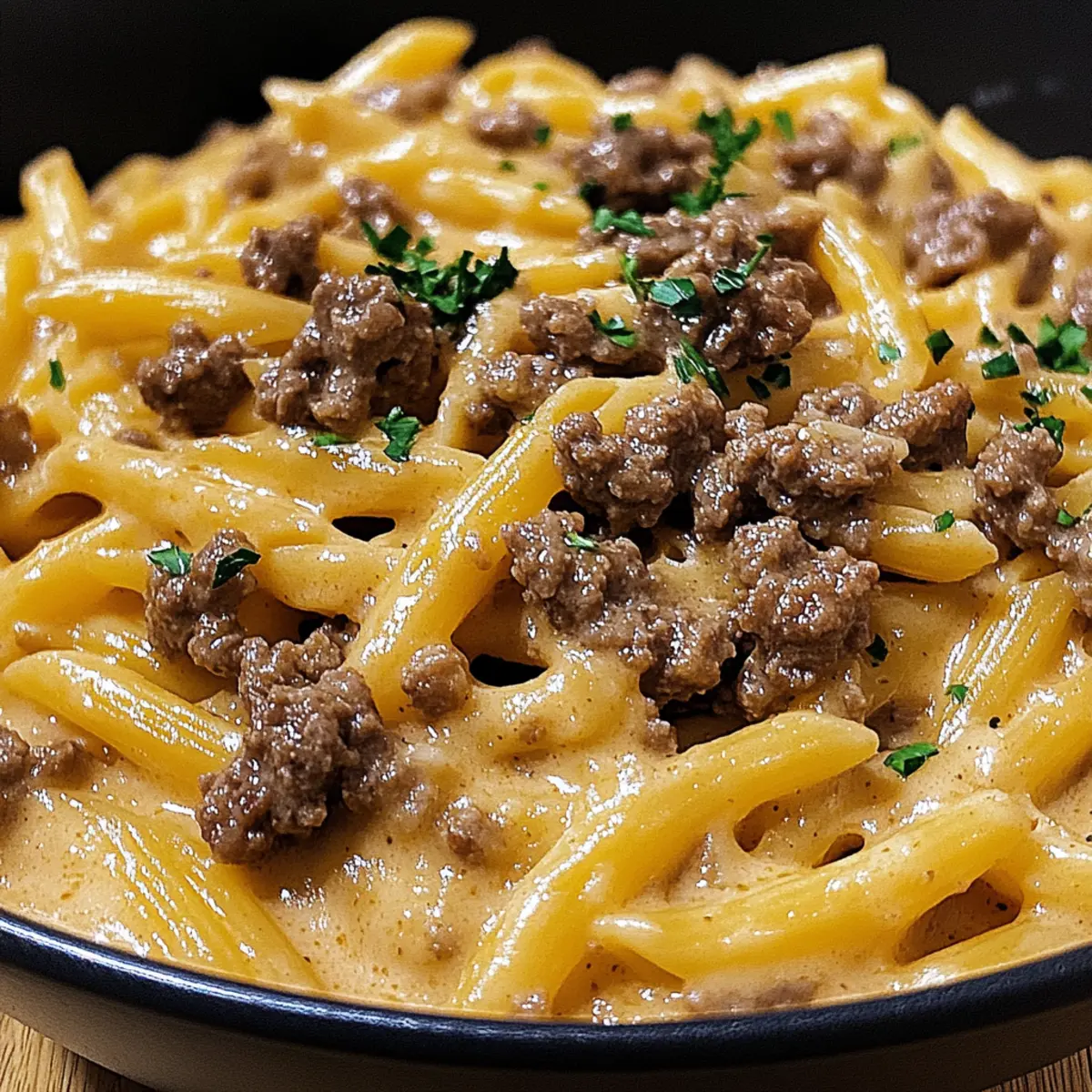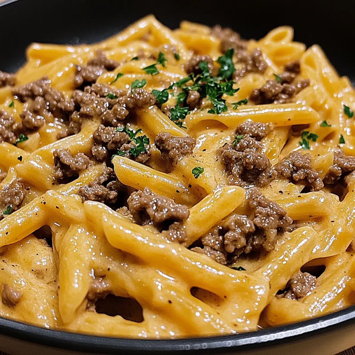 Jump to Recipe Print RecipeLast week, I found myself staring at a mountain of dishes after making an elaborate dinner, and let’s just say, my enthusiasm for cooking took a nosedive. That’s when my One-Pot Creamy Beef and Garlic Butter Pasta came to the rescue! This dish is not only a creamy comfort food dream but also a lifesaver for busy weeknights with its minimal cleanup. With savory ground beef, aromatic garlic butter, and rich Parmesan cheese melded together in one pot, it truly feels like a warm embrace on a plate. Plus, its versatility means you can easily swap in chicken, add veggies, or even adjust the spice level to suit your taste. Are you ready to embark on a culinary adventure that promises comfort and simplicity all in one? Let’s dive in! Why is this pasta recipe a must-try? Simplicity at Its Best: With just one pot, you get a creamy, satisfying meal without the stress of multiple dishes. Flavor Explosion: The rich garlic butter and Parmesan create a symphony of flavors that will leave everyone asking for seconds. Versatile Variations: Easily switch to ground chicken or add your favorite veggies like spinach or mushrooms to tailor the dish to your taste. Quick Dinner Solution: Perfect for busy weeknights, it cooks in under 30 minutes, making it an ideal choice for anyone short on time. Unmatched Comfort Food: This dish offers the cozy feel of homemade favorites, reminiscent of classic Italian-American cuisine that your family will love. Don’t forget to serve it with garlic bread for a complete experience! One-Pot Creamy Beef and Garlic Butter Pasta Ingredients For the Pasta Dish • Ground Beef – Provides protein and a savory base; substitute with ground chicken for a lighter option. • Butter – Adds richness and flavor; feel free to swap with olive oil for a healthier alternative. • Garlic – Offers aromatic depth; consider using roasted garlic for a sweeter touch. • Onion – Enhances the overall flavor; any onion variety works, including shallots. • Italian Seasoning – Infuses classic Italian flavors; fresh herbs can be used, just adjust the amount. • Red Pepper Flakes – Offers a spicy kick; adjust according to your heat preference or leave out for a milder dish. • Beef Broth – Serves as the savory base; chicken broth can provide a lighter flavor. • Milk – Creates creaminess; heavy cream can be used for a richer sauce, or go dairy-free with almond milk. • Uncooked Pasta – The heart of the dish; penne, rigatoni, or rotini are ideal for sauce adherence. • Parmesan Cheese – Adds creaminess and flavor; nutritional yeast is a great dairy-free substitute. • Salt & Black Pepper – Essential for seasoning; adjust to taste. • Fresh Parsley – Provides a bright finish; this is optional for garnish. Optional Add-Ins • Spinach, Mushrooms, or Bell Peppers – Stir these in for extra nutrition and flavor variety. • Mozzarella or Cheddar Cheese – Mix in for an extra cheesy dish if desired. • Hot Sauce – Add a dash for an extra spicy kick! This One-Pot Creamy Beef and Garlic Butter Pasta is more than just a meal; it’s a comforting experience perfect for busy evenings. Enjoy it with your loved ones! Step‑by‑Step Instructions for One-Pot Creamy Beef and Garlic Butter Pasta Step 1: Brown the Beef Begin by heating a large skillet over medium-high heat. Add the ground beef and cook, breaking it apart with a spatula, until it turns brown and no longer pink, about 5–7 minutes. Drain any excess grease if necessary, ensuring a rich flavor without heaviness. Step 2: Sauté Garlic & Onion Push the cooked beef to one side of the skillet and melt 2 tablespoons of butter in the empty space. Add minced garlic and chopped onion, sautéing them together until they turn fragrant and golden, about 2 minutes. Sprinkle in the Italian seasoning and red pepper flakes, stirring to combine and infuse the flavors. Step 3: Add Liquid & Pasta Pour in 2 cups of beef broth and 1 cup of milk, stirring to blend the ingredients. Bring the mixture to a gentle boil over medium heat, then add the uncooked pasta. Make sure it’s fully submerged, then cover the skillet and simmer for 12–15 minutes. Stir occasionally until the pasta is tender and the sauce thickens beautifully. Step 4: Stir in Cheese & Seasonings Once the pasta is cooked, reduce the heat to low. Stir in 1 cup of grated Parmesan cheese, mixing until it melts and creates a creamy sauce. Add salt and black pepper to taste, creating a savory depth that complements the pasta wonderfully. Step 5: Serve & Enjoy Finally, serve your One-Pot Creamy Beef and Garlic Butter Pasta hot, garnishing with freshly chopped parsley and additional Parmesan if desired. Pair it with garlic bread or a simple green salad for a complete meal your family will adore! One-Pot Creamy Beef and Garlic Butter Pasta Variations Don’t hesitate to adapt this recipe and create your perfect twist on comfort food! Chicken Version: Swap ground beef for ground chicken for a lighter and equally satisfying meal. It brings a delicate flavor that’s perfect for any palate. Veggie Boost: Add in a handful of spinach, mushrooms, or bell peppers for extra nutrition and a pop of color. This not only enhances the dish but also makes it more wholesome and vibrant. Extra Cheesy: Stir in ½ cup of mozzarella or cheddar cheese for a gooey, cheesy delight. Cheese lovers will relish the creamy, rich goodness in every bite! Gluten-Free Option: Use gluten-free pasta and substitute cornstarch for any flour to create a thickening agent. Enjoy your favorite pasta dish guilt-free and still delicious! Spicy Kick: Increase the red pepper flakes or add a dash of your favorite hot sauce to really turn up the heat. Perfect for those who crave a fiery bite! Roasted Garlic Twist: Utilize roasted garlic instead of raw for a sweeter, mellower flavor. This depth will add an amazing layer of taste that everyone will adore. Creamy Dairy-Free: Substitute regular m