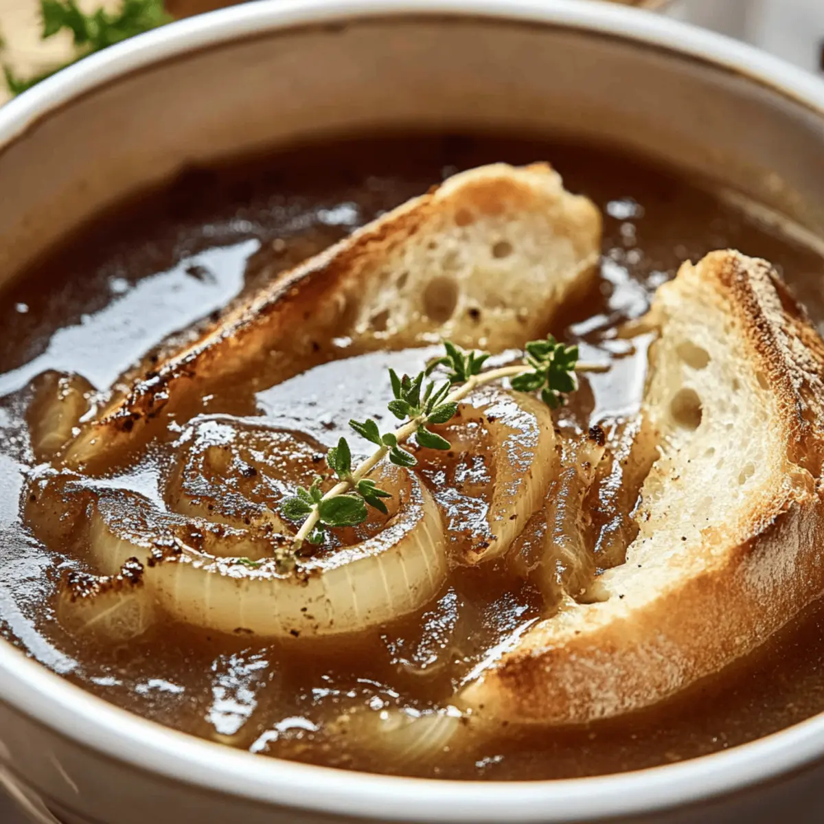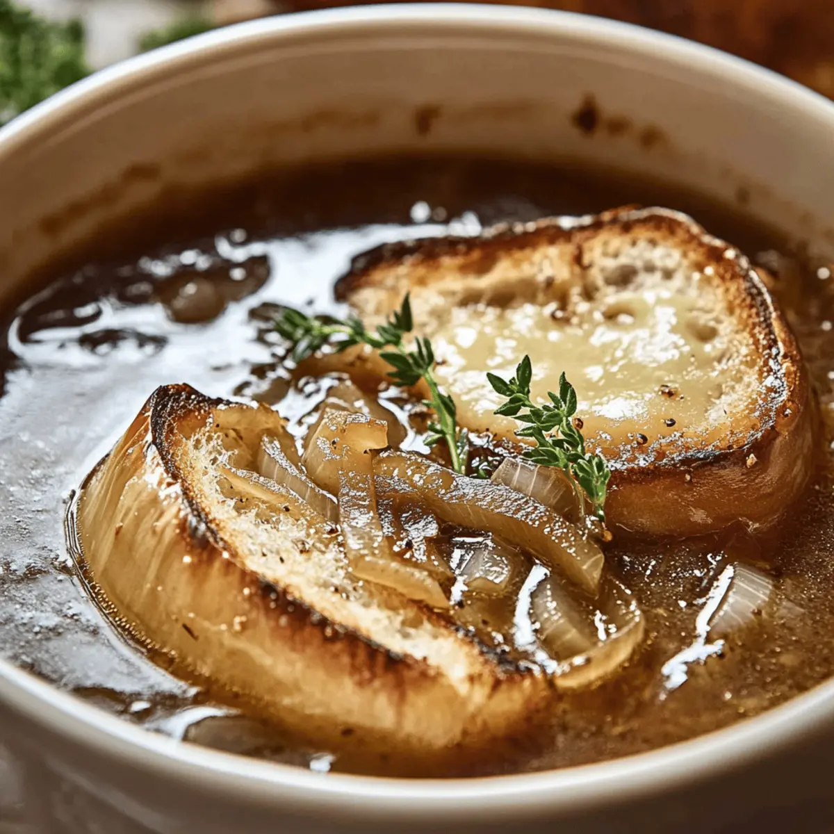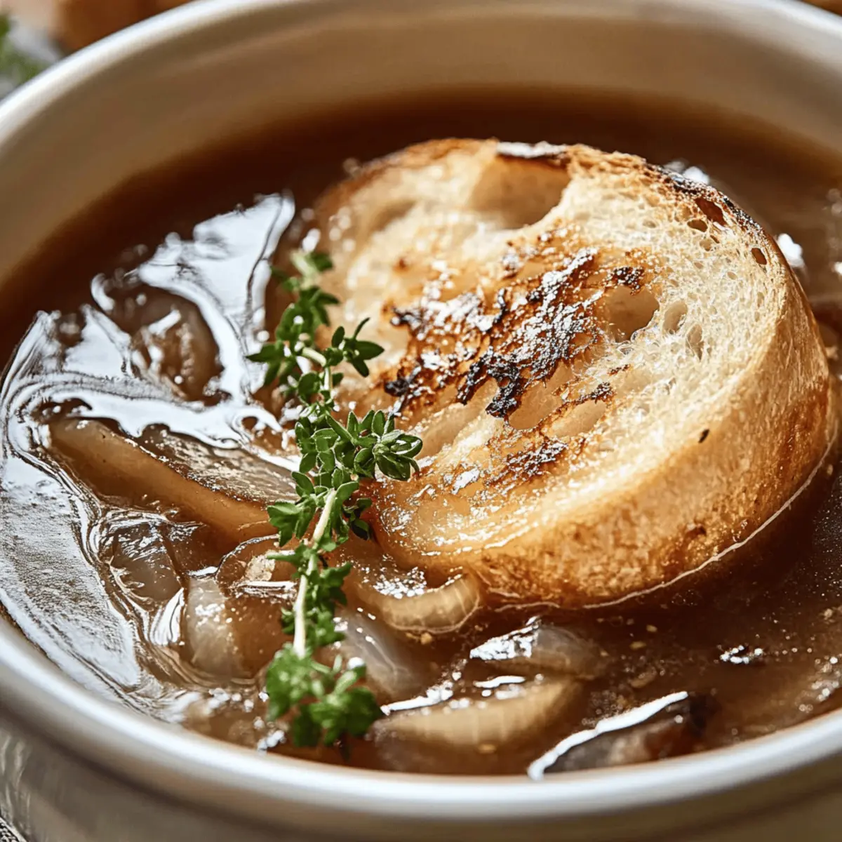 Jump to Recipe Print RecipeAs I stood in my kitchen, the sweet scent of caramelizing onions filled the air, transporting me to a cozy French bistro tucked away on a cobblestone street. My heart swelled as I prepared to share my Cozy Ultimate French Onion Soup with Savory Onion Soup Mix—a dish that epitomizes comfort food. The beauty of this recipe lies in its simplicity, blending the rich flavors of homemade soup with the convenience of onion soup mix, making it perfect for busy weeknights or chilly weekends alike. Plus, whether you opt for store-bought convenience or a homemade twist, you’re guaranteed a crowd-pleaser. With gooey melted cheese and toasted baguette slices, this soup offers a delightful warmth that nourishes both body and soul. Are you ready to embrace the cozy vibes? Let’s dive into this comforting bowl of goodness! Why Is Onion Soup Mix So Amazing? Versatile Base: The onion soup mix serves as a fantastic starting point for countless meals—perfect for adding flavor to dips, casseroles, or even stews. Ease of Preparation: With just a few simple ingredients and minimal prep time, this recipe makes cozy dining accessible to everyone, even on the busiest of nights. Comforting Flavor: A robust combination of caramelized onions and savory broth creates a meal that truly warms the soul. Crowd-Pleasing Appeal: This soup is always a hit, captivating both family and friends with its rich, hearty taste—no one can resist that gooey cheese! Optimal for Any Occasion: Whether it’s a chilly evening or a casual gathering, this dish fits perfectly. Pair it with a fresh green salad or make it the star of your dinner party. Looking for other comforting soups? Consider trying out our delicious Crock Pot Soup or Creamy Italian Ground Chicken Soup. Onion Soup Mix Ingredients • Here’s what you’ll need to create a delightful bowl of comfort. For the Soup Onion Soup Mix – A robust seasoning blend that enhances the soup’s flavor; use store-bought for convenience or make your own for a personal touch. Beef Broth – Provides a rich depth to the soup; low-sodium options keep it balanced without overwhelming flavors. Sliced Onions – Freshly sliced onions are crucial; yellow onions add sweetness, while white onions offer a sharper note for complexity. Butter – Essential for caramelizing the onions; it creates a rich and luscious mouthfeel—2 tablespoons is just right. Cheese (Gruyère or Swiss) – Melts beautifully to create a cheesy topping; don’t hold back on this scrumptious addition! Baguette Slices – Toasted until golden for a delightful crunch; perfect for soaking up all that hearty broth. Optional Toppings Fresh Herbs – Add a sprinkle of fresh thyme or parsley for a burst of color and freshness on top of your finished soup. Croutons – For an extra crunch, consider adding homemade or store-bought croutons right before serving. Enjoy diving into this cozy bowl of French onion soup, made effortlessly delicious with the magic of onion soup mix! Step‑by‑Step Instructions for Onion Soup Mix Step 1: Prepare Ingredients Begin by thinly slicing your onions using a sharp knife, aiming for even thickness to ensure uniform caramelization. Set aside the sliced onions in a bowl. Gather your other ingredients, including your prepared onion soup mix, beef broth, butter, and cheese. Ensuring everything is prepped will make the cooking process smooth and enjoyable. Step 2: Sauté Onions In a large pot, melt 2 tablespoons of butter over medium heat. Once melted, add the sliced onions and stir well to coat them in the butter. Cook the onions for about 15 minutes, stirring occasionally, until they are beautifully golden brown and fragrant. This caramelization step is crucial for developing deep flavors in your Cozy Ultimate French Onion Soup. Step 3: Combine Broth and Soup Mix Pour in around 6 cups of beef broth into the pot with the caramelized onions, then add the onion soup mix. Stir everything together to combine thoroughly, making sure the soup mix dissolves in the broth. Bring the mixture to a gentle simmer over medium heat and let it simmer for 20 minutes, allowing all the flavors to meld beautifully. Step 4: Toast Baguette While the soup simmers, preheat your oven to 350°F (175°C). Slice a baguette into 1-inch thick slices and arrange them on a baking sheet. Lightly toast the slices in the oven for about 10 minutes or until they are crisp and golden but not hard. These crispy baguette slices will top your soup perfectly, offering a delightful texture contrast. Step 5: Broil Soup Once the soup is ready, ladle it into oven-safe bowls. Top each bowl with the toasted baguette slices and generously sprinkle with Gruyère or Swiss cheese. Carefully place the bowls under the broiler for approximately 3-5 minutes until the cheese is bubbly and golden brown. Keep a close eye to prevent burning while they broil to perfection. Step 6: Serve With the cheese melted and bubbling, carefully remove the bowls from the oven using oven mitts. Allow them to cool slightly before serving. Optional: Garnish with fresh herbs like thyme or parsley for a vibrant touch. Your Cozy Ultimate French Onion Soup made with savory onion soup mix is now ready to warm your heart and delight your taste buds! What to Serve with Cozy Ultimate French Onion Soup Enhance your comforting bowl of French onion soup with delightful pairings that create a well-rounded meal experience. Crispy Green Salad: A fresh, crunchy salad balances the rich soup, adding a refreshing touch to the meal. Garlic Bread: The buttery, garlicky flavor of garlic bread complements the savory broth brilliantly, offering a delightful texture that invites a second serving. Roasted Vegetables: A medley of caramelized carrots and brussels sprouts tie in beautifully with the flavors of the soup, creating a warming experience. Creamy Mashed Potatoes: Silky potatoes allow you to savor every bite, and their creamy texture pairs perfectly with t