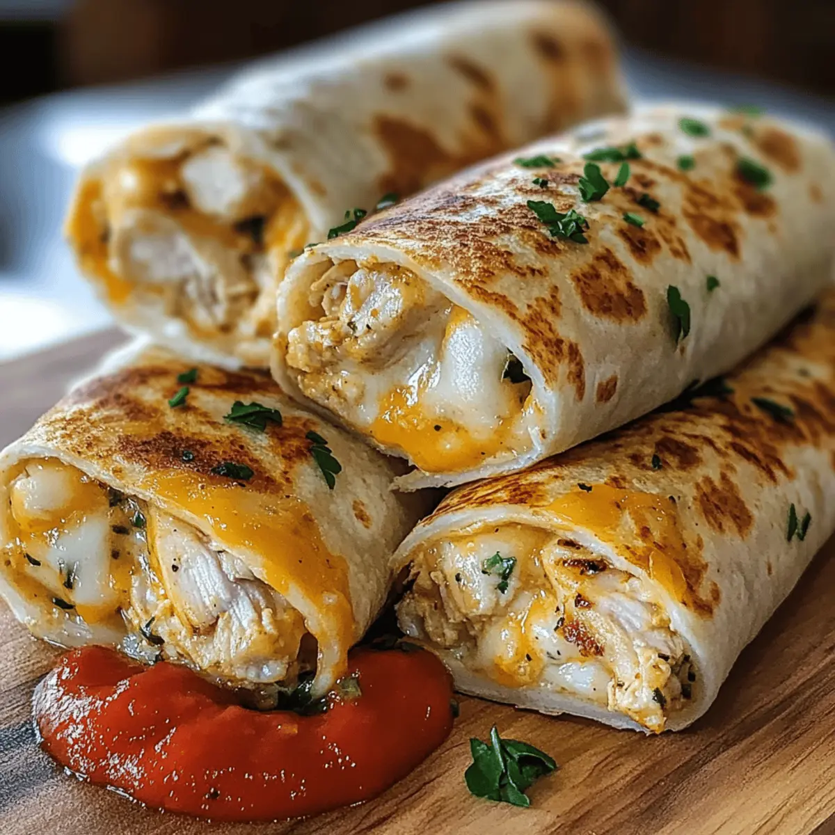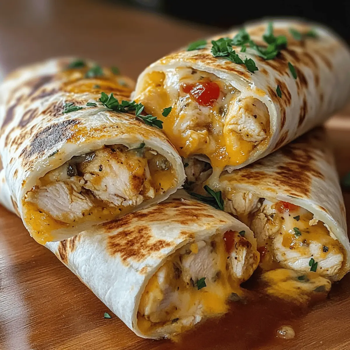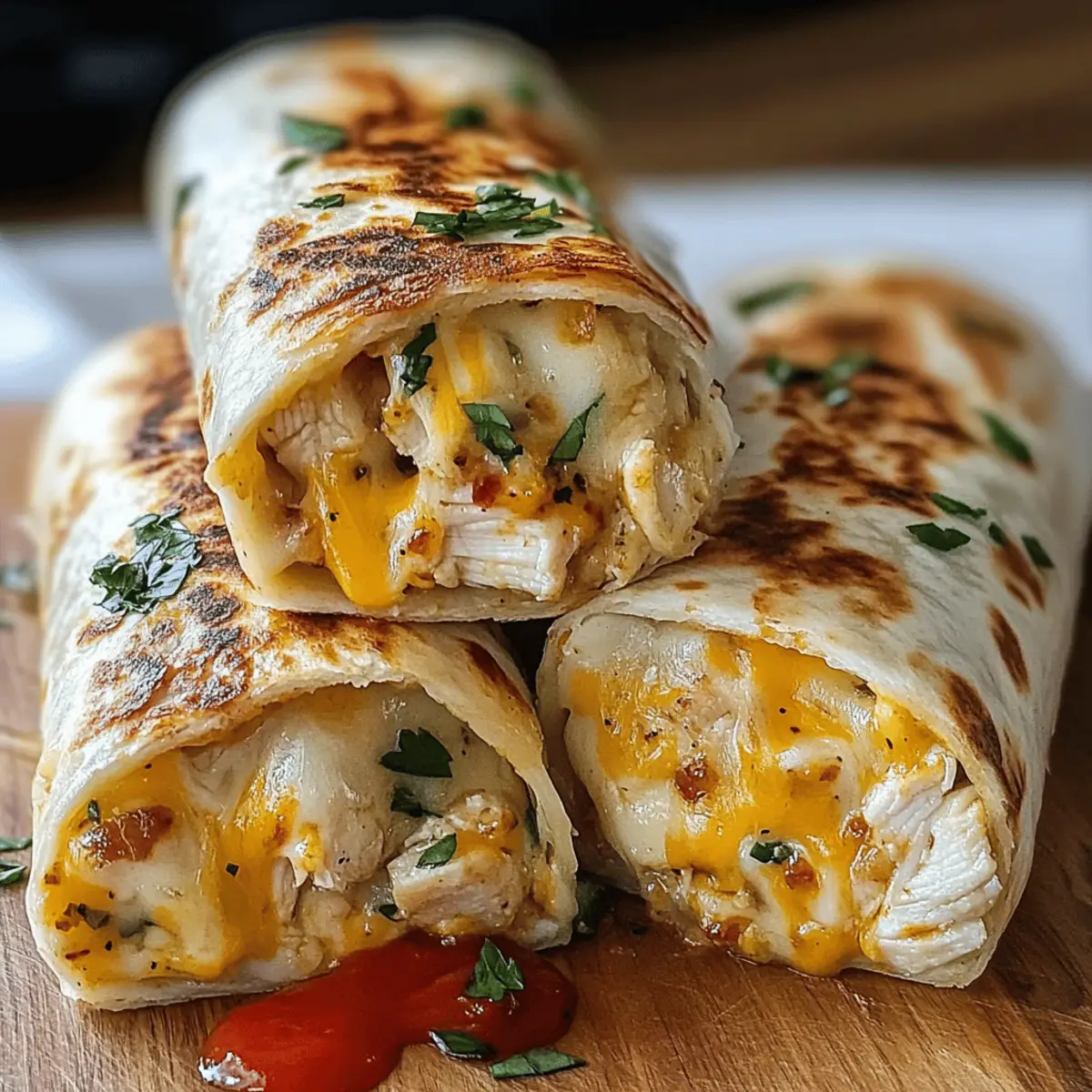 Jump to Recipe Print RecipeThe aroma of sizzling garlic wafted through my kitchen, instantly whisking me back to cozy family dinners. That’s when I knew it was time for my favorite comfort food: Ooey-Gooey Cheesy Garlic Chicken Wraps. This delectable creation is not only easy to whip up, but it’s also a customizable masterpiece that can cater to your every craving. Whether you’re short on time during a bustling weeknight or looking to impress at a casual gathering, these wraps deliver mouthwatering satisfaction with minimal fuss. Plus, with options to make them gluten-free, they’re perfect for everyone at the table! Ready to dive into creamy, cheesy goodness wrapped in a warm tortilla? Let’s get started! Why are Cheesy Garlic Chicken Wraps a Must-Try? Irresistible Flavor: The combination of juicy chicken, savory garlic, and melty cheese delivers a taste explosion in every bite, making these wraps comforting and satisfying. Quick and Easy: Whip up these wraps in no time, ideal for those busy weeknights. For extra convenience, try using rotisserie chicken as a shortcut. Customizable Delights: Feel free to play with ingredients! Swap in different cheeses or toss in your favorite veggies, like spinach or bell peppers, to suit your taste preferences. Crispy Perfection: Toasting the wraps adds a delightful crunch that pairs beautifully with the gooey filling, ensuring each bite is a textural delight. Crowd-Pleasing Option: These wraps are perfect for casual gatherings or even lunch boxes. Trust me; they’ll impress family and friends just like the Honey Garlic Chicken does! With a simple recipe like this, you’ll wonder how you ever lived without these cheesy delights in your life! Ooey-Gooey Cheesy Garlic Chicken Wraps Ingredients For the Chicken Filling Chicken – Juicy and hearty; using rotisserie makes this recipe a breeze. Garlic – Fresh or minced; sauté until golden for maximum flavor. Cheese (Cheddar or Mozzarella) – Melts beautifully, providing that rich creaminess; feel free to swap for gouda or pepper jack for a kick. For the Wrap Tortillas – Soft and pliable; choose gluten-free or whole wheat options for a healthier twist. Olive Oil – Essential for sautéing, but butter adds a delicious richness if preferred. Butter – Use for toasting wraps to a golden brown; try mixing it with garlic for an aromatic boost. Optional Garnish Parsley – A bright touch for color and freshness; adds visual appeal when serving. With these simple ingredients, you’re all set to create the delectable Ooey-Gooey Cheesy Garlic Chicken Wraps that promise heavenly flavors in every bite! Step‑by‑Step Instructions for Ooey-Gooey Cheesy Garlic Chicken Wraps Step 1: Cook the Chicken Start by cooking your chicken using your preferred method—baking, grilling, or sautéing. If you’re using rotisserie chicken for convenience, shred it into bite-sized pieces. Season with salt and pepper, ensuring that the chicken is cooked through and golden brown for 5–7 minutes in a skillet. This tender chicken will be the hearty base of your Ooey-Gooey Cheesy Garlic Chicken Wraps. Step 2: Sauté the Garlic In the same skillet, add a drizzle of olive oil and heat it over medium heat. Once hot, toss in minced garlic and sauté for about 30 seconds, stirring constantly until golden and fragrant. This step infuses the oil with rich garlicky flavor, setting the stage for the delicious filling of your wraps. Step 3: Combine Chicken and Garlic Add the cooked chicken back into the skillet with the sautéed garlic, tossing everything together to coat the chicken evenly. Remove the skillet from the heat to prevent the garlic from burning. You’ll want the chicken to absorb the garlic’s bold flavor, enhancing the overall taste of your Ooey-Gooey Cheesy Garlic Chicken Wraps. Step 4: Melt the Cheese Sprinkle your choice of cheese, such as cheddar or mozzarella, over the chicken mixture in the skillet. Stir gently over low heat until the cheese is fully melted and gooey, taking care not to overheat it. This melty goodness brings the dish together and creates the ooey-gooey texture everyone loves in these wraps. Step 5: Assemble the Wraps Lay a tortilla flat on a clean surface and spoon a generous amount of the cheesy garlic chicken mixture in the center. Fold the sides in and then roll up from the bottom to create a secure wrap. Be sure to tuck the filling tightly to avoid any spills. This assembly is crucial for ensuring each bite of your Ooey-Gooey Cheesy Garlic Chicken Wraps is flavorful and satisfying. Step 6: Toast the Wraps In the same skillet, melt a tablespoon of butter over medium heat. Once melted, place the wraps seam-side down in the skillet and toast for 2–3 minutes, or until golden brown. Carefully flip the wraps to toast the other side, making sure to keep the contents intact. The toasting adds a delicious crunch that complements the creamy filling perfectly. Step 7: Rest and Garnish Once toasted to perfection, remove the wraps from the skillet and let them rest for 1–2 minutes before slicing. This brief resting period allows the cheese to set slightly, making them easier to cut. If desired, sprinkle with chopped parsley for a pop of color and a touch of freshness on your Ooey-Gooey Cheesy Garlic Chicken Wraps. Expert Tips for Ooey-Gooey Cheesy Garlic Chicken Wraps Chicken Choice: Use rotisserie chicken for a speedy prep. Alternatively, sauté fresh chicken to enhance flavor and texture without hassle. Garlic Timing: Sauté minced garlic until it’s golden but not burnt. Burnt garlic will impart a bitter taste to your delicious wraps. Cheese Variations: Experiment with cheese types for unique flavors. Pepper jack offers heat, while gouda adds creaminess to your gooey filling. Avoid Spillage: When assembling, tuck the filling tightly in the tortilla. This prevents spillage during toasting, keeping your wraps intact. Reheating Wisely: To maintain that crispy texture, reheating in a skillet 