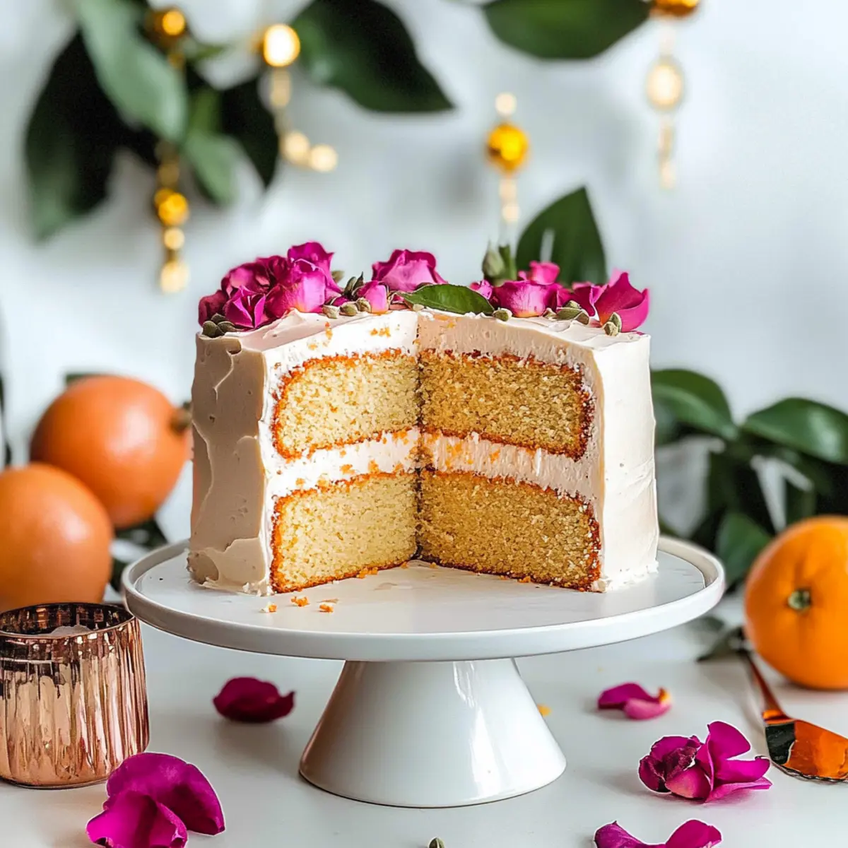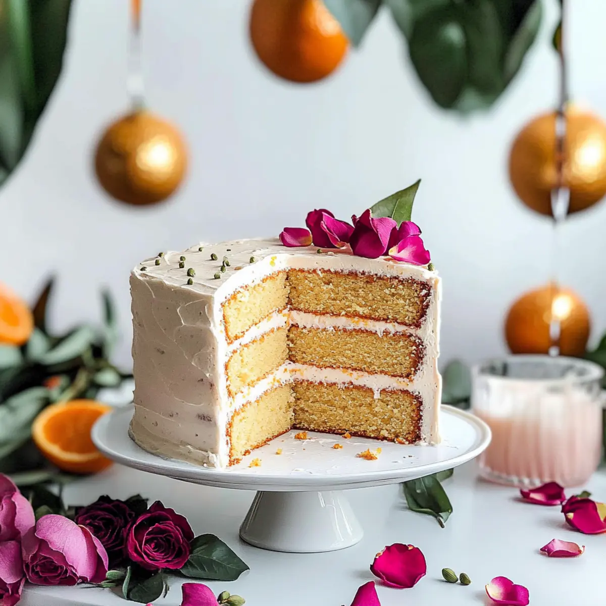 Jump to Recipe Print RecipeAs I stood in my kitchen, the aroma of freshly zested oranges and warm cardamom enveloped me like a cozy hug. This Orange Cardamom Cake with Rose Buttercream is a delightful way to elevate your baking experience, transforming simple ingredients into a stunning celebration cake. Not only is this recipe perfect for special occasions, but it also offers a delightful floral twist that will leave your loved ones enchanted. With its easy-to-follow steps, you’ll enjoy the pleasure of creating a visually striking dessert that tastes as good as it looks without spending hours in the kitchen. So, are you ready to impress with this elegant treat that’s sure to become a favorite? Why is this cake so special? Unique Flavor Fusion: Orange and warm cardamom merge beautifully, creating a cake that dances on your palate with a vibrant, floral twist. Showstopper Aesthetic: Rose buttercream adds a touch of elegance, making this cake a perfect centerpiece for any celebration. Effortless Preparation: Simple ingredients and easy steps guarantee a delightful baking experience, even for novice bakers. Versatile Indulgence: Handle variations effortlessly—try adding a lemon twist or substitute frosting for endless possibilities! Perfect for Gatherings: Impressive yet approachable, this cake will dazzle family and friends alike, ensuring second helpings are a must. If you love cakes that spell joy, you might also enjoy baking Moist Strawberry Shortcake or creating an elegant Caramelized Banana Cheesecake for your next gathering! Orange Cardamom Cake Ingredients For the Cake Base • Unsalted Butter – Provides richness and moisture; for a dairy-free version, use vegan butter. • Granulated Sugar – Adds sweetness and contributes to cake structure; avoid powdered sugar as it alters texture. • Brown Sugar – Enhances moisture and flavor depth; light brown sugar works best, while dark can make it dense. • Large Eggs – Acts as a binder and adds richness; substitute 1 egg with 1/4 cup of unsweetened applesauce for a lighter texture. • All-Purpose Flour – Forms the cake base; feel free to use a gluten-free flour blend if needed. • Ground Cardamom – Offers a warm, cozy spice flavor; adjust quantity according to your taste preference. • Baking Powder – Provides leavening for a fluffy texture; ensure it’s fresh for the best rise. • Kosher Salt – Balances sweetness and enhances flavors; sea salt is a great alternative. • Milk – Adds moisture and richness; choose almond milk or oat milk for a dairy-free option. • Orange Juice – Introduces fresh, citrusy flavor; freshly squeezed juice is highly recommended. • Orange Zest – Adds intense orange aroma and flavor; using organic oranges helps avoid pesticides. • Vanilla Extract – Enhances sweetness and flavor profile; almond extract is a good alternative for a unique twist. For the Rose Buttercream • Confectioners Sugar – Sweetener for the buttercream frosting; remember to sift it for a smooth finish. • Rosewater – Imparts floral flavor; use sparingly as too much can overwhelm the cake. • Milk or Cream – Adds consistency to the frosting; non-dairy alternatives can be used for a vegan option. • Pink Food Coloring – Optional, for aesthetic appeal; opt for natural coloring for a healthier choice. • Rose Buds – For garnish, adding visual appeal; ensure they are food-safe if using fresh. Now, you’re all set to create the enchanting Orange Cardamom Cake with Rose Buttercream! A delightful blend of flavors that will surely elevate your baking game. Step‑by‑Step Instructions for Orange Cardamom Cake with Rose Buttercream Step 1: Prep Pans Preheat your oven to 350°F (175°C). While it warms up, prepare three 9-inch round cake pans by greasing them with cooking spray or lining the bottoms with parchment paper. This step ensures that your Orange Cardamom Cake comes out smoothly without sticking, giving you a beautifully shaped cake. Step 2: Wet Mixture In a stand mixer, cream together the softened unsalted butter, granulated sugar, and brown sugar on medium speed for about 2 minutes until light and fluffy. Add the eggs one at a time, mixing on low speed after each addition. This creates a rich and well-blended wet mixture for your cake, enhancing its texture. Step 3: Dry Mixture In a separate bowl, whisk together the all-purpose flour, ground cardamom, baking powder, and kosher salt. This ensures that the dry ingredients are evenly distributed and ready to add to the wet mixture, which is crucial for a well-risen Orange Cardamom Cake. Step 4: Combine Wet and Dry Gradually incorporate the dry mixture into the wet mixture, alternating with the milk, orange juice, orange zest, and vanilla extract. Mix until the batter is smooth and well combined, taking about 1-2 minutes. This process helps to ensure that your flavors meld beautifully, creating a luscious cake batter. Step 5: Bake Pour the batter evenly into the prepared pans and place them in the oven. Bake for 40 minutes, or until a skewer inserted in the center comes out clean and the edges are gently pulling away from the sides of the pans. This is the moment you’ll begin to smell the delightful aroma of your Orange Cardamom Cake filling your kitchen. Step 6: Cool Layers Once baked, remove the cake layers from the oven and let them cool in the pans for about 10 minutes. Then, carefully transfer them to a wire rack to cool completely. Cooling is essential before frosting, as it prevents the Rose Buttercream from melting and ensures a beautiful layer cake. Step 7: Prepare Buttercream In your stand mixer, beat the softened unsalted butter with the sifted confectioners sugar until fluffy, which should take about 3-4 minutes. Gradually add the rosewater, vanilla extract, milk, and a pinch of salt while mixing until the buttercream is smooth and spreadable. This aromatic buttercream will elevate your cake with its floral notes. Step 8: Assemb