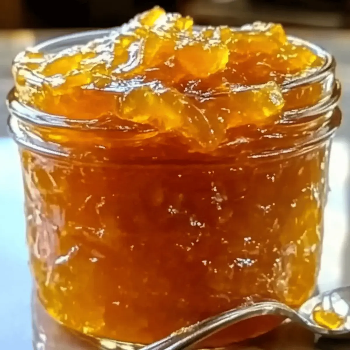 Jump to Recipe Print RecipeAs the aroma of simmering oranges fills my kitchen, I’m instantly transported to sunny mornings spent with loved ones. There’s something enchanting about making homemade orange marmalade that transforms simple ingredients into a jar of sunshine. This Easy Homemade Orange Marmalade recipe is not only a delightful way to brighten up your breakfast table, but it also offers an impressive touch to your desserts. With just a handful of straightforward ingredients and steps, you’ll master the art of preserving, creating a sweet and tangy spread that far surpasses anything you’d find in stores. Plus, it’s a fantastic way to use seasonal citrus! Ready to bring a taste of nostalgia to your spread? Let’s dive into this deliciously rewarding endeavor! Why is Orange Marmalade So Special? Simplicity at Its Best: This recipe requires minimal effort and ingredients, making it perfect for beginners and seasoned chefs alike. Bright, Zesty Flavor: The combination of fresh oranges and lemon creates a delightful harmony of sweet and tangy notes that will invigorate your breakfast routine. Versatile Uses: Whether spread on toast, swirled into yogurt, or used as a topping for desserts, this marmalade adds a burst of sunshine to any dish. Crowd-Pleasing Treat: Impress your family and friends with this homemade delight that’s perfect for gifting or enjoying at your next brunch. Quick Preparation: In just a few straightforward steps, you can create this luscious preserve that enhances dishes all year round. Get ready to elevate your kitchen game with this easy marmalade recipe! If you’re curious about other delightful preserves, check out my strawberry jam recipe for another delicious homemade treat! Orange Marmalade Ingredients • Here’s everything you need to create a delightful homemade orange marmalade! For the Marmalade Fresh Oranges – Ripe, juicy oranges are essential for a vibrant flavor base. Water – Helps soften the fruit; essential for cooking. Lemon – Adds a zesty brightness that balances the sweetness of the marmalade. Granulated Sugar – Essential for sweetness and preserving; it enhances the orange flavor wonderfully. Fruit Pectin (1.75 oz pouch) – A thickener that ensures your marmalade sets properly; swap for low-sugar pectin if desired. Salt (1/4 teaspoon) – Enhances and balances the overall flavor; a little goes a long way. Ready to pull these ingredients together and create a luscious orange marmalade? Let’s keep the kitchen buzzing! Step‑by‑Step Instructions for Easy Homemade Orange Marmalade Step 1: Prepare the Oranges Begin by washing and thinly slicing 4 large, ripe oranges, making sure to remove any seeds you encounter. Aim for slices around 1/8 inch thick. This step is crucial as it enhances the flavor extraction during cooking, ensuring your orange marmalade is packed with vibrant citrus notes. Step 2: Prepare the Lemon Next, wash and thinly slice 1 fresh lemon, also removing the seeds. Like the oranges, keep the lemon slices around 1/8 inch thick. The acidity from the lemon complements the sweetness of the oranges, creating a perfect balance in your marmalade. Step 3: Combine Ingredients In a large pot, combine the sliced oranges, lemon, and 4 cups of water. Allow this concoction to soak for 6-8 hours or preferably overnight. This soaking step infuses the flavors deeply, ensuring a more vibrant orange marmalade once cooked. Step 4: Cook the Fruit After soaking, bring the mixture to a rolling boil over medium heat. Once boiling, reduce the heat and let it simmer for about 30 minutes. You’ll know it’s ready when the fruit is tender and the mixture has thickened slightly, releasing a tantalizing citrus aroma. Step 5: Add Sugar and Pectin Stir in 4 cups of granulated sugar along with the salt and 1.75 oz of fruit pectin into the simmering mix. Keep stirring over medium heat until the mixture returns to a rolling boil. This activation of pectin is essential for your orange marmalade to set properly, ensuring a beautifully thick texture. Step 6: Check for Doneness Allow the marmalade to boil continuously for 10-15 minutes, stirring constantly to prevent sticking. To test for doneness, place a small amount on a cold plate; it should hold its shape and have a gel-like consistency. If it’s still runny, continue boiling for a few more minutes. Step 7: Jar the Marmalade Once your orange marmalade has reached the desired consistency, carefully pour it into sterilized jars, leaving about 1/4 inch of space at the top. Seal the jars while still hot, ensuring a vacuum seal to preserve the freshness. This step secures your delicious homemade treat for future enjoyment. Make Ahead Options These Easy Homemade Orange Marmalade is perfect for busy home cooks looking to save time while still enjoying a homemade treat! You can slice the oranges and lemon up to 24 hours in advance, refrigerating them in an airtight container to maintain freshness. Moreover, the soaked mixture can sit in your fridge overnight, allowing those vibrant flavors to meld before cooking. When you’re ready to make your marmalade, simply follow the remaining steps from cooking down to jarring it. This approach not only enhances the taste by allowing an extended soaking period but also makes it so much easier to whip up this delightful spread on a busy morning, guaranteeing just as delicious results! Orange Marmalade Variations & Substitutions Feel free to unleash your inner creativity and customize this delightful recipe to match your taste preferences! Citrus Swap: Try using grapefruit or lemon instead of oranges for a unique flavor twist that brightens any dish. Spice It Up: Add a pinch of cinnamon or a few slices of fresh ginger while cooking for a cozy, warming element. Less Sweet: Reduce the sugar amount to your liking and swap in low-sugar pectin for a healthier version that still has great texture. Herbal Infusion: Incorporate a sprig of rosemary or thyme dur