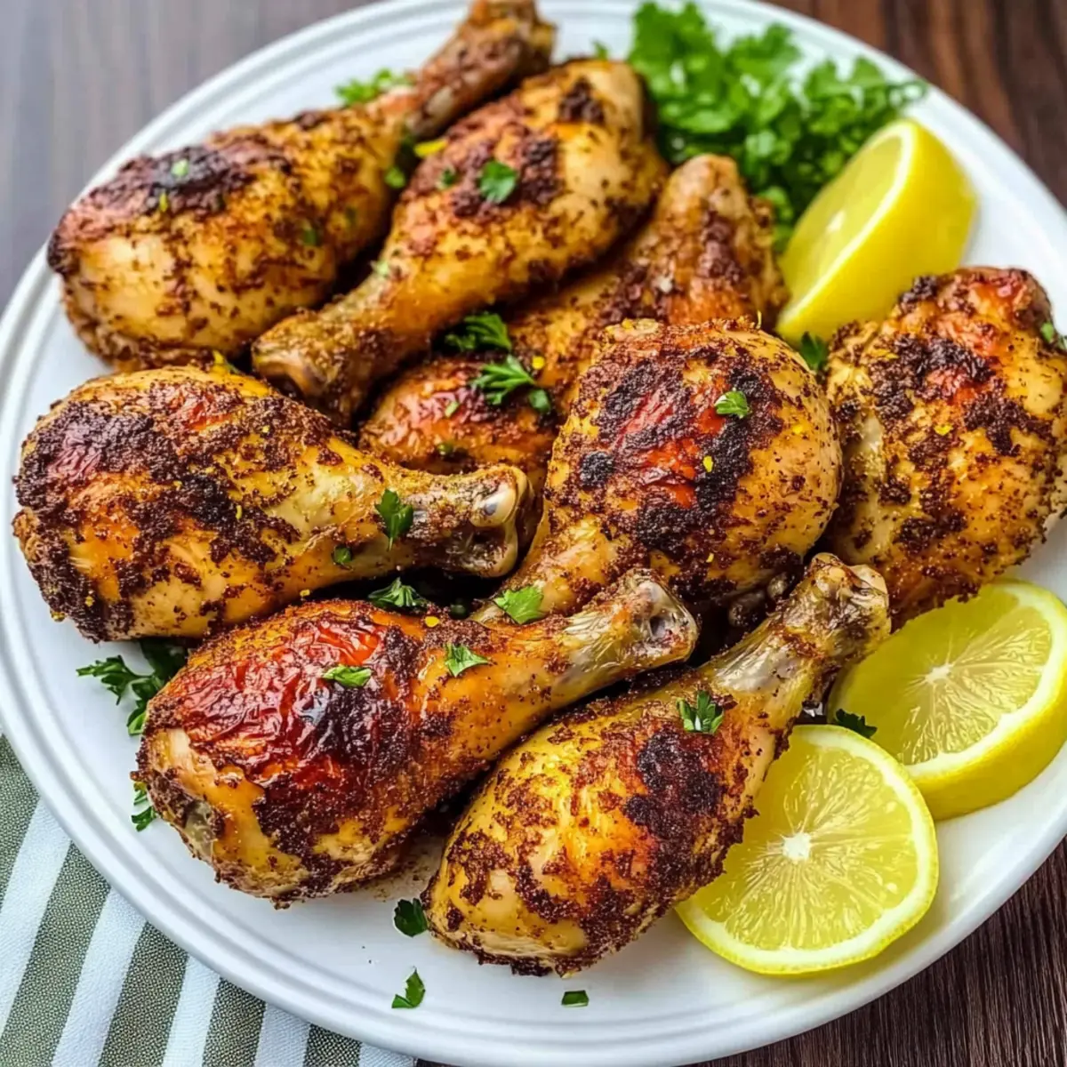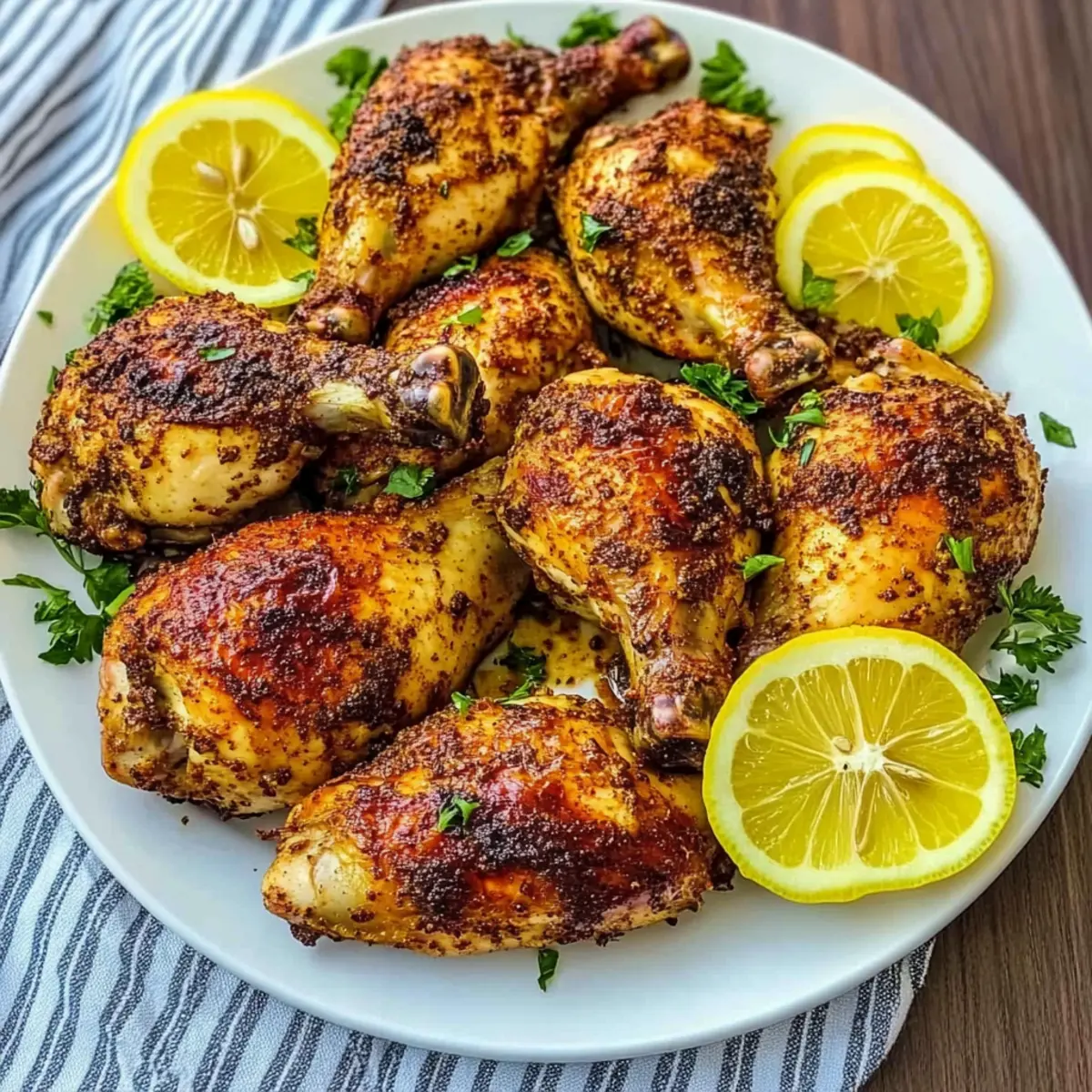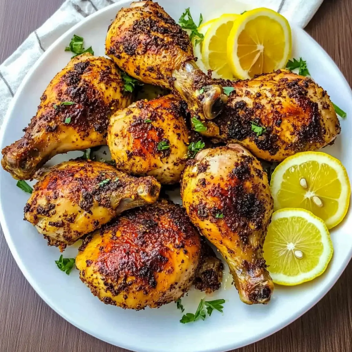 Jump to Recipe Print RecipeThe tantalizing aroma of roasted chicken leg quarters filled my kitchen, wrapping me in a warm hug that felt like home. Today, I want to share my secret for achieving gorgeously tender and flavorful Paprika Chicken Legs that are sure to impress. This dish not only brings a delightful twist to your dinner table but also embodies the essence of Mediterranean cuisine, making it a high-protein option that satisfies without sacrificing taste. Plus, the prep is super quick, allowing you to spend more time with loved ones while still delivering a dish that shines alongside any side—from fresh salads to roasted veggies. Are you ready to transform your dinner routine with these scrumptious chicken legs? Let’s get cooking! Why Are Paprika Chicken Legs So Irresistible? Tender, Juicy Flavor: The magic of these chicken legs lies in the savory blend of garlic and paprika, which infuses every bite with mouthwatering taste. Quick Prep Time: With just a few minutes of hands-on work, you can have a scrumptious meal ready to go, leaving you more time to enjoy family moments. Versatile Side Pairings: These legs work beautifully with everything from roasted vegetables to fresh salads, making them a perfect canvas for your creativity! High-Protein Satisfaction: A fantastic high-protein option that delights without any guilt, perfect for anyone looking to enjoy home-cooked goodness. Crowd-Pleasing Delight: Whether it’s a cozy family dinner or a weekend gathering, these Paprika Chicken Legs are guaranteed to impress and satisfy your guests! Paprika Chicken Legs Ingredients For the Chicken • Chicken Leg Quarters – Main protein source; substitute with drumsticks or wings if desired. • Olive Oil – Adds moisture and aids in browning; can replace with canola or vegetable oil. For the Seasoning • Sweet Paprika – Provides the vibrant flavor profile; regular sweet paprika enhances the dish best. • Garlic Cloves (minced) – Enhances flavor depth; fresh garlic is always the recommended choice for maximum taste. • Dried Italian Herbs – Infuses herbal notes into the chicken; can swap with an Italian seasoning blend if needed. • Chili Powder (optional) – Adds a subtle kick; feel free to omit if you prefer a milder flavor. • Salt and Pepper – Essential for seasoning; adjust amounts according to your taste preference. For Garnish • Lemon (for garnish) – Brightens the dish and elevates flavors; lime can also be used for a citrus twist. With these simple yet flavorful ingredients, your Paprika Chicken Legs will shine at any dinner table! Step‑by‑Step Instructions for Paprika Chicken Legs Step 1: Preheat the Oven Start by preheating your oven to 425º F (220º C). This high temperature is essential for achieving that crispy skin on the Paprika Chicken Legs. While the oven heats up, gather your ingredients and prepare your workspace, ensuring you have everything on hand for a smooth cooking experience. Step 2: Prepare the Chicken Rinse the chicken leg quarters under cold water and pat them dry using paper towels. This step is crucial for ensuring crispy skin. Once dry, season both sides of the chicken legs generously with salt and pepper. Lay them on a clean cutting board or plate where they can rest while you prepare the marinade. Step 3: Make the Marinade In a large mixing bowl, combine olive oil, sweet paprika, minced garlic, dried Italian herbs, and optional chili powder. Mix well until you have a smooth marinade that will infuse your Paprika Chicken Legs with incredible flavor. The rich aroma will heighten your anticipation for this delicious dish. Step 4: Coat the Chicken Add the seasoned chicken legs into the bowl with the marinade. Using your hands or a spatula, ensure that each piece is evenly coated with the flavorful mixture, allowing the spices to penetrate the meat. Let it marinate for a few minutes to enhance the flavor even further, making every bite unforgettable. Step 5: Arrange on Baking Sheet Prepare a baking sheet by lining it with parchment paper or lightly greasing it to prevent sticking. Place the marinated Paprika Chicken Legs on the sheet, ensuring they are spread out in a single layer. This spacing allows for even cooking and maximum crispiness. Step 6: Bake the Chicken Slide the baking sheet into the preheated oven and bake the chicken for about 40 minutes. Keep an eye on it, as you want the skin to become golden brown and the internal temperature to reach 165º F (75º C). The perfect indicator of doneness is when juices run clear when pierced. Step 7: Garnish and Serve Once done, take the Paprika Chicken Legs out of the oven and let them rest for a few minutes. For an elegant touch, garnish with fresh lemon slices to brighten the dish. Serve alongside your favorite sides like roasted vegetables or a fresh salad for a complete meal that the entire family will adore. How to Store and Freeze Paprika Chicken Legs Fridge: Store leftover Paprika Chicken Legs in an airtight container for up to 3 days. Be sure to let the chicken cool completely before sealing to maintain freshness. Freezer: For longer storage, wrap the cooled chicken legs tightly in aluminum foil or plastic wrap, then place them in a freezer-safe bag. They can be frozen for up to 3 months. Reheating: To reheat, place frozen or refrigerated chicken legs in a preheated oven at 350º F (175º C) for about 20-25 minutes, or until warmed through. This method helps retain the crispy texture. Texture Tip: Avoid microwaving, as it can make the skin soggy; the oven method keeps those beloved crispy edges intact! Tips for the Best Paprika Chicken Legs Drying Chicken: Pat the chicken legs dry thoroughly before seasoning to achieve a crispy skin. Moisture prevents browning. Marinating Time: Let the chicken marinate for at least 15 minutes—longer if you have time—allowing the flavors to infuse deeply into the meat. Use a Thermometer: Trust a meat thermometer to ensure doneness; the ch