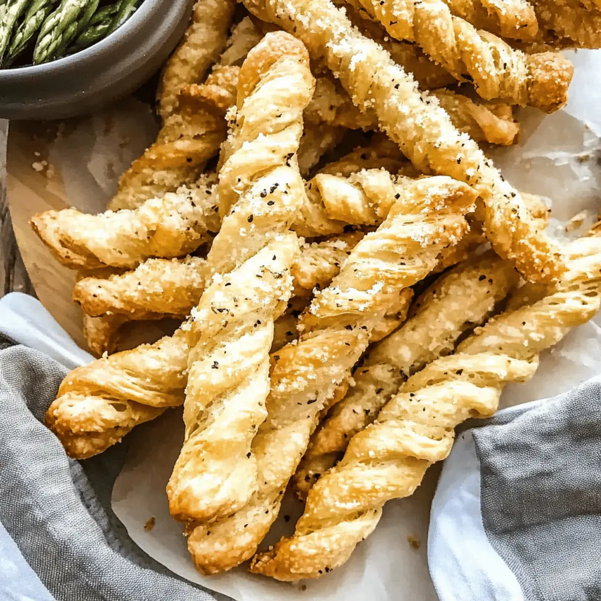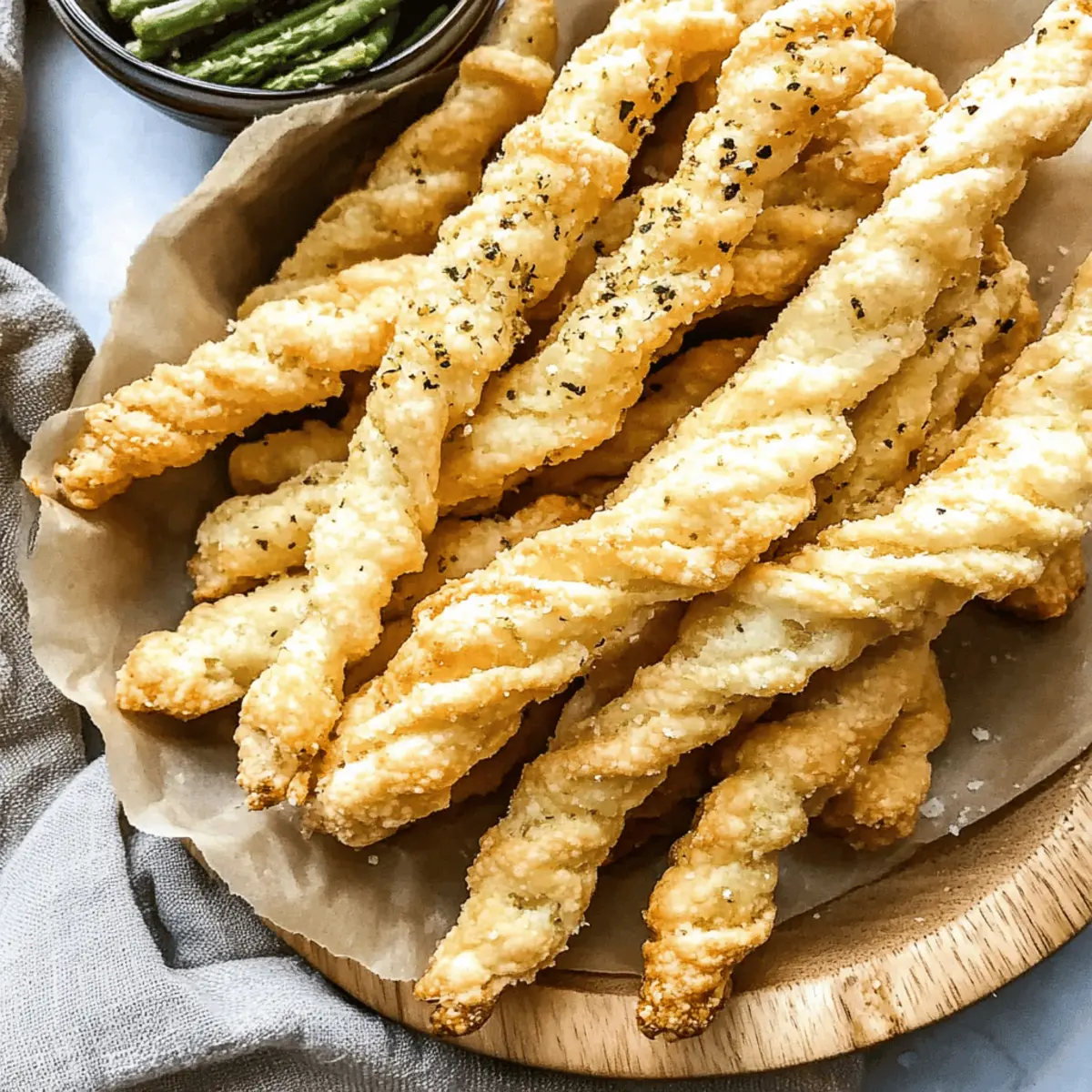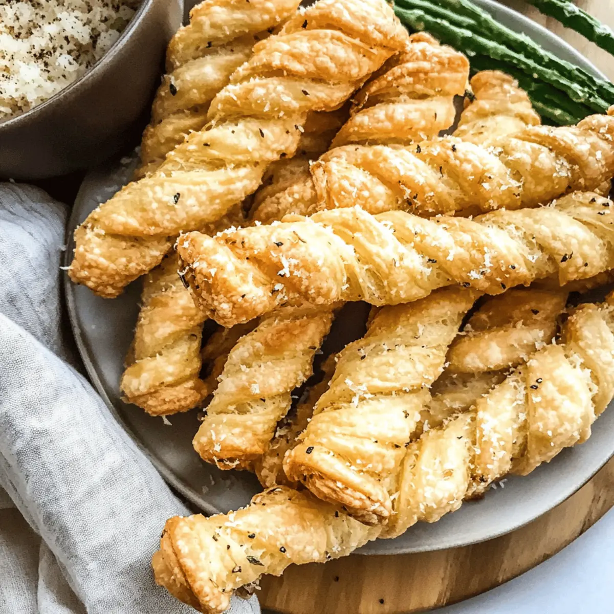 Jump to Recipe Print RecipeA single whiff of garlic and melted Parmesan wafting through the kitchen can transform any day into a celebration. Imagine inviting friends over for an impromptu get-together, only to wow them with these delightful Garlic Parmesan Cheese Straws that come together in just 20 minutes. Perfect for snacking or as a delicious side, they bring a light, airy crunch and savory goodness that everyone will adore. Not only are these straws a breeze to make, but they’re also a great way to elevate any meal without breaking a sweat. Ready to make some magic happen in your kitchen? Let’s twist up some cheese straws that are sure to steal the spotlight at your next gathering! Why are Garlic Parmesan Cheese Straws a Must-Try? Irresistible Flavor: The combination of garlic and freshly grated Parmesan cheese creates an addictive taste that keeps you coming back for more. Quick and Easy: These straws come together in just 20 minutes, making them an ideal choice for last-minute gatherings or a cozy night in. Versatile Snacking: Enjoy them as a delightful standalone appetizer or as a perfect accompaniment to your favorite soups or salads. Have you tried them with homemade honey mustard? It’s a game changer! Light, Flaky Texture: When baked, they achieve a crispy exterior and airy inside, ensuring every bite is a crunchy delight. Crowd-Pleasing Treat: Even those who usually lean towards fast food will be impressed – everyone loves a good cheese straw! These are bound to be a hit at your next party. Parmesan Cheese Straws Ingredients For the Straws • Puff Pastry – Provides a light and flaky texture; thaw it in the fridge overnight or on the counter for 30 minutes prior to use. • Freshly Grated Parmesan Cheese – Essential for rich, savory flavor; opt for freshly grated to maximize taste. • Garlic Powder – Infuses the pastry with aromatic garlic flavor; for a fresher twist, you can substitute 1 minced clove of garlic. • Salt – Enhances the overall flavor of the cheese and pastry, balancing the richness. Step‑by‑Step Instructions for Garlic Parmesan Cheese Straws Step 1: Preheat the Oven Begin by preheating your oven to 425°F (220°C). Position one rack in the upper middle and another in the lower middle of your oven. This setup ensures even baking for your Garlic Parmesan Cheese Straws, giving them that perfect crispiness. Step 2: Prepare the Pastry Take your thawed puff pastry and place it on a silicone baking mat or parchment paper. This will keep it from sticking and make cleanup easier. Make sure the pastry is spread out flat and is at room temperature for optimal handling. Step 3: Season the Dough Sprinkle the freshly grated Parmesan cheese, garlic powder, and a pinch of salt evenly over the surface of the puff pastry. Take your time to ensure an even distribution of the ingredients, which will enhance the flavor of your cheese straws and make each bite deliciously savory. Step 4: Roll to Combine Cover the seasoned pastry with a second silicone mat or another piece of parchment paper. Gently roll over the top using a rolling pin to press the toppings into the dough, forming a square approximately 10 inches. This step integrates the flavors while maintaining the airiness of the pastry. Step 5: Cut into Strips Carefully remove the top layer of mat or parchment. Using a sharp knife or pizza cutter, cut the dough into 12 strips, each measuring just over 3/4 inch wide. This will allow even baking and easy handling for your Garlic Parmesan Cheese Straws. Step 6: Twist and Arrange Take each strip of dough and gently twist it by holding one end while rotating the other end. This creates a lovely spiraled effect that not only looks appealing but also adds texture. Place the twisted strips on a baking sheet lined with parchment paper, spacing them about an inch apart. Step 7: Bake to Perfection Slide the baking sheets into the oven and bake your cheese straws for about 10 minutes, or until they puff up and turn a beautiful golden brown. Keep an eye on them and rotate the baking sheets halfway through for even browning, making sure they don’t overcook. Step 8: Cool and Serve Once baked, remove your Garlic Parmesan Cheese Straws from the oven and allow them to cool slightly on the baking sheet. This will make them easier to handle. Serve warm as a delightful appetizer or side dish, and prepare for the compliments to roll in! Expert Tips for Parmesan Cheese Straws • Thawing Pastry: Make sure to fully thaw the puff pastry before using. A partially frozen pastry will not puff properly, resulting in dense straws. • Cheese Grating: For the best flavor, use freshly grated Parmesan cheese instead of pre-grated. Fresh cheese melts better and intensifies the flavor of your cheese straws. • Cutting Technique: Use a sharp knife or pizza cutter for clean cuts when slicing the dough. Avoid tearing the dough to ensure even baking and perfect crunch. • Baking Sheets: Bake on parchment-lined sheets for easy removal and to avoid sticking. Rotating the trays halfway through helps achieve even browning for your Parmesan cheese straws. • Cool Down: Allow the cheese straws to cool slightly on the baking sheet before transferring them. This helps maintain their crispness and avoids breakage. What to Serve with Garlic Parmesan Cheese Straws Imagine the warm, inviting aromas filling your kitchen as you prepare a complete meal to impress your loved ones. Creamy Tomato Soup: A comforting bowl of creamy tomato soup pairs perfectly with the crunchiness of the cheese straws, adding a rich, rustic flavor. Simple Green Salad: A fresh salad with mixed greens and a light vinaigrette provides a crisp contrast, balancing the richness of the cheese straws effortlessly. Spicy Marinara Sauce: Elevate your cheese straws by serving them with a zesty marinara for dipping; its tangy flavor complements the cheesy goodness beautifully. Garlic Butter Shrimp: The savory garlic butter sauce of shri